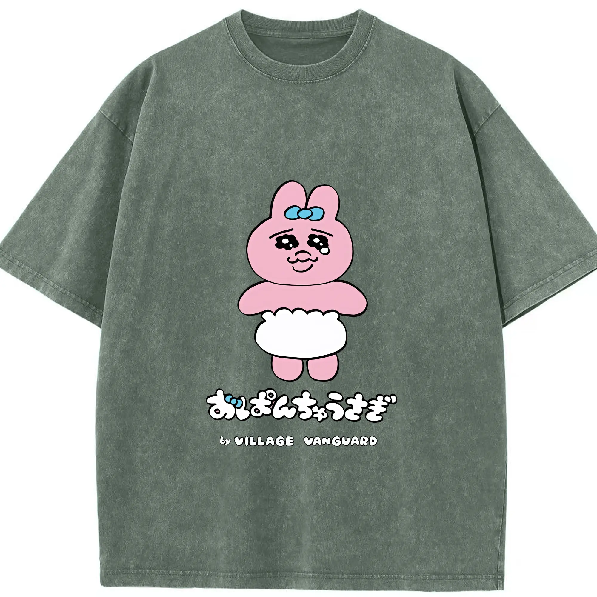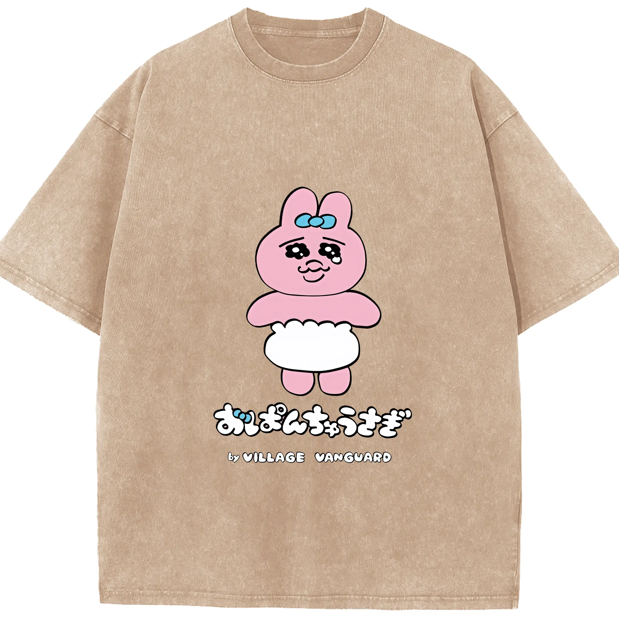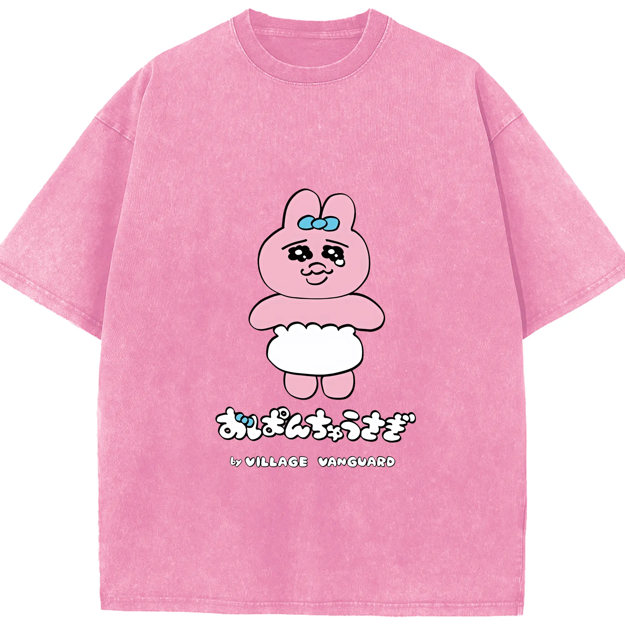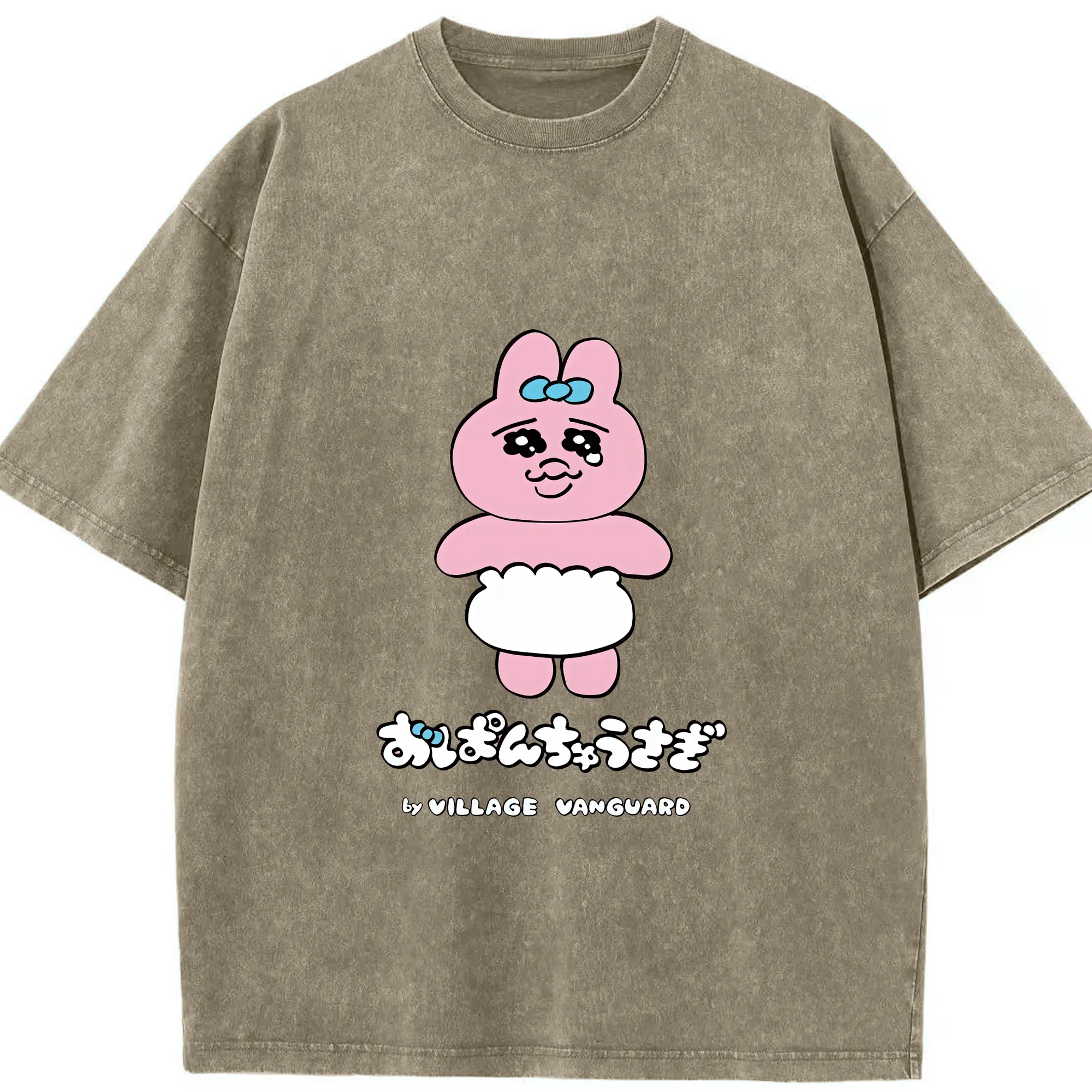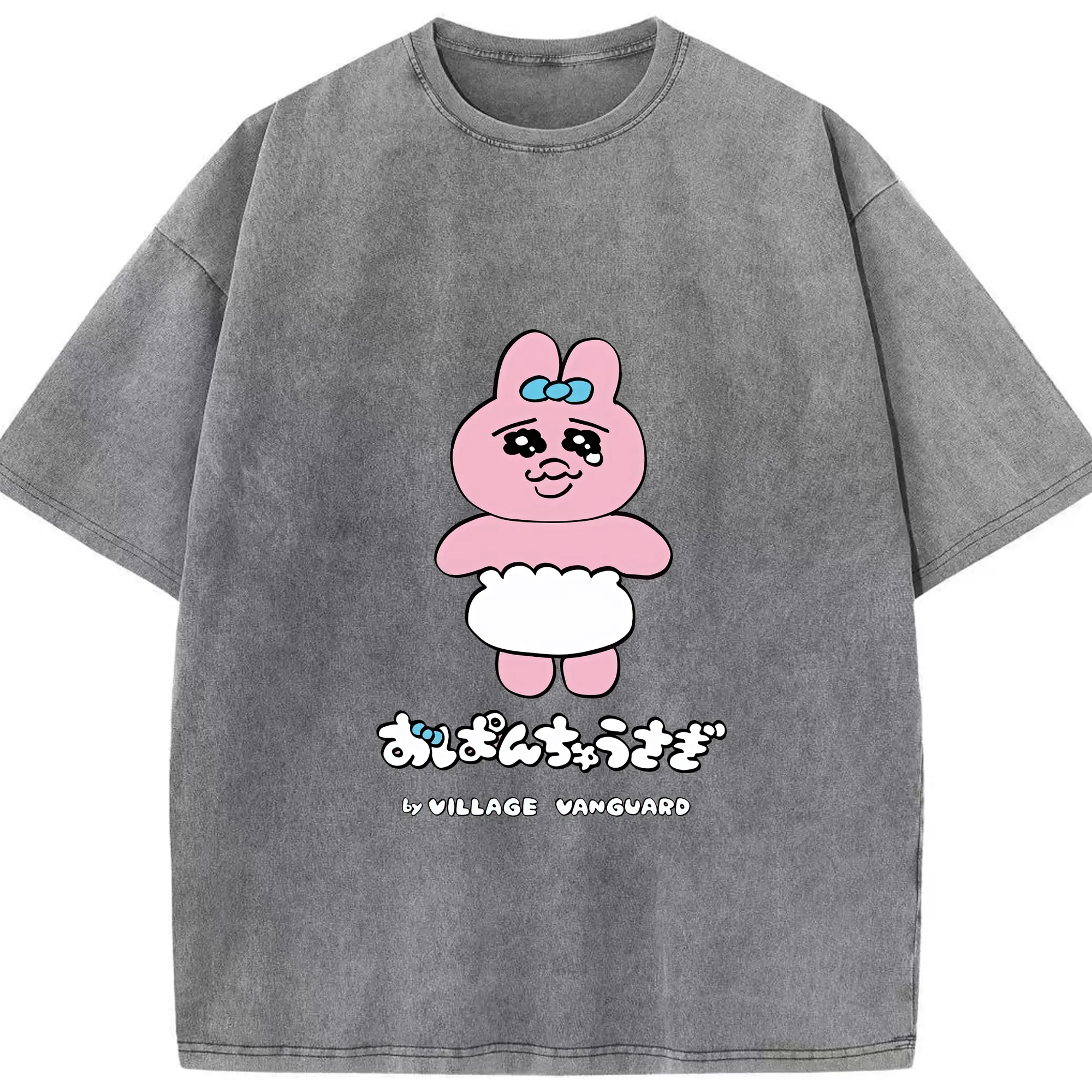 おぱんちゅうさぎ グッズ おぱんちゅうさぎ - 綿100% ヴィンテージ風 半袖Tシャツ ・ 背面プリント ・ 柔らか肌触り ・ 通気性 快適 ・ スポーツ カジュアル 外出用