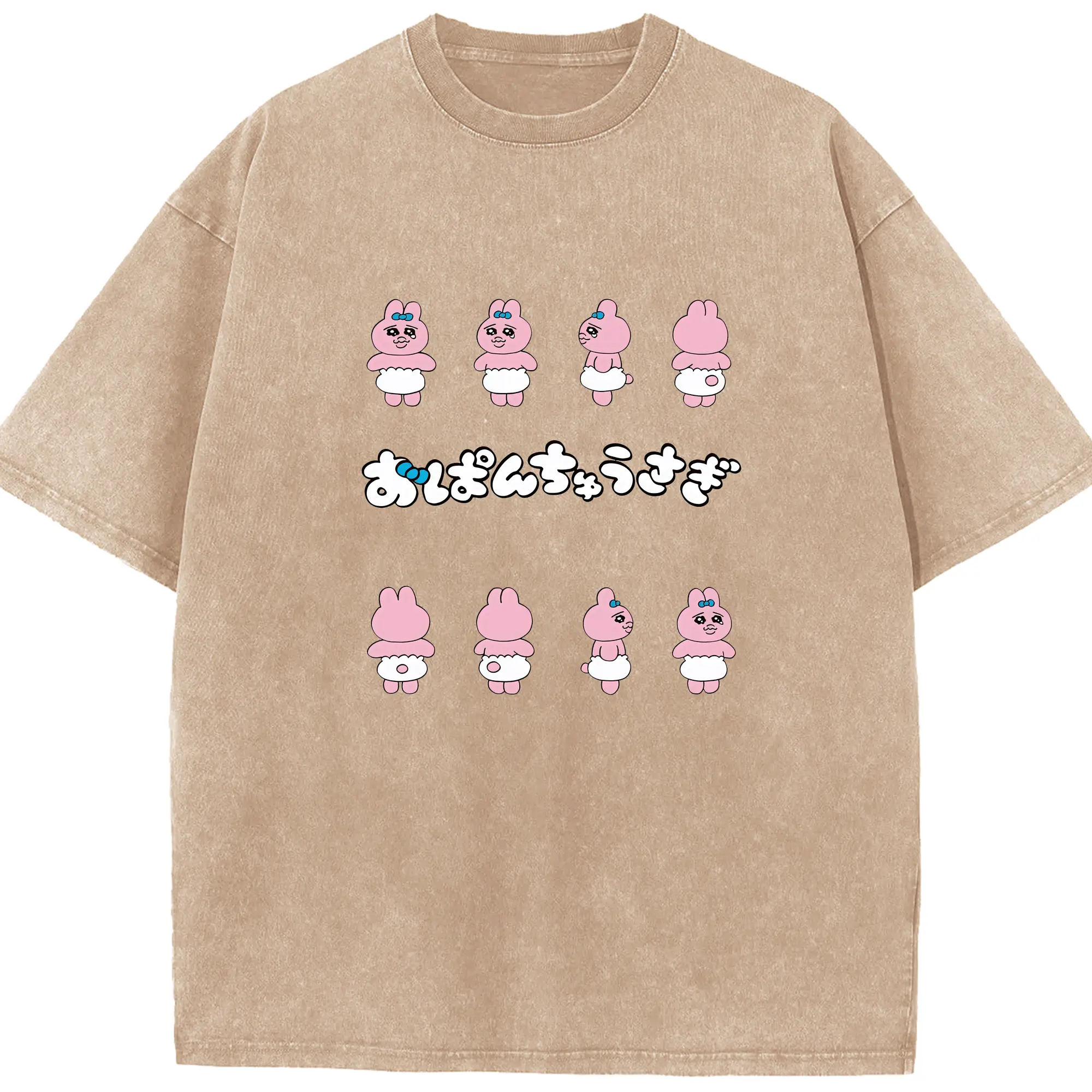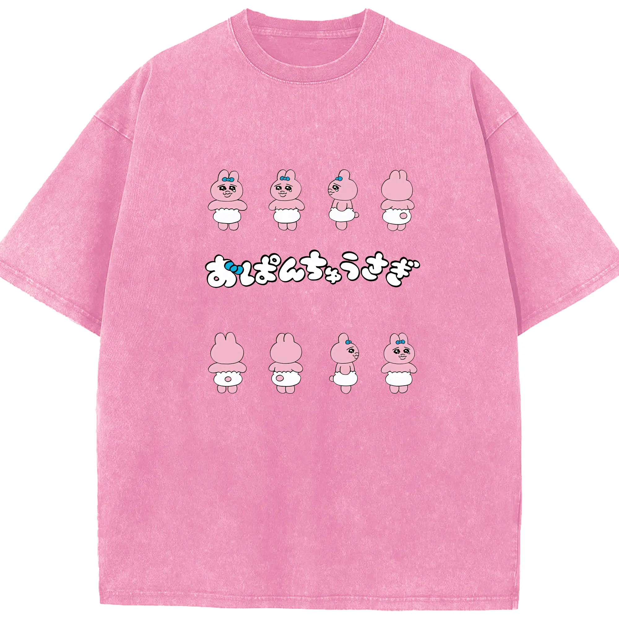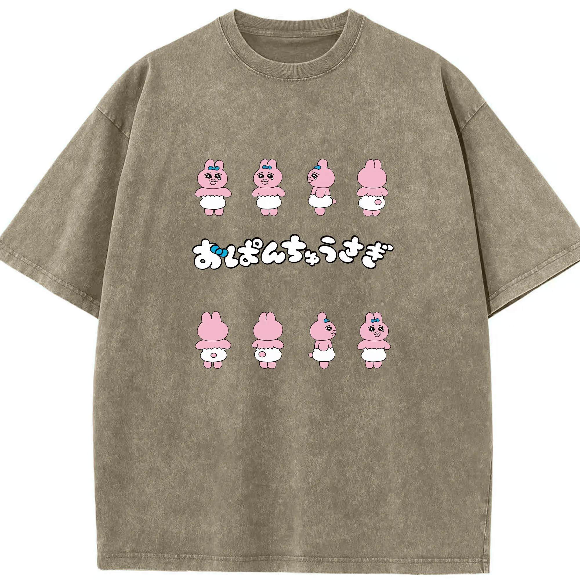 おぱんちゅうさぎ グッズ おぱんちゅうさぎ - 綿100% ヴィンテージ風 半袖Tシャツ ・ 背面プリント ・ 柔らか肌触り ・ 通気性 快適 ・ スポーツ カジュアル 外出用