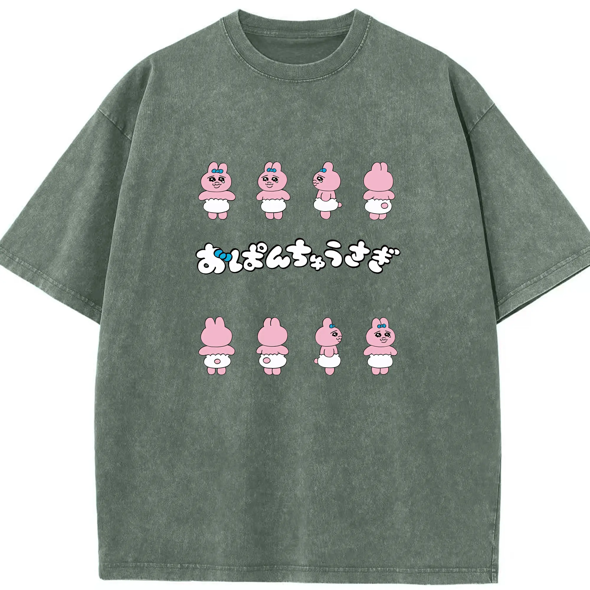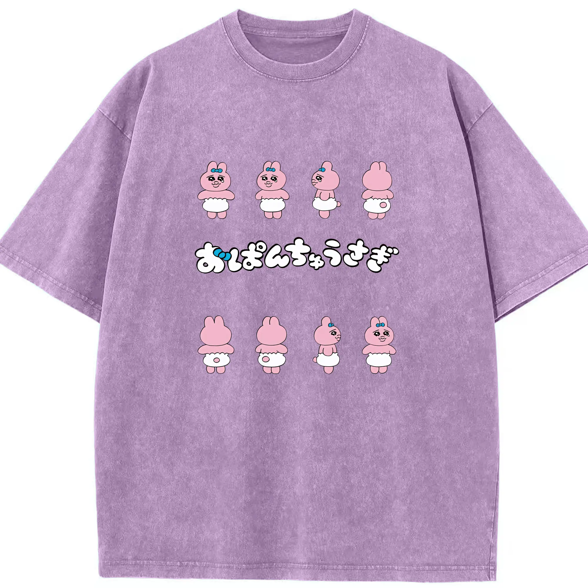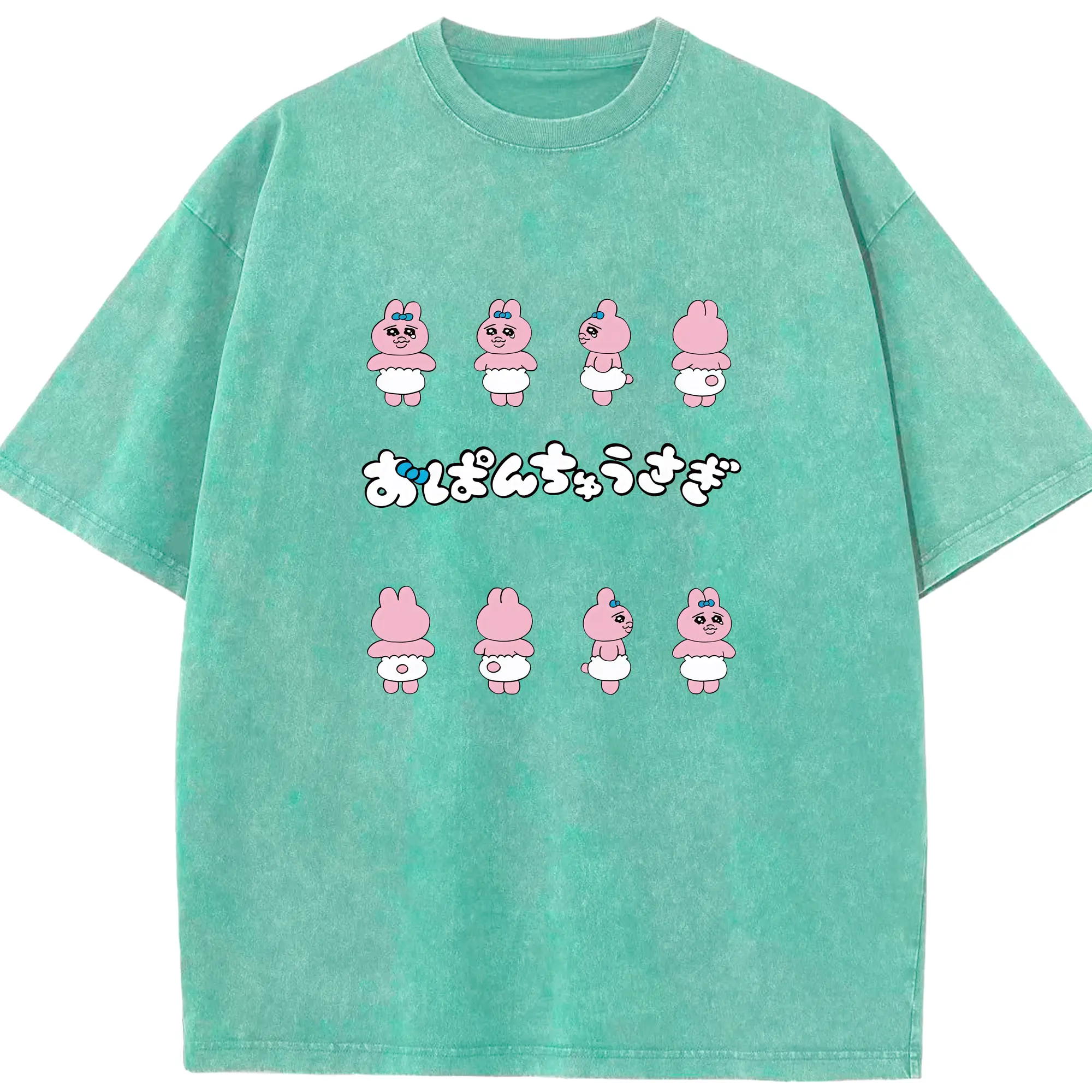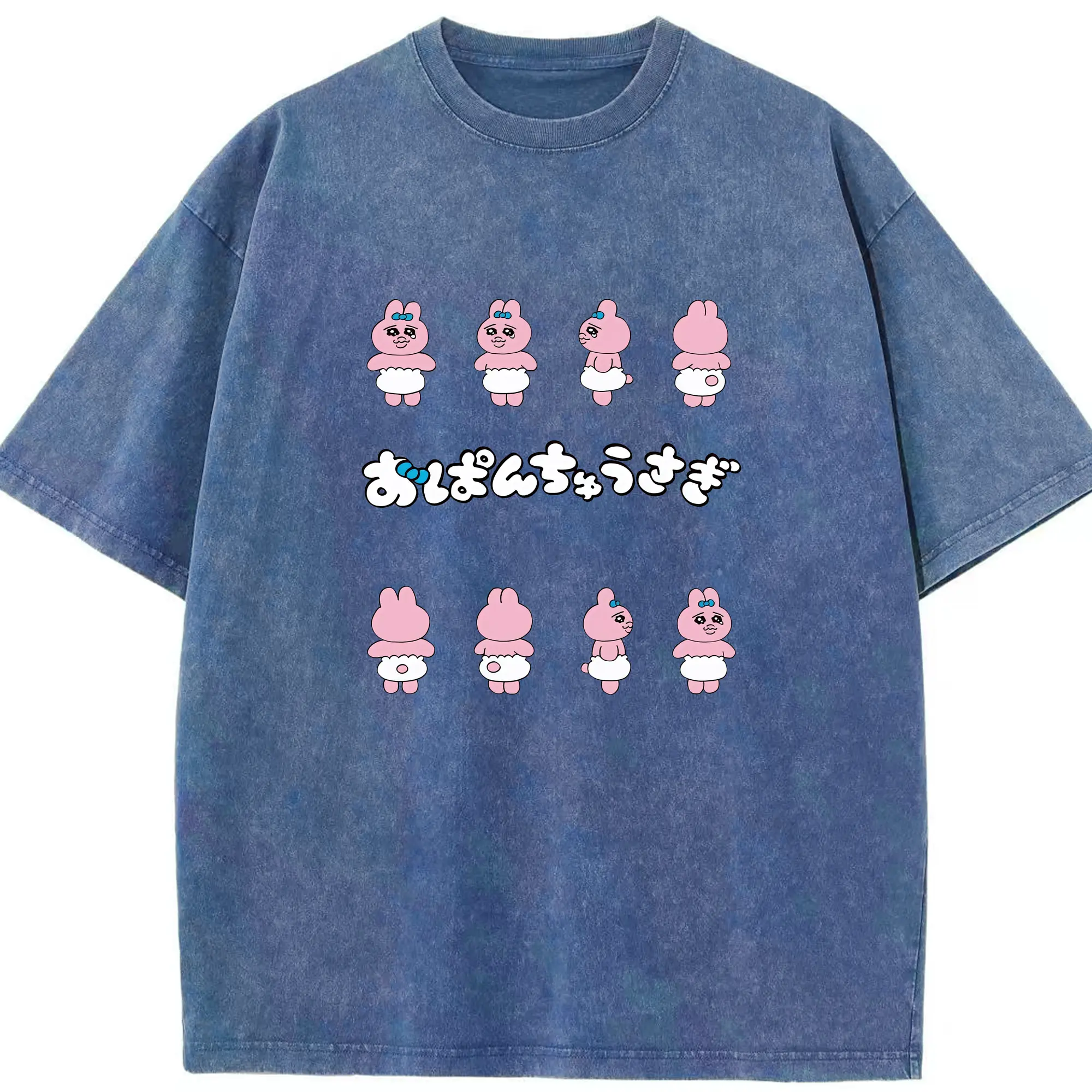 おぱんちゅうさぎ グッズ おぱんちゅうさぎ - 綿100% ヴィンテージ風 半袖Tシャツ ・ 背面プリント ・ 柔らか肌触り ・ 通気性 快適 ・ スポーツ カジュアル 外出用