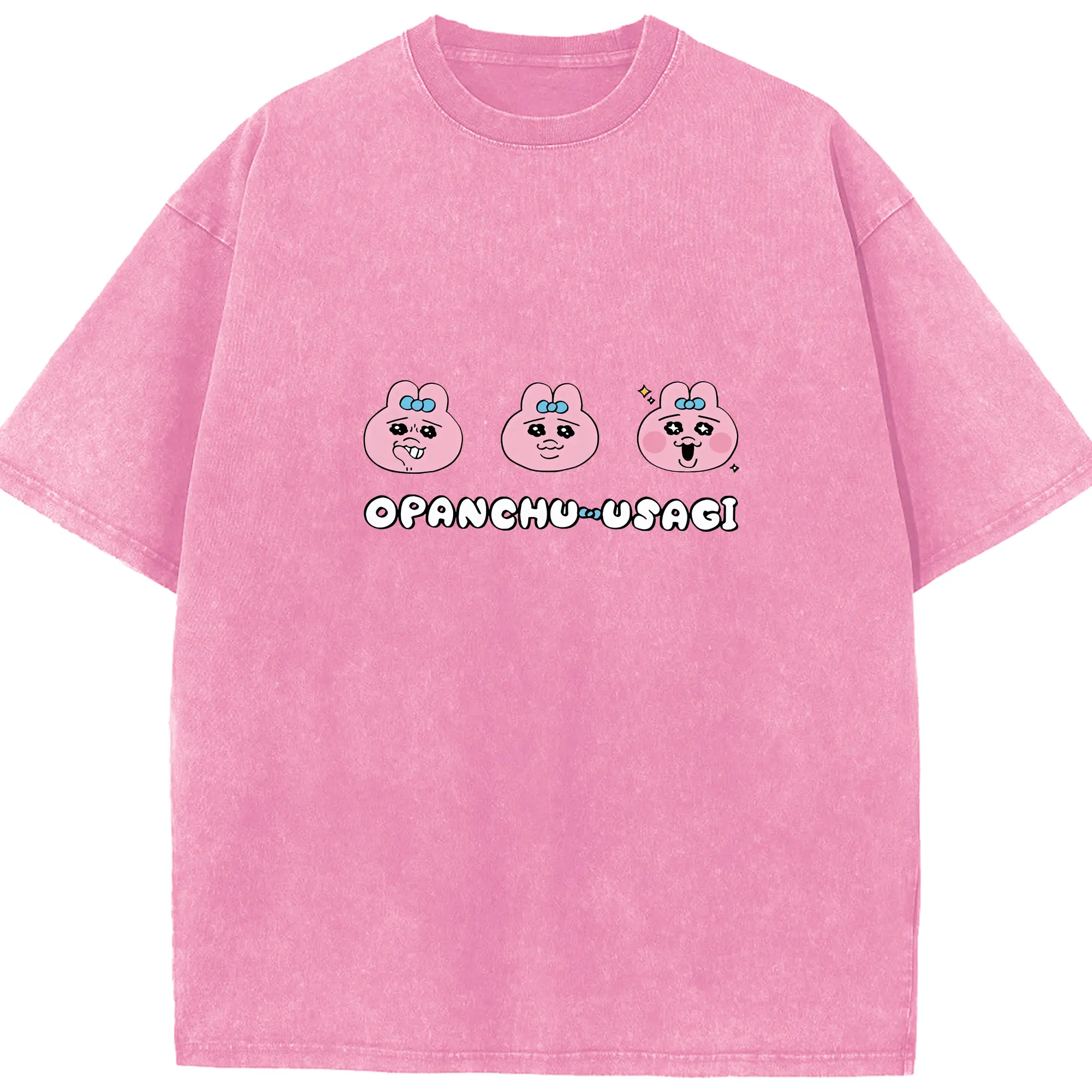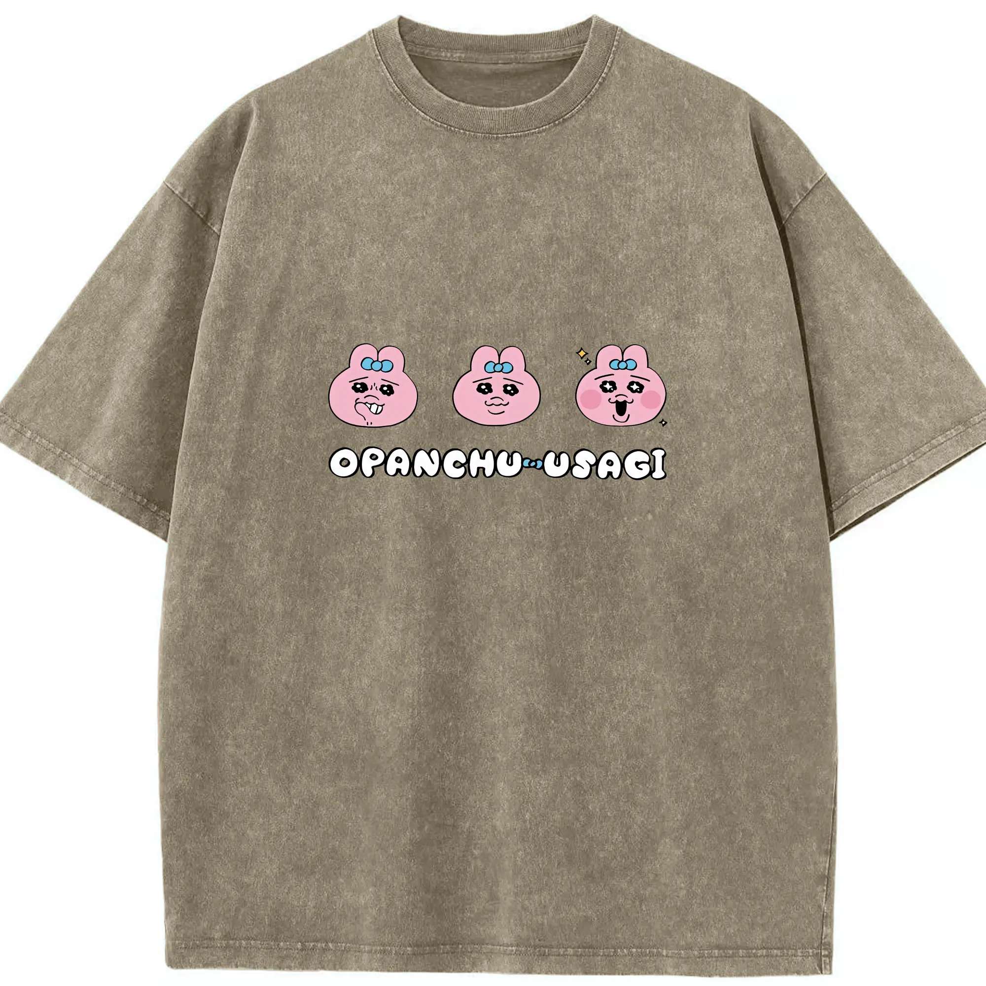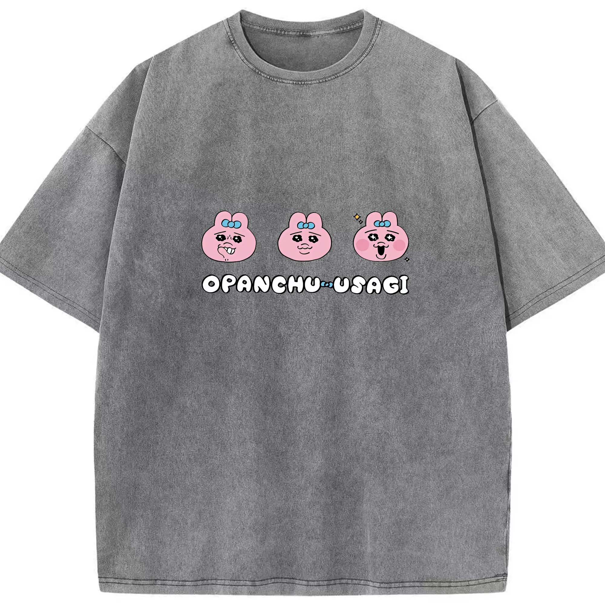 おぱんちゅうさぎ グッズ おぱんちゅうさぎ - 綿100% ヴィンテージ風 半袖Tシャツ ・ 背面プリント ・ 柔らか肌触り ・ 通気性 快適 ・ スポーツ カジュアル 外出用