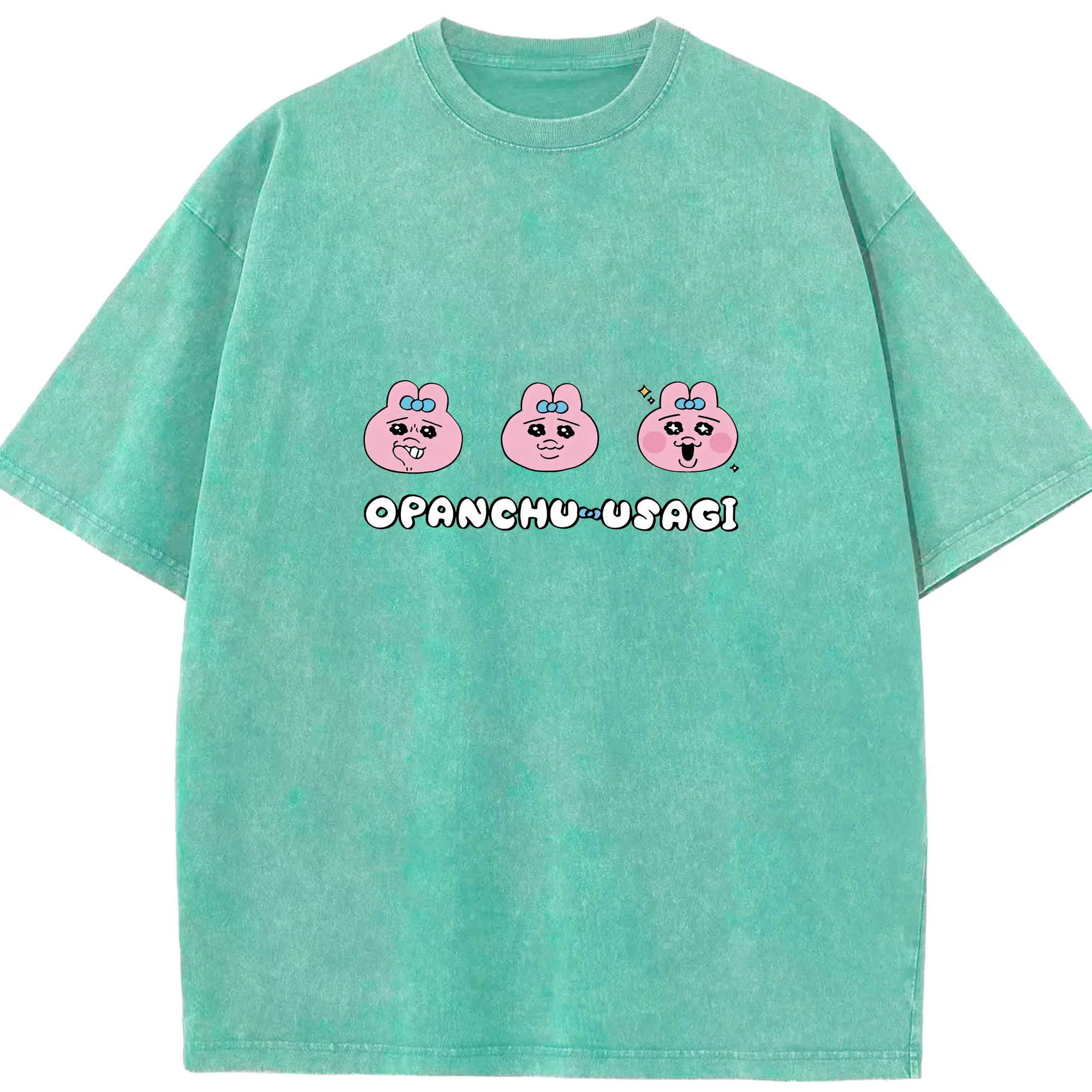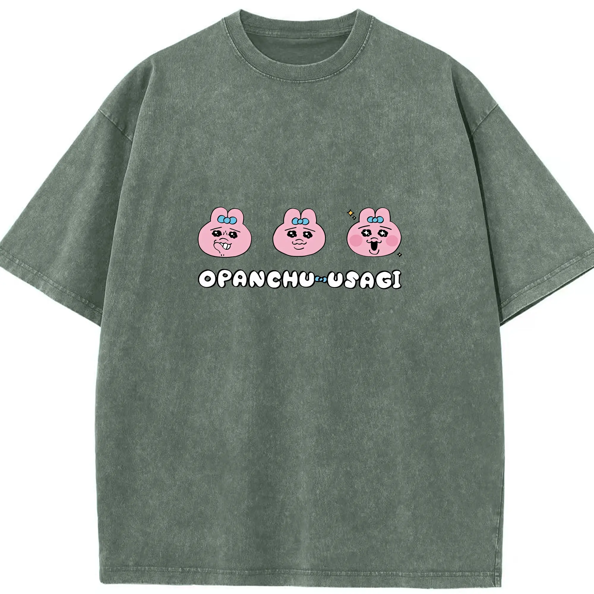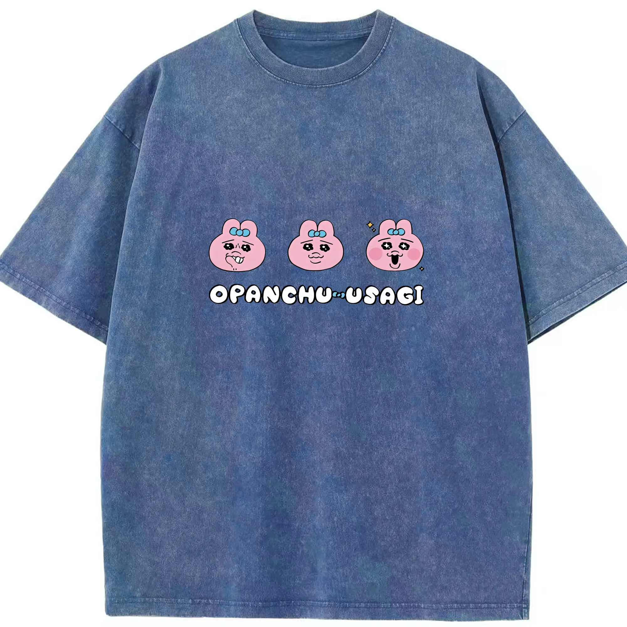 おぱんちゅうさぎ グッズ おぱんちゅうさぎ - 綿100% ヴィンテージ風 半袖Tシャツ ・ 背面プリント ・ 柔らか肌触り ・ 通気性 快適 ・ スポーツ カジュアル 外出用