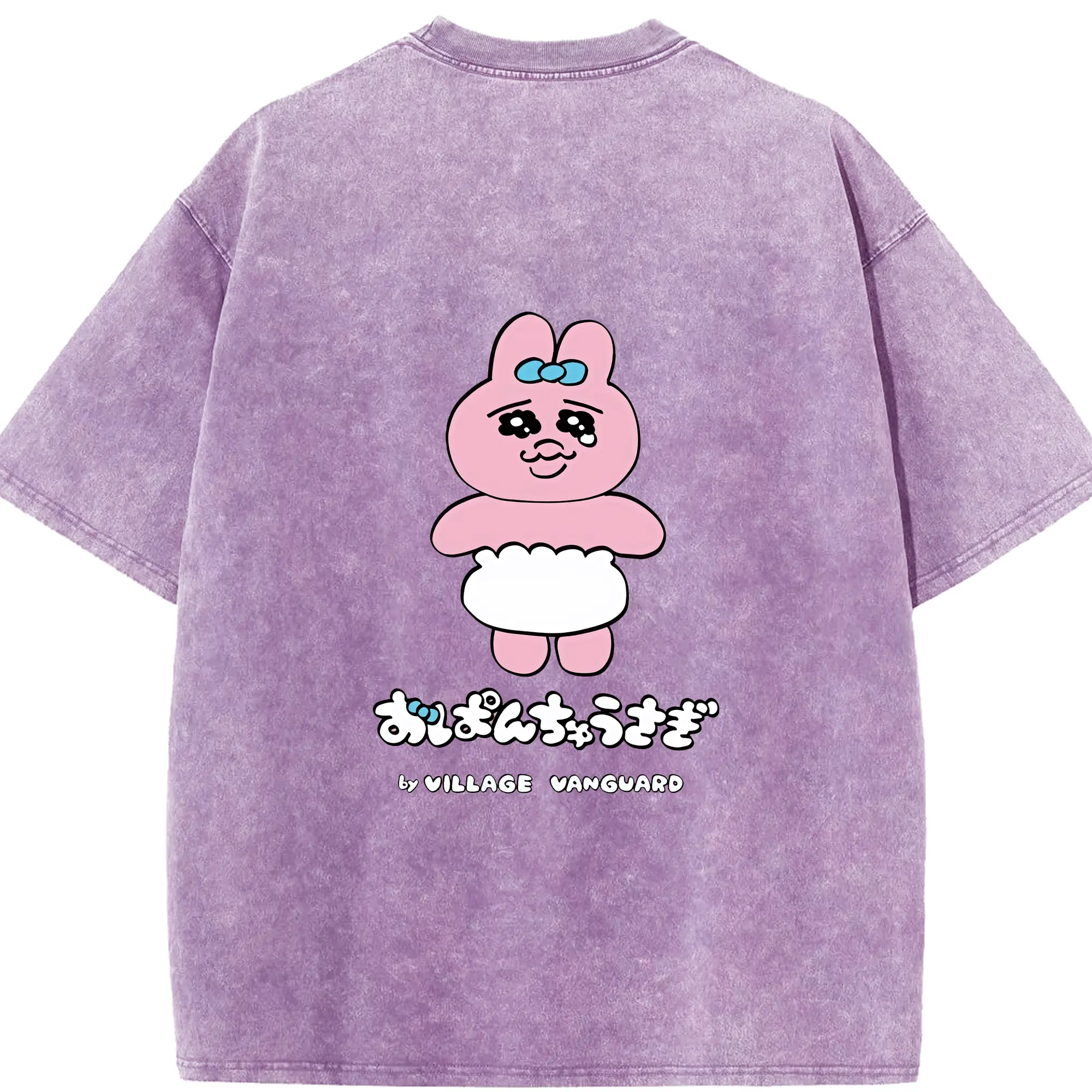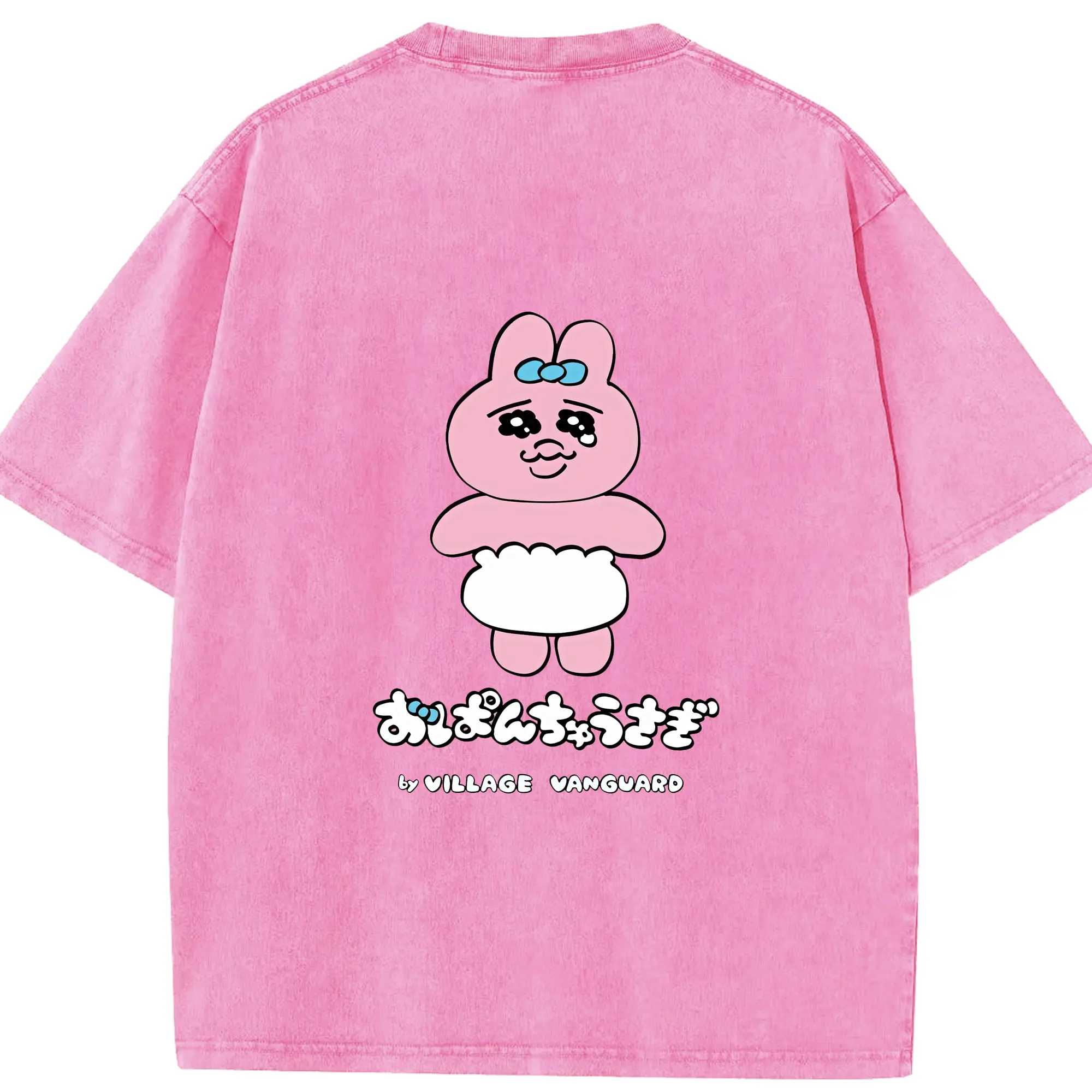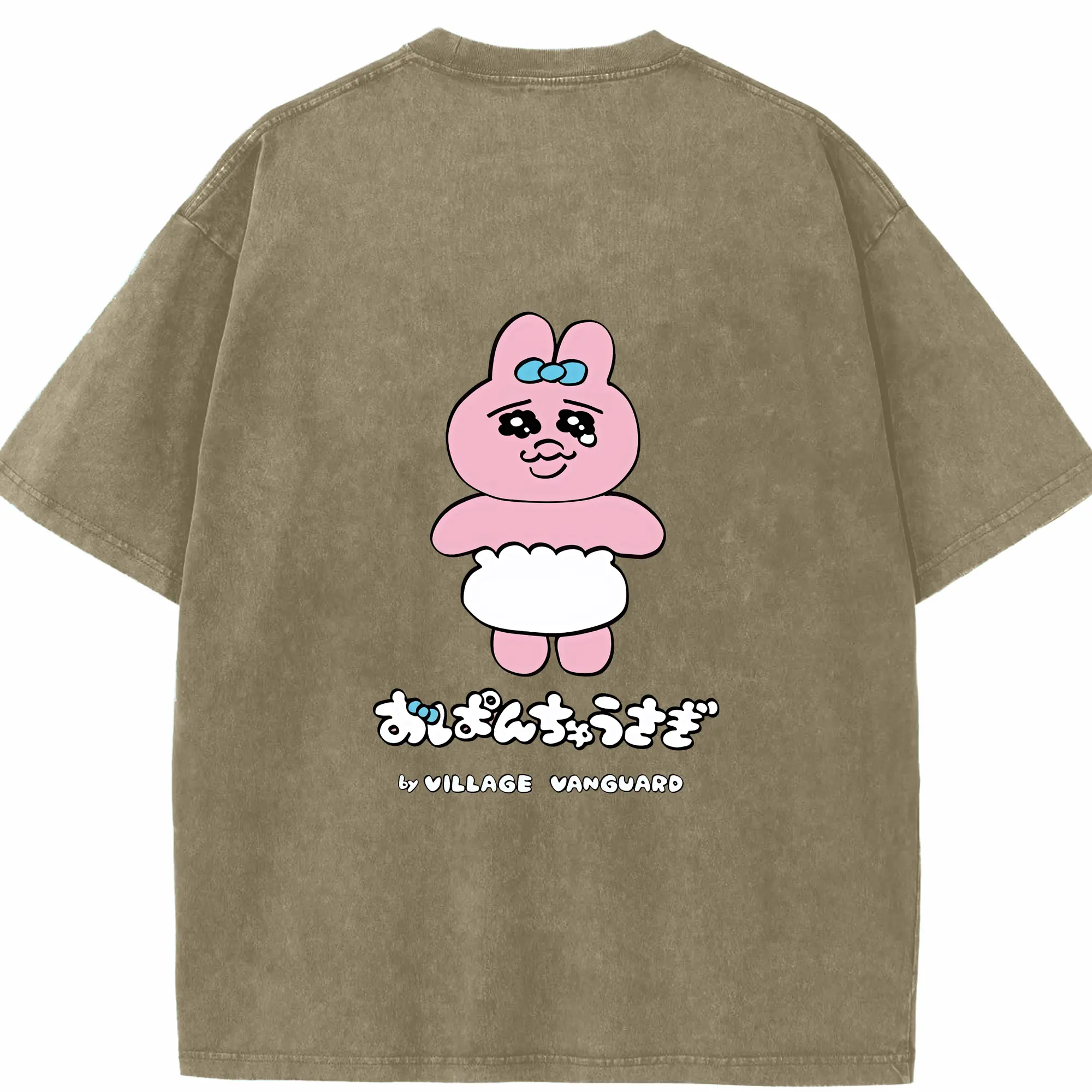 おぱんちゅうさぎ グッズ おぱんちゅうさぎ - 綿100% ヴィンテージ風 半袖Tシャツ ・ フロントプリント ・ 柔らか肌触り ・ 通気性 快適 ・ スポーツ カジュアル 外出用