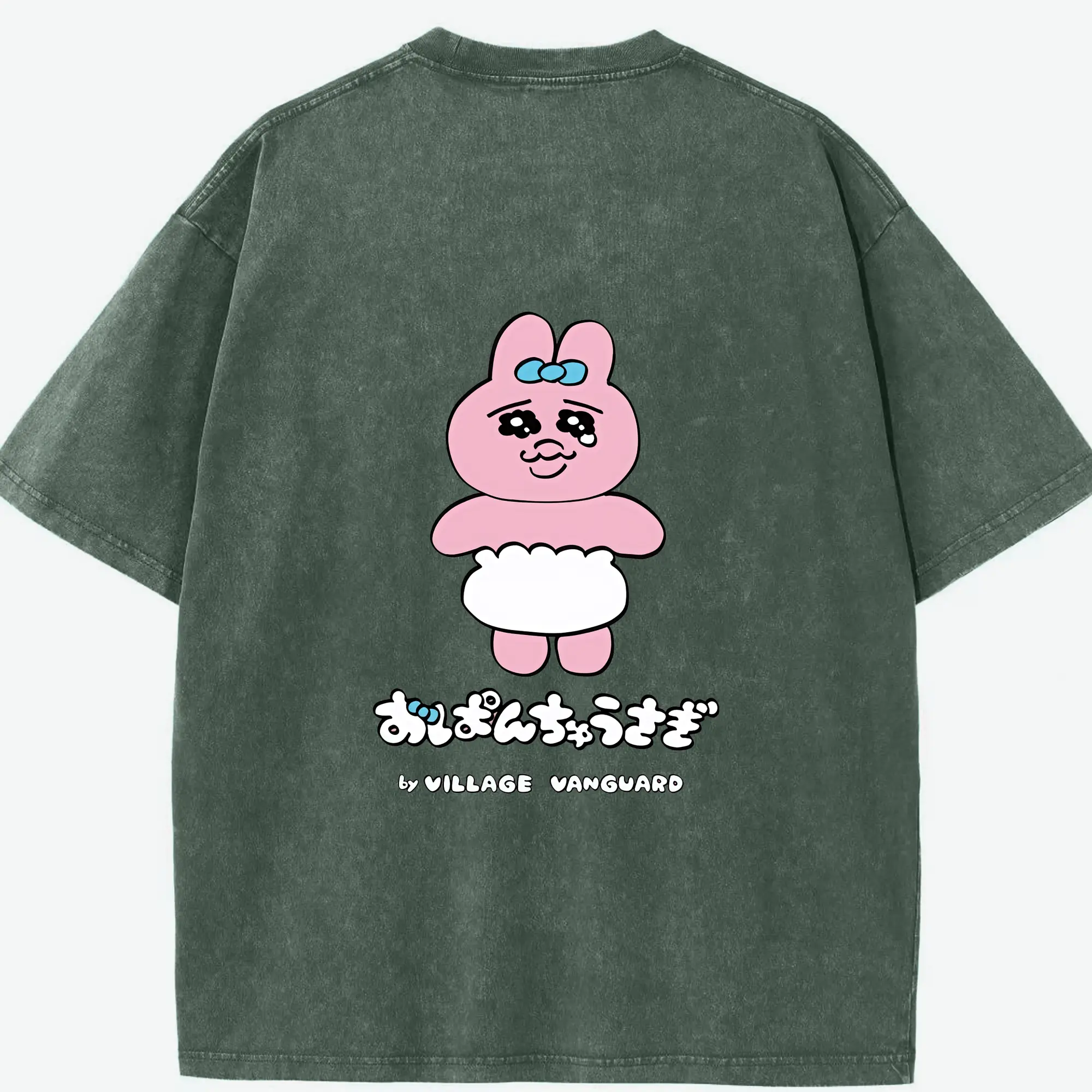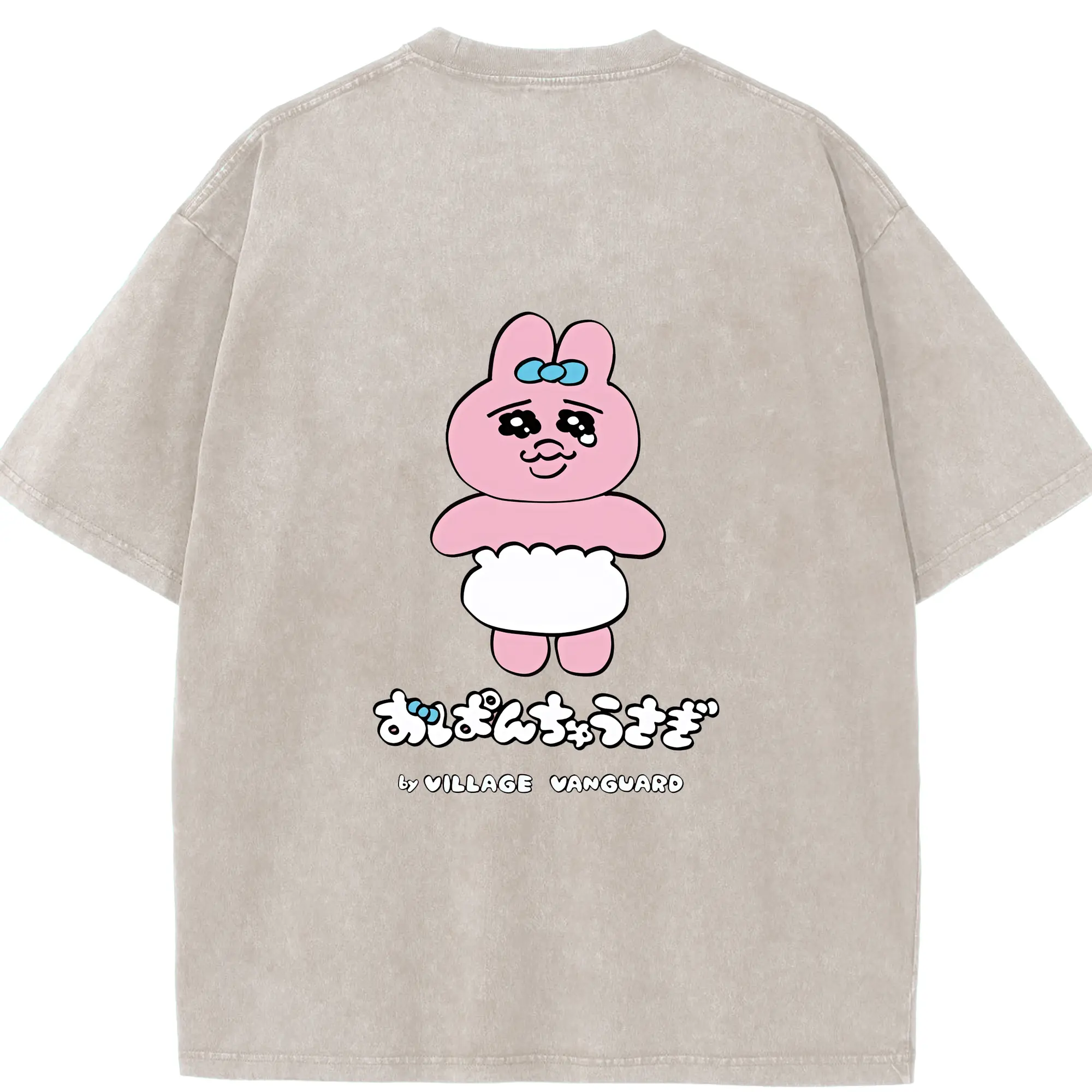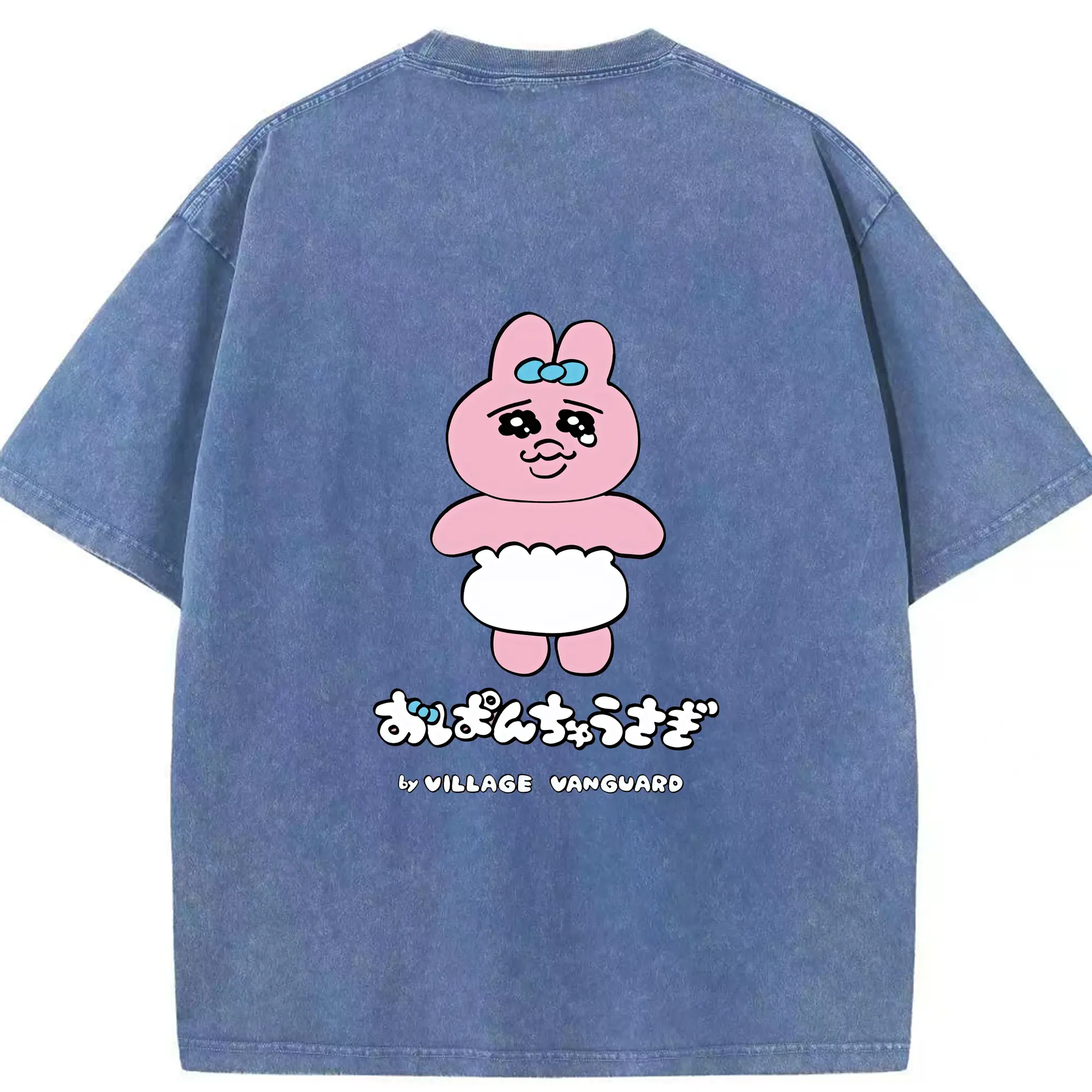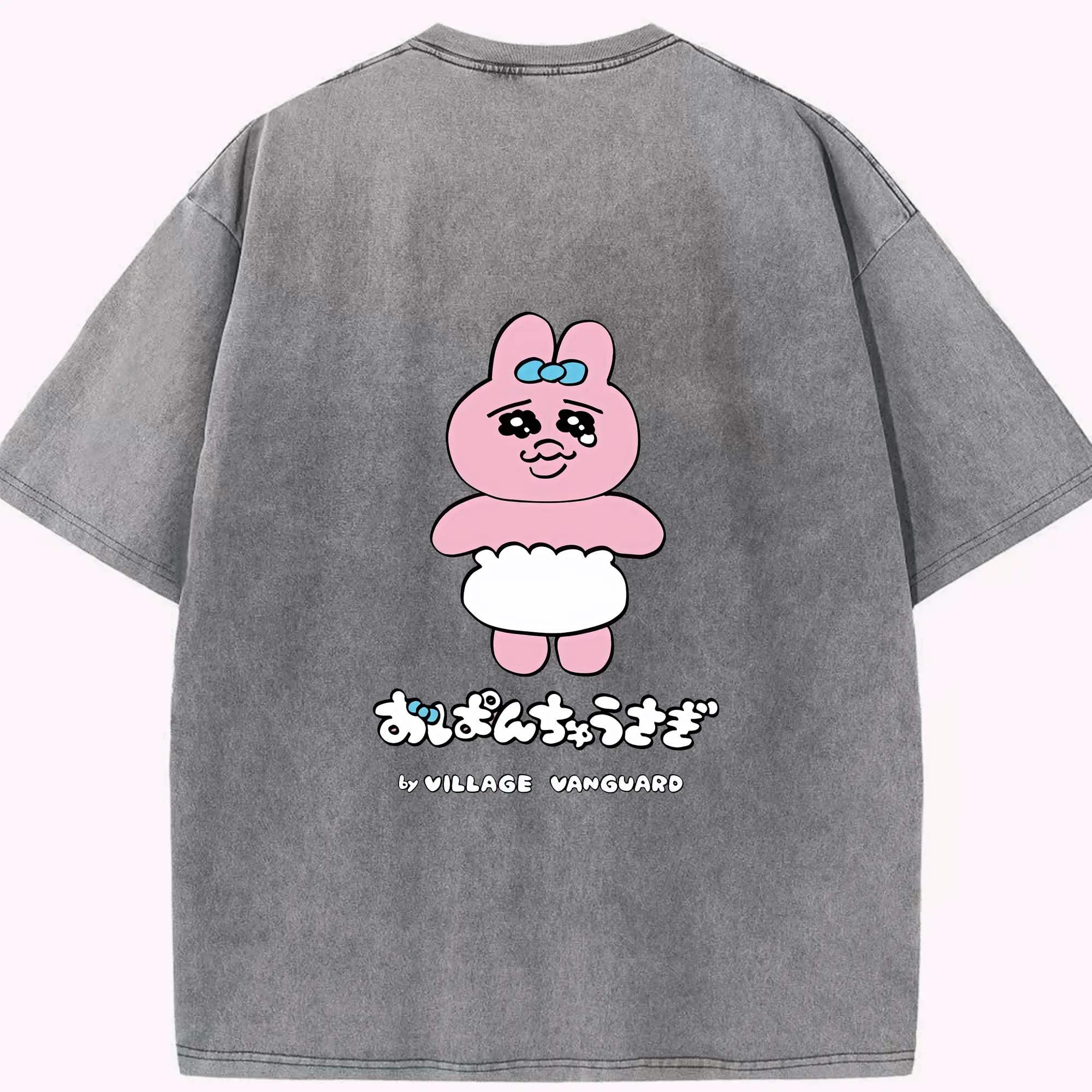 おぱんちゅうさぎ グッズ おぱんちゅうさぎ - 綿100% ヴィンテージ風 半袖Tシャツ ・ フロントプリント ・ 柔らか肌触り ・ 通気性 快適 ・ スポーツ カジュアル 外出用