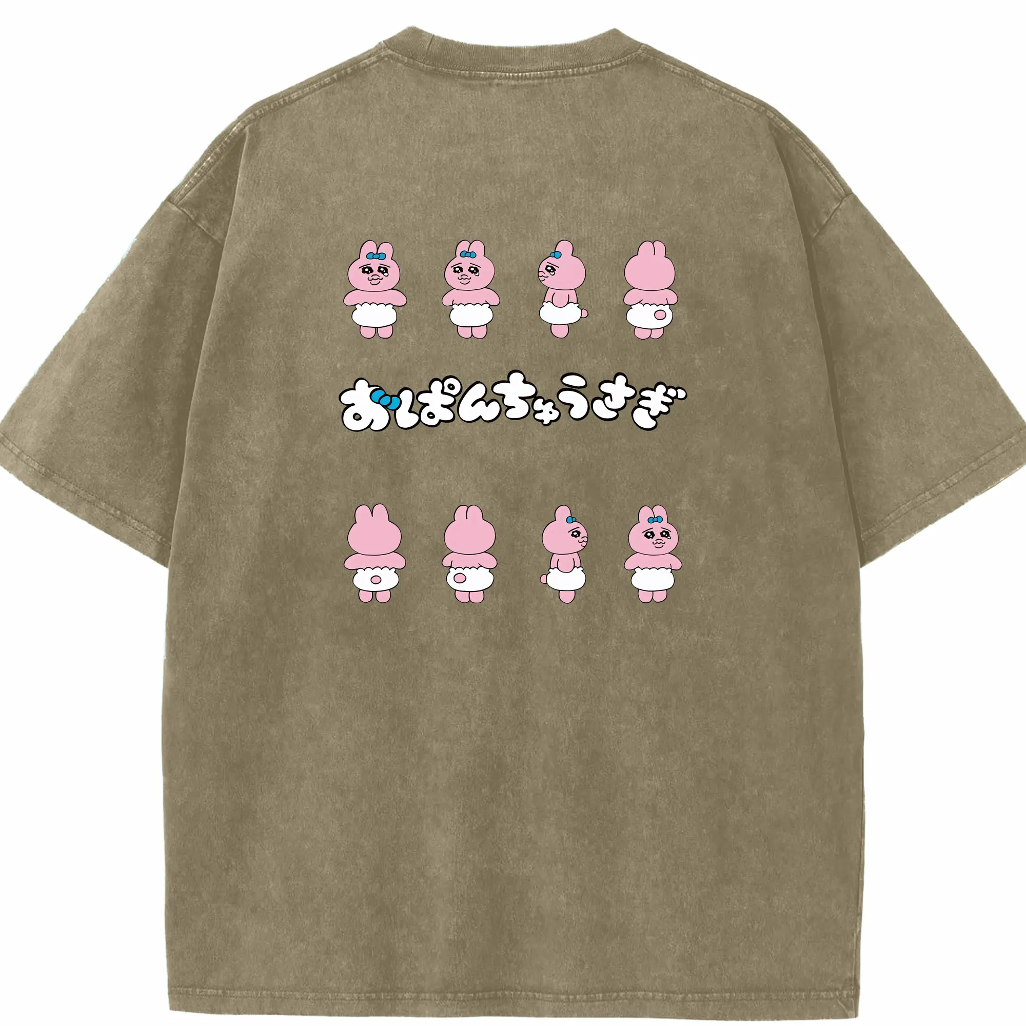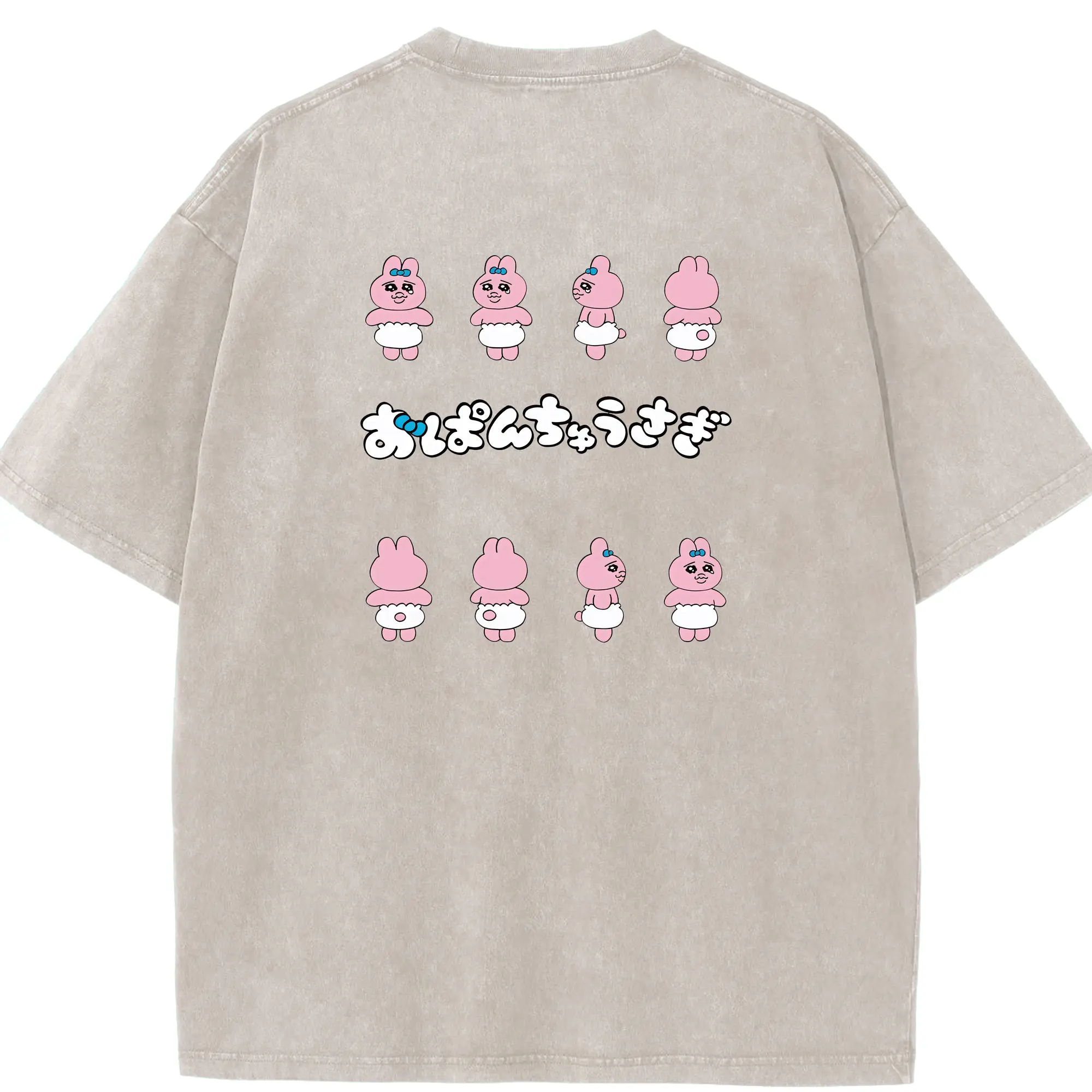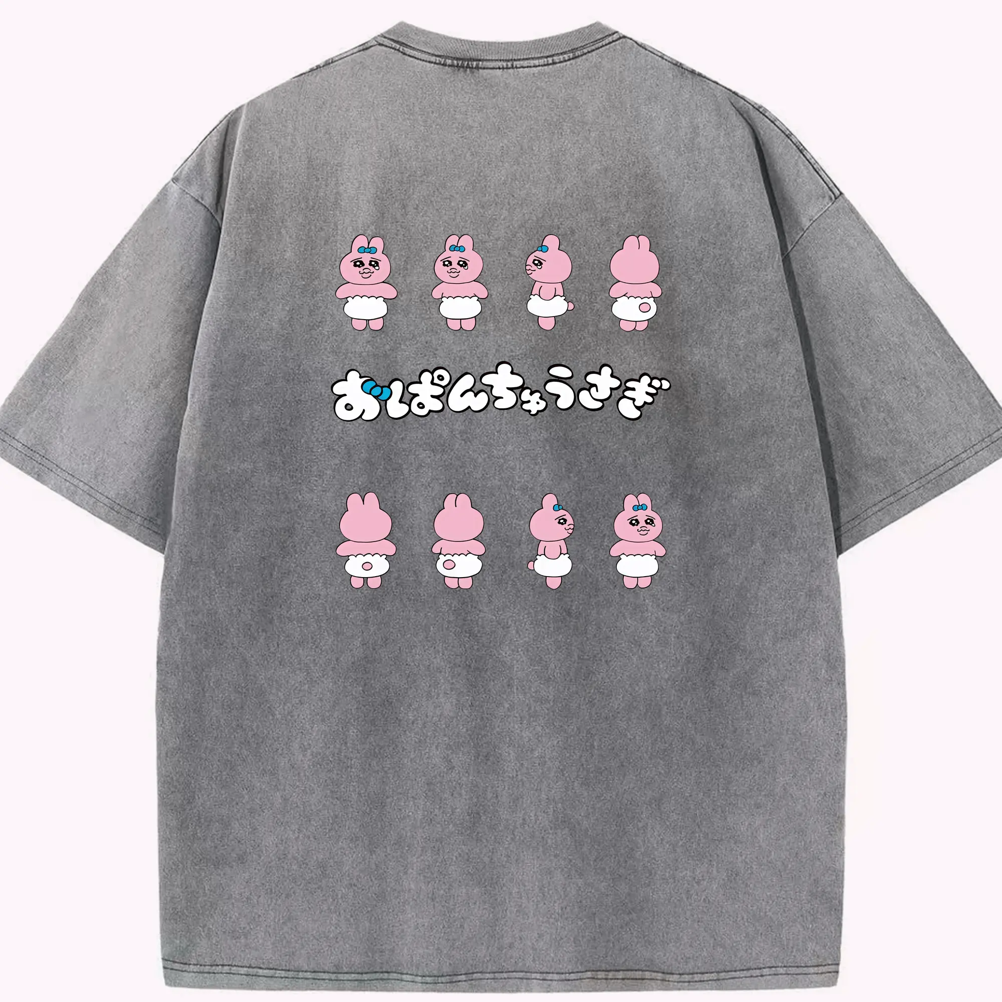 おぱんちゅうさぎ グッズ おぱんちゅうさぎ - 綿100% ヴィンテージ風 半袖Tシャツ ・ フロントプリント ・ 柔らか肌触り ・ 通気性 快適 ・ スポーツ カジュアル 外出用