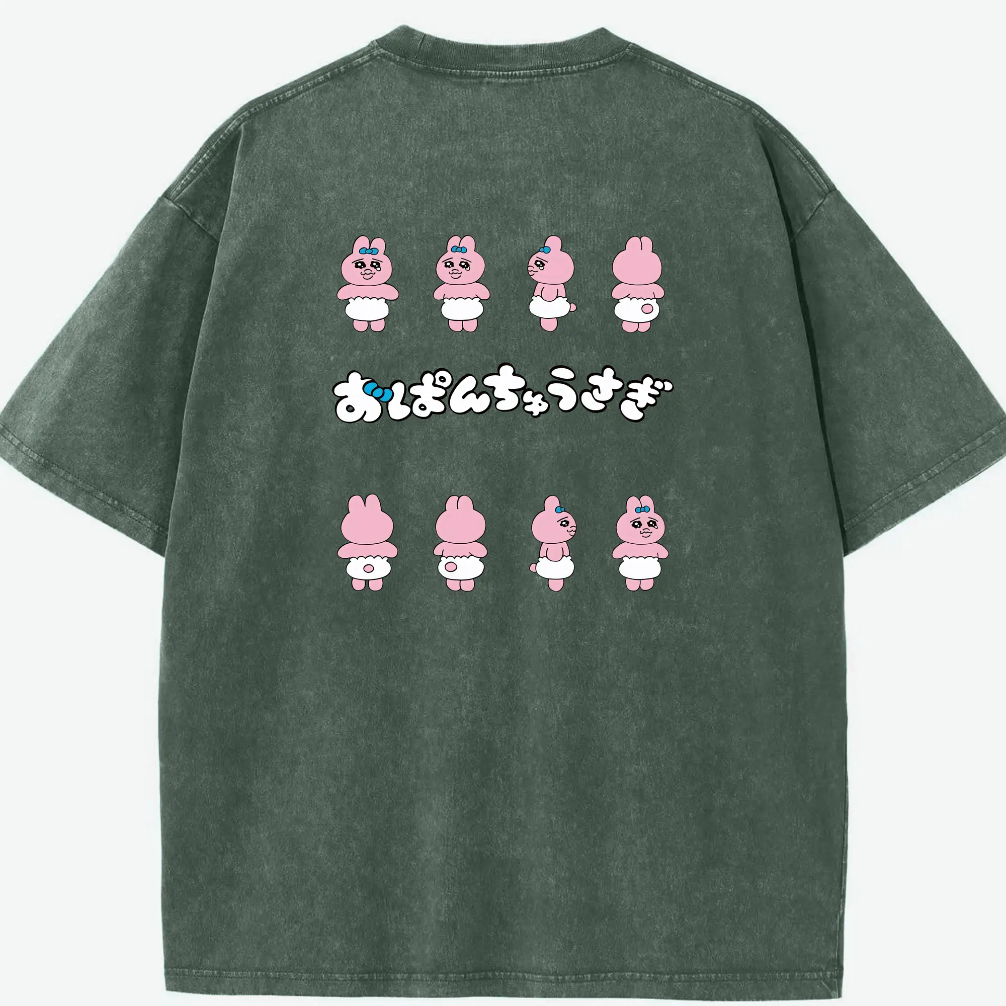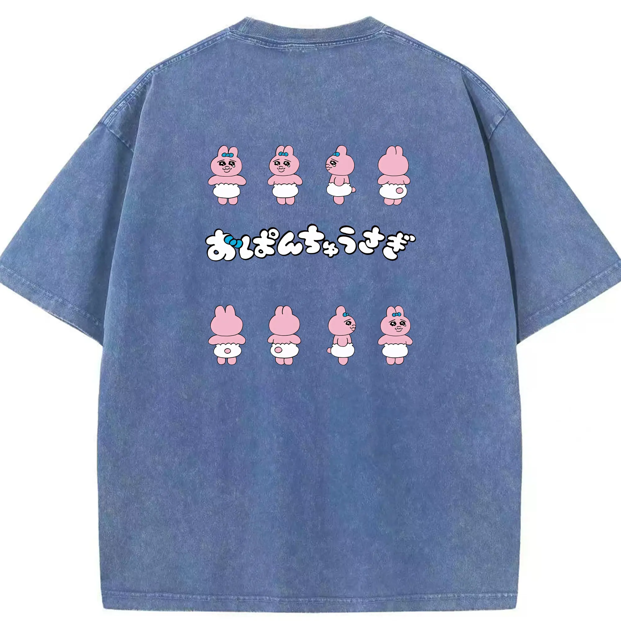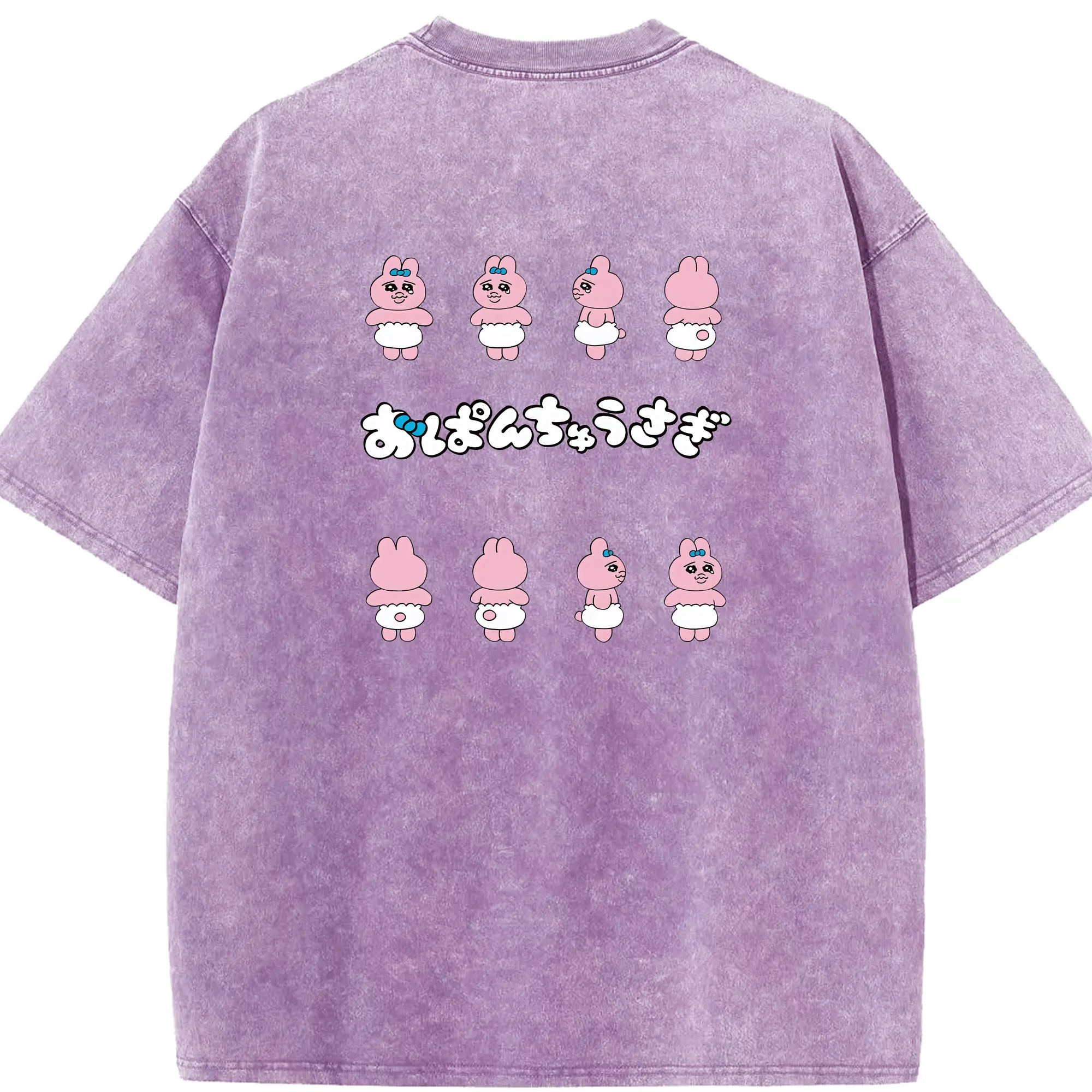 おぱんちゅうさぎ グッズ おぱんちゅうさぎ - 綿100% ヴィンテージ風 半袖Tシャツ ・ フロントプリント ・ 柔らか肌触り ・ 通気性 快適 ・ スポーツ カジュアル 外出用