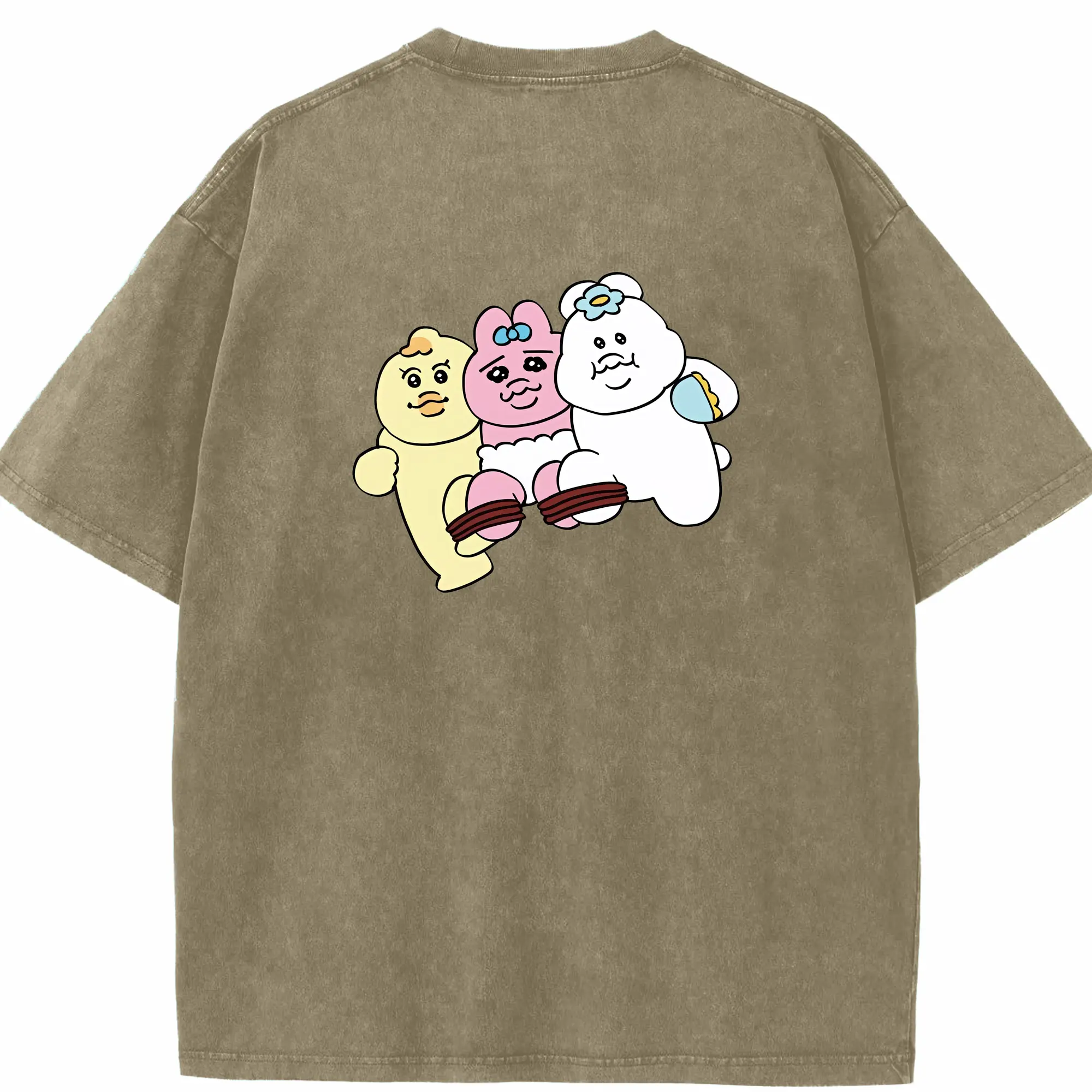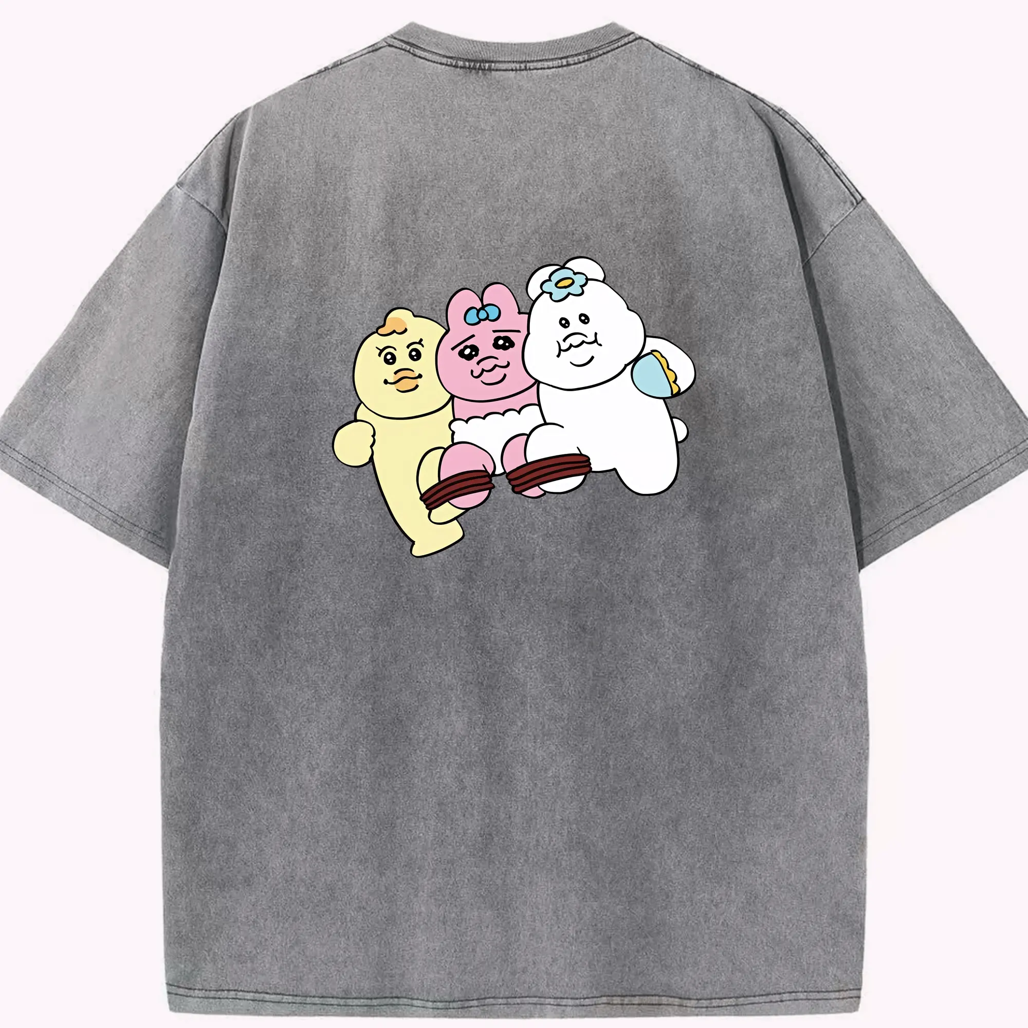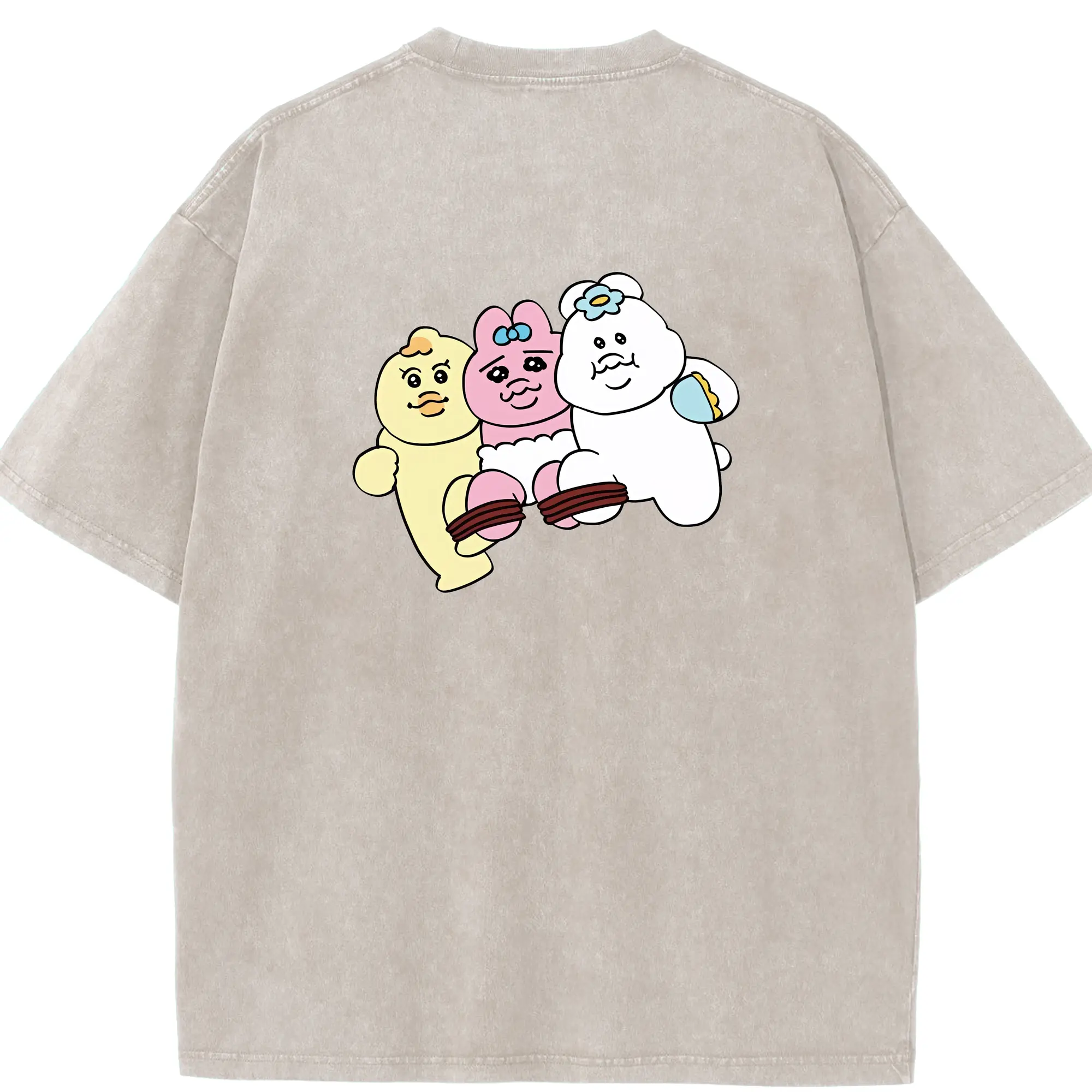 おぱんちゅうさぎ グッズ おぱんちゅうさぎ - 綿100% ヴィンテージ風 半袖Tシャツ ・ フロントプリント ・ 柔らか肌触り ・ 通気性 快適 ・ スポーツ カジュアル 外出用