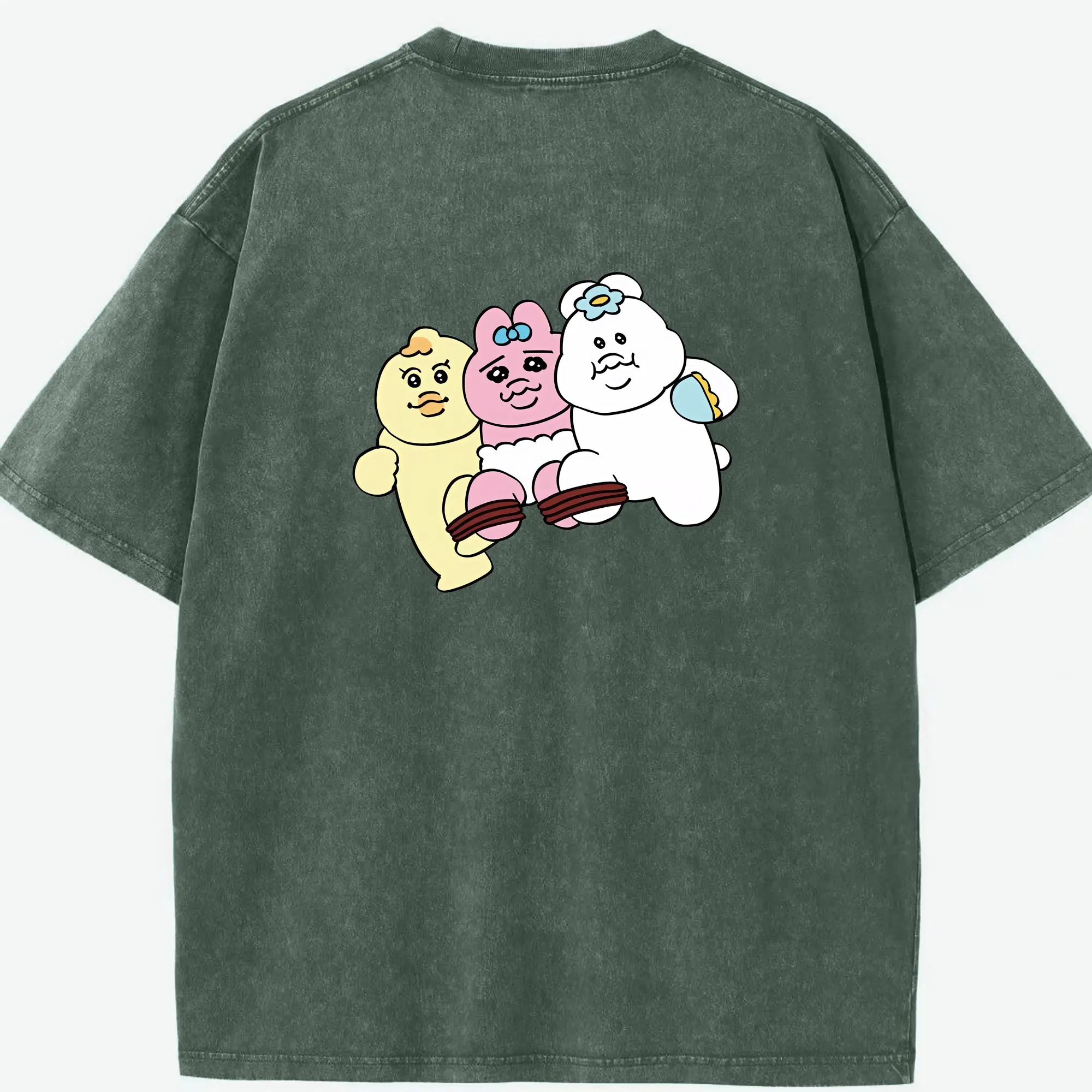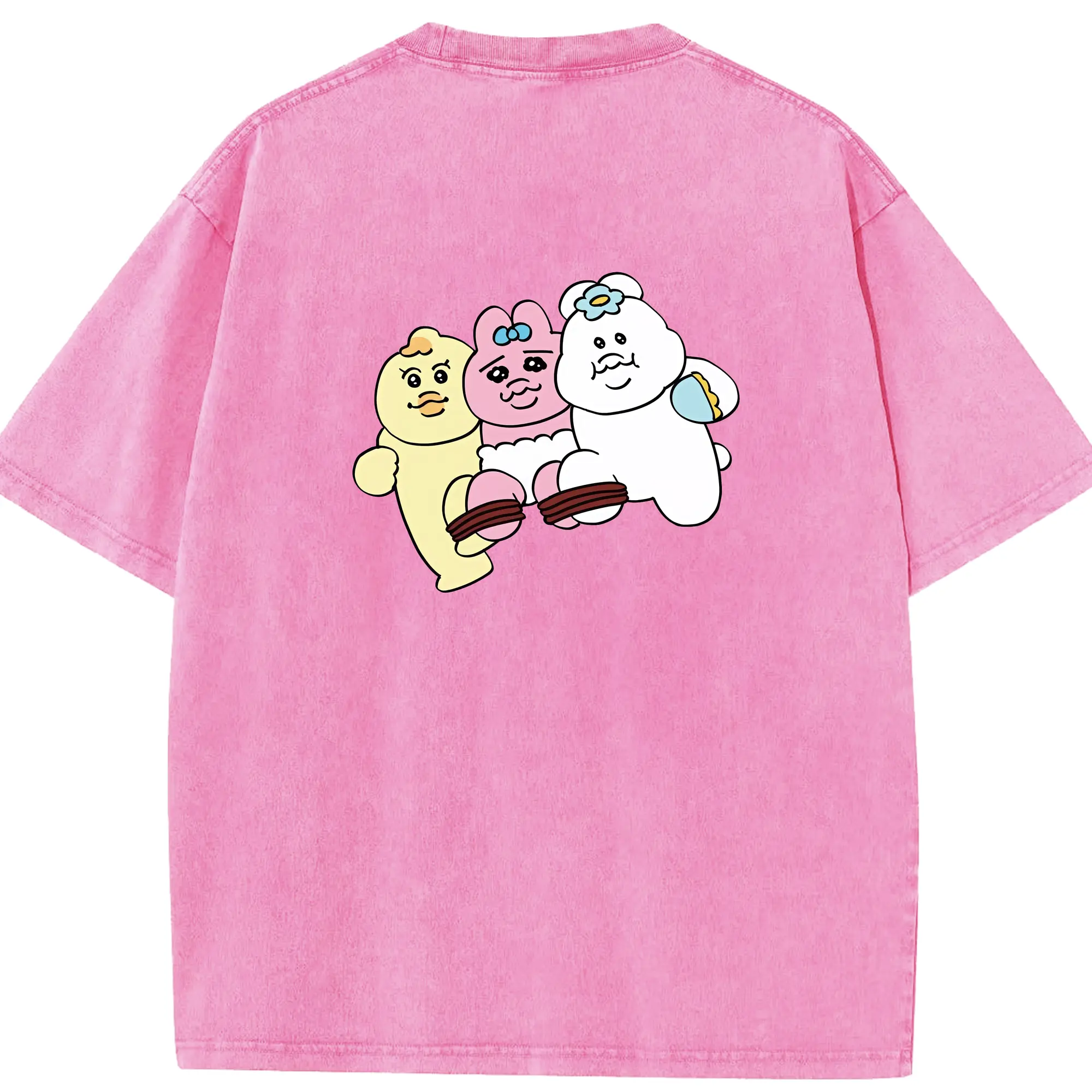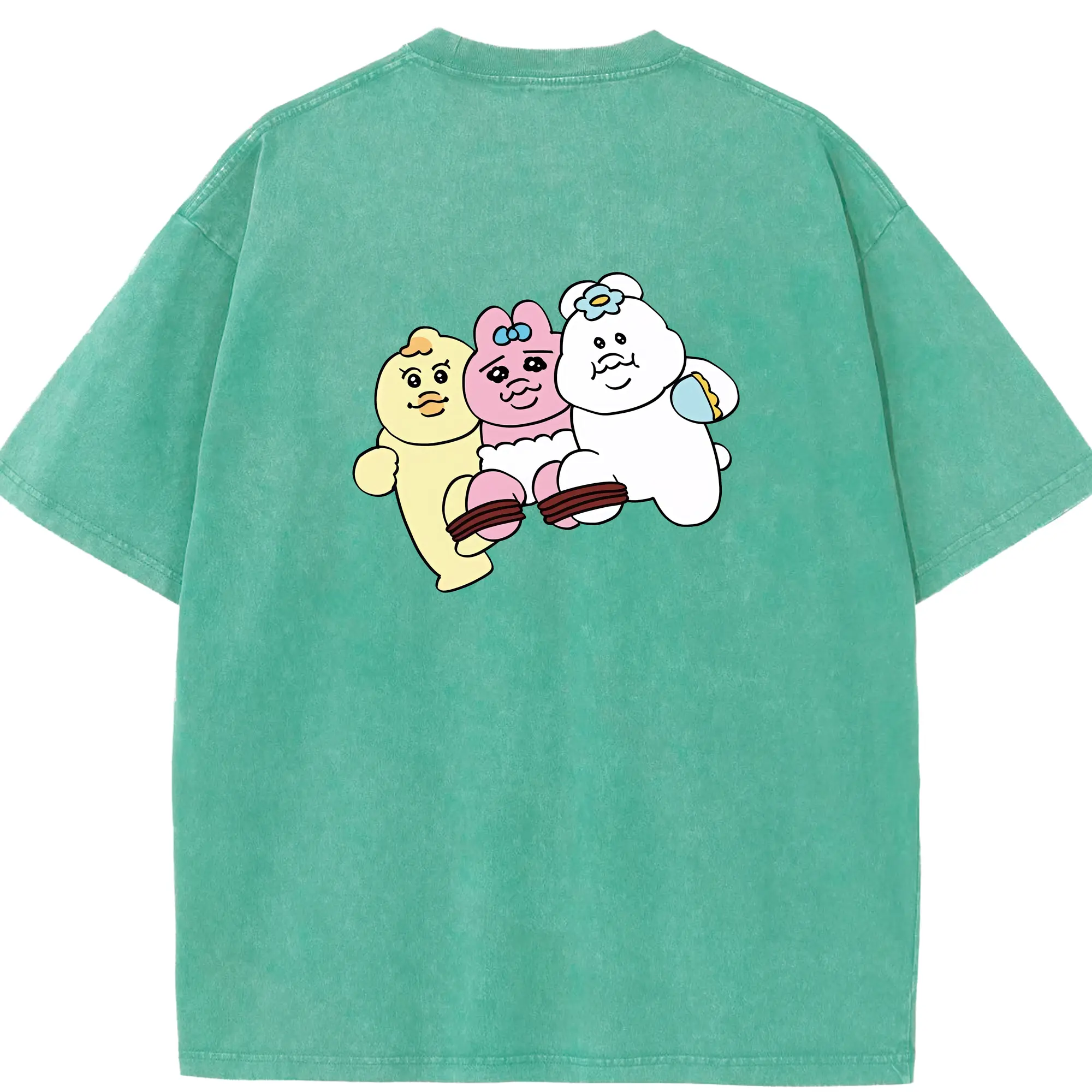 おぱんちゅうさぎ グッズ おぱんちゅうさぎ - 綿100% ヴィンテージ風 半袖Tシャツ ・ フロントプリント ・ 柔らか肌触り ・ 通気性 快適 ・ スポーツ カジュアル 外出用