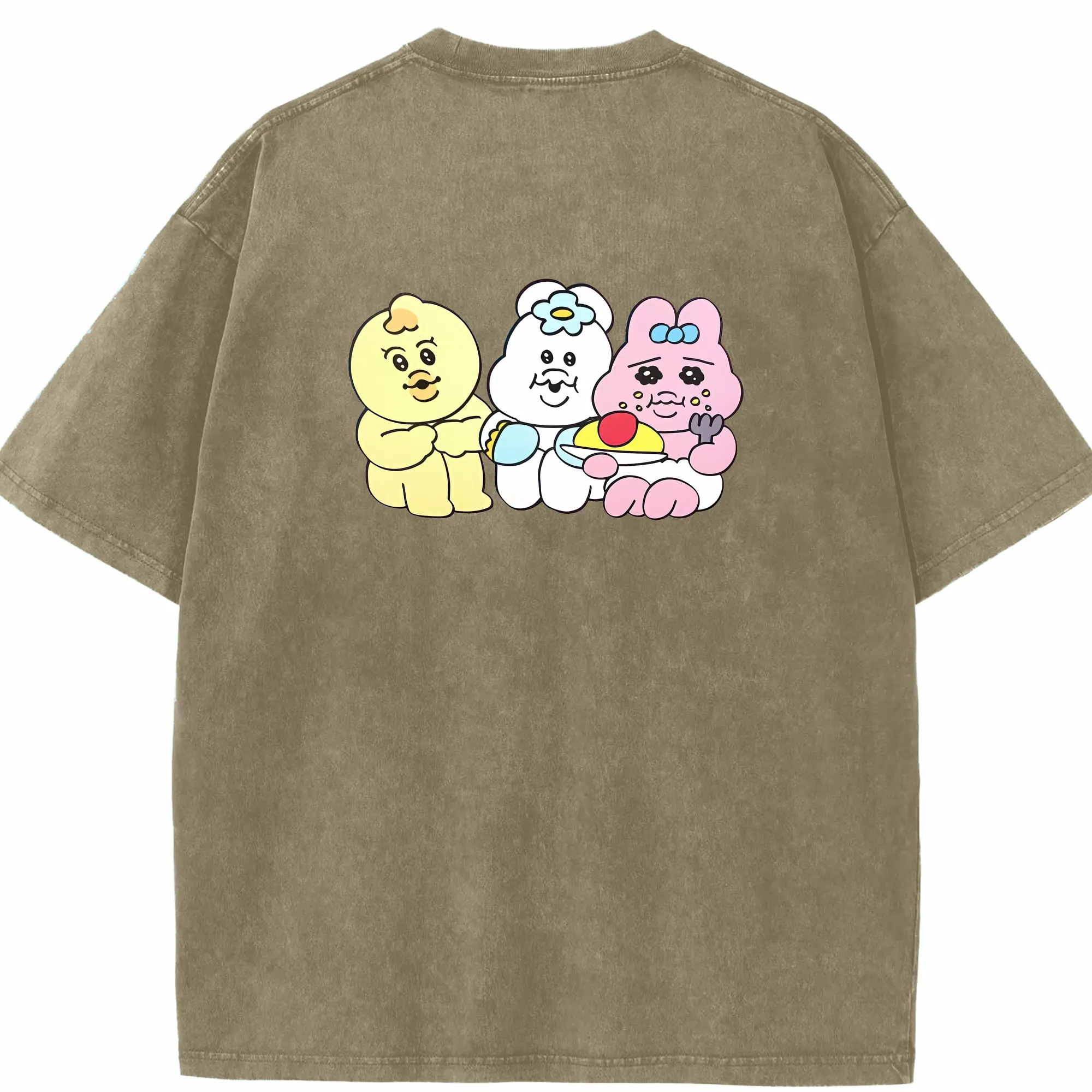 おぱんちゅうさぎ グッズ おぱんちゅうさぎ - 綿100% ヴィンテージ風 半袖Tシャツ ・ フロントプリント ・ 柔らか肌触り ・ 通気性 快適 ・ スポーツ カジュアル 外出用