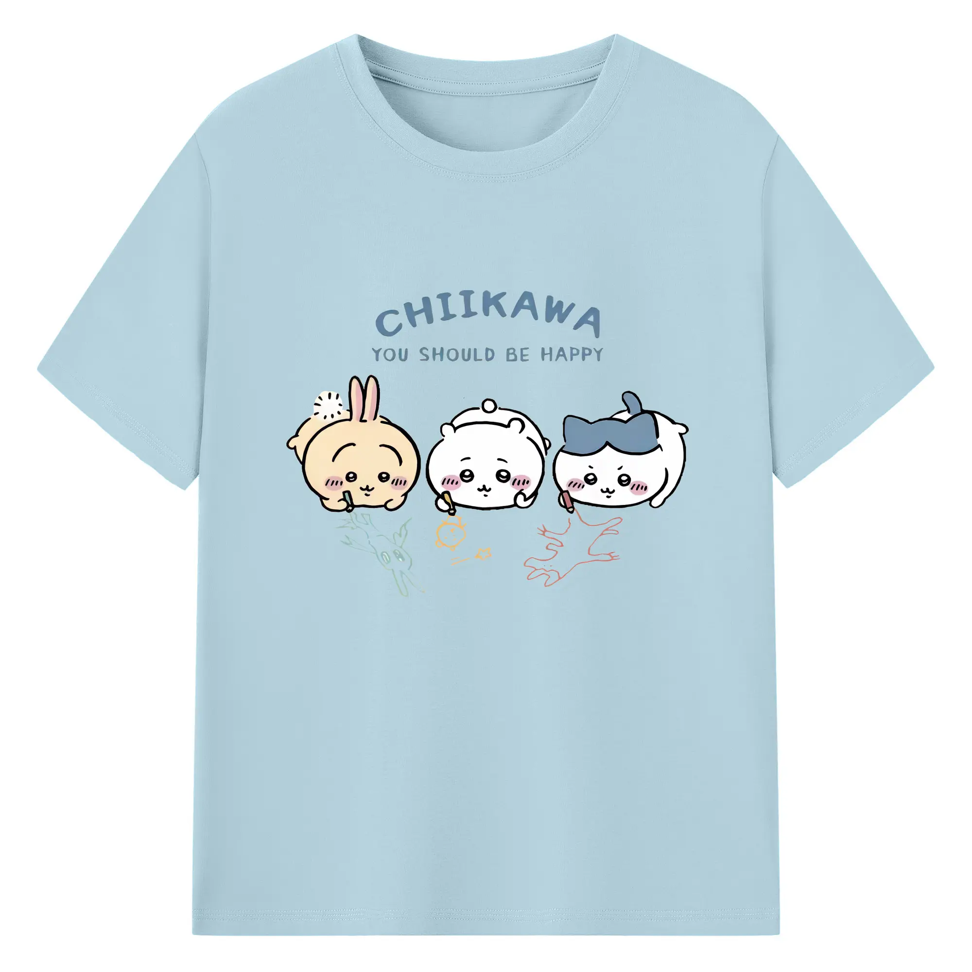 ちい が わ グッズ ちいかわ - 綿100% 半袖Tシャツ ・ バックプリント ・ 快適 通気性 ・ 日常使い 散歩 スポーツ用