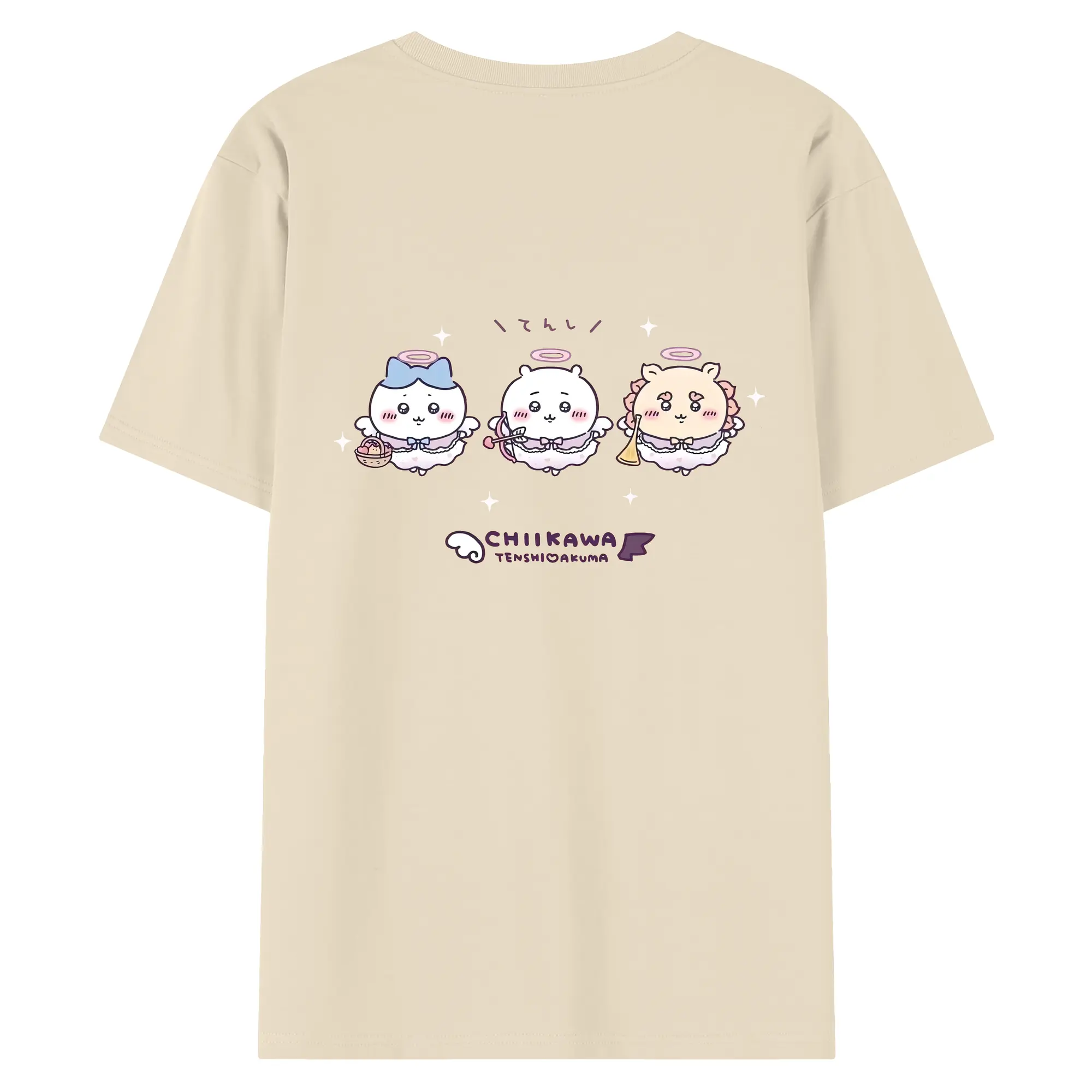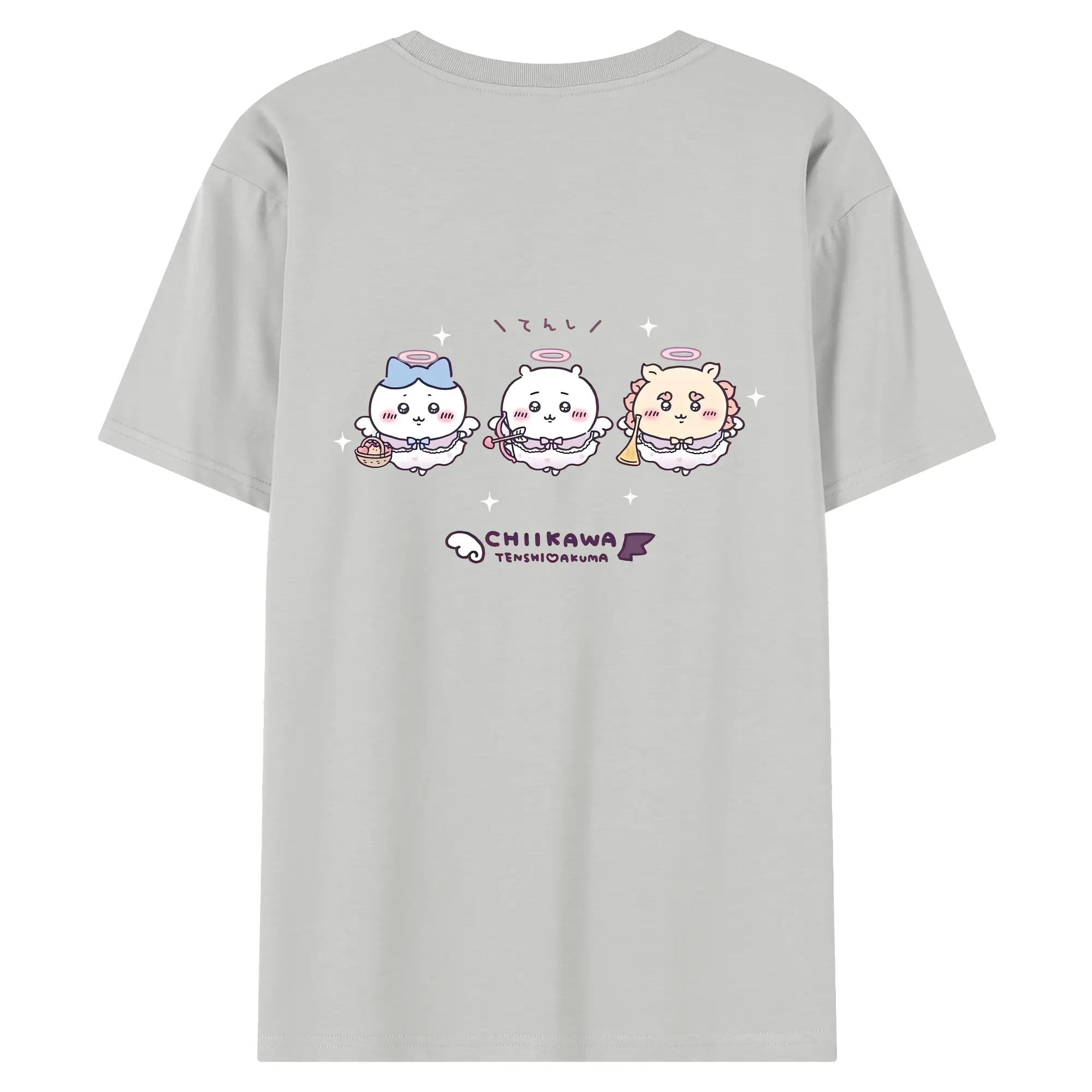 ちい が わ グッズ ちいかわ - 綿100% ヴィンテージ風 半袖Tシャツ ・ 背面プリント ・ 柔らか肌触り ・ 通気性 快適 ・ スポーツ カジュアル 外出用