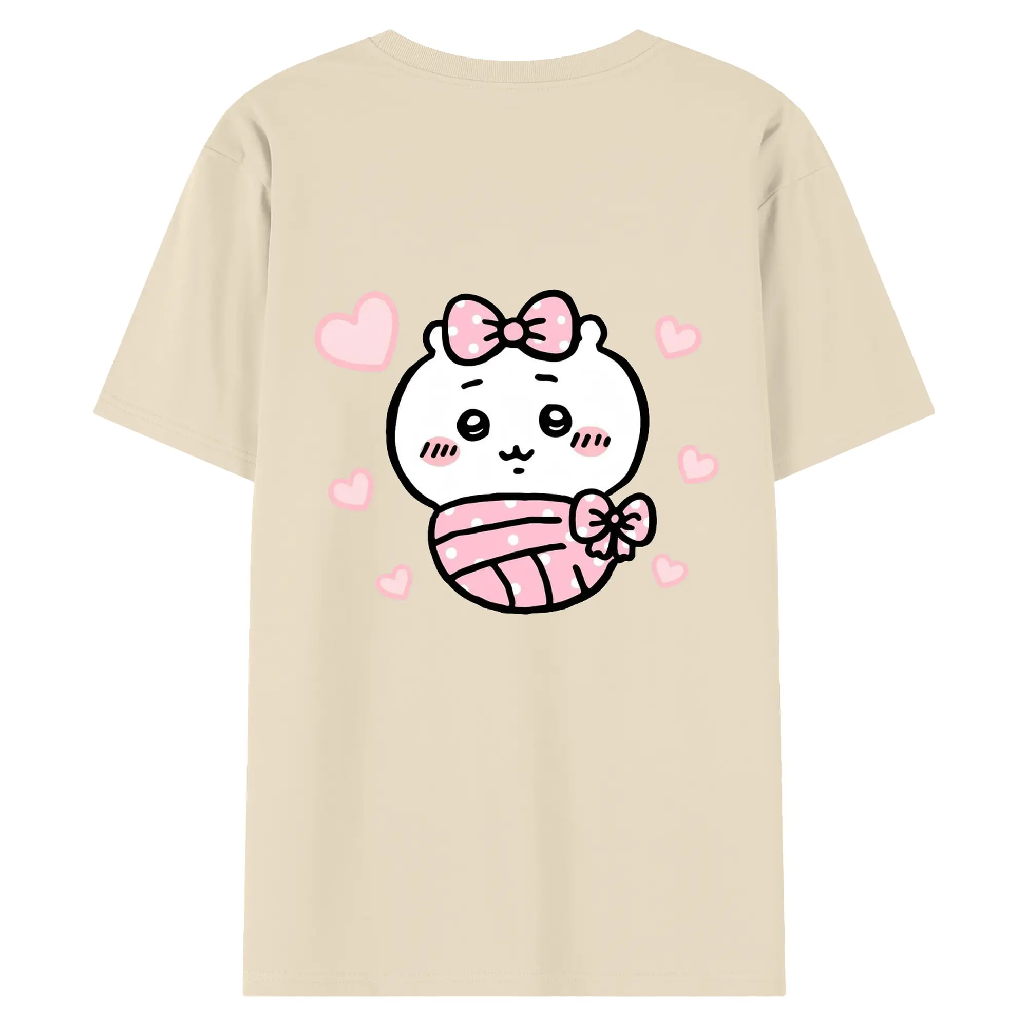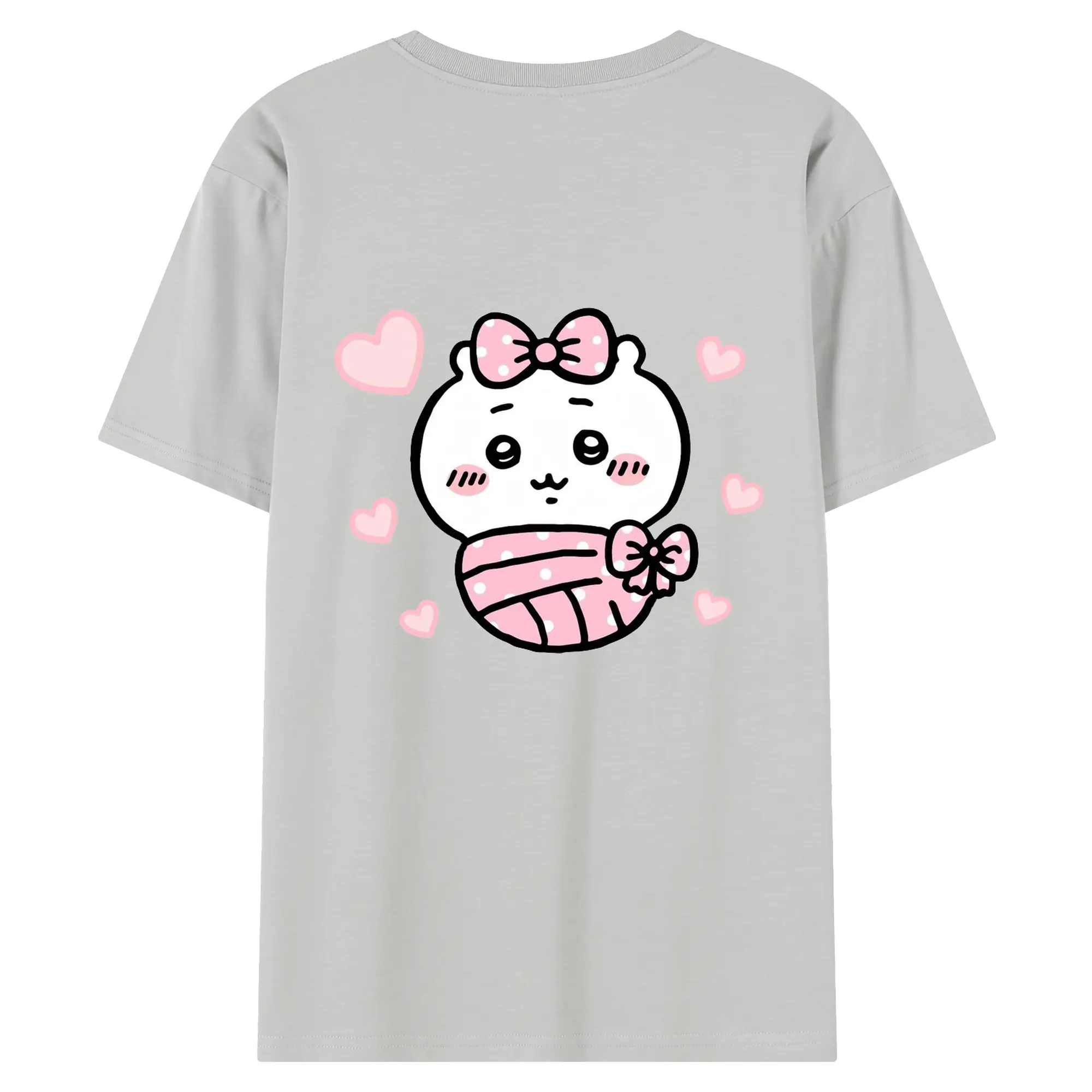 ちい が わ グッズ ちいかわ - 綿100% ヴィンテージ風 半袖Tシャツ ・ 背面プリント ・ 柔らか肌触り ・ 通気性 快適 ・ スポーツ カジュアル 外出用