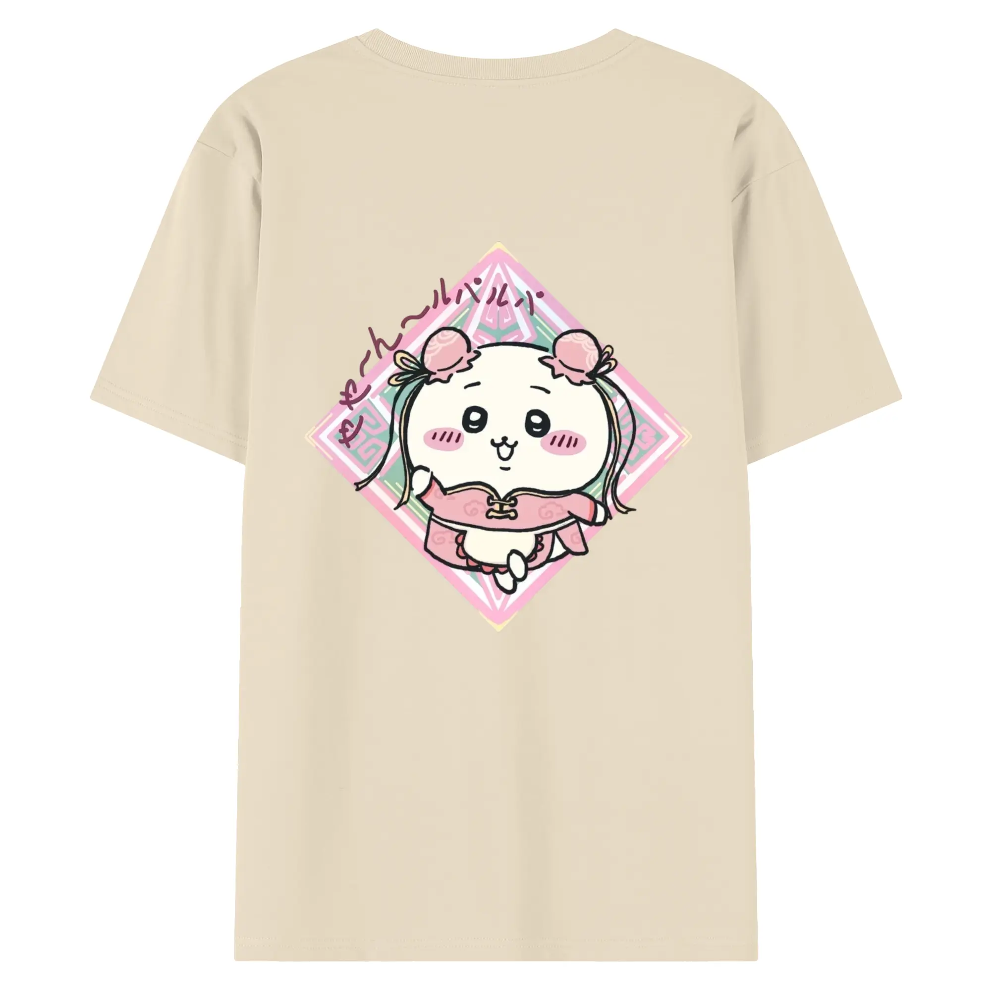 ちい が わ グッズ ちいかわ - 綿100% ヴィンテージ風 半袖Tシャツ ・ 背面プリント ・ 柔らか肌触り ・ 通気性 快適 ・ スポーツ カジュアル 外出用
