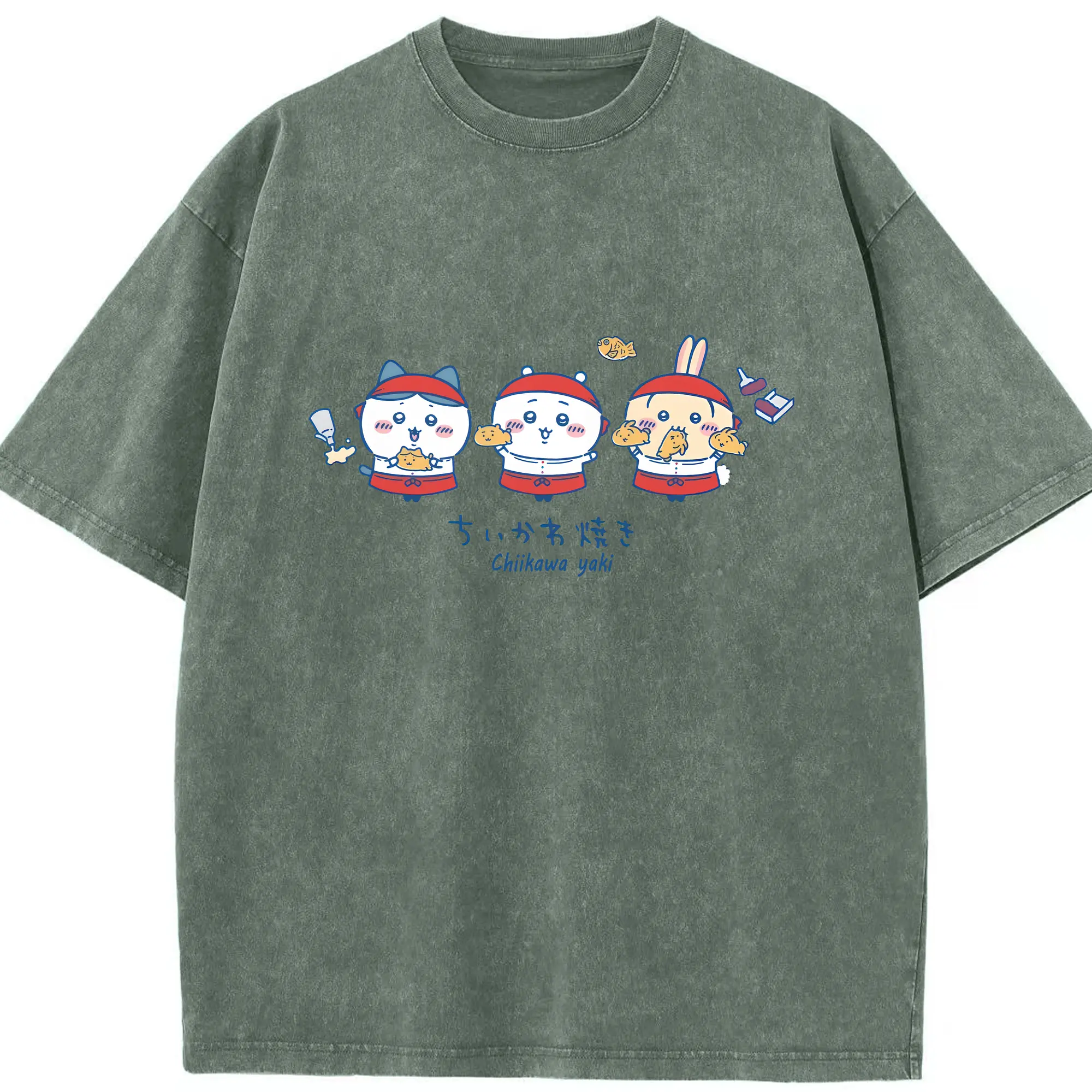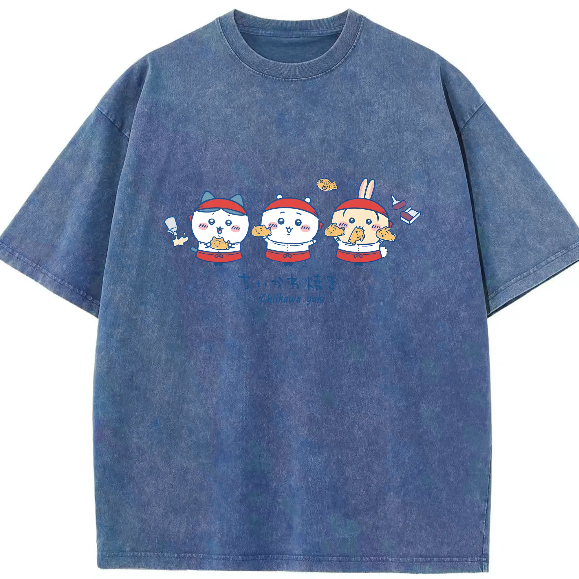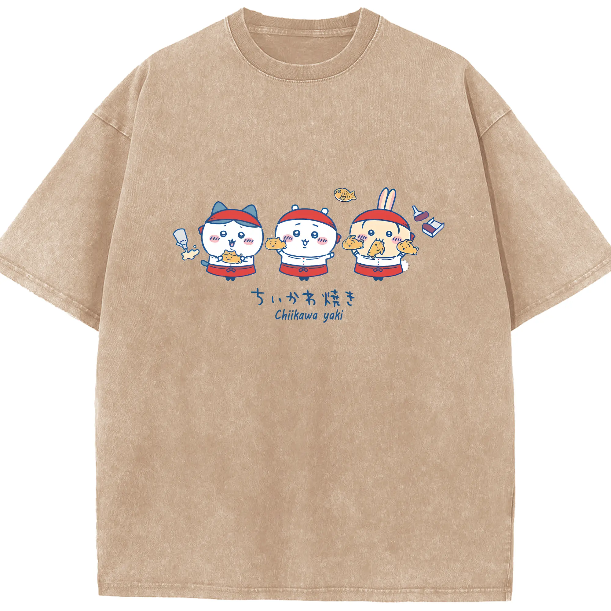 ちい が わ グッズ ちいかわ - 綿100% ヴィンテージ風 半袖Tシャツ ・ 背面プリント ・ 柔らか肌触り ・ 通気性 快適 ・ スポーツ カジュアル 外出用