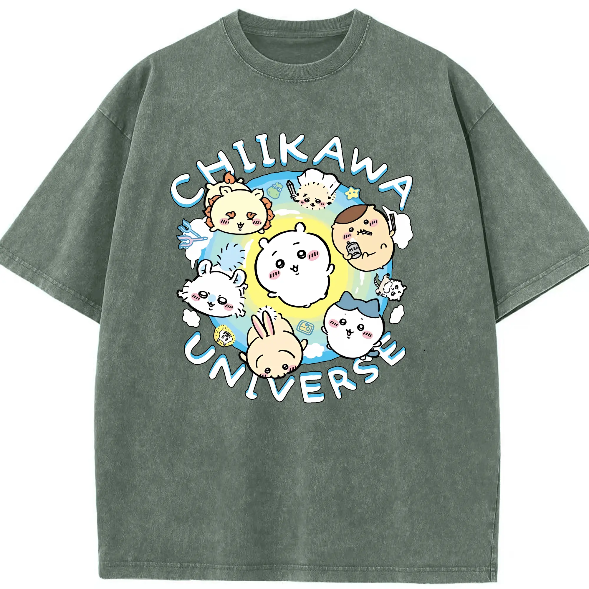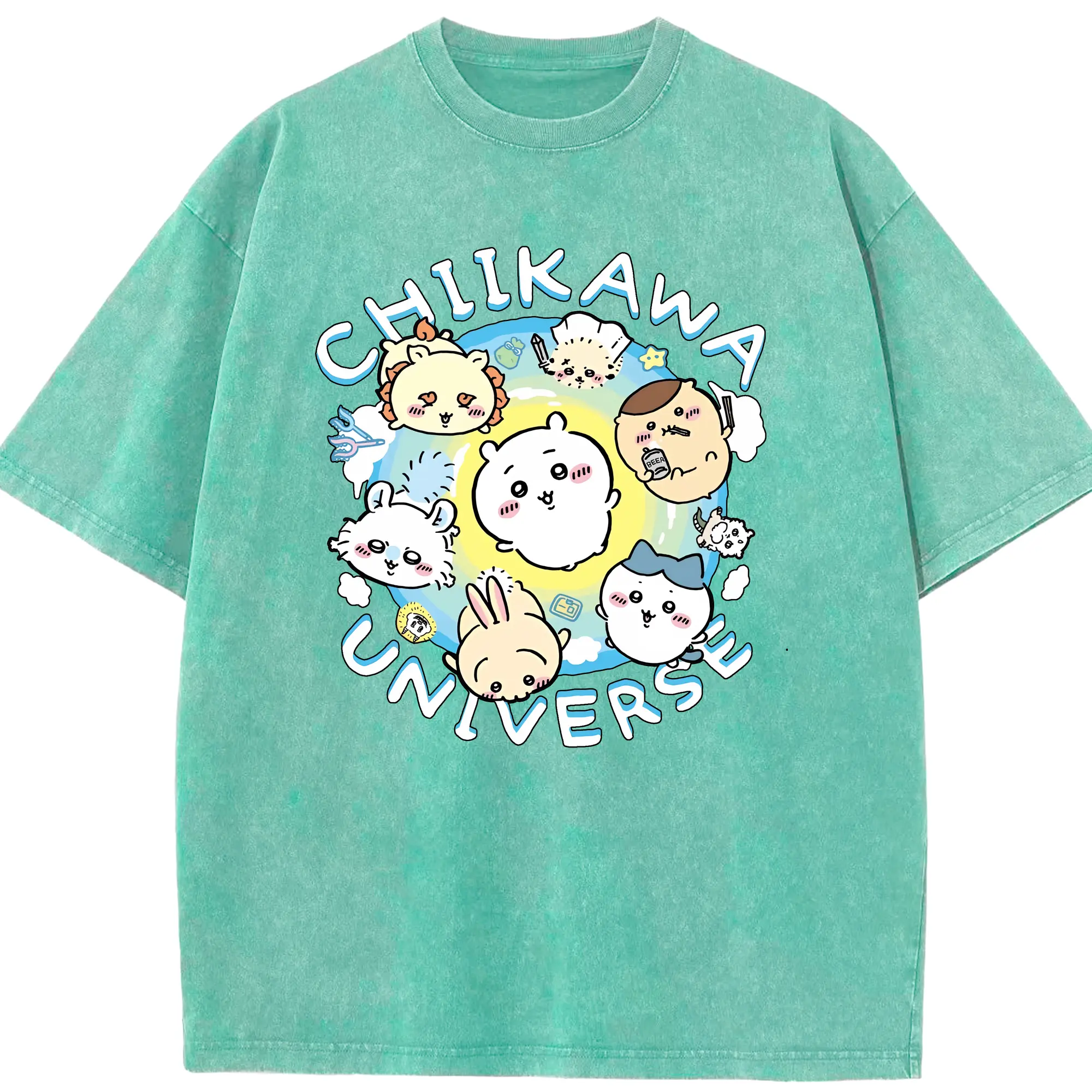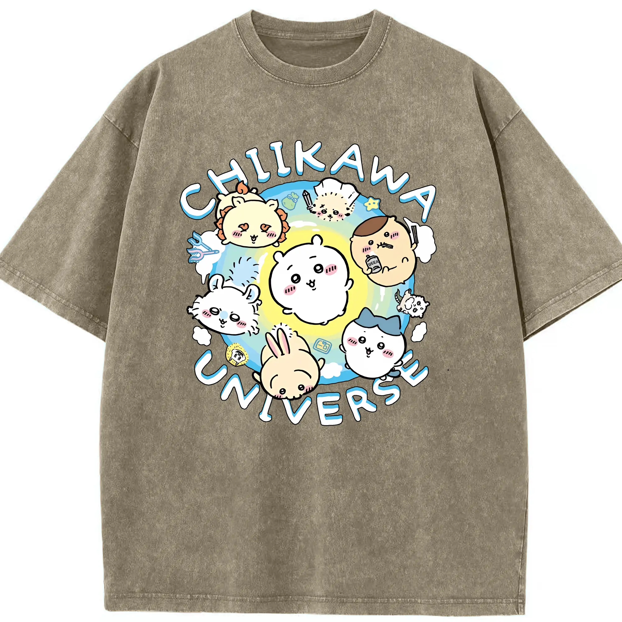 ちい が わ グッズ ちいかわ - 綿100% ヴィンテージ風 半袖Tシャツ ・ 背面プリント ・ 柔らか肌触り ・ 通気性 快適 ・ スポーツ カジュアル 外出用