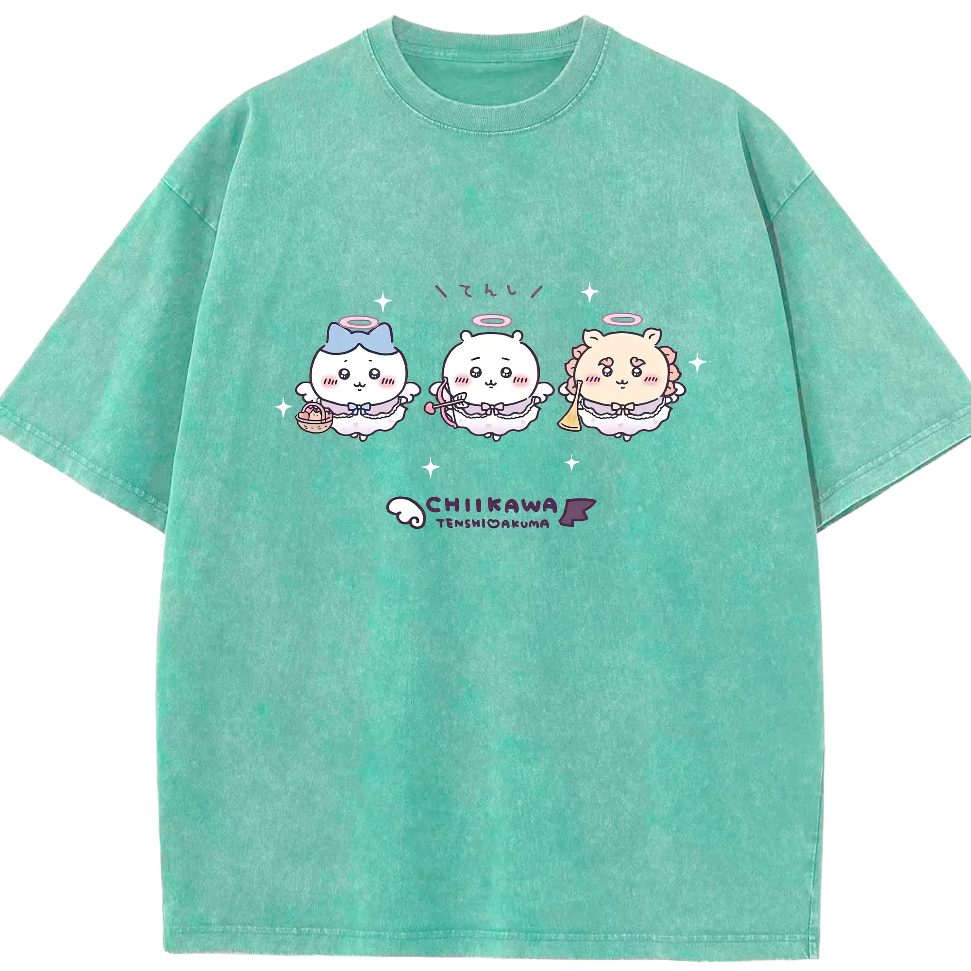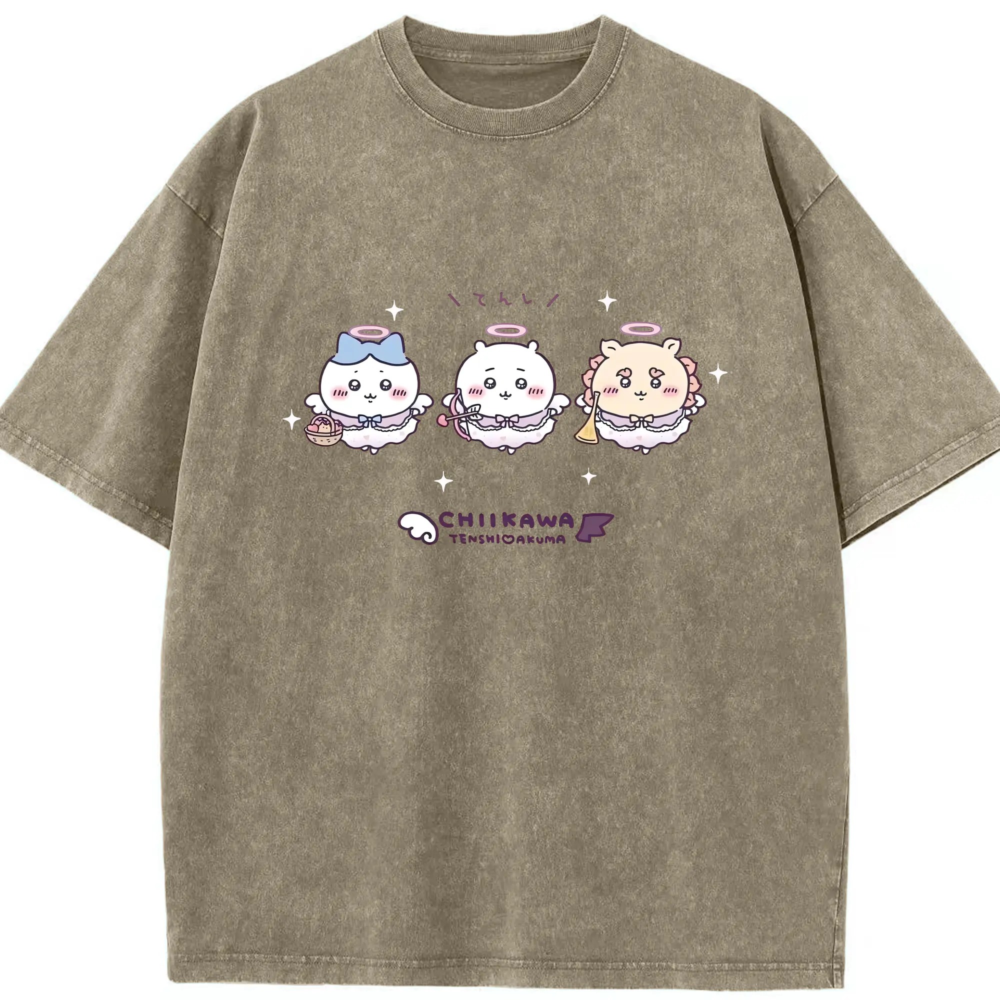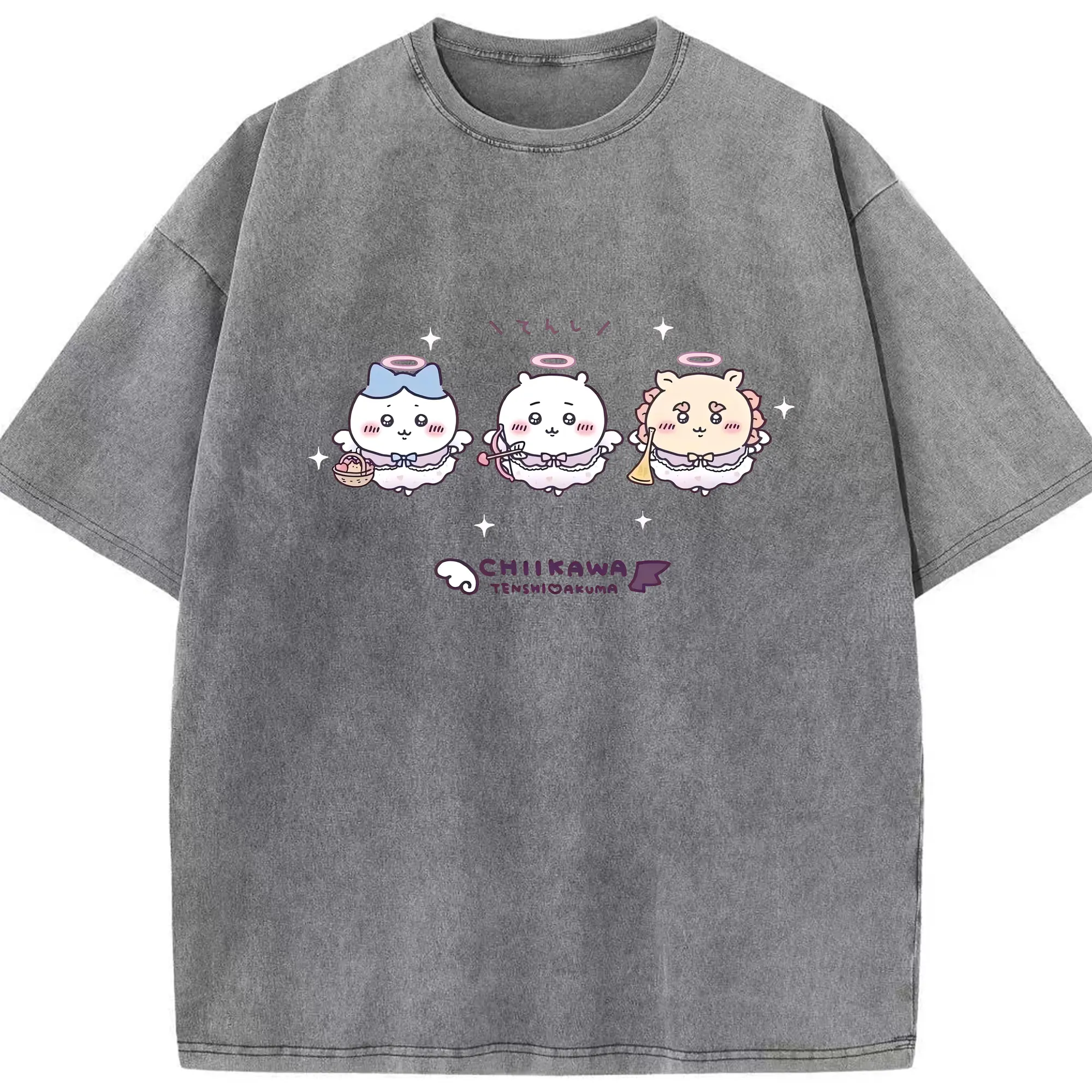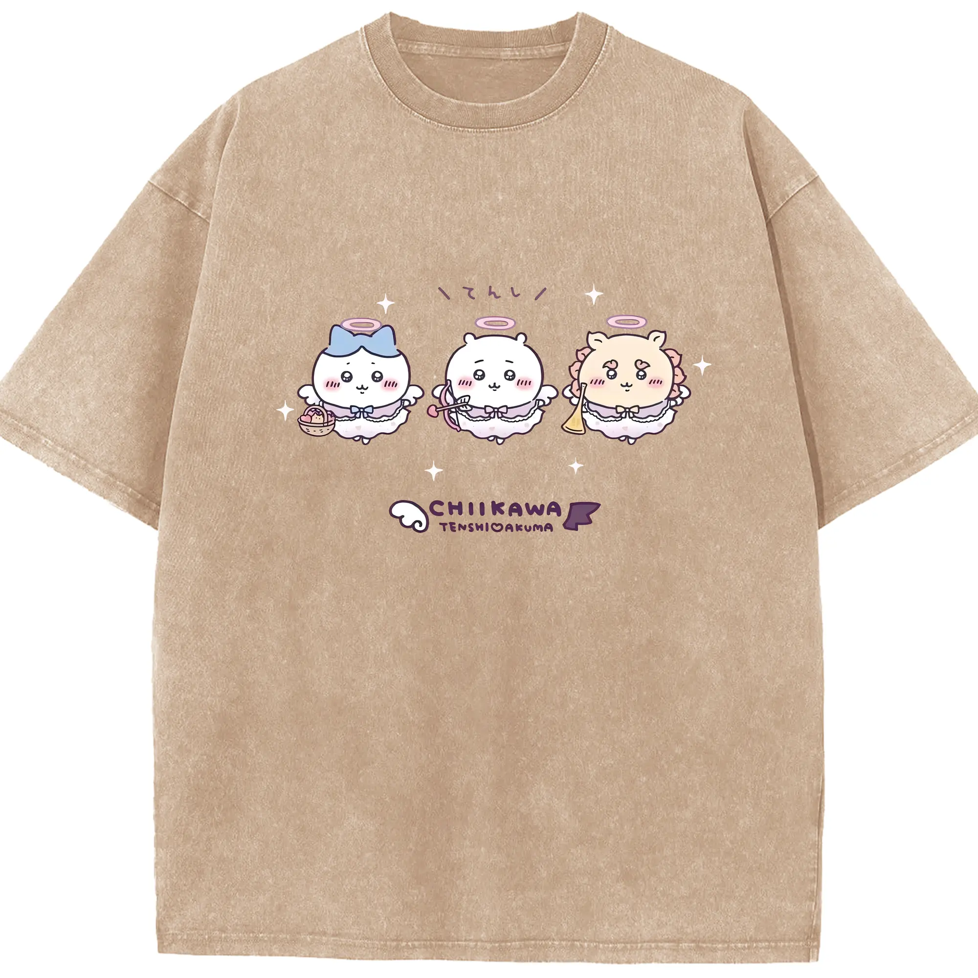 ちい が わ グッズ ちいかわ - 綿100% ヴィンテージ風 半袖Tシャツ ・ 背面プリント ・ 柔らか肌触り ・ 通気性 快適 ・ スポーツ カジュアル 外出用