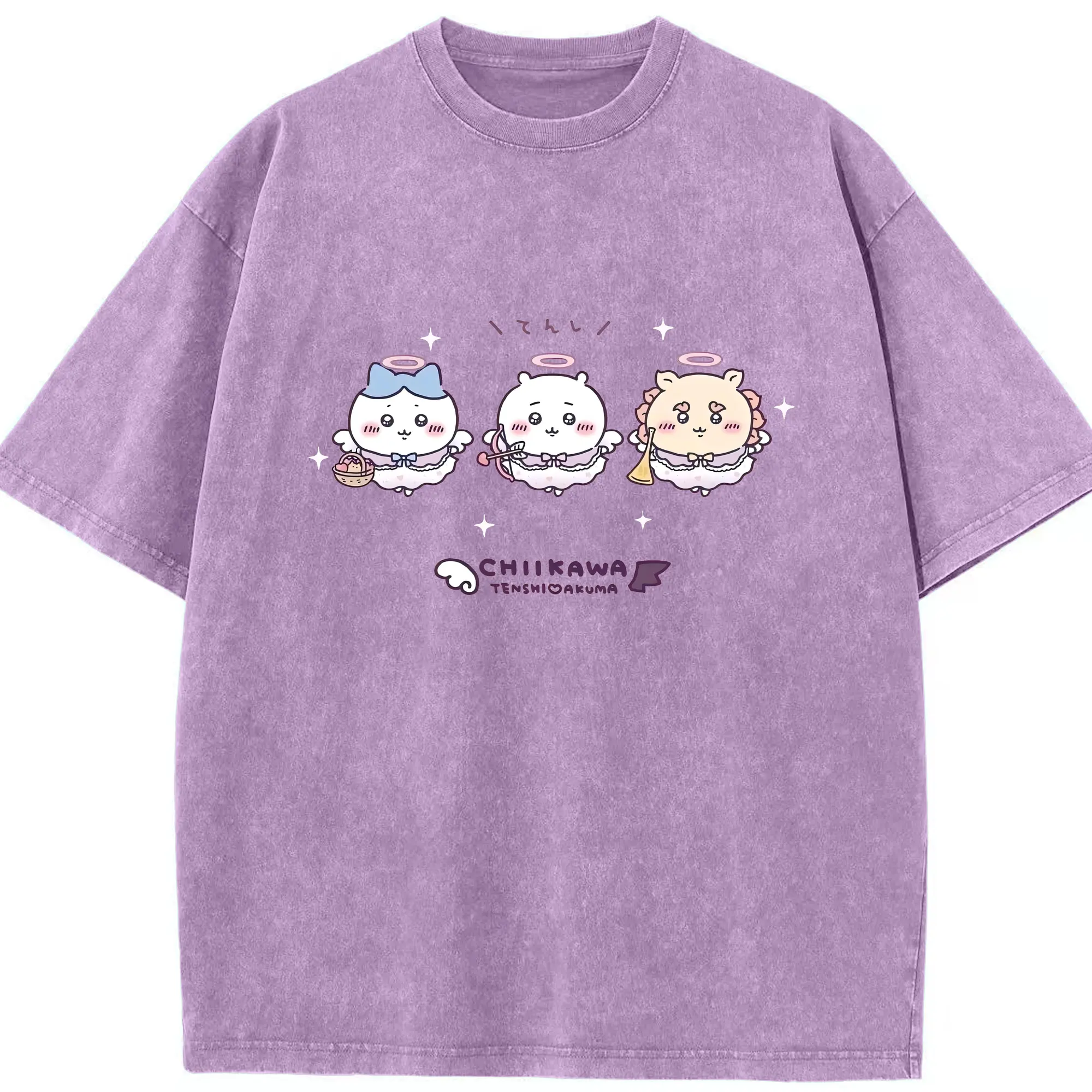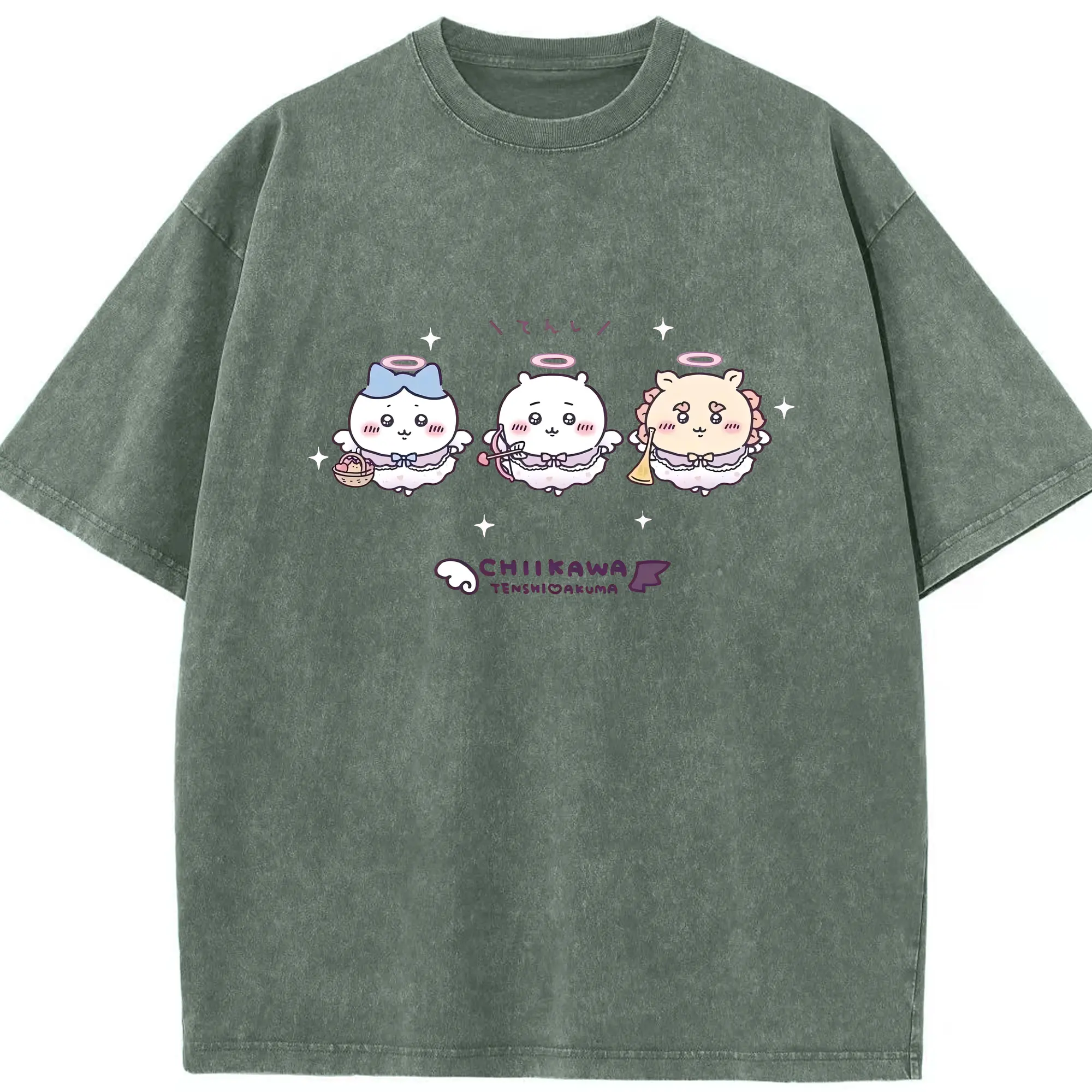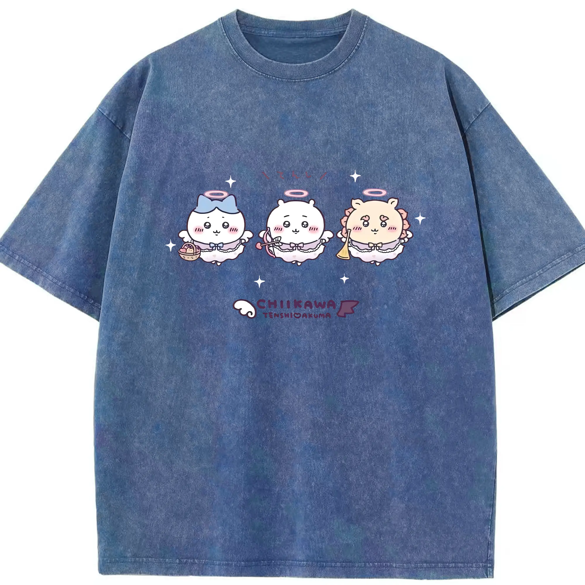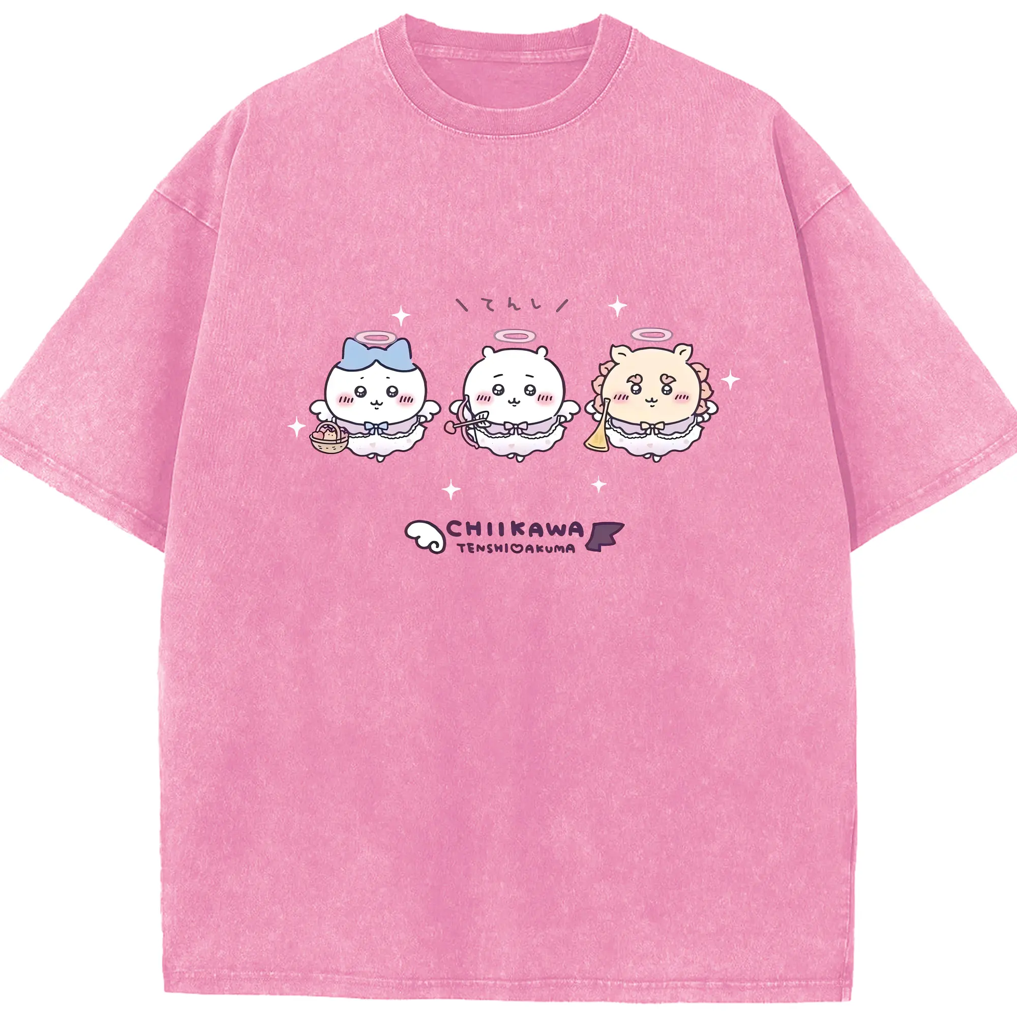 ちい が わ グッズ ちいかわ - 綿100% ヴィンテージ風 半袖Tシャツ ・ 背面プリント ・ 柔らか肌触り ・ 通気性 快適 ・ スポーツ カジュアル 外出用
