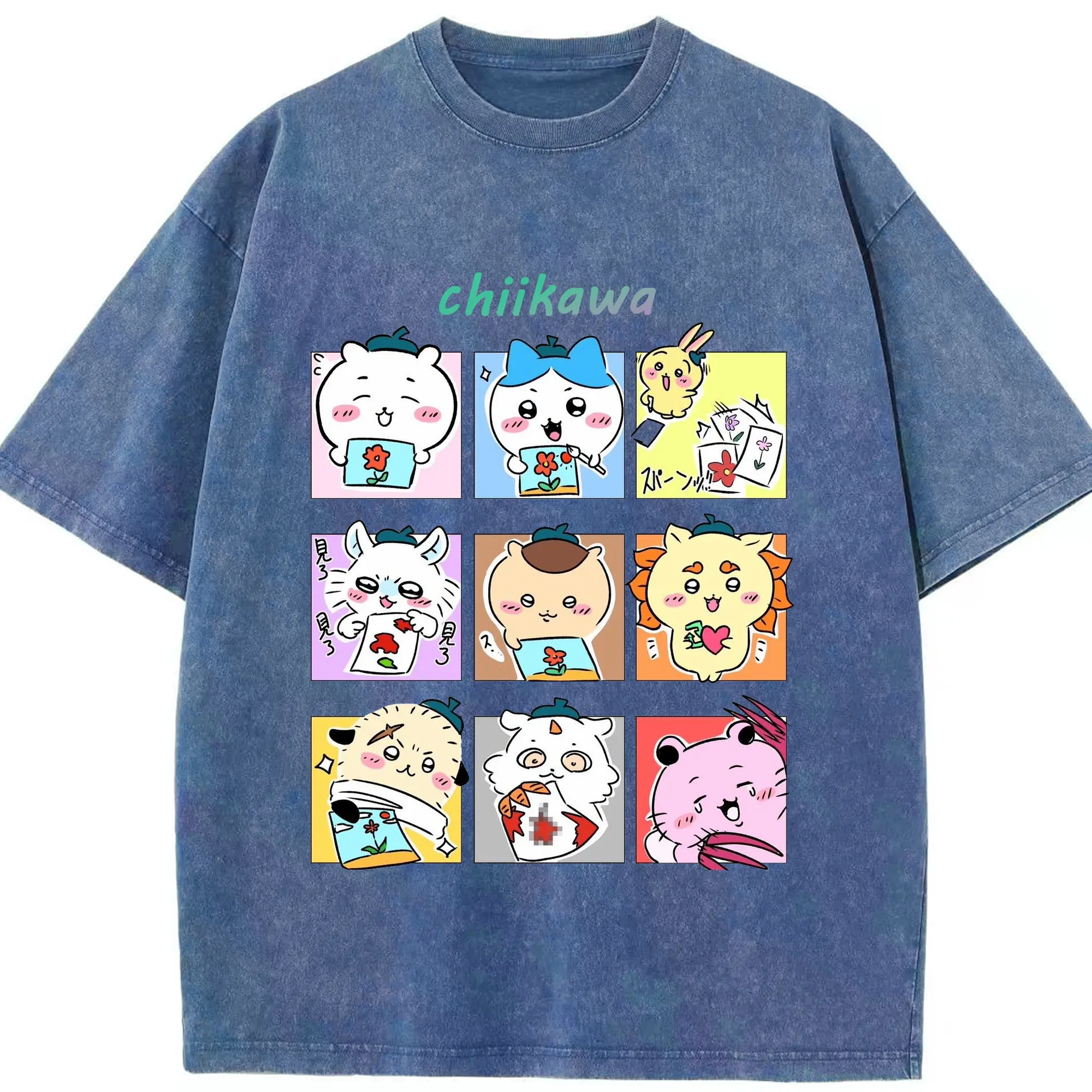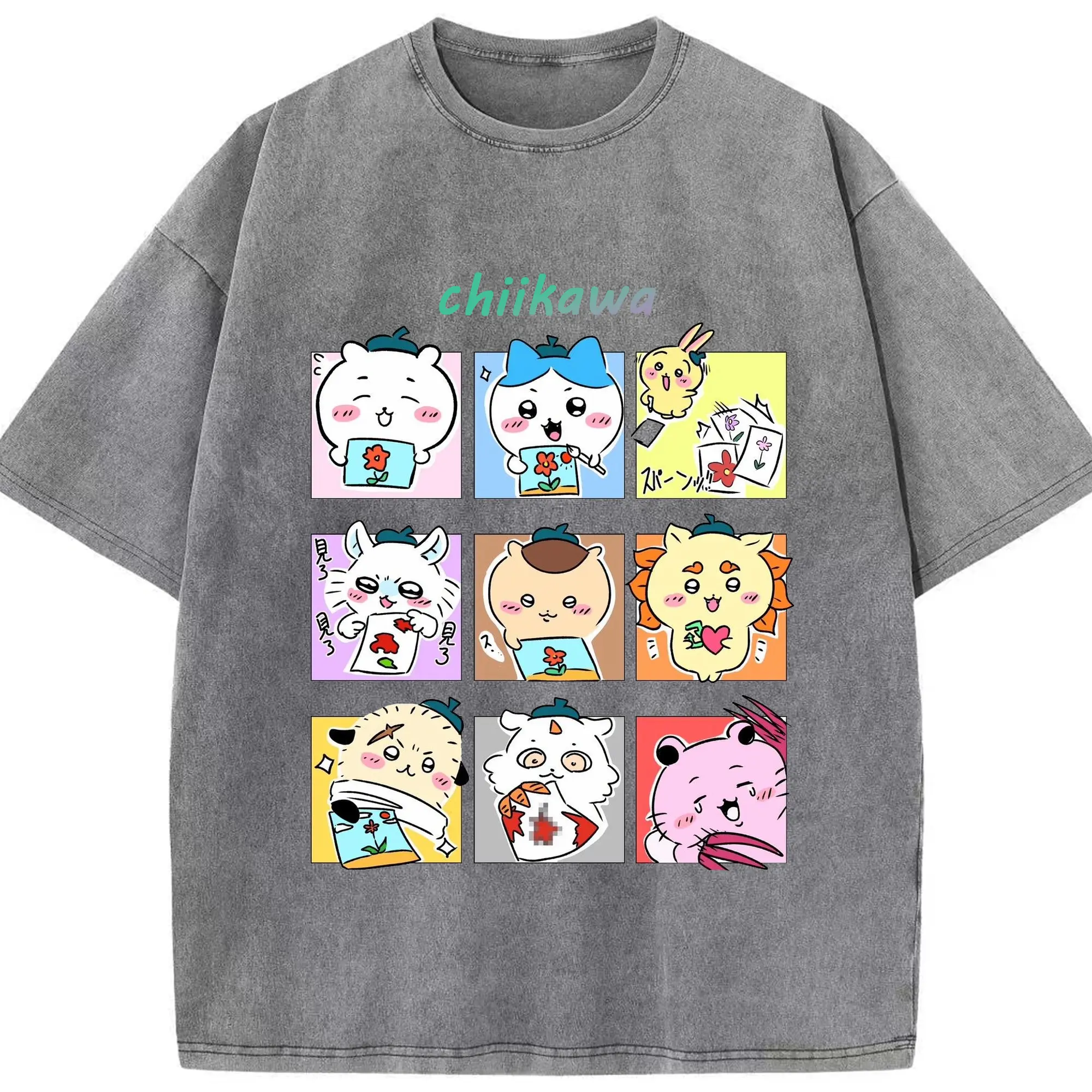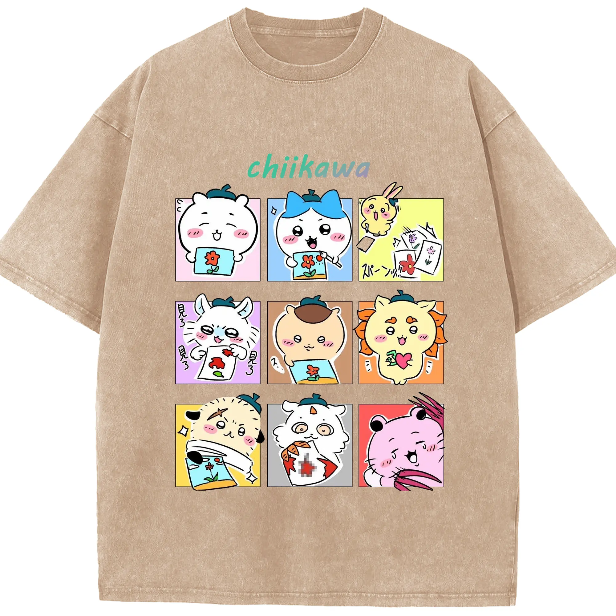 ちい が わ グッズ ちいかわ - 綿100% ヴィンテージ風 半袖Tシャツ ・ 背面プリント ・ 柔らか肌触り ・ 通気性 快適 ・ スポーツ カジュアル 外出用