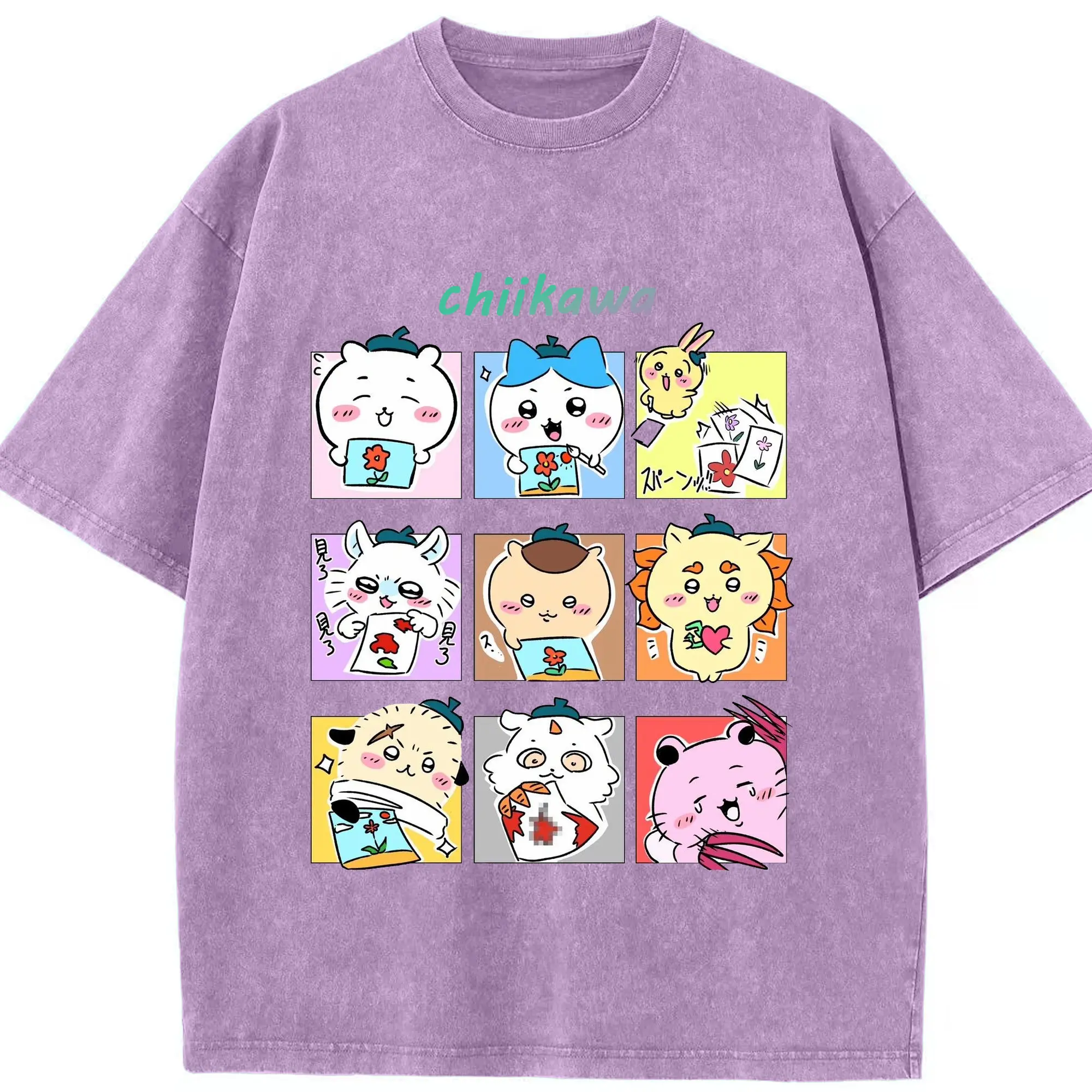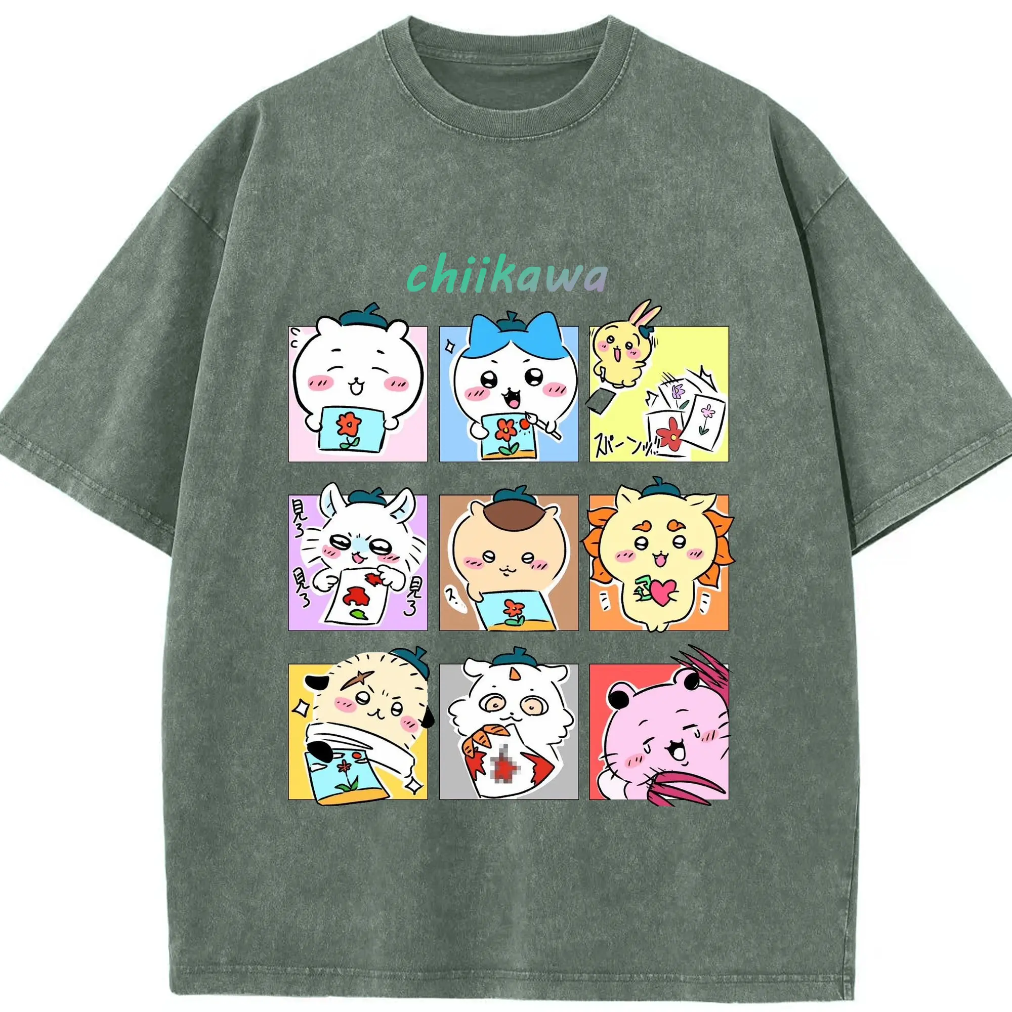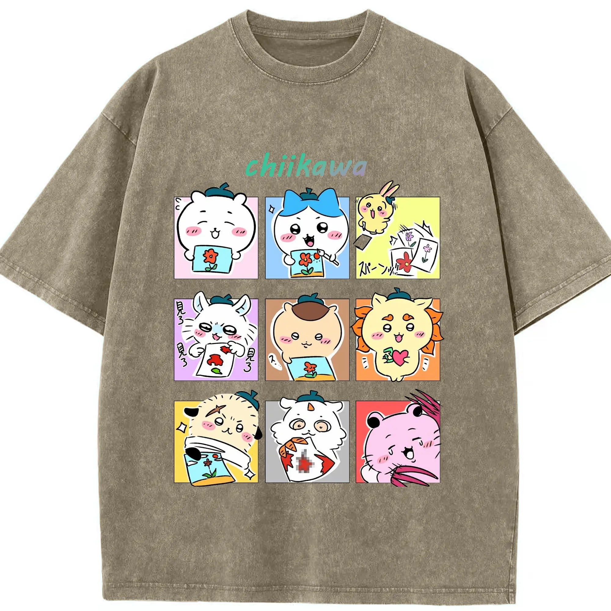 ちい が わ グッズ ちいかわ - 綿100% ヴィンテージ風 半袖Tシャツ ・ 背面プリント ・ 柔らか肌触り ・ 通気性 快適 ・ スポーツ カジュアル 外出用