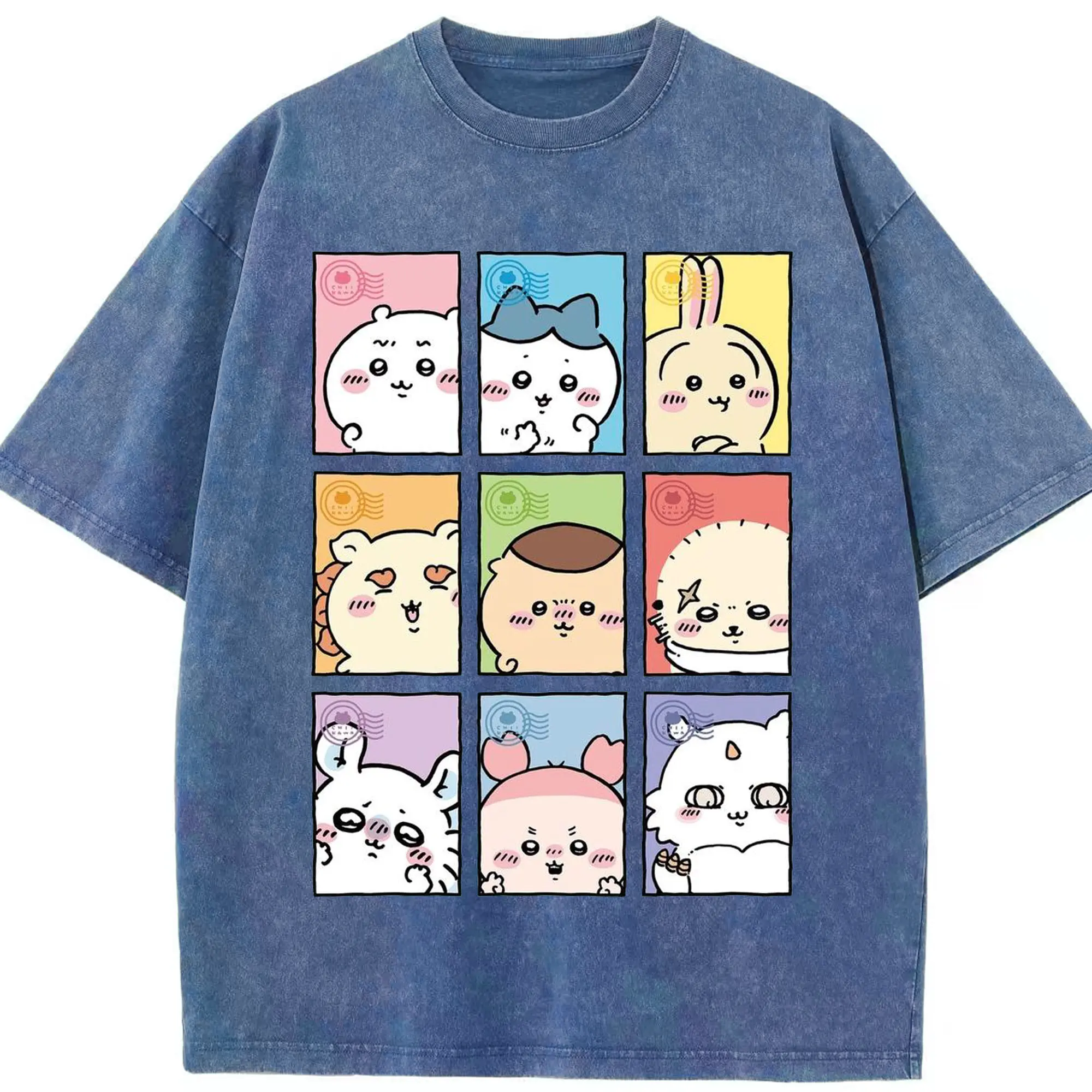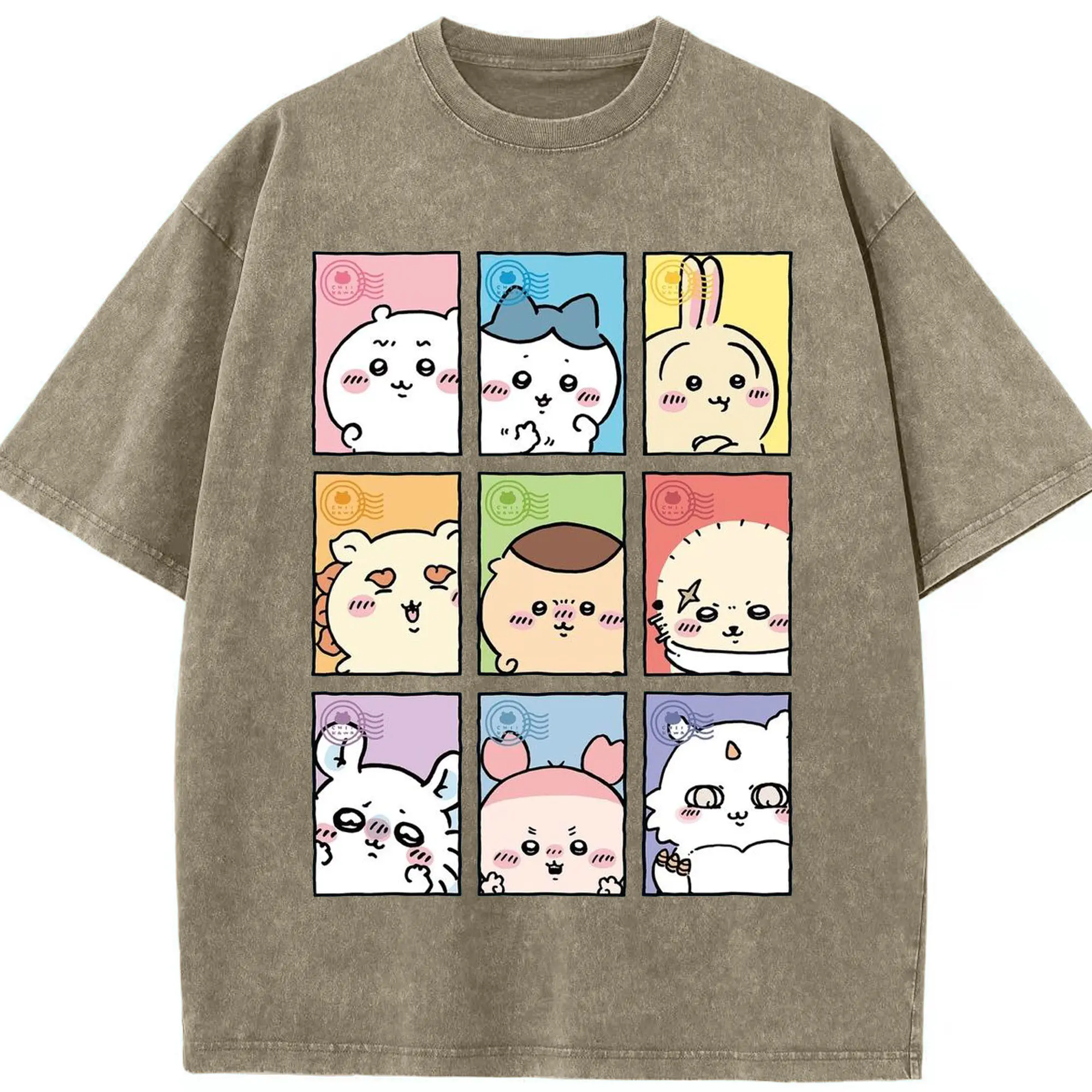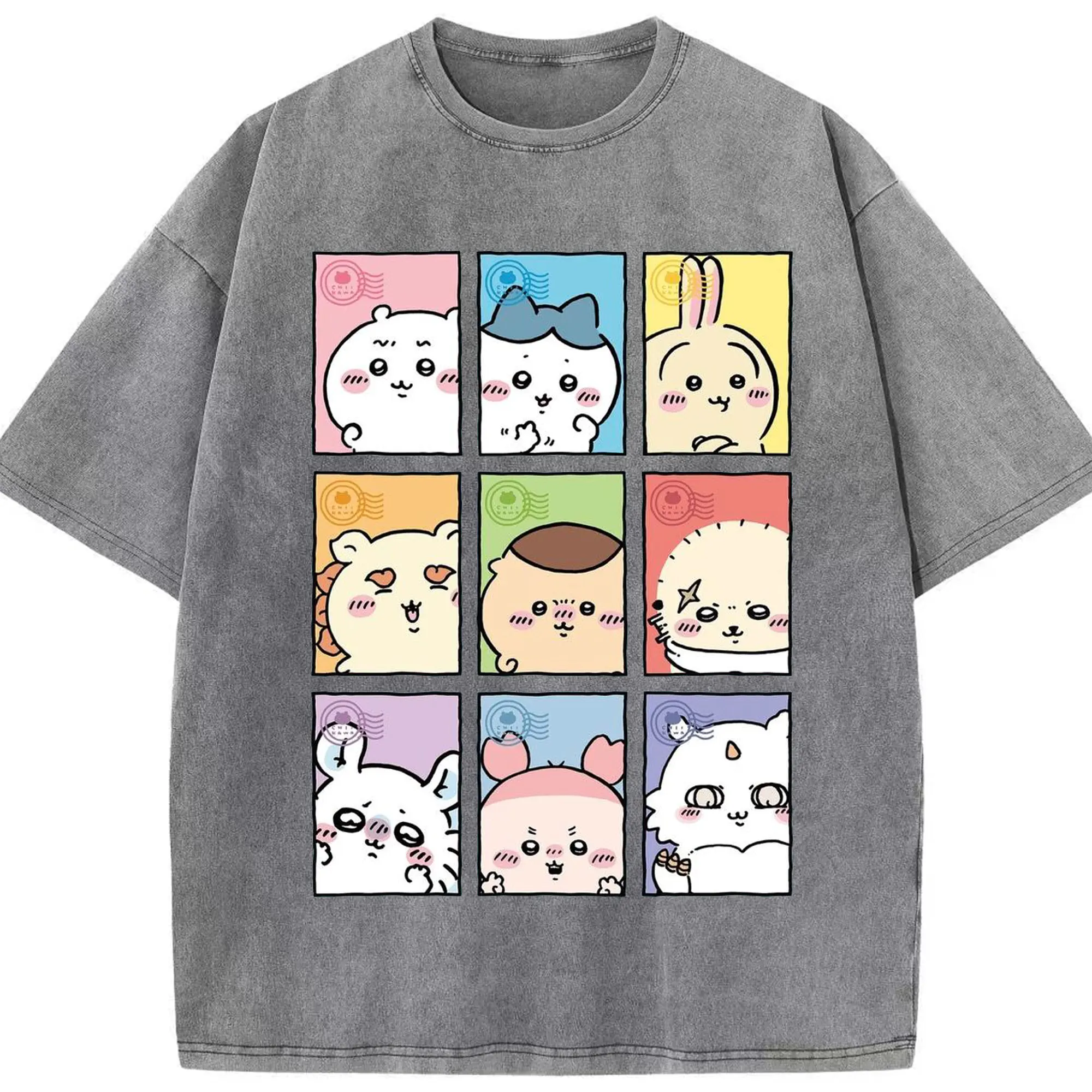 ちい が わ グッズ ちいかわ - 綿100% ヴィンテージ風 半袖Tシャツ ・ 背面プリント ・ 柔らか肌触り ・ 通気性 快適 ・ スポーツ カジュアル 外出用