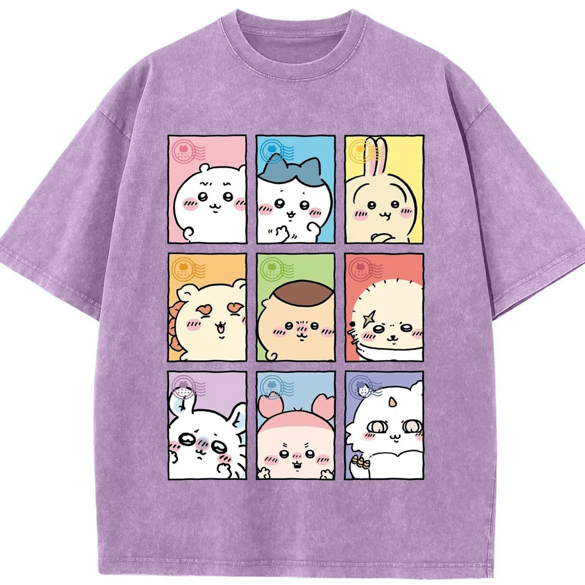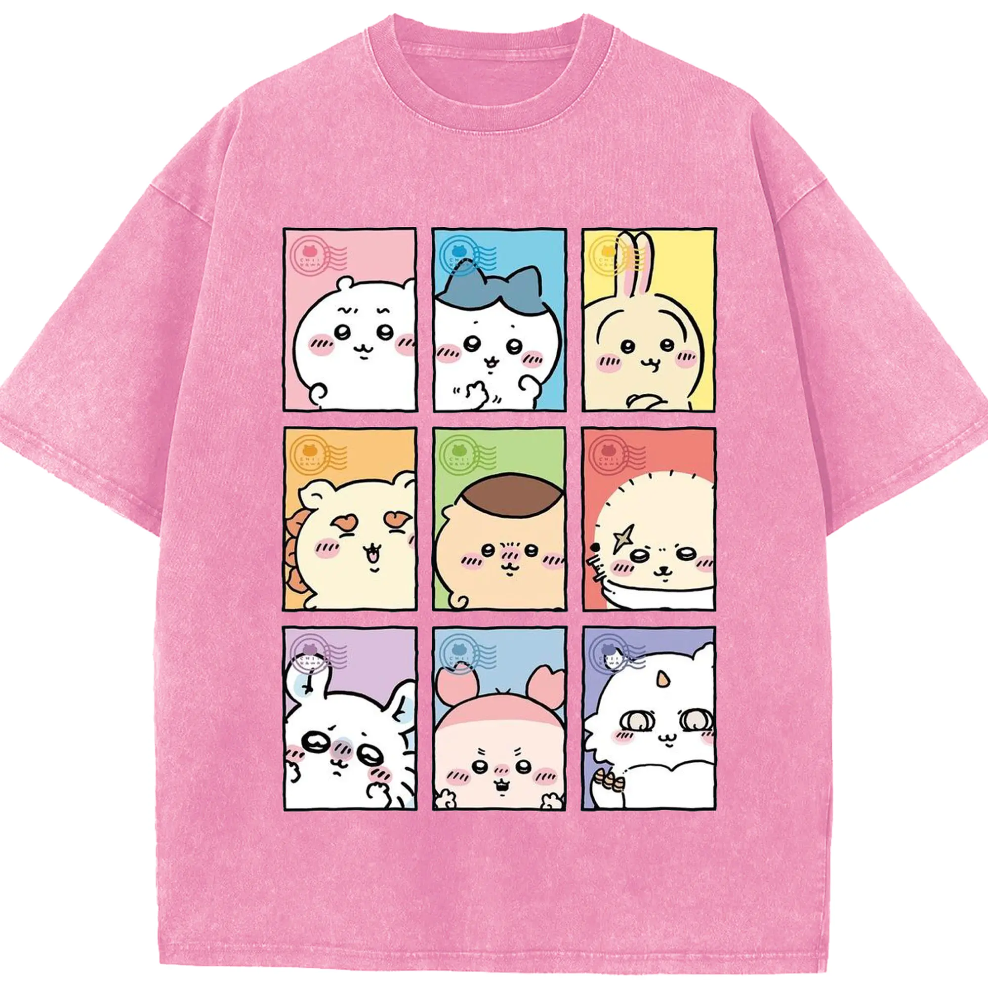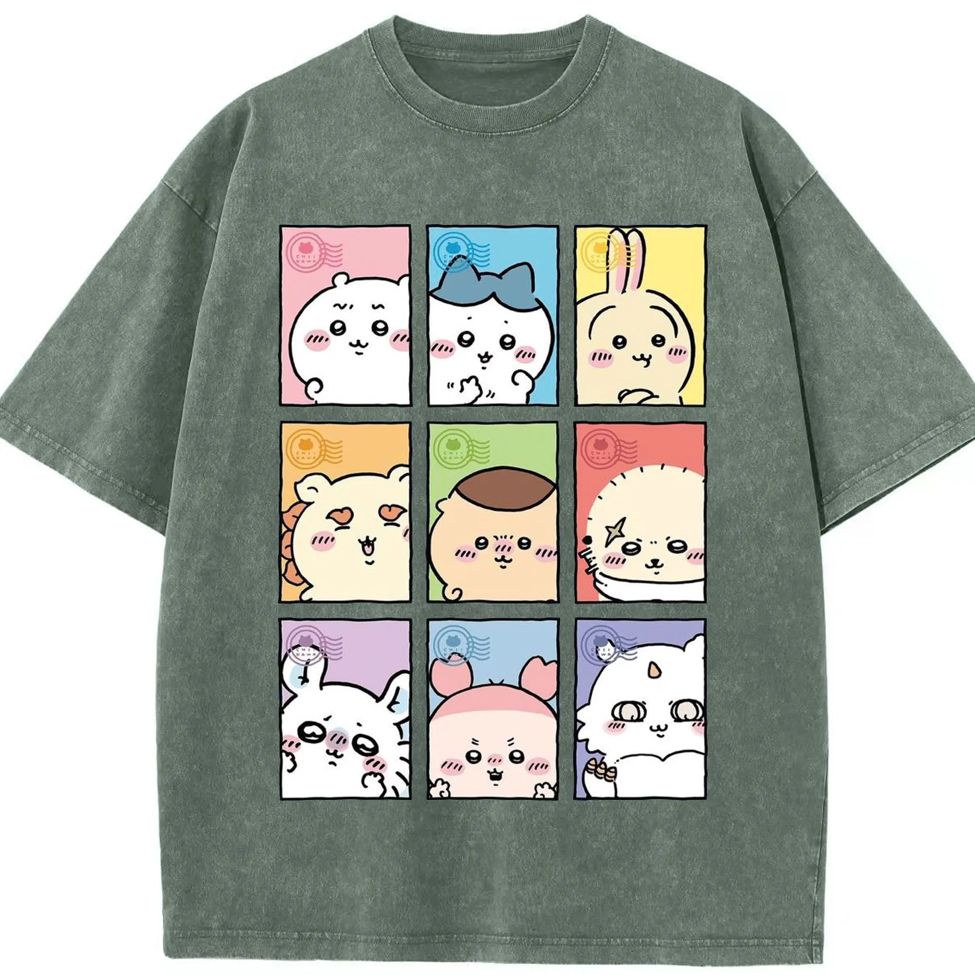 ちい が わ グッズ ちいかわ - 綿100% ヴィンテージ風 半袖Tシャツ ・ 背面プリント ・ 柔らか肌触り ・ 通気性 快適 ・ スポーツ カジュアル 外出用
