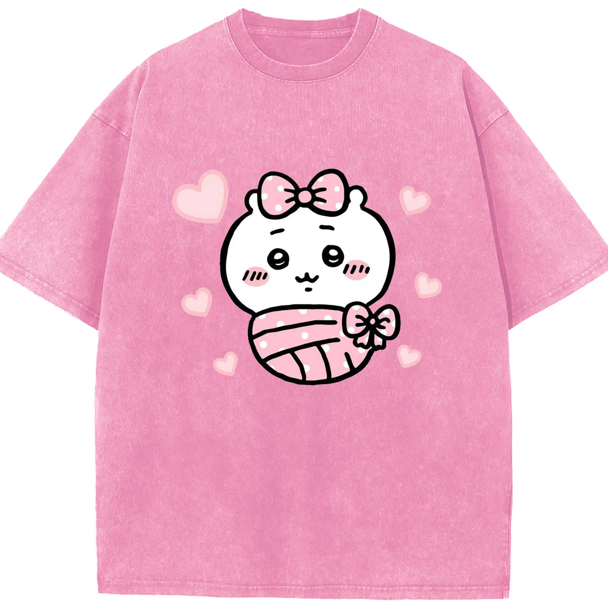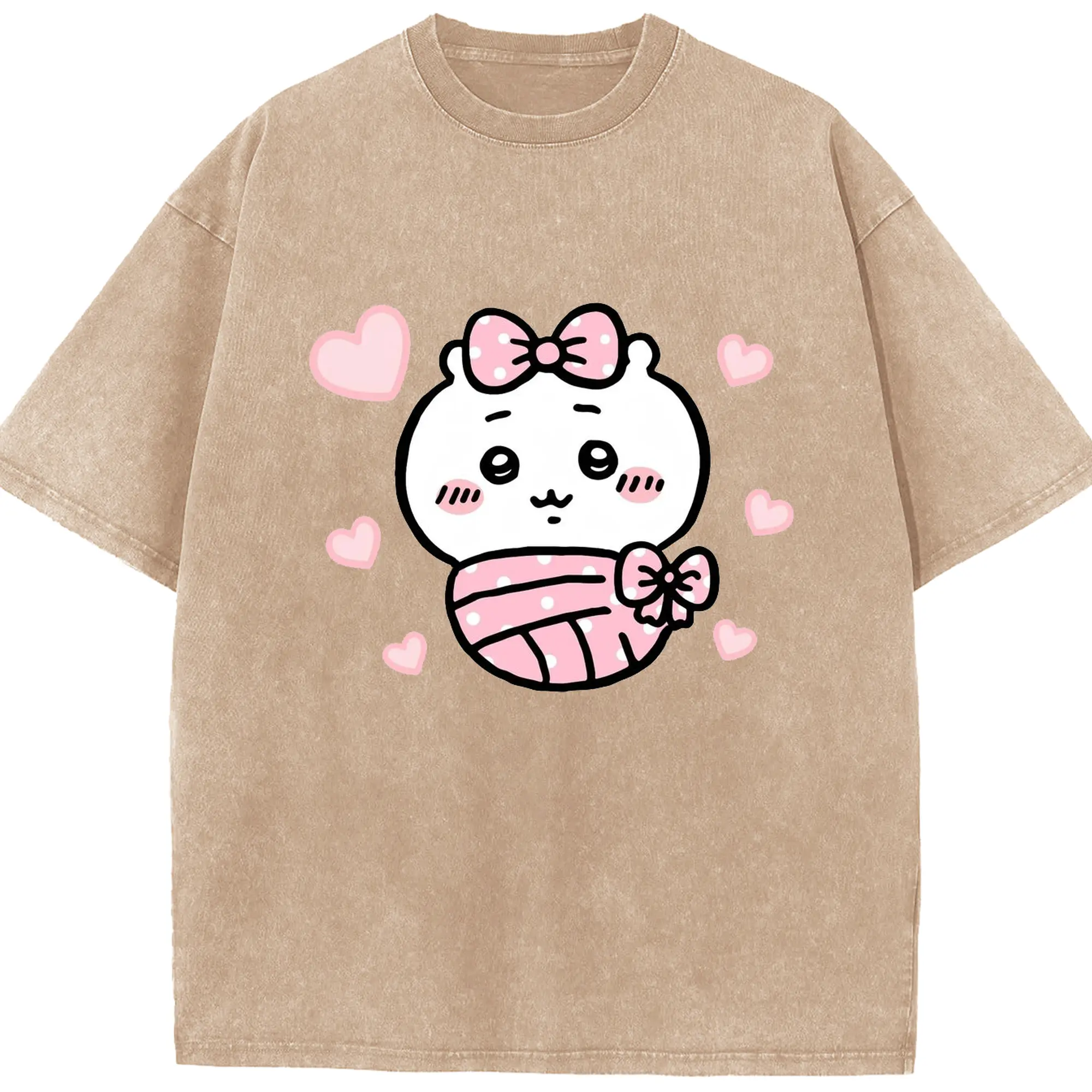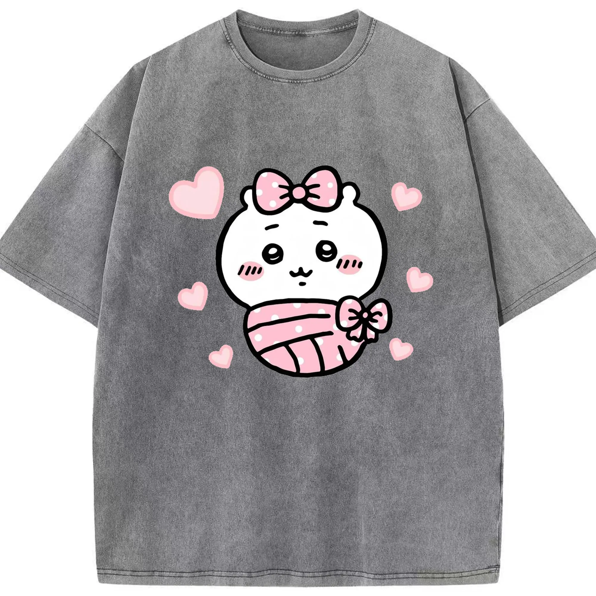 ちい が わ グッズ ちいかわ - 綿100% ヴィンテージ風 半袖Tシャツ ・ 背面プリント ・ 柔らか肌触り ・ 通気性 快適 ・ スポーツ カジュアル 外出用