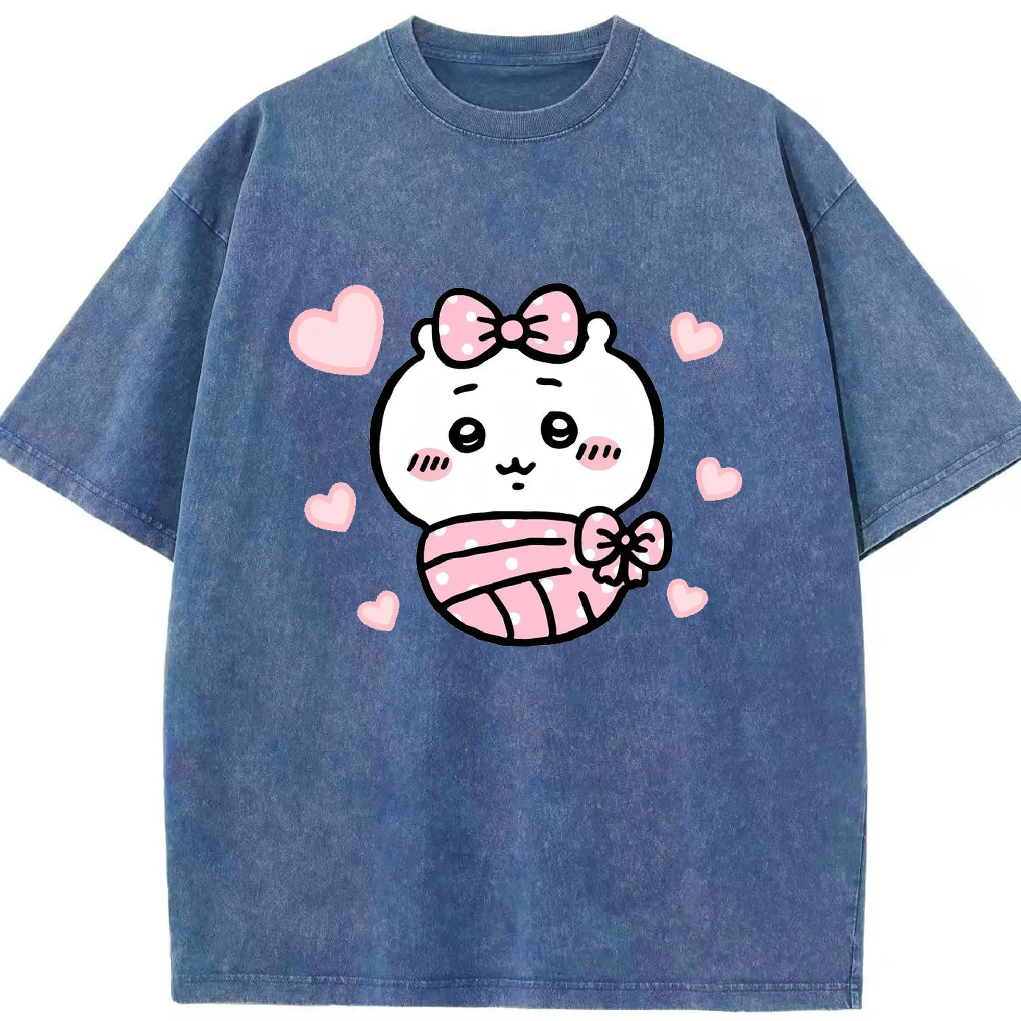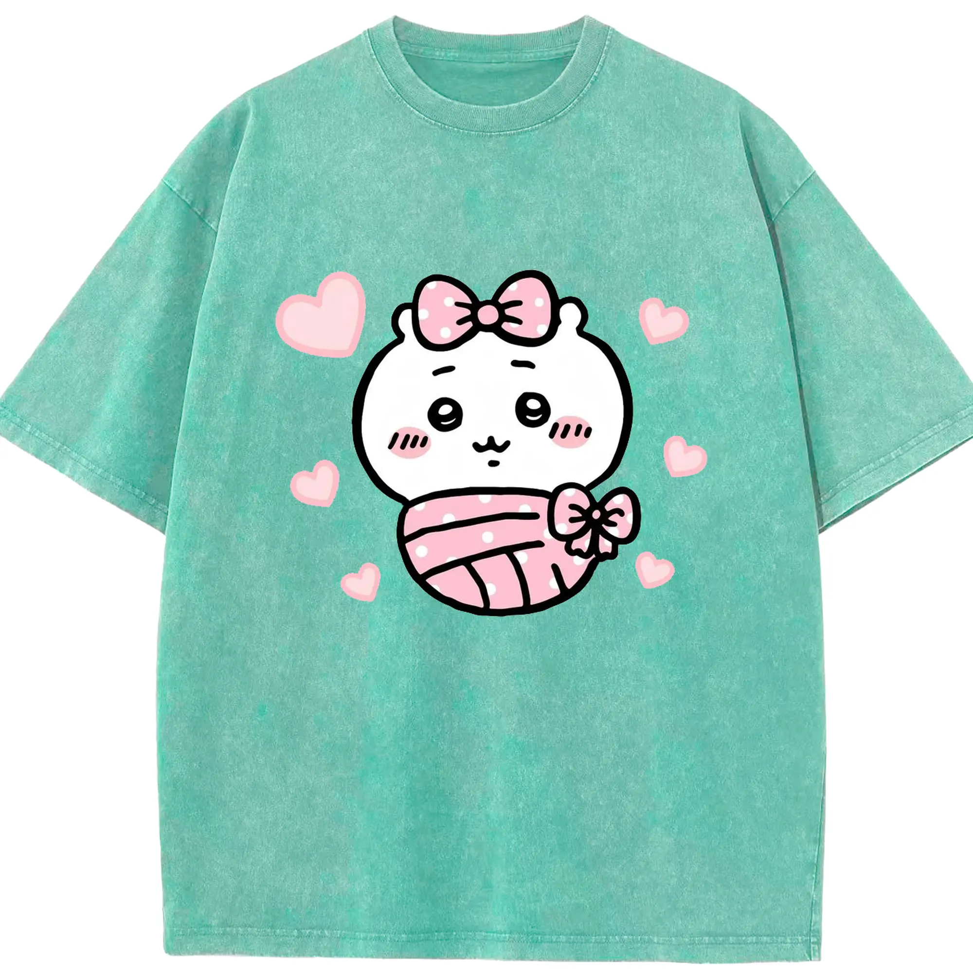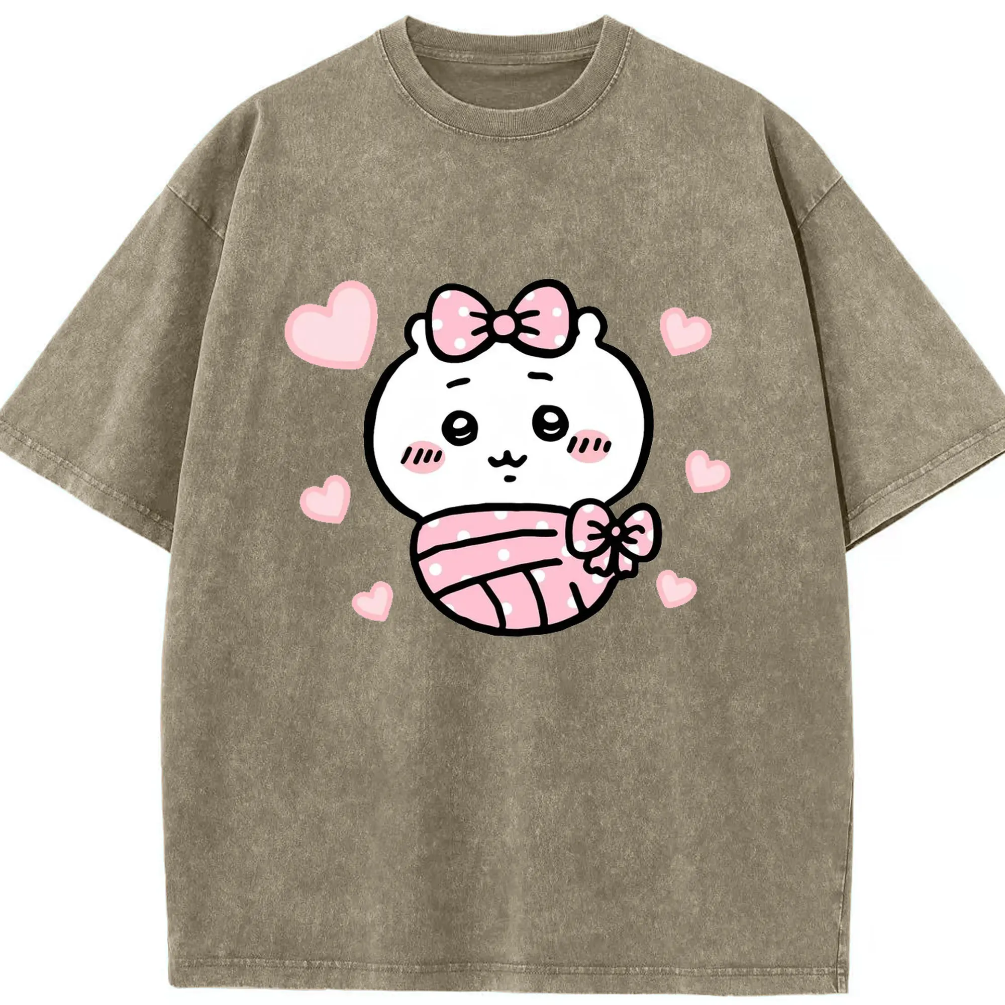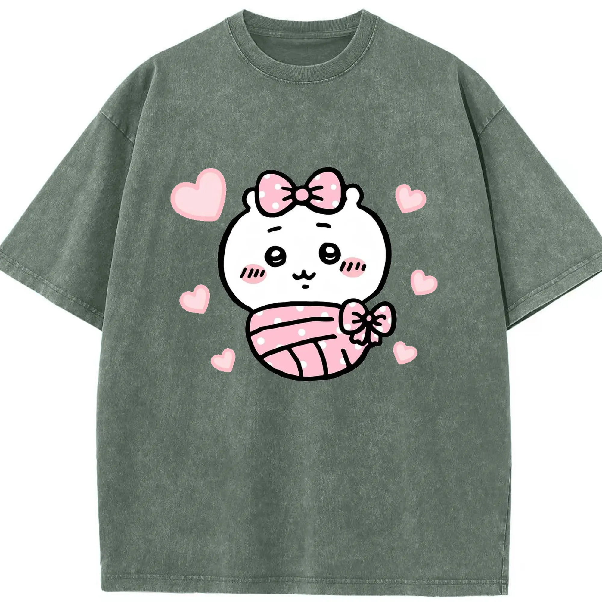ちい が わ グッズ ちいかわ - 綿100% ヴィンテージ風 半袖Tシャツ ・ 背面プリント ・ 柔らか肌触り ・ 通気性 快適 ・ スポーツ カジュアル 外出用