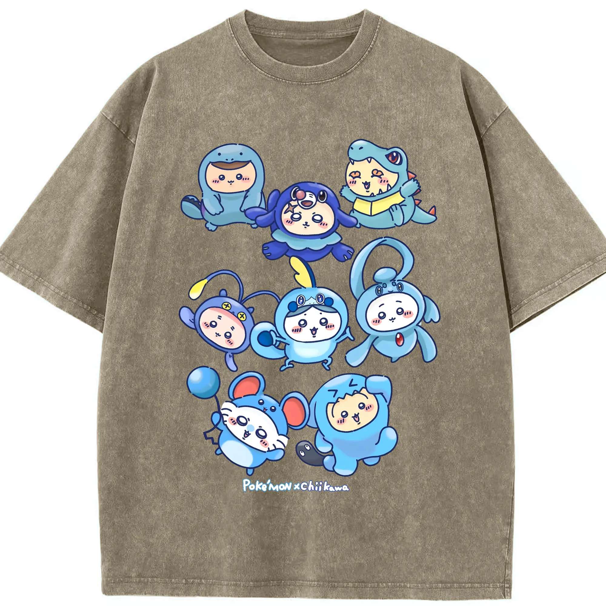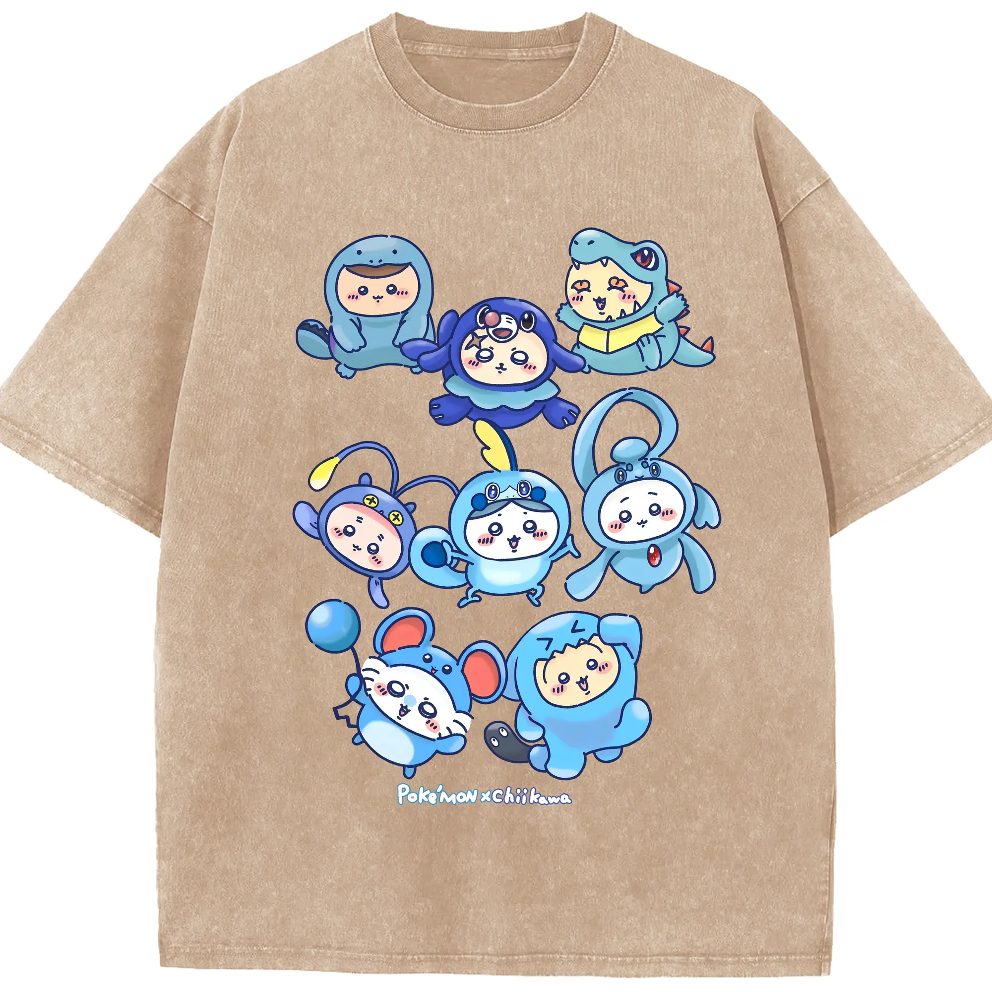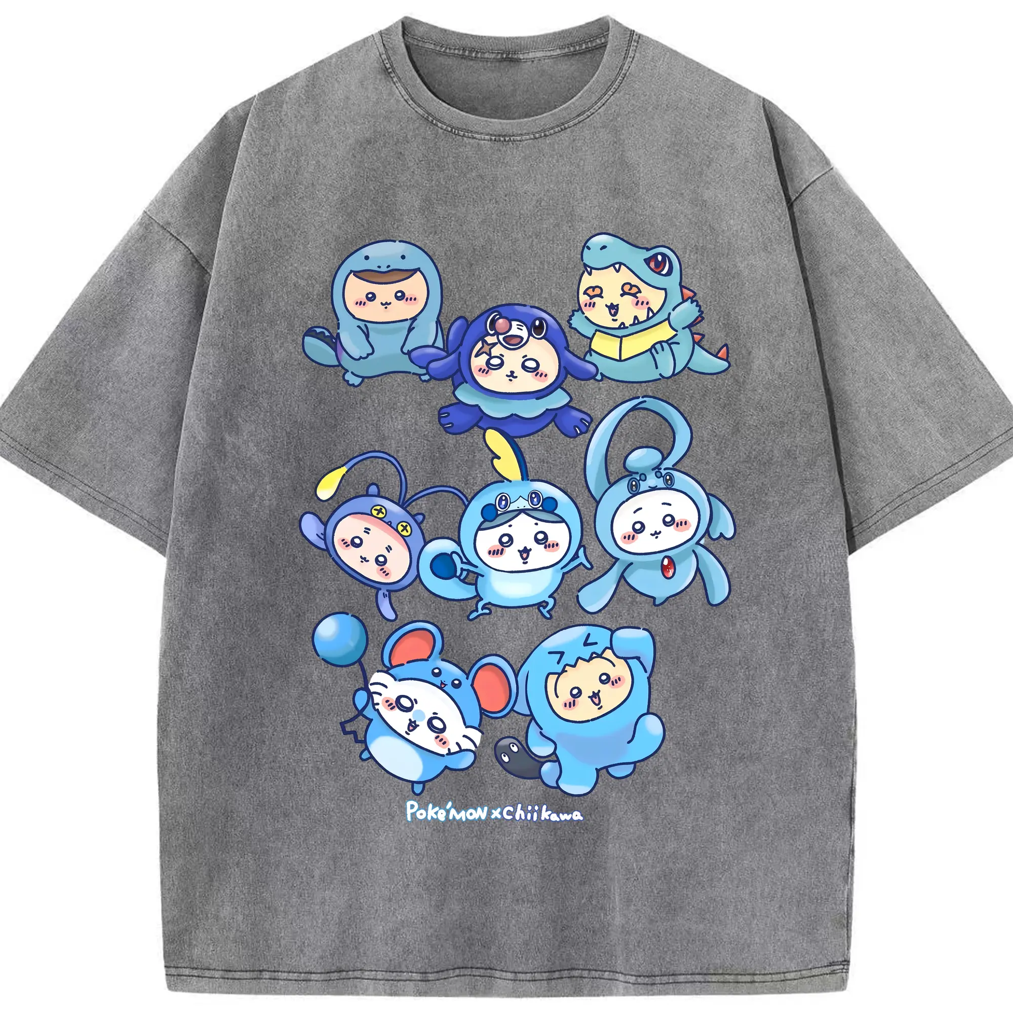 ちい が わ グッズ ちいかわ - 綿100% ヴィンテージ風 半袖Tシャツ ・ 背面プリント ・ 柔らか肌触り ・ 通気性 快適 ・ スポーツ カジュアル 外出用