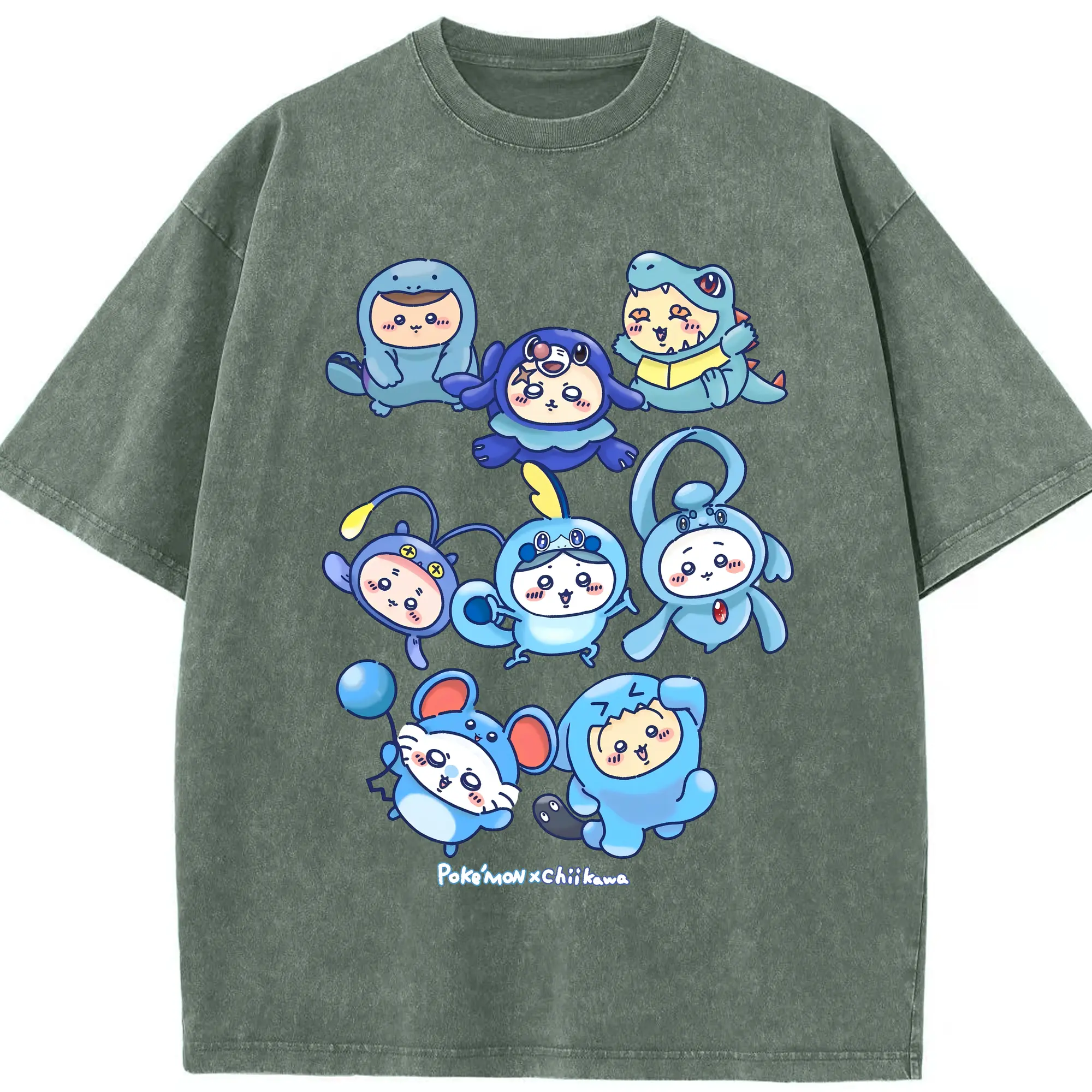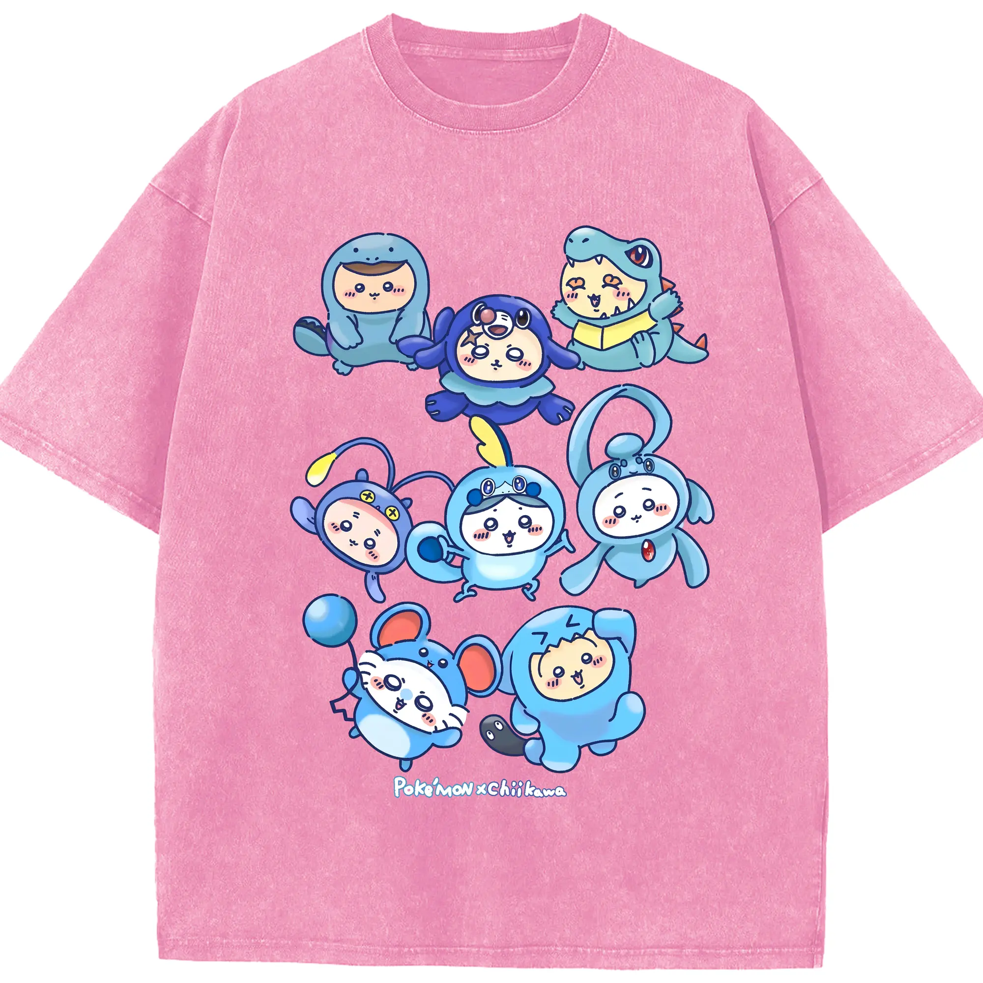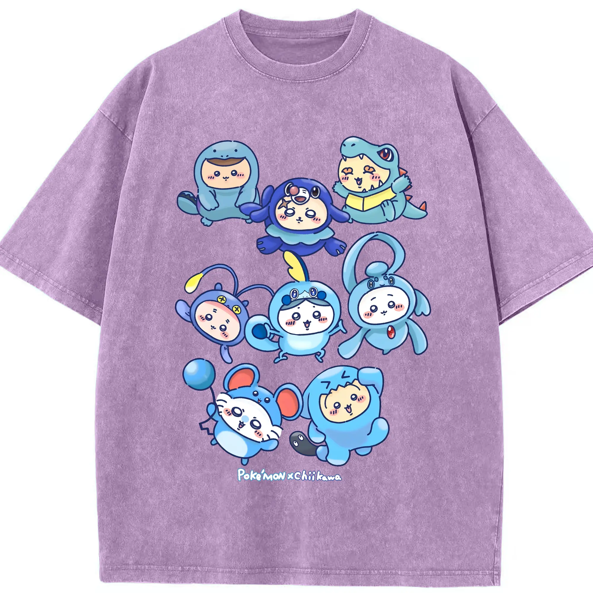 ちい が わ グッズ ちいかわ - 綿100% ヴィンテージ風 半袖Tシャツ ・ 背面プリント ・ 柔らか肌触り ・ 通気性 快適 ・ スポーツ カジュアル 外出用