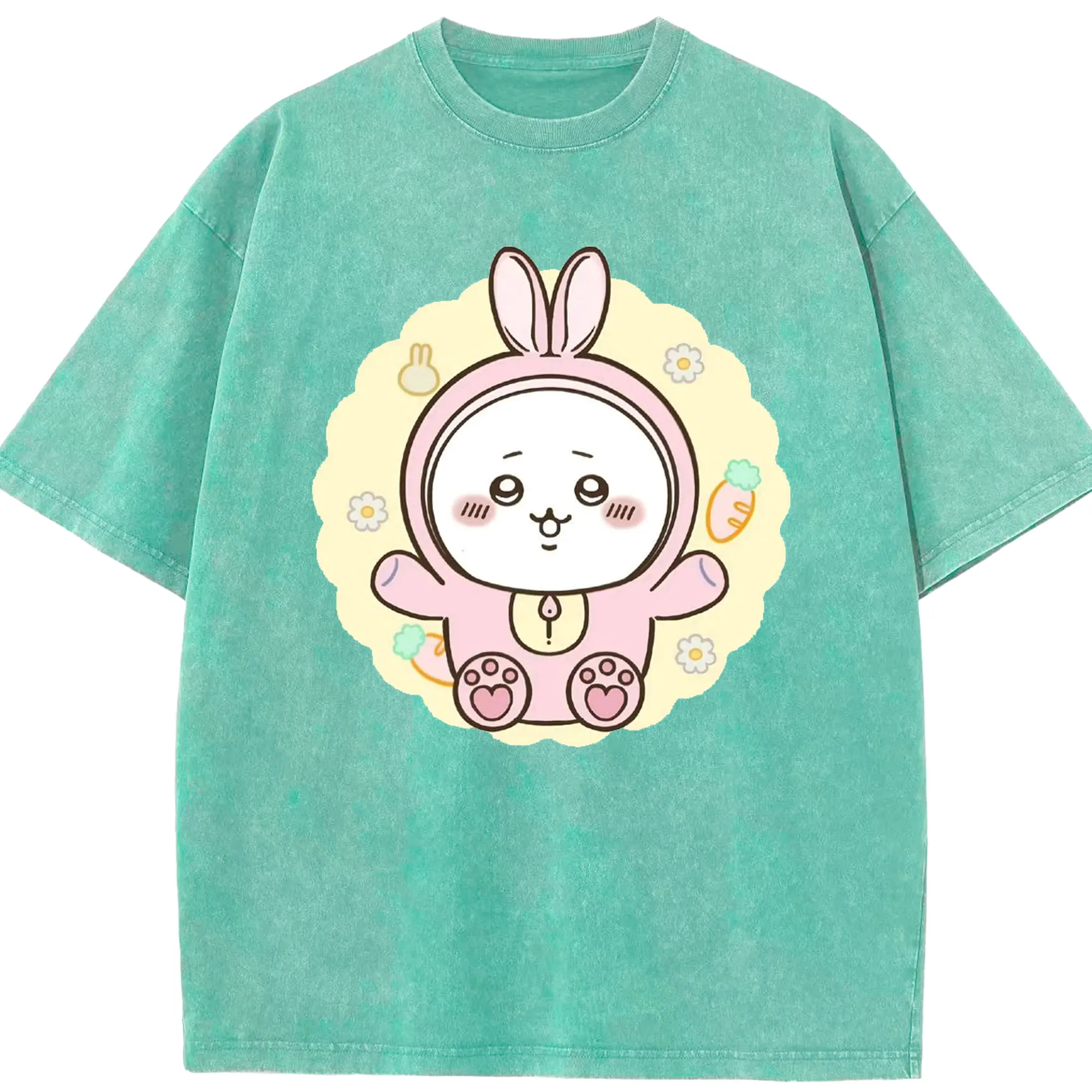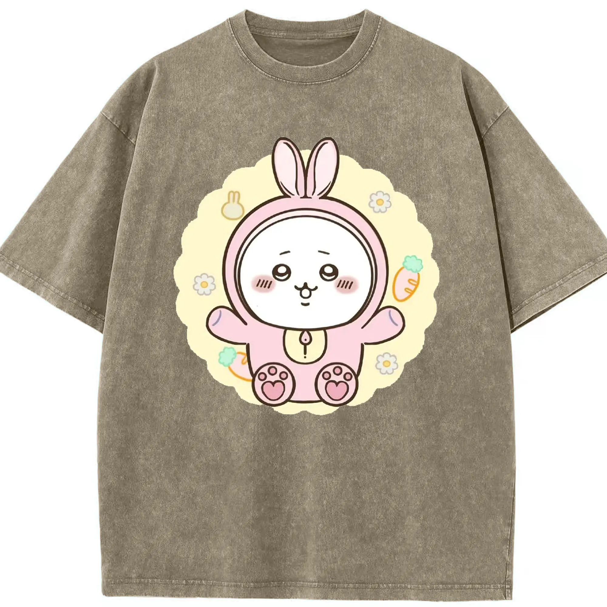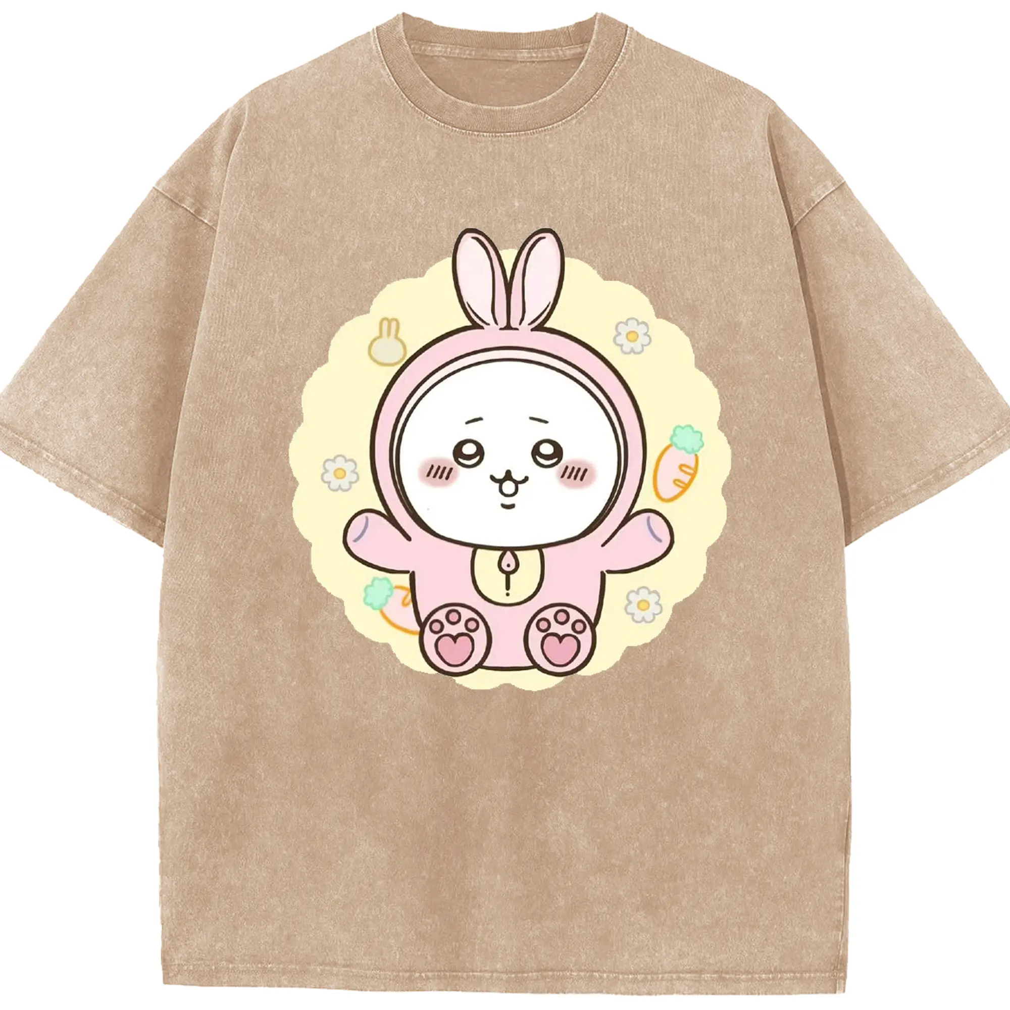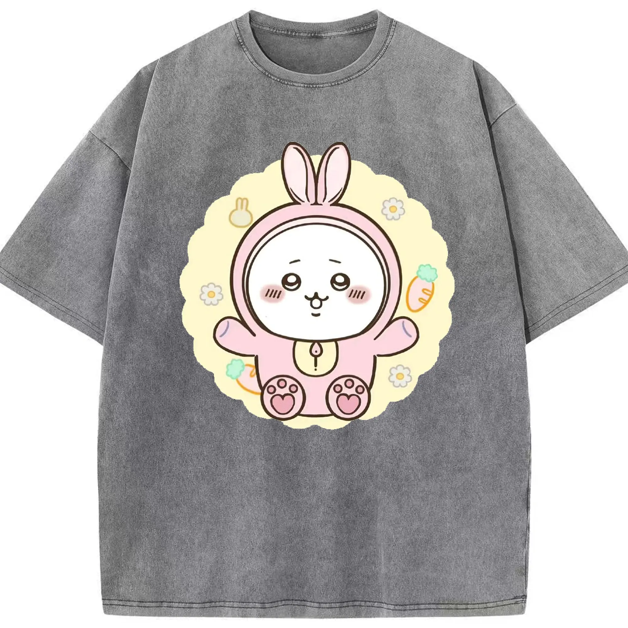 ちい が わ グッズ ちいかわ - 綿100% ヴィンテージ風 半袖Tシャツ ・ 背面プリント ・ 柔らか肌触り ・ 通気性 快適 ・ スポーツ カジュアル 外出用
