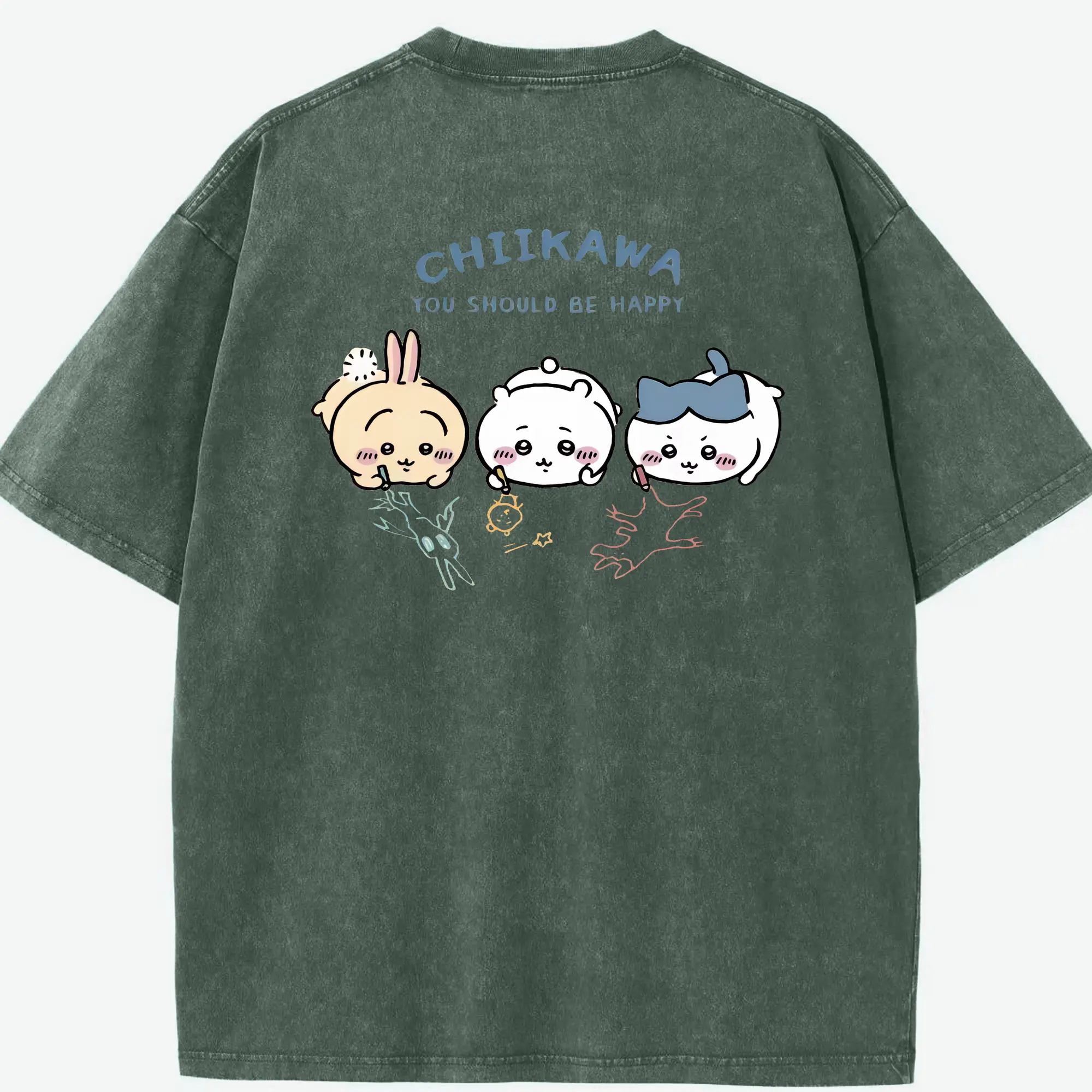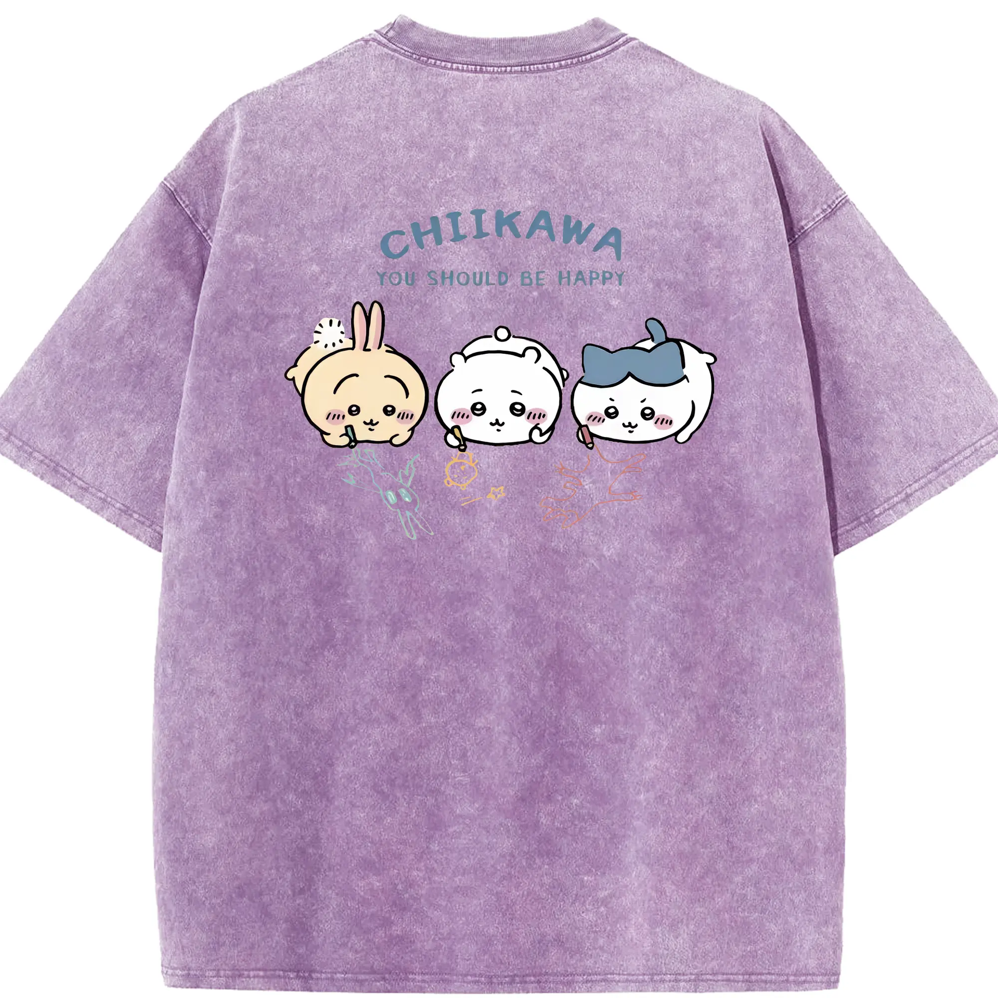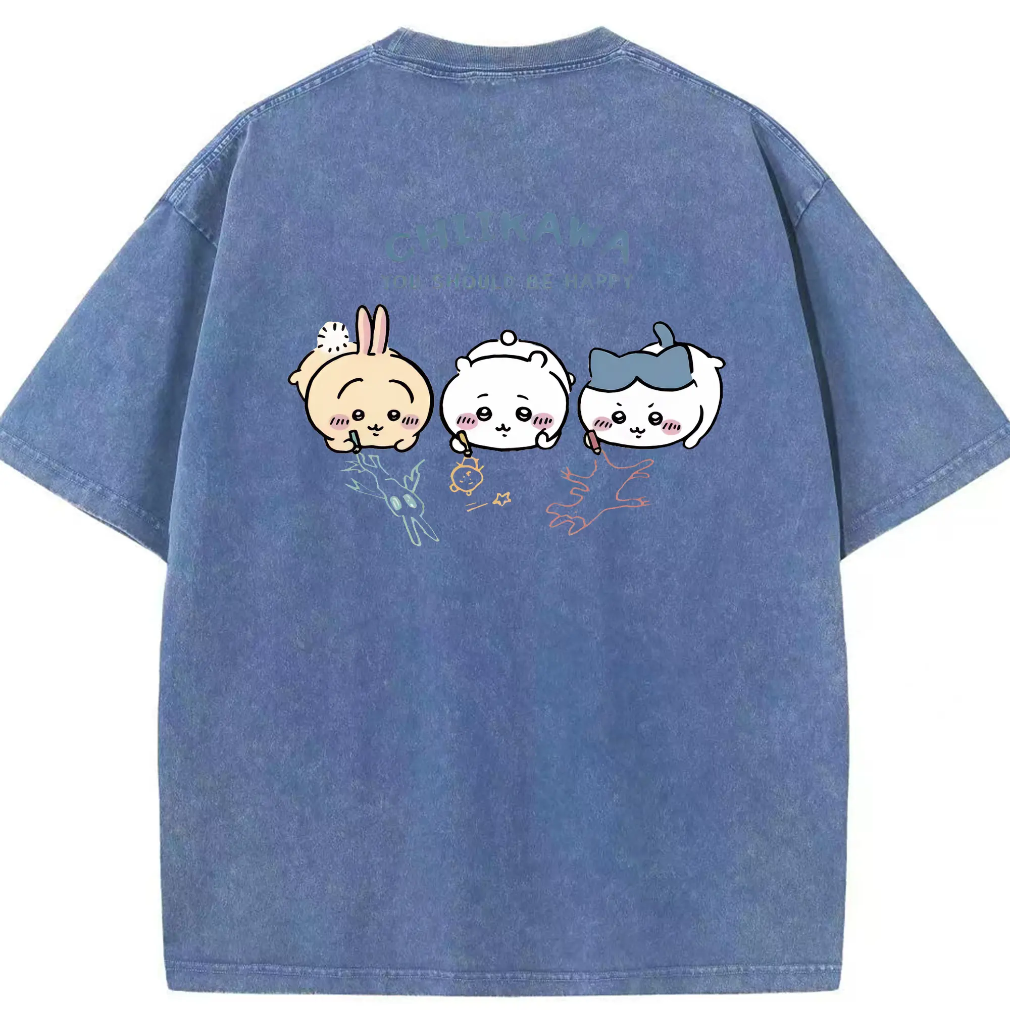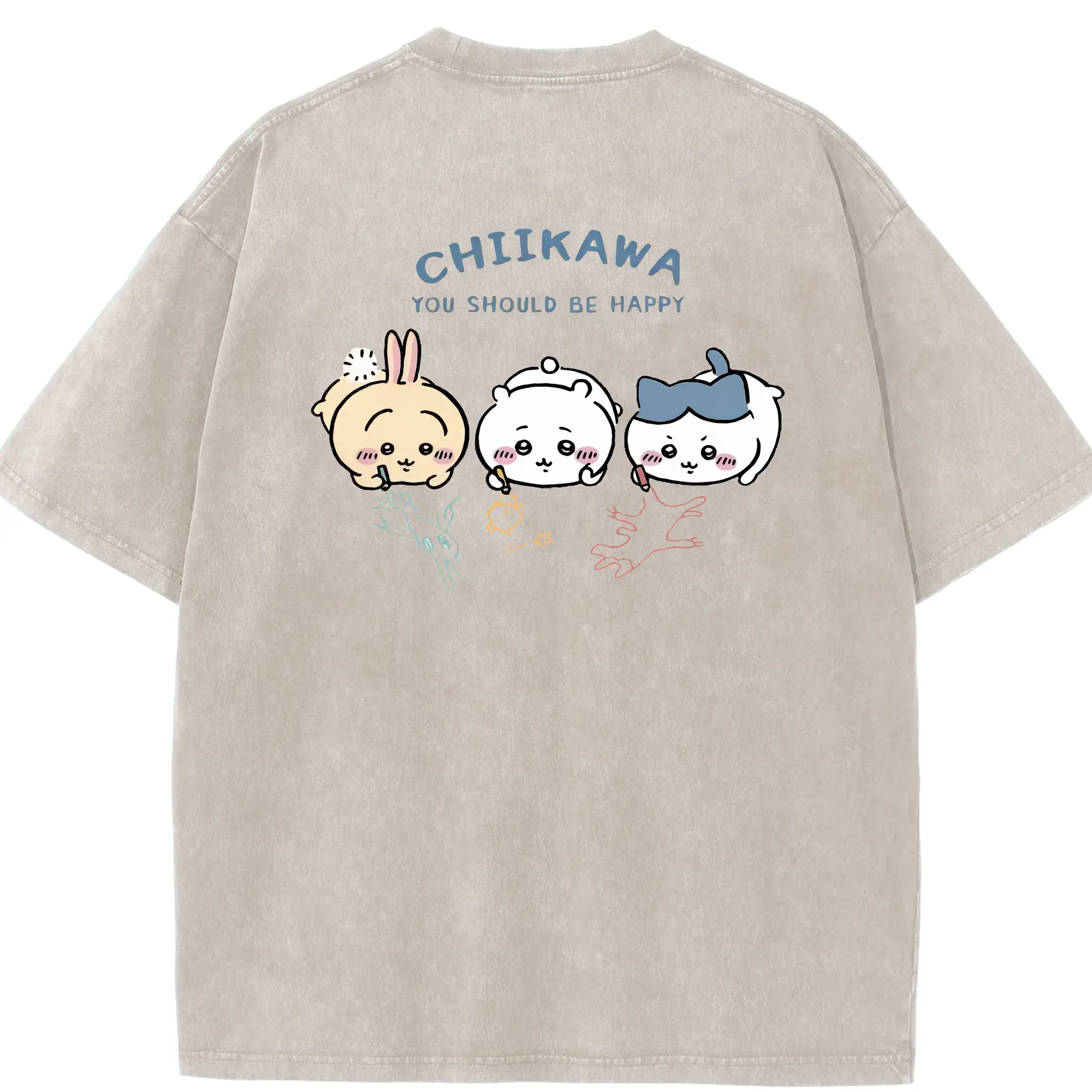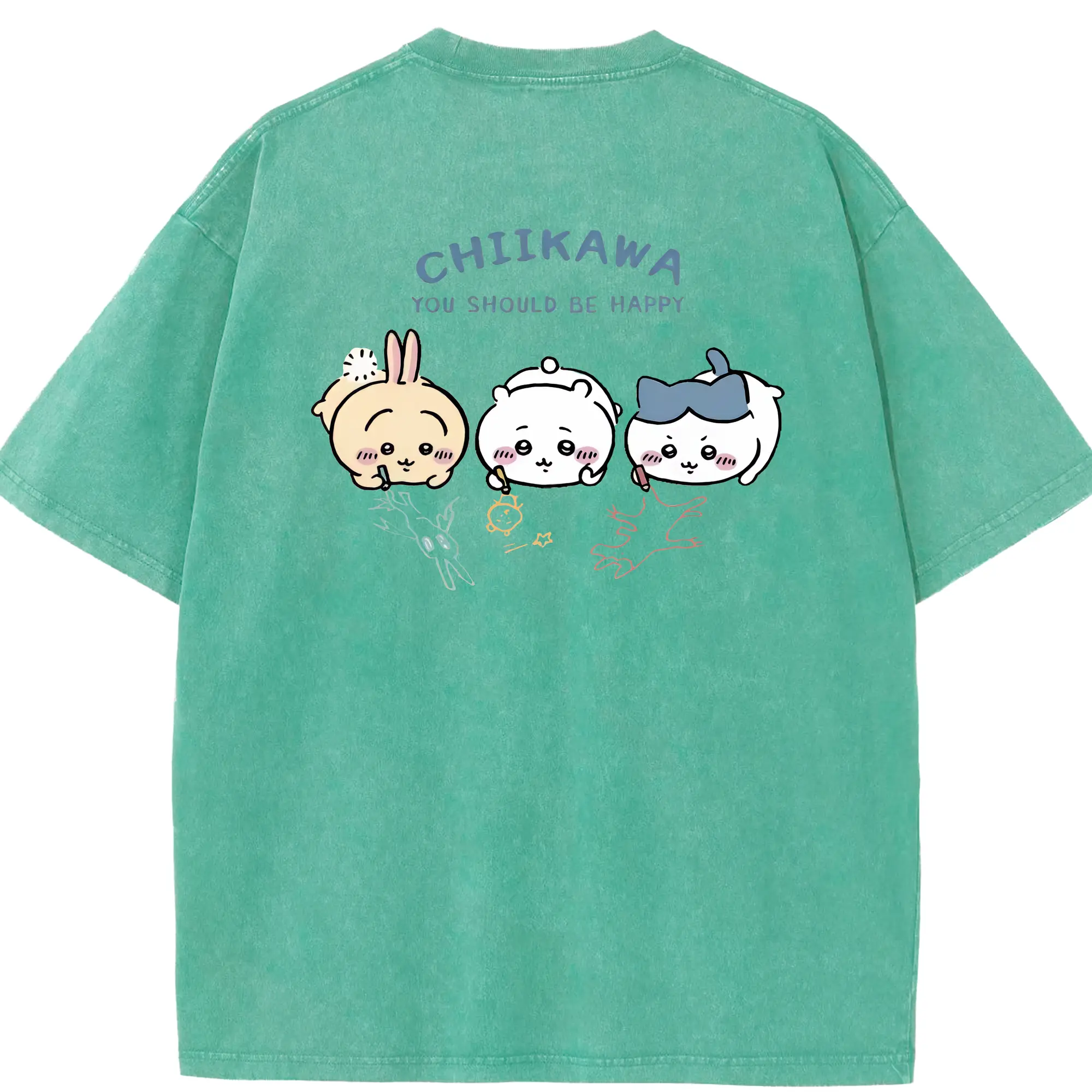 ちい が わ グッズ ちいかわ - 綿100% ヴィンテージ風 半袖Tシャツ ・ フロントプリント ・ 柔らか肌触り ・ 通気性 快適 ・ スポーツ カジュアル 外出用