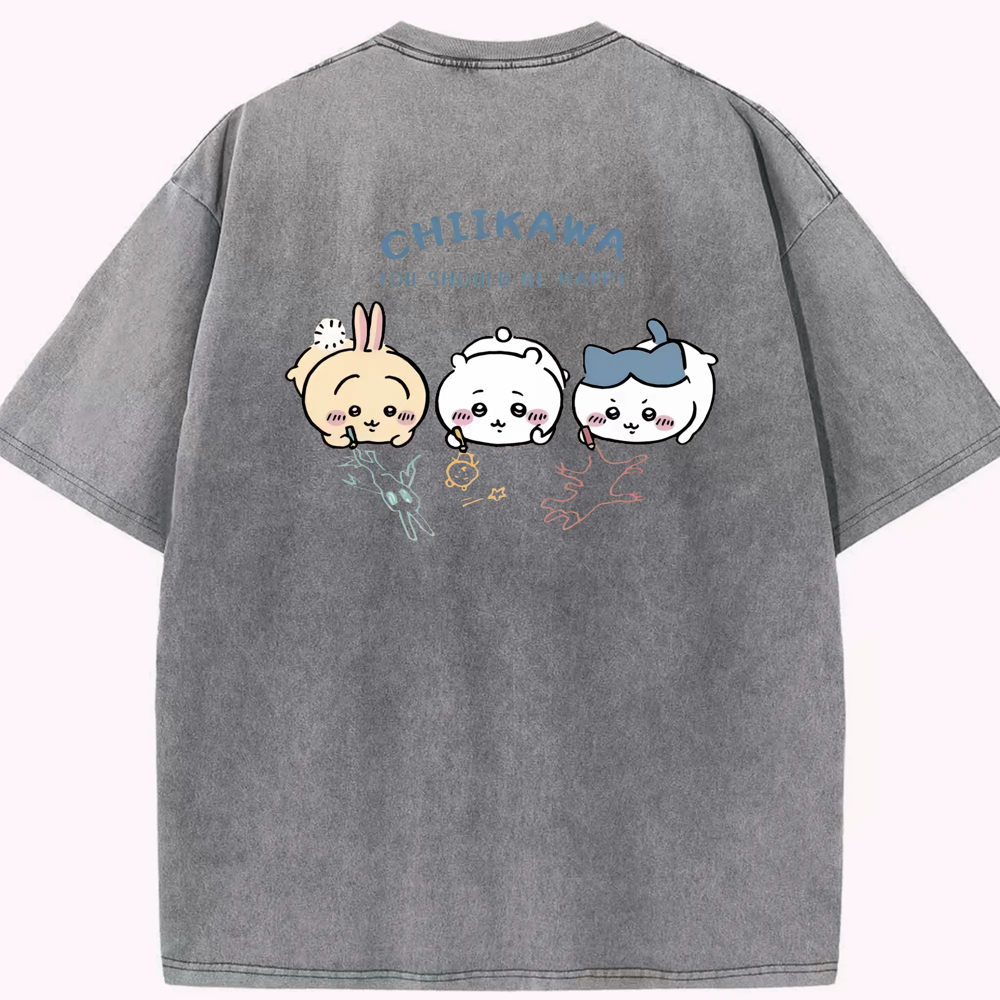 ちい が わ グッズ ちいかわ - 綿100% 半袖Tシャツ ・ バックプリント ・ 快適 通気性 ・ 日常使い 散歩 スポーツ用