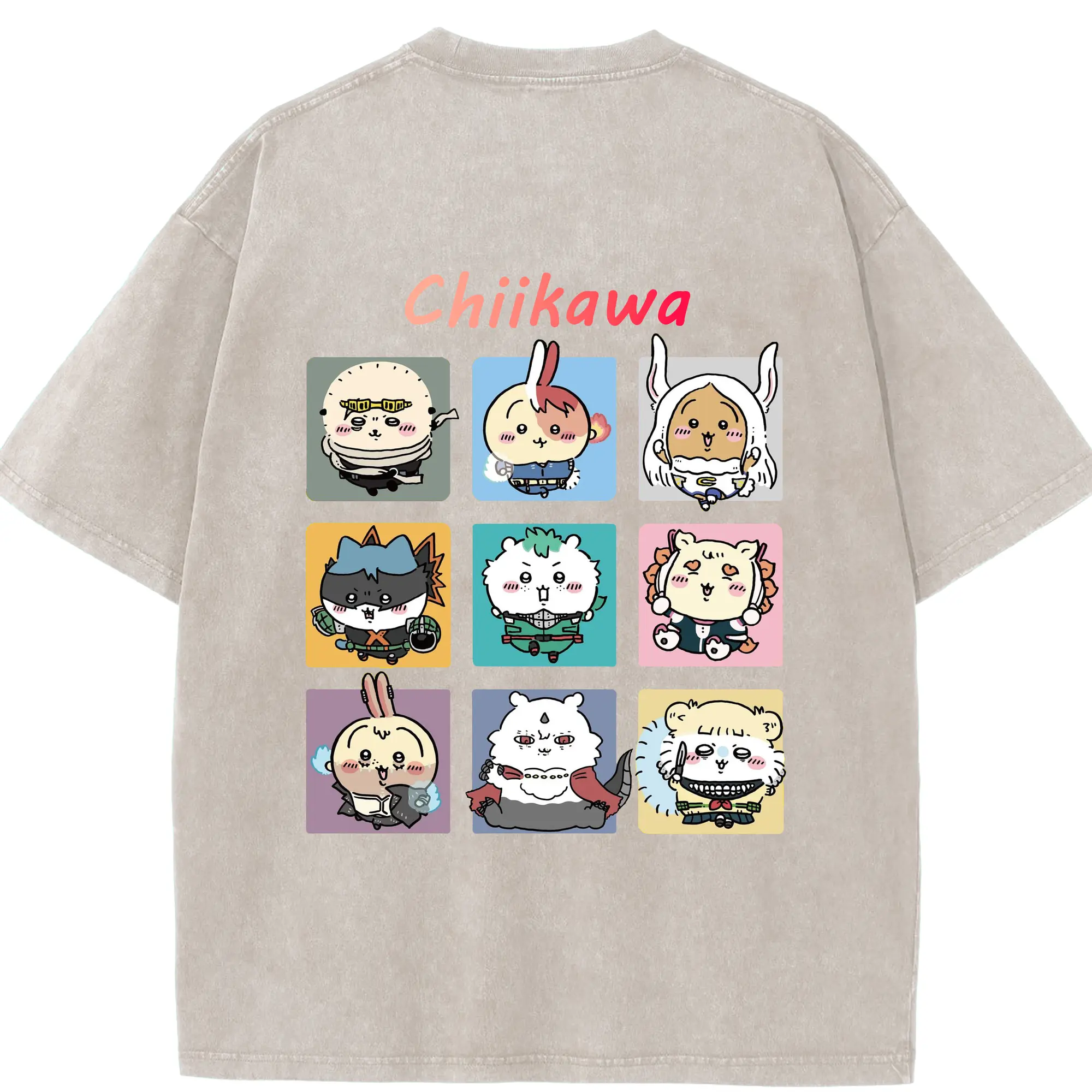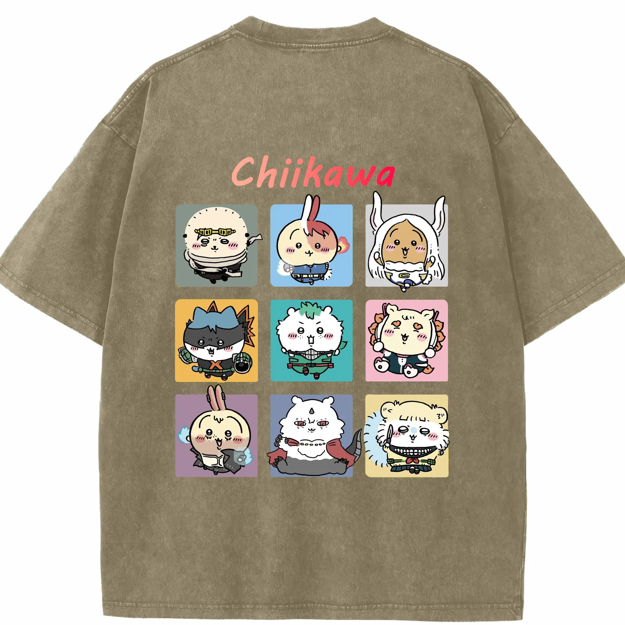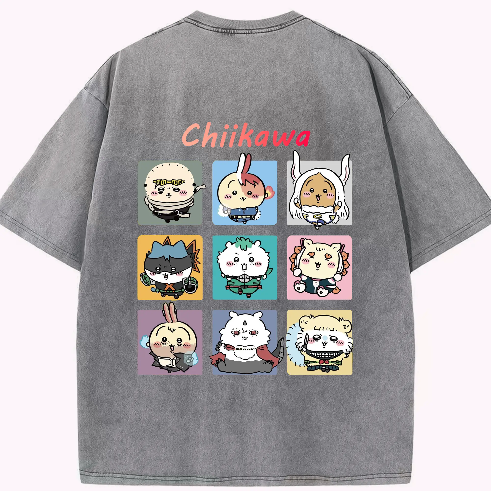 ちい が わ グッズ ちいかわ - 綿100% ヴィンテージ風 半袖Tシャツ ・ フロントプリント ・ 柔らか肌触り ・ 通気性 快適 ・ スポーツ カジュアル 外出用
