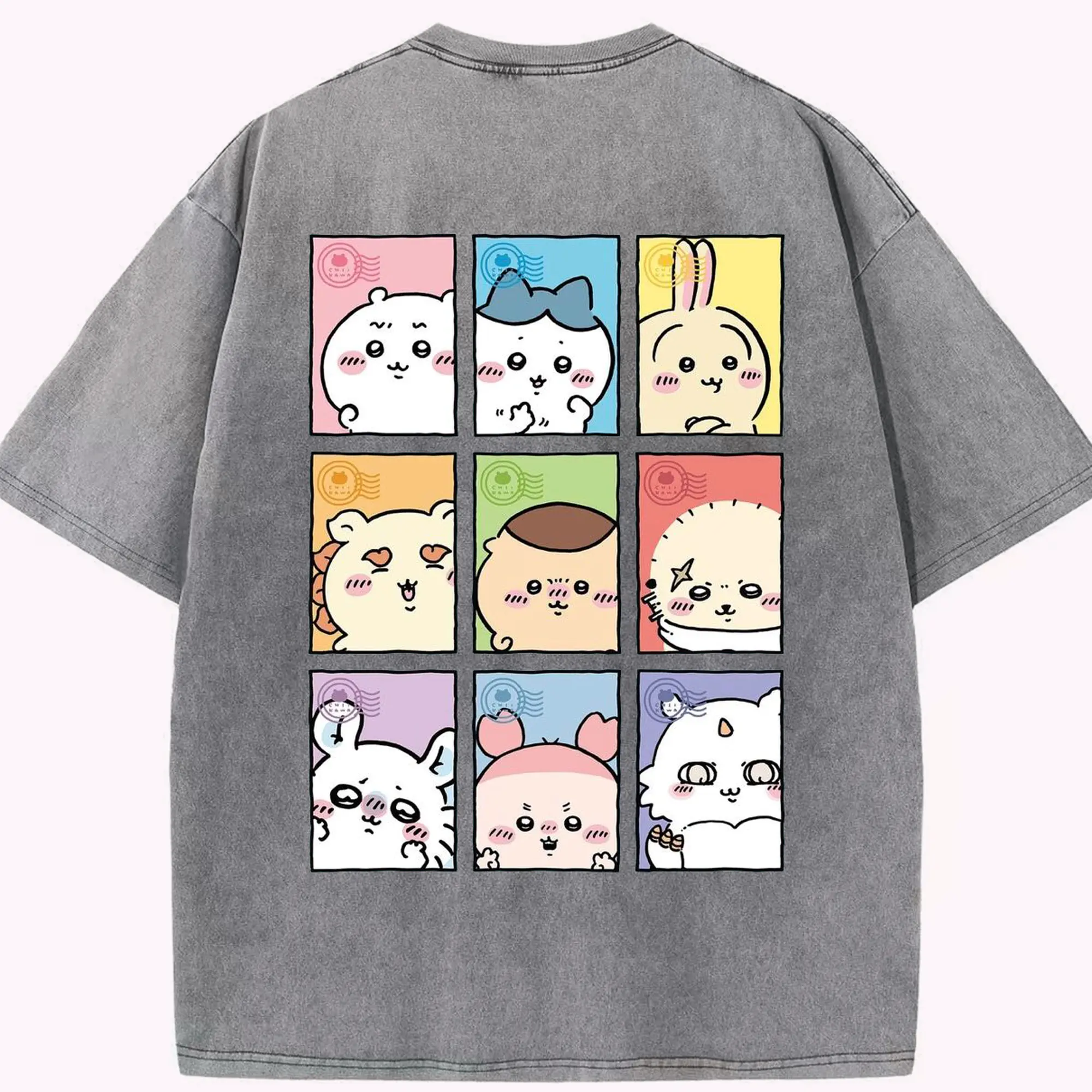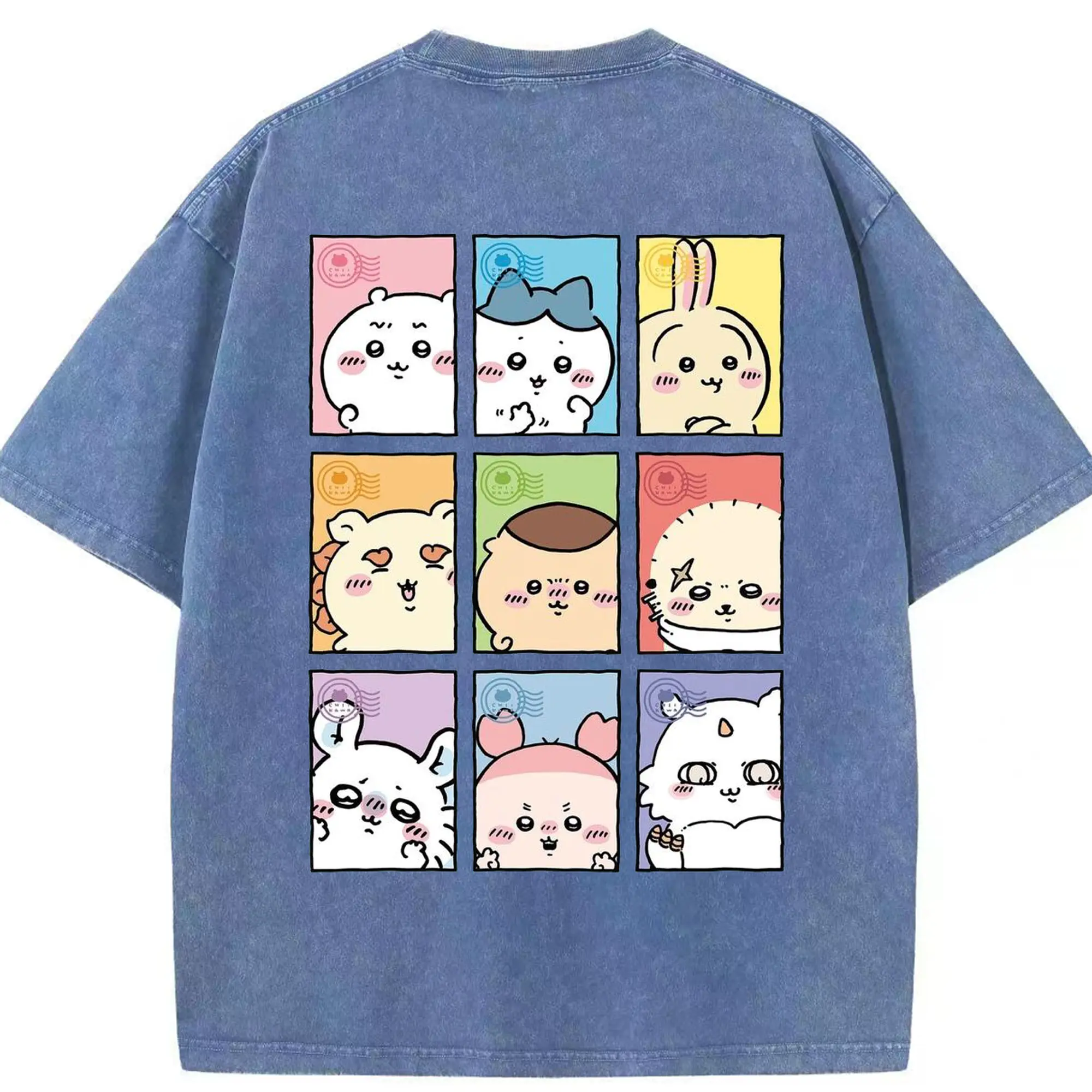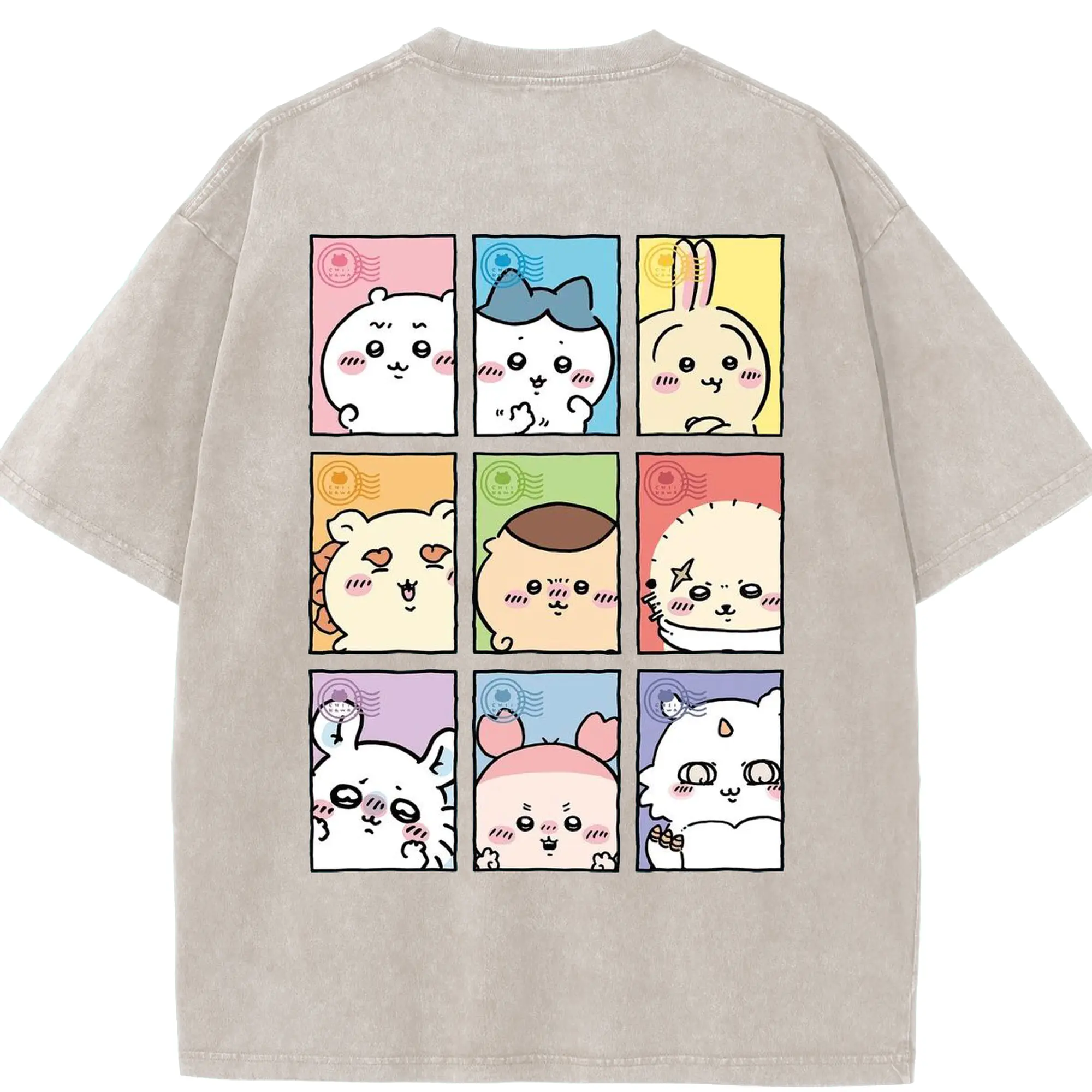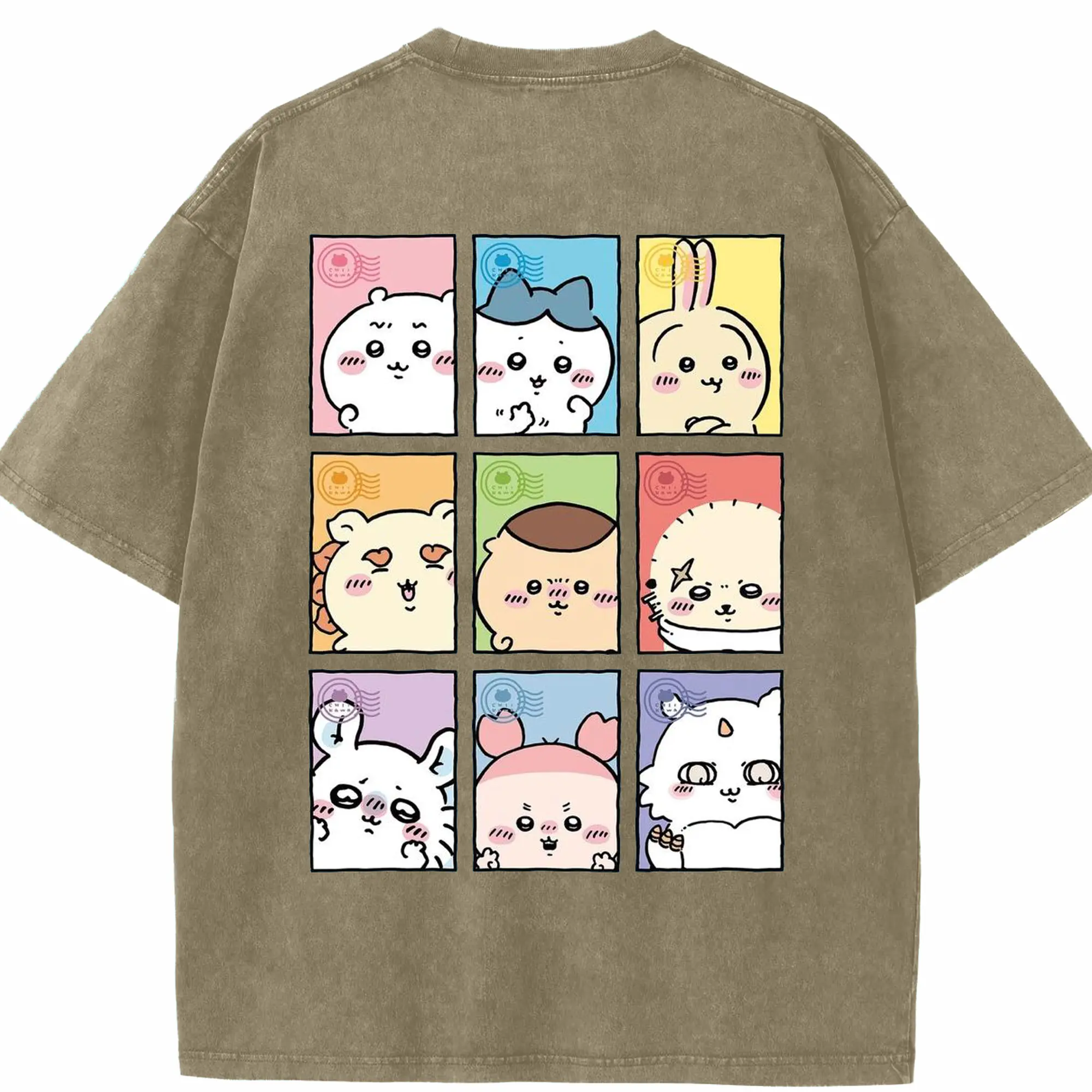 ちい が わ グッズ ちいかわ - 綿100% ヴィンテージ風 半袖Tシャツ ・ フロントプリント ・ 柔らか肌触り ・ 通気性 快適 ・ スポーツ カジュアル 外出用