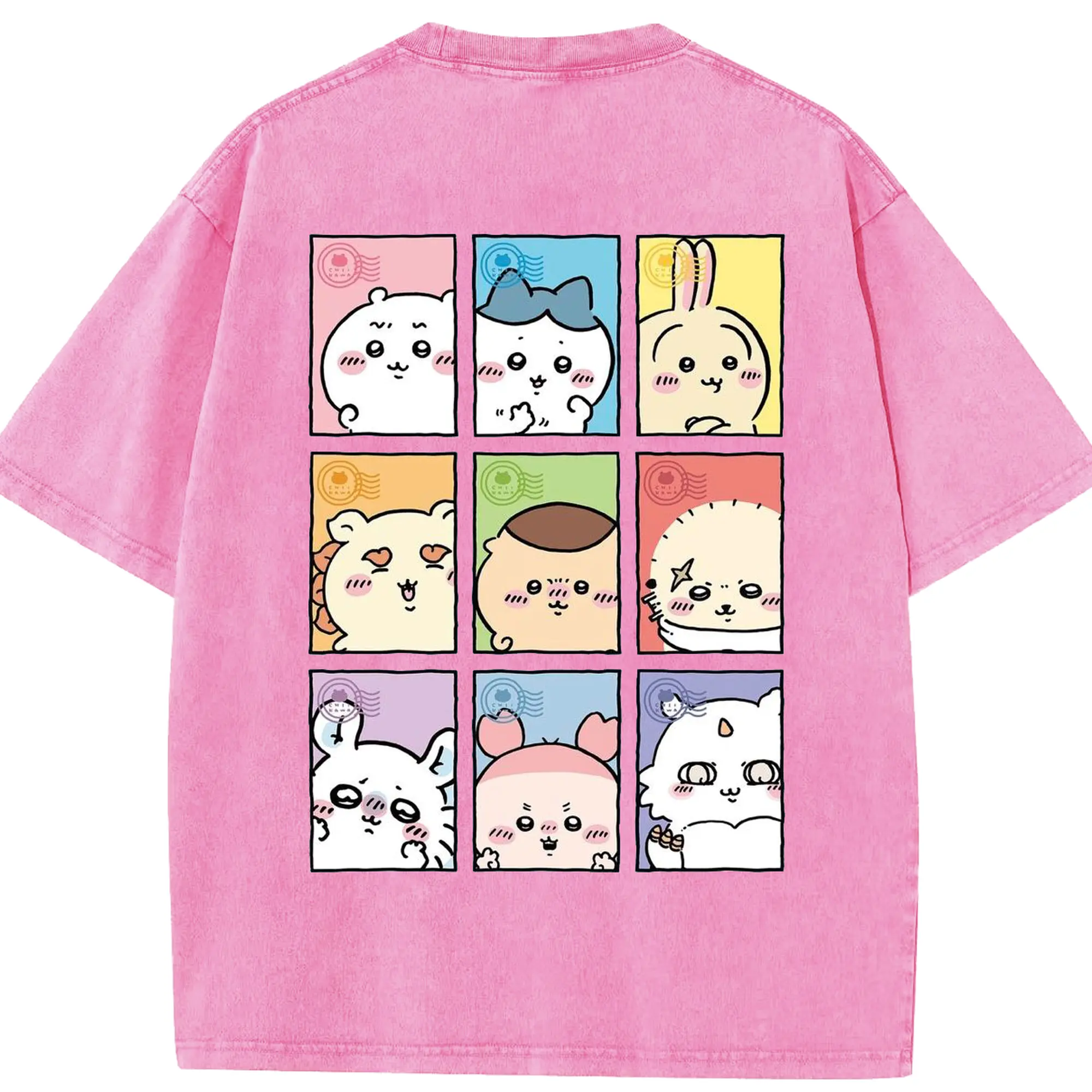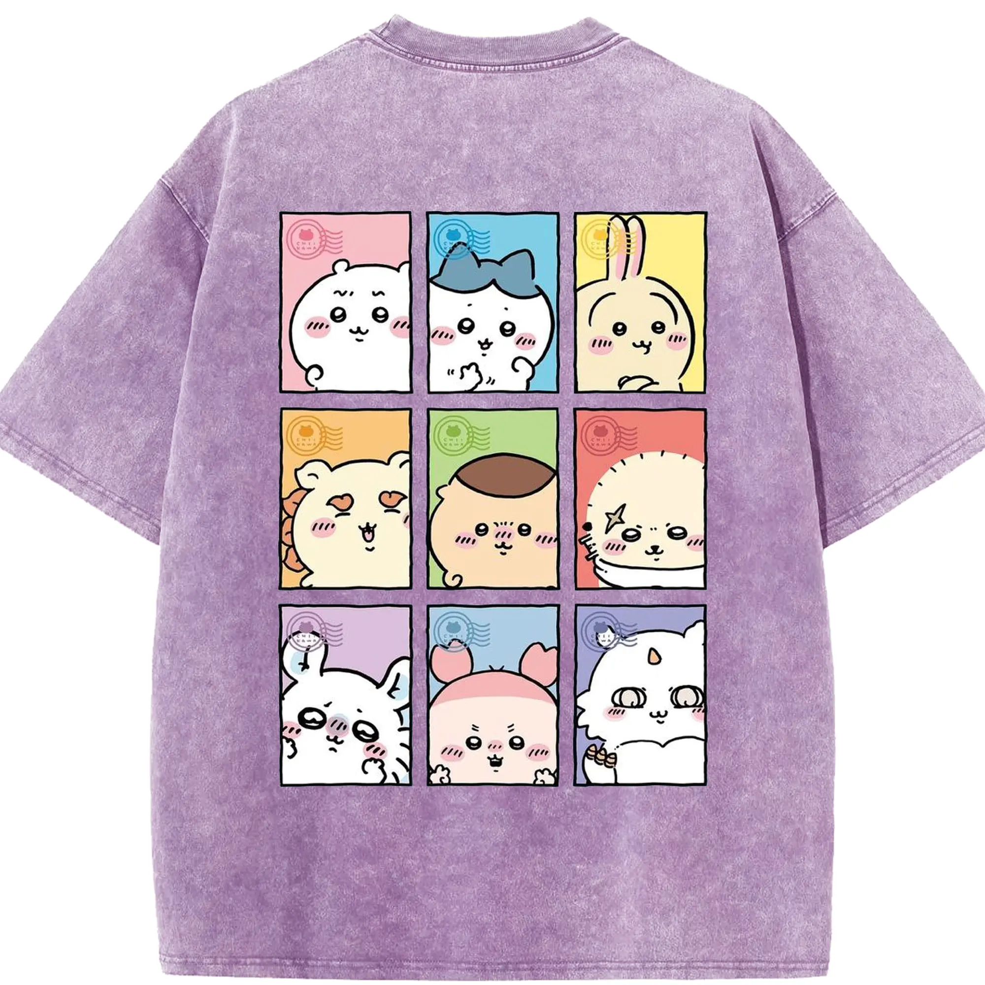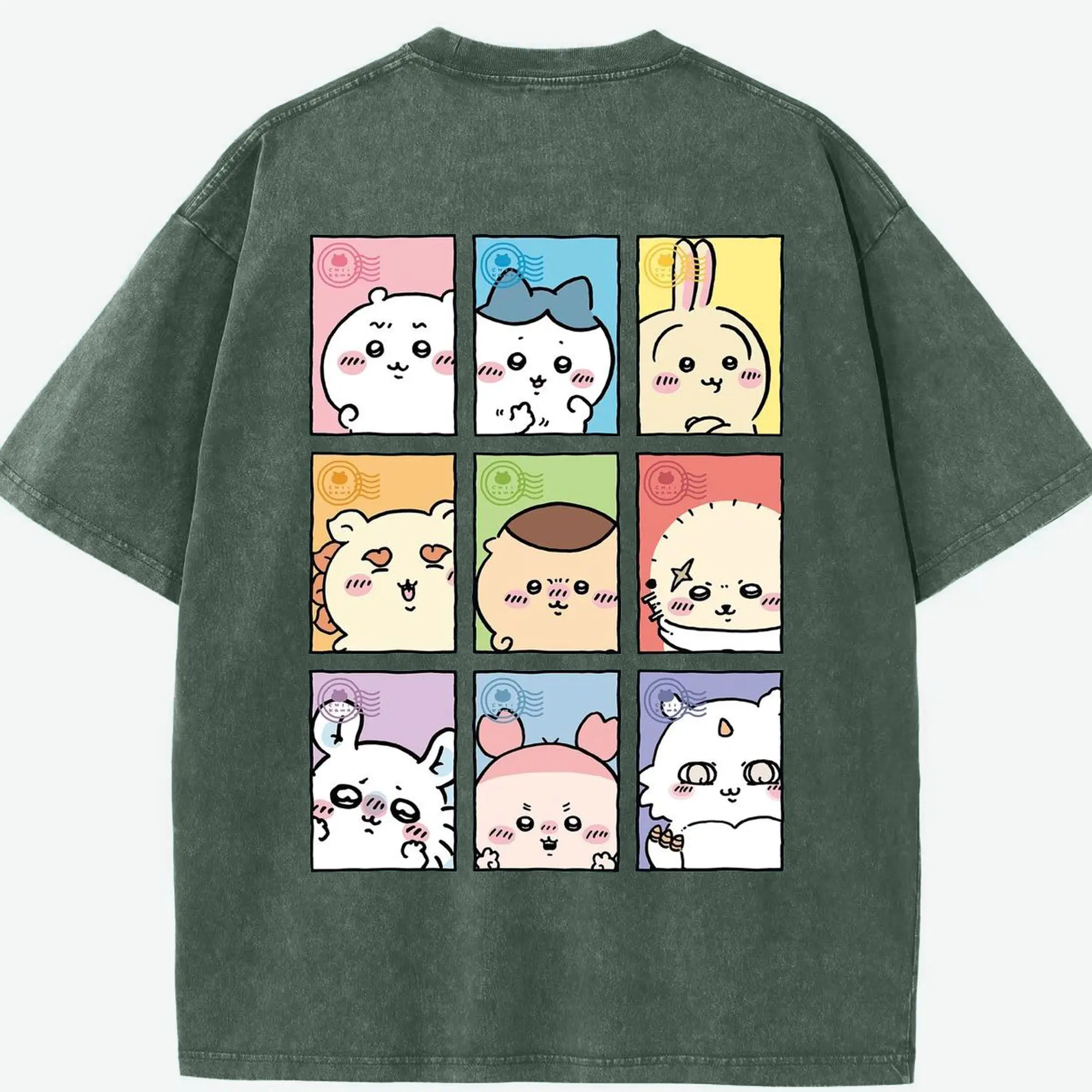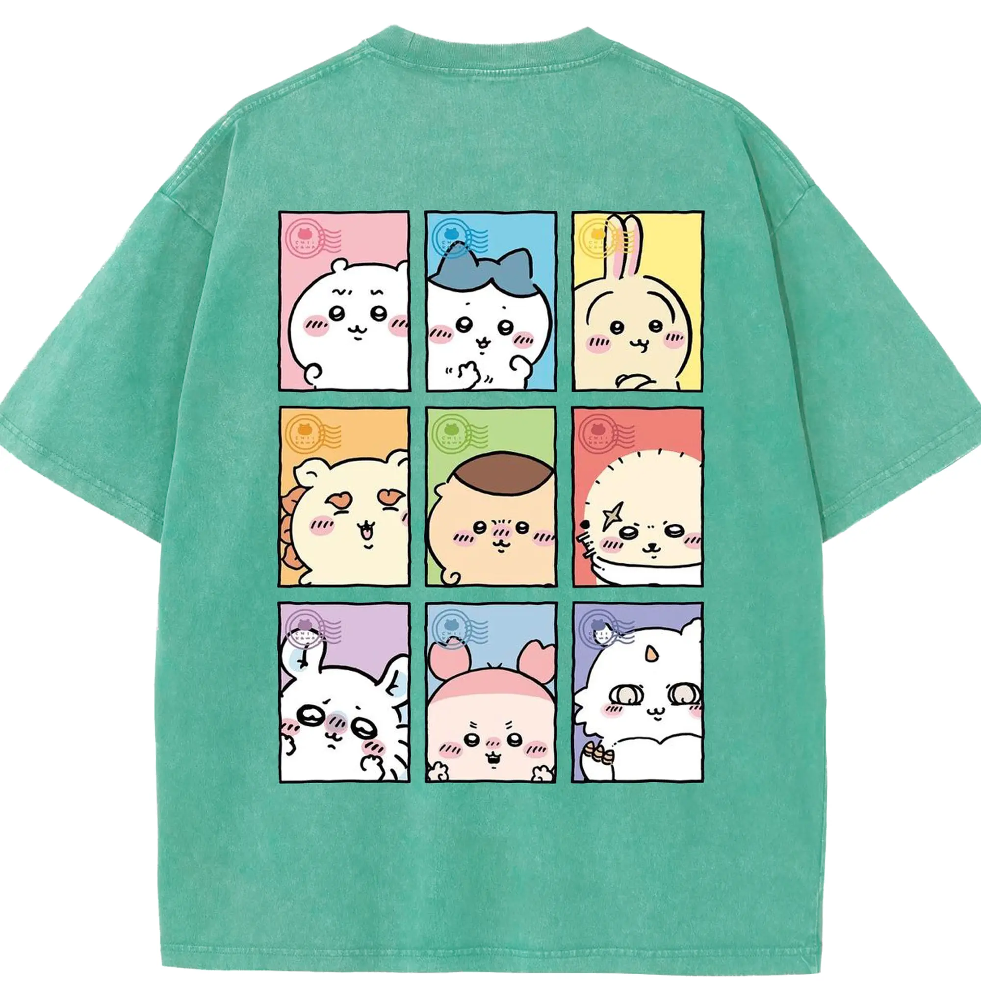 ちい が わ グッズ ちいかわ - 綿100% ヴィンテージ風 半袖Tシャツ ・ フロントプリント ・ 柔らか肌触り ・ 通気性 快適 ・ スポーツ カジュアル 外出用