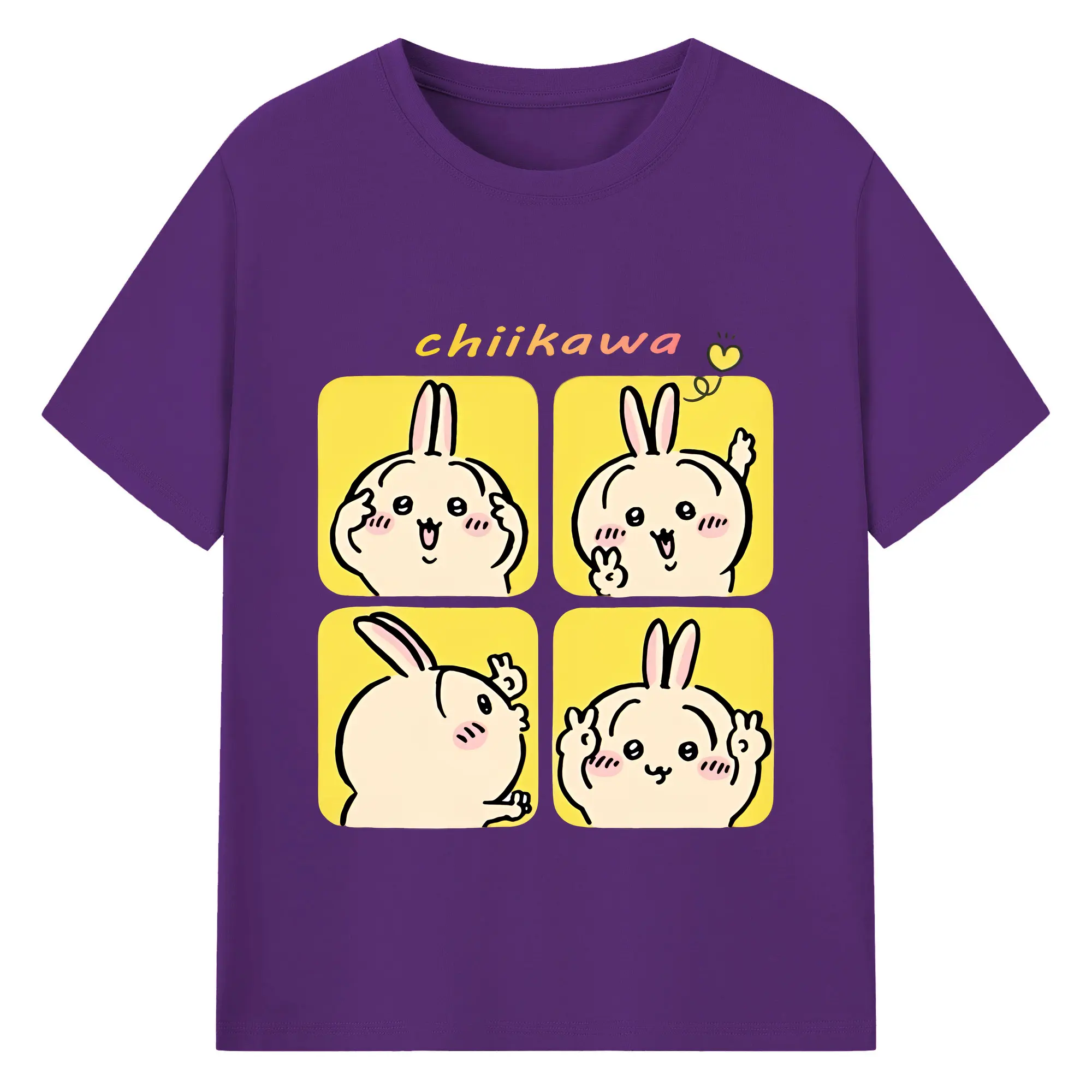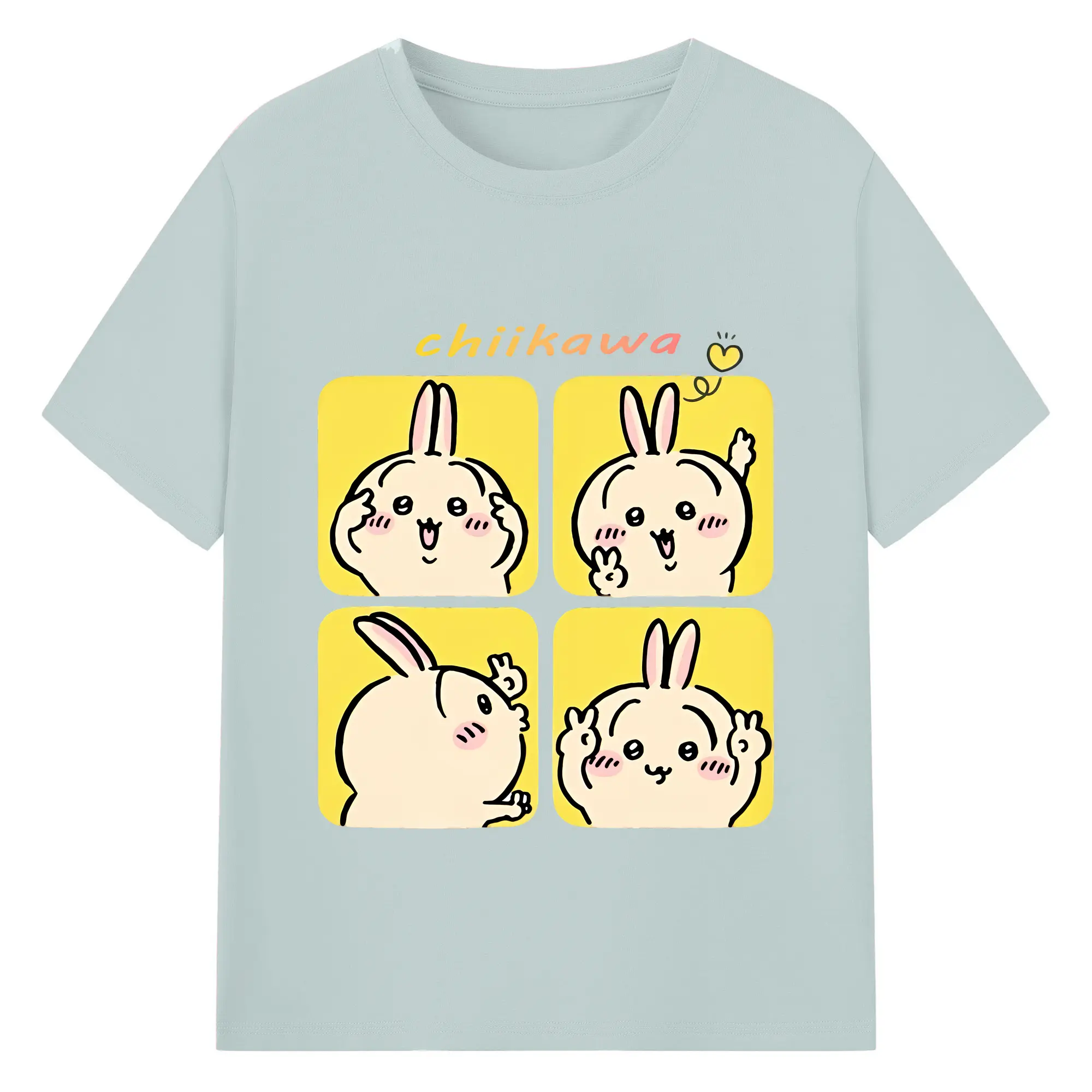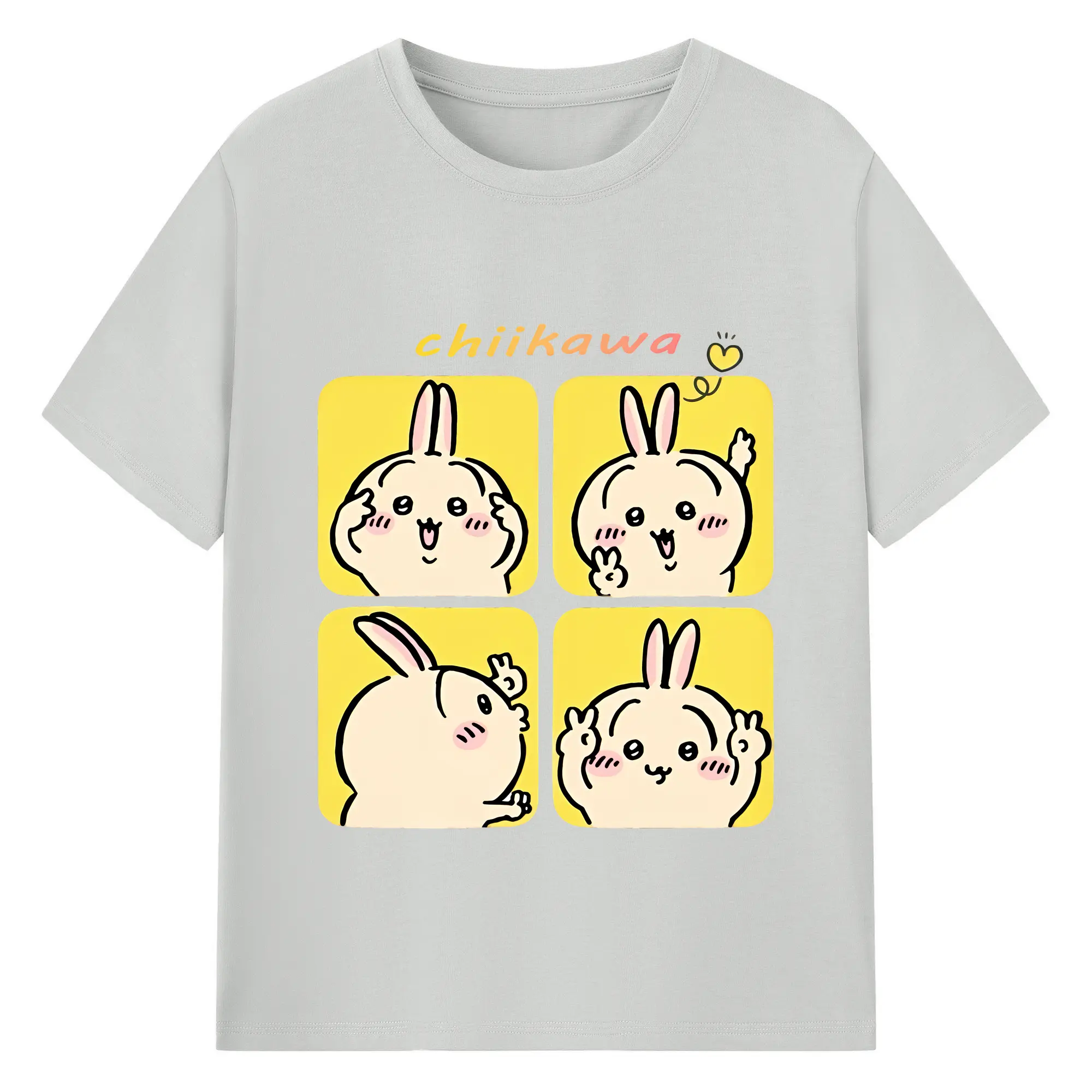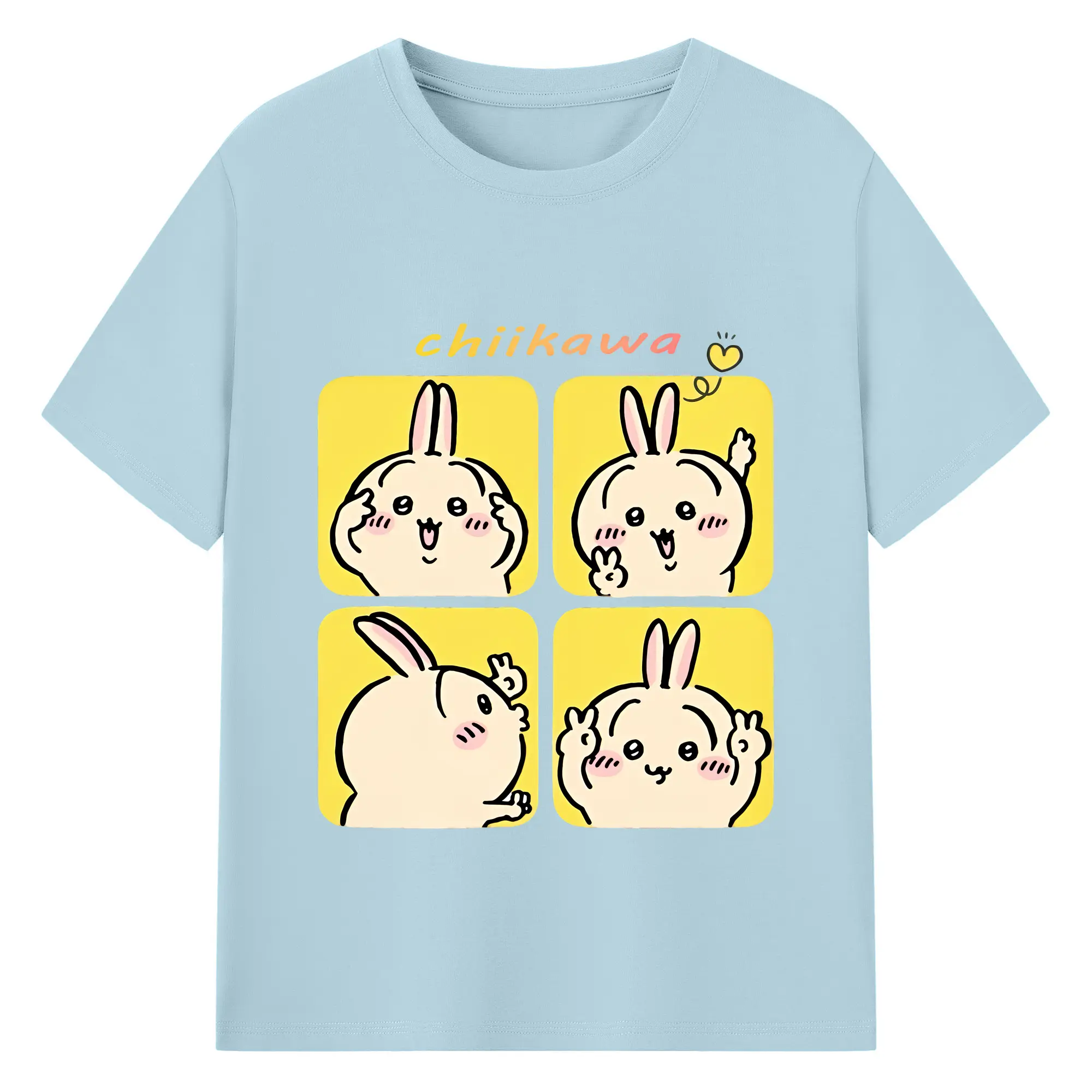 ちい が わ グッズ うさぎ - 綿100% 半袖Tシャツ ・ バックプリント ・ 快適 通気性 ・ 日常使い 散歩 スポーツ用