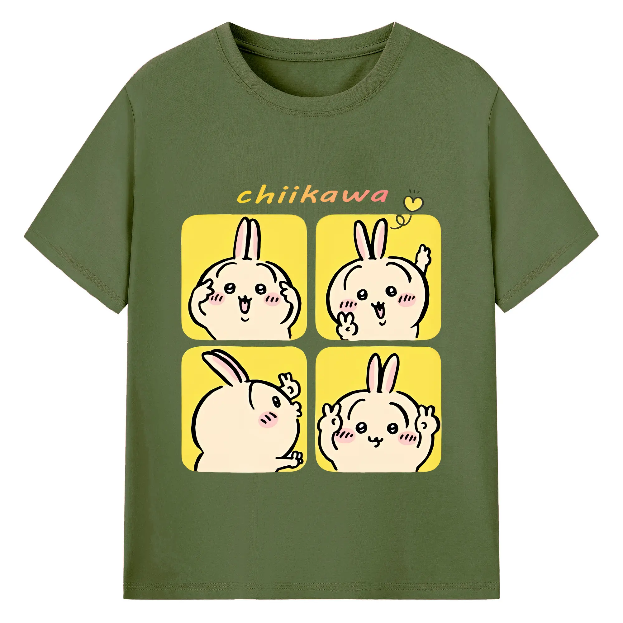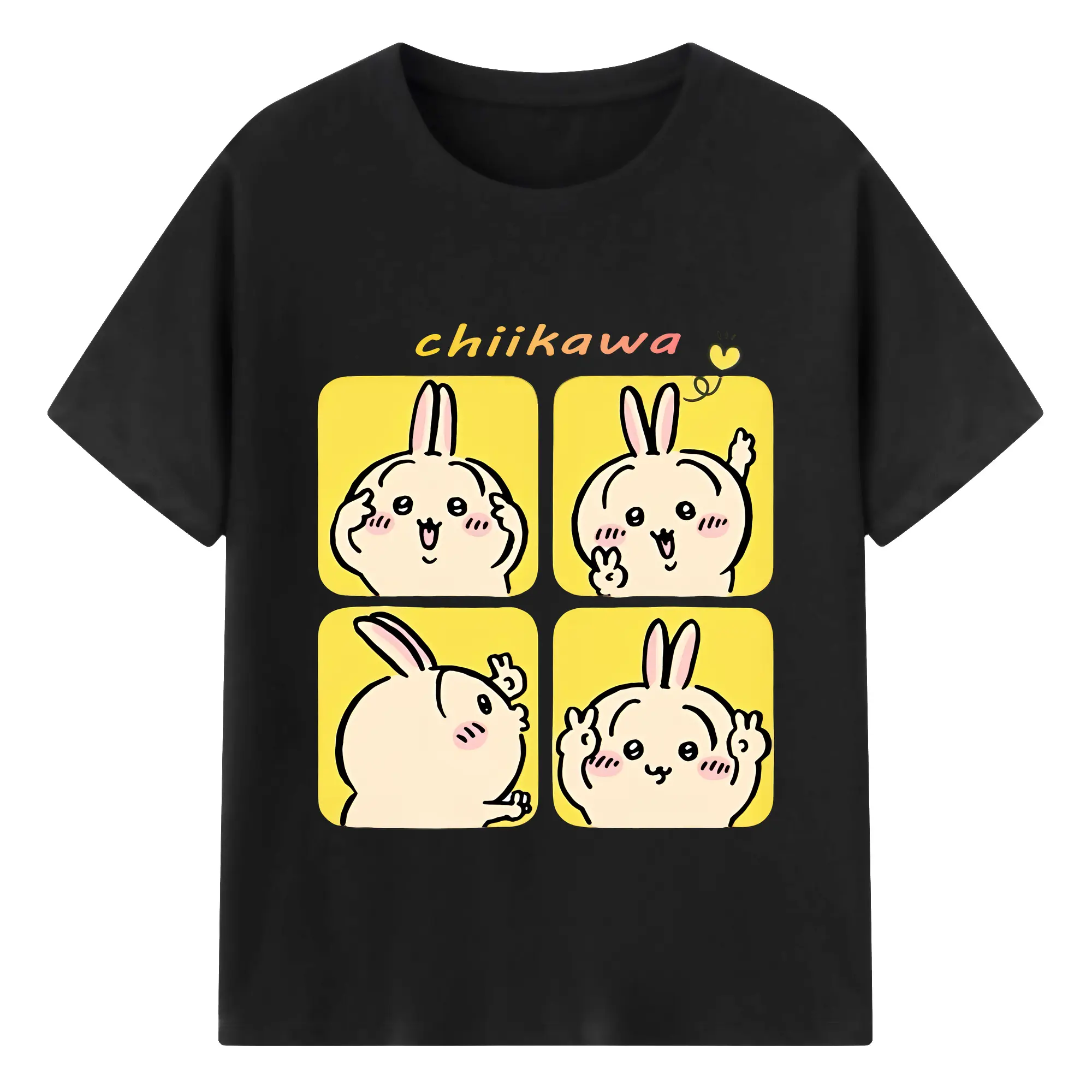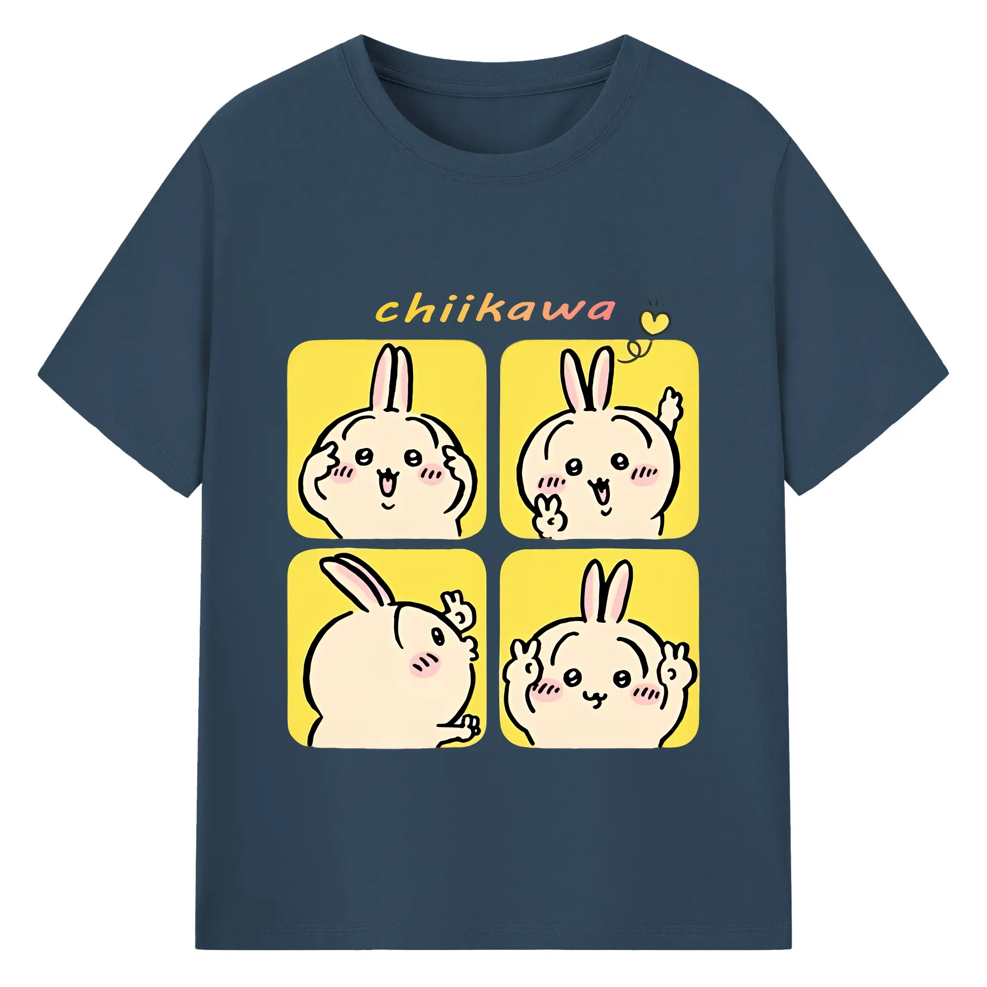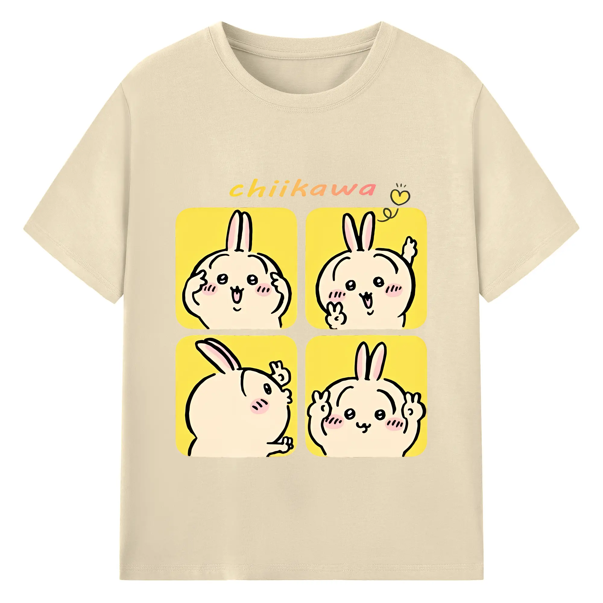 ちい が わ グッズ うさぎ - 綿100% 半袖Tシャツ ・ バックプリント ・ 快適 通気性 ・ 日常使い 散歩 スポーツ用