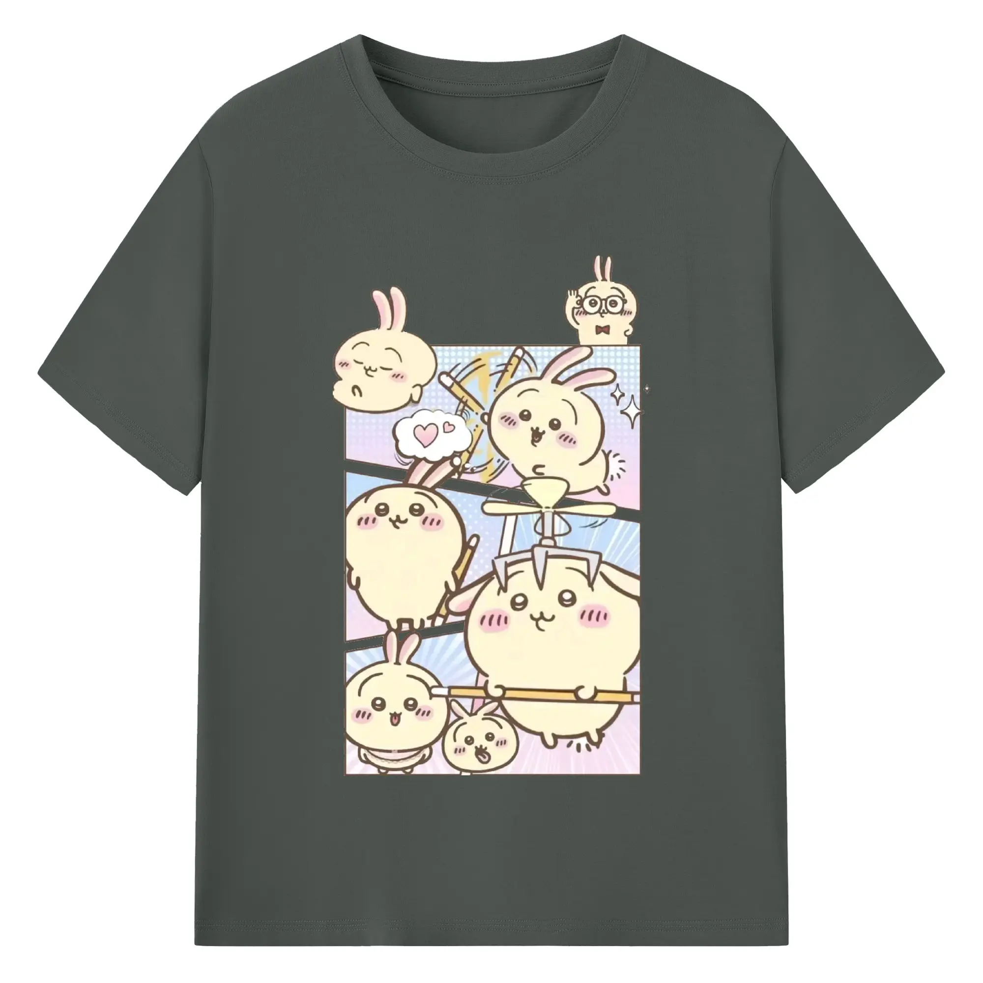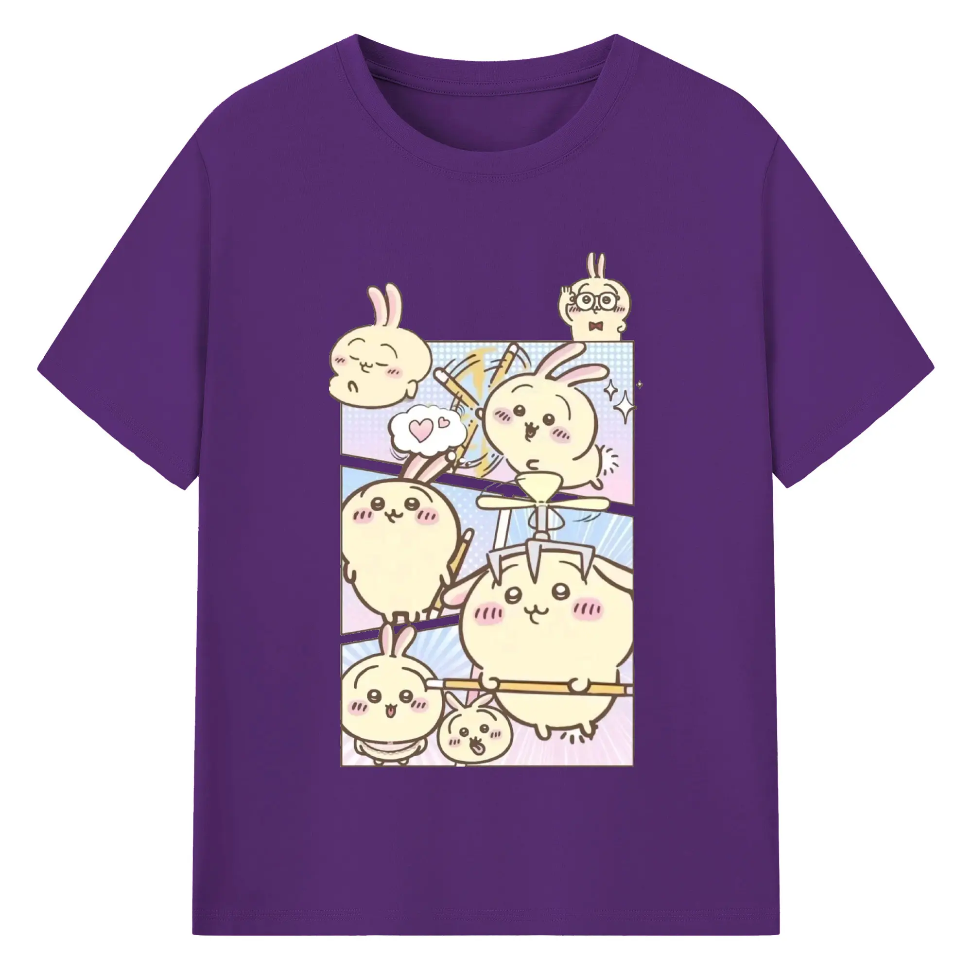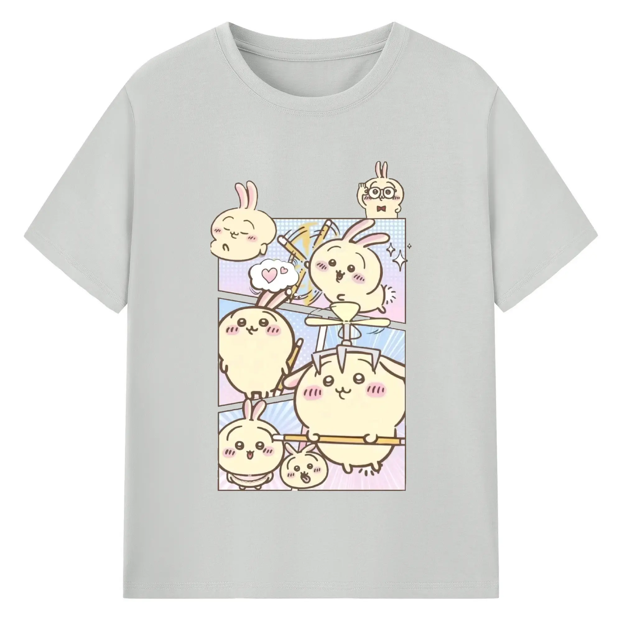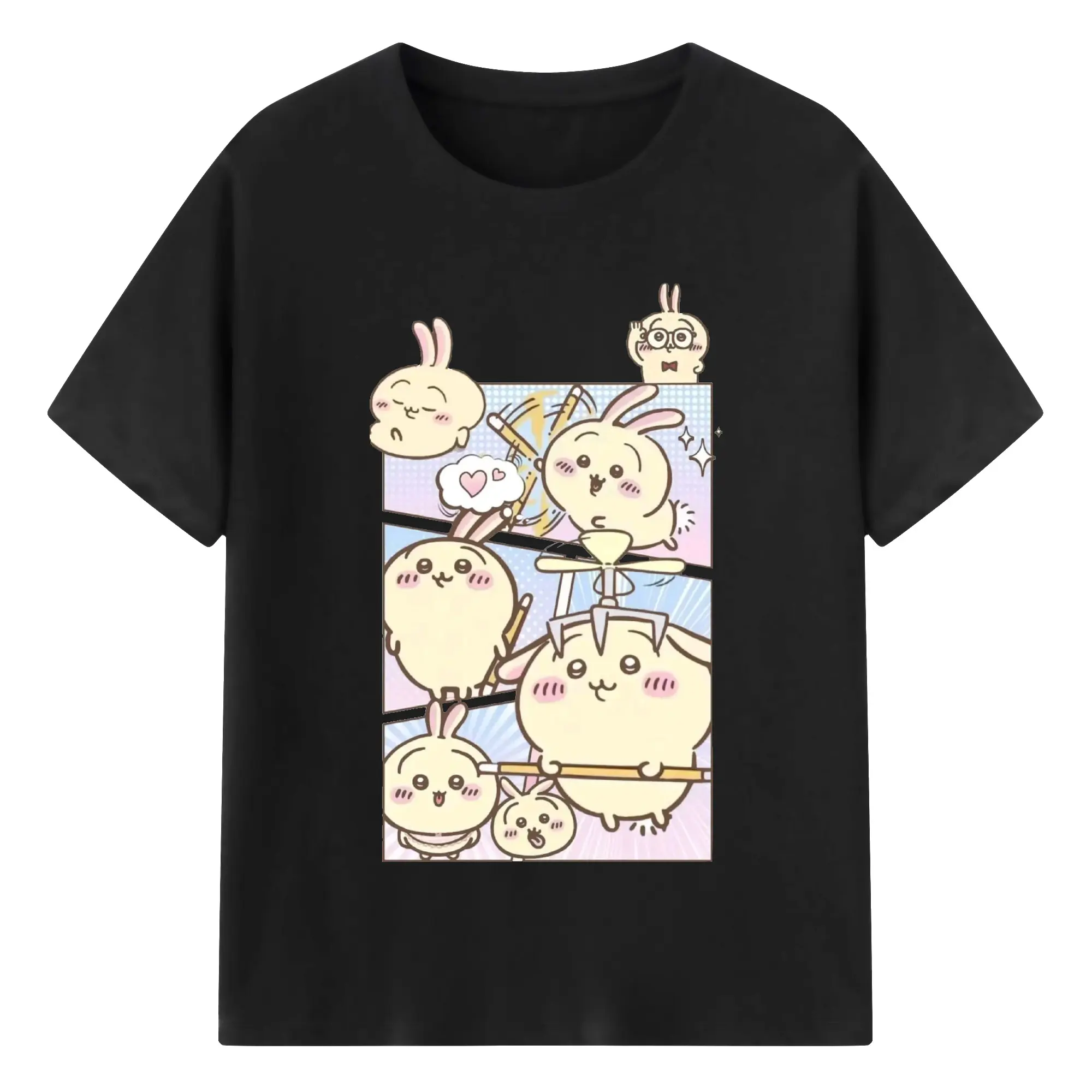 ちい が わ グッズ うさぎ - 綿100% 半袖Tシャツ ・ フロントプリント ・ 快適 通気性 ・ 日常使い 散歩 スポーツ用