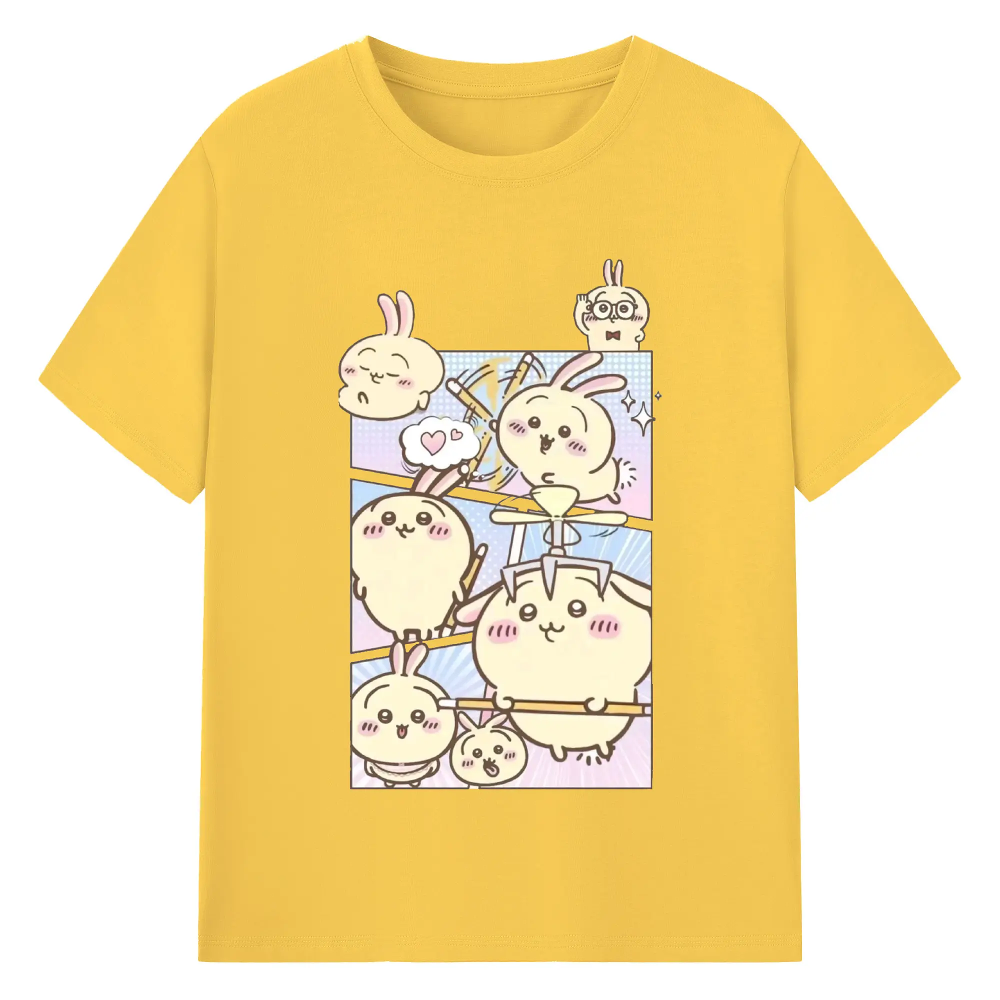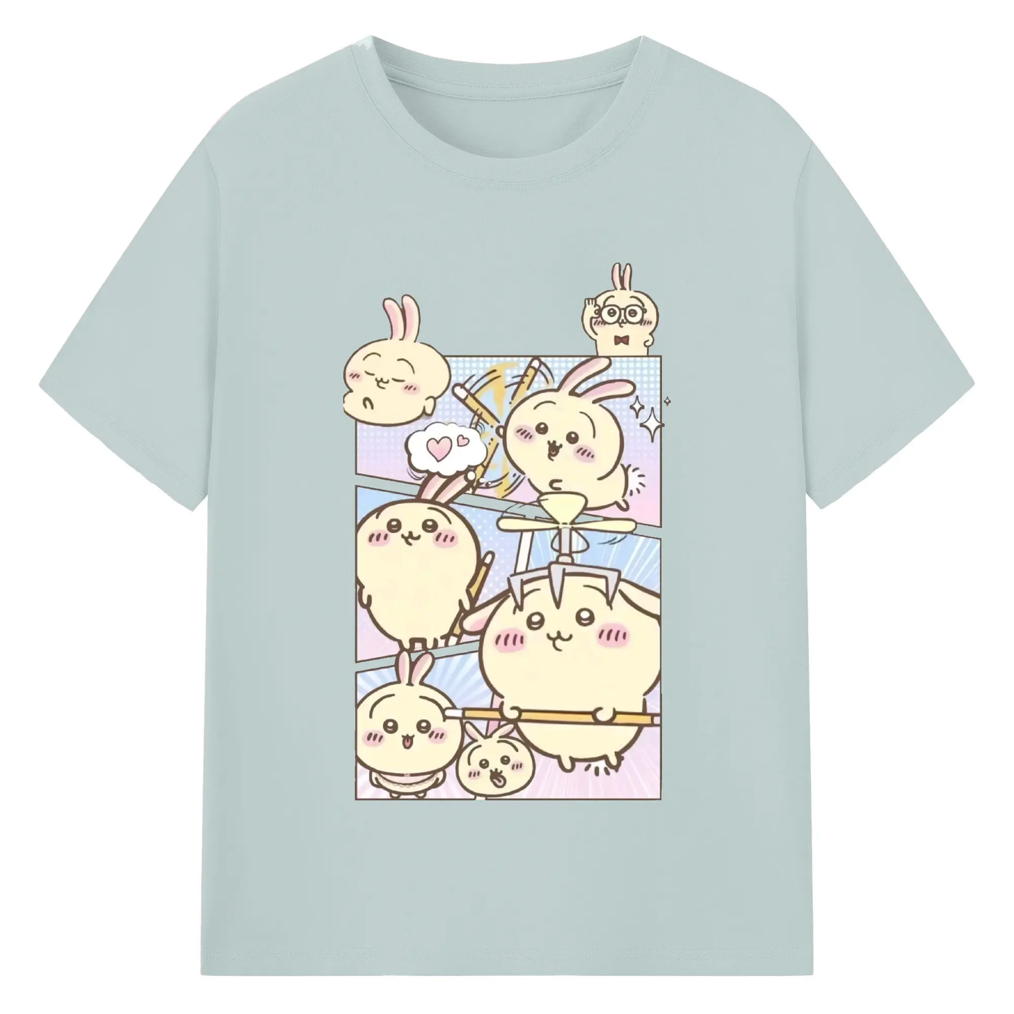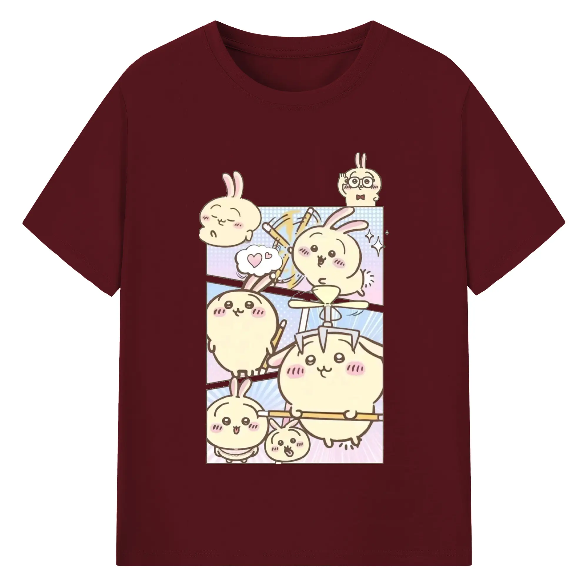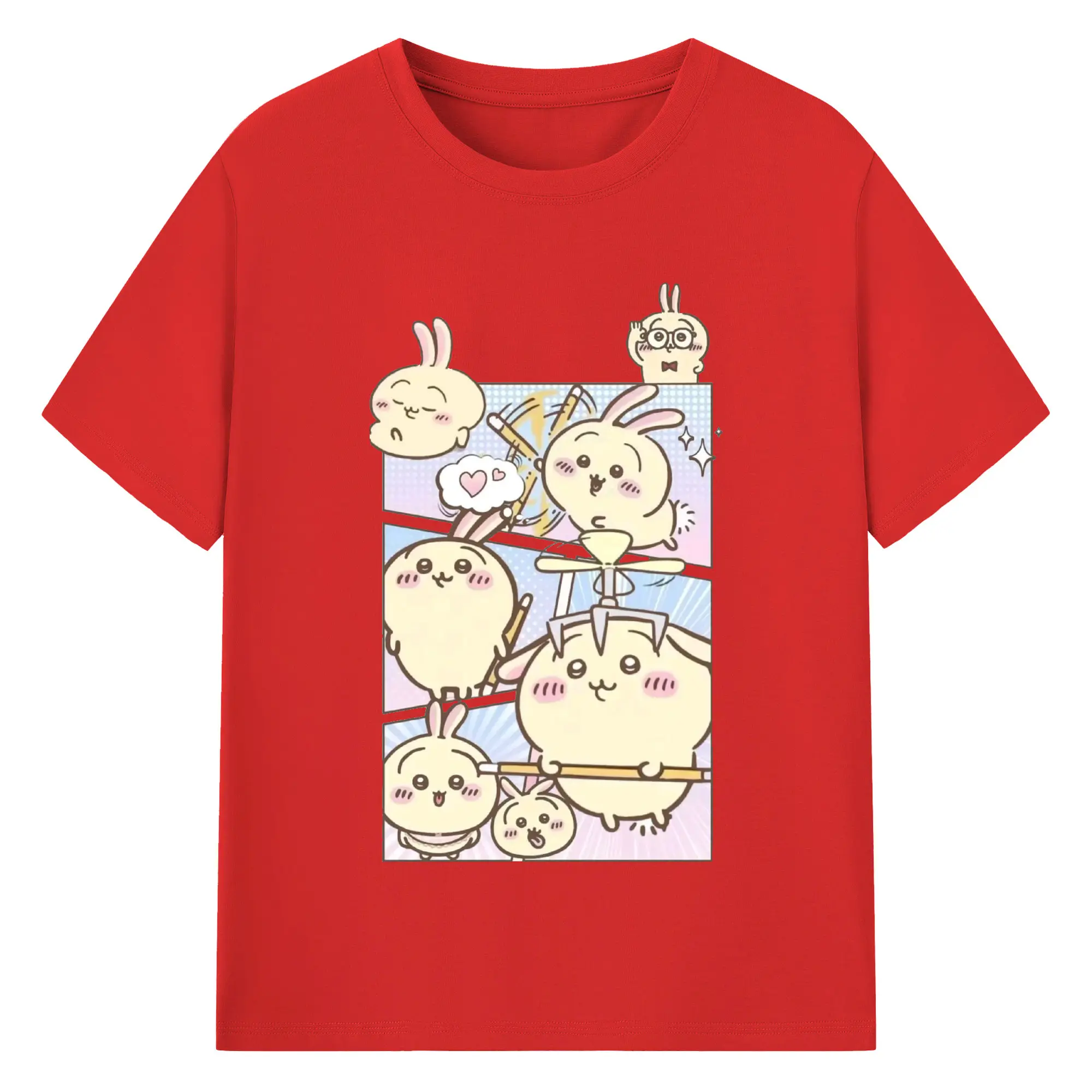 ちい が わ グッズ うさぎ - 綿100% 半袖Tシャツ ・ フロントプリント ・ 快適 通気性 ・ 日常使い 散歩 スポーツ用