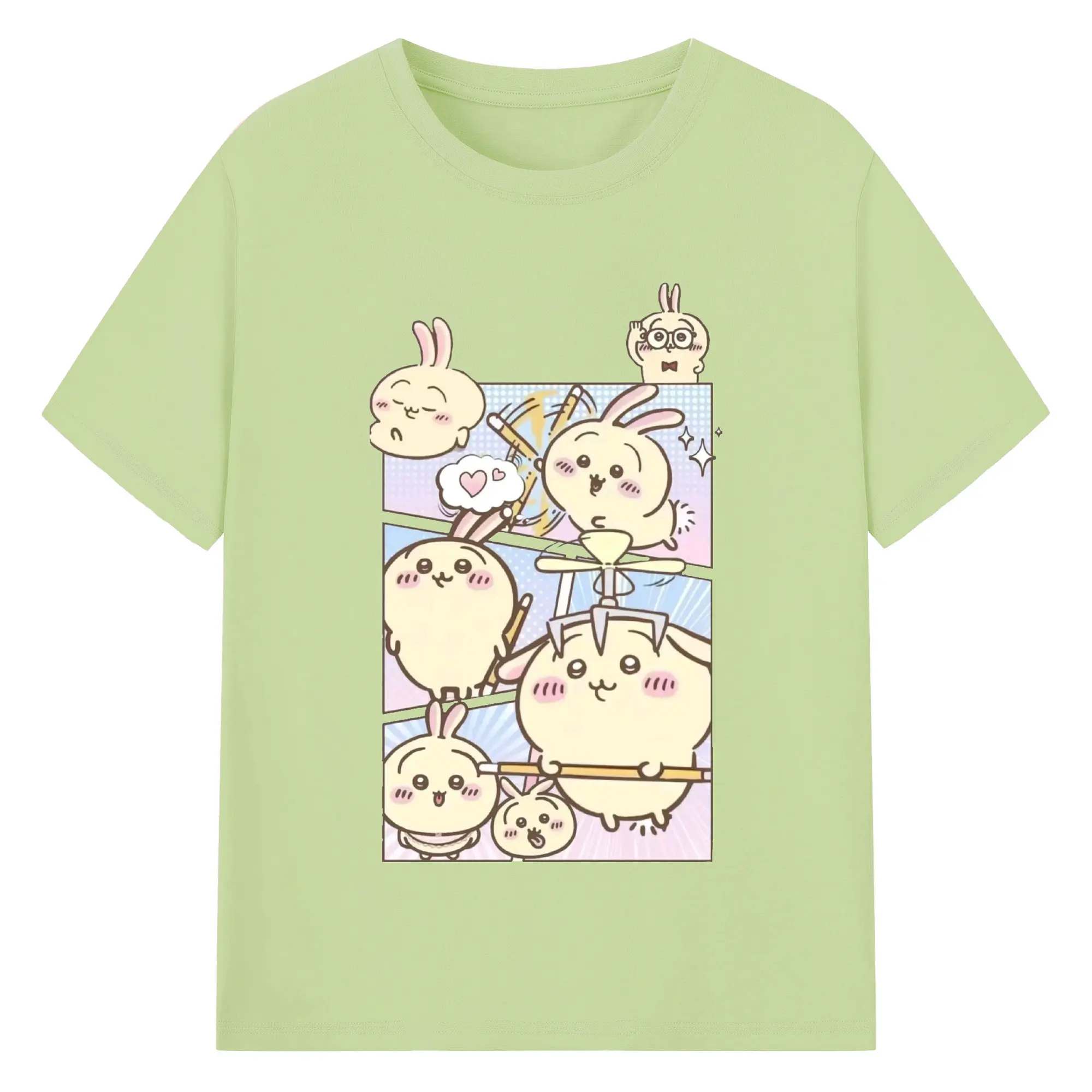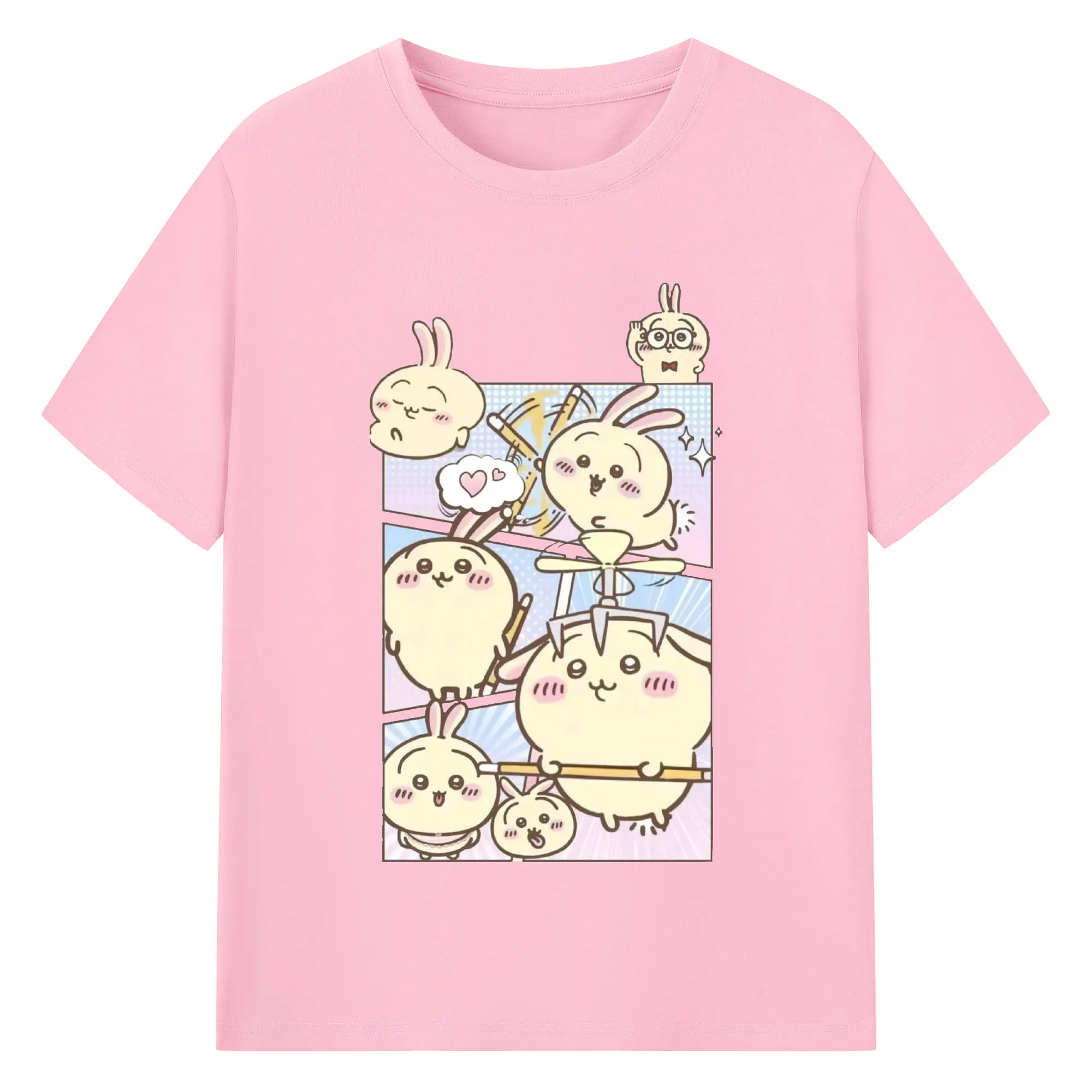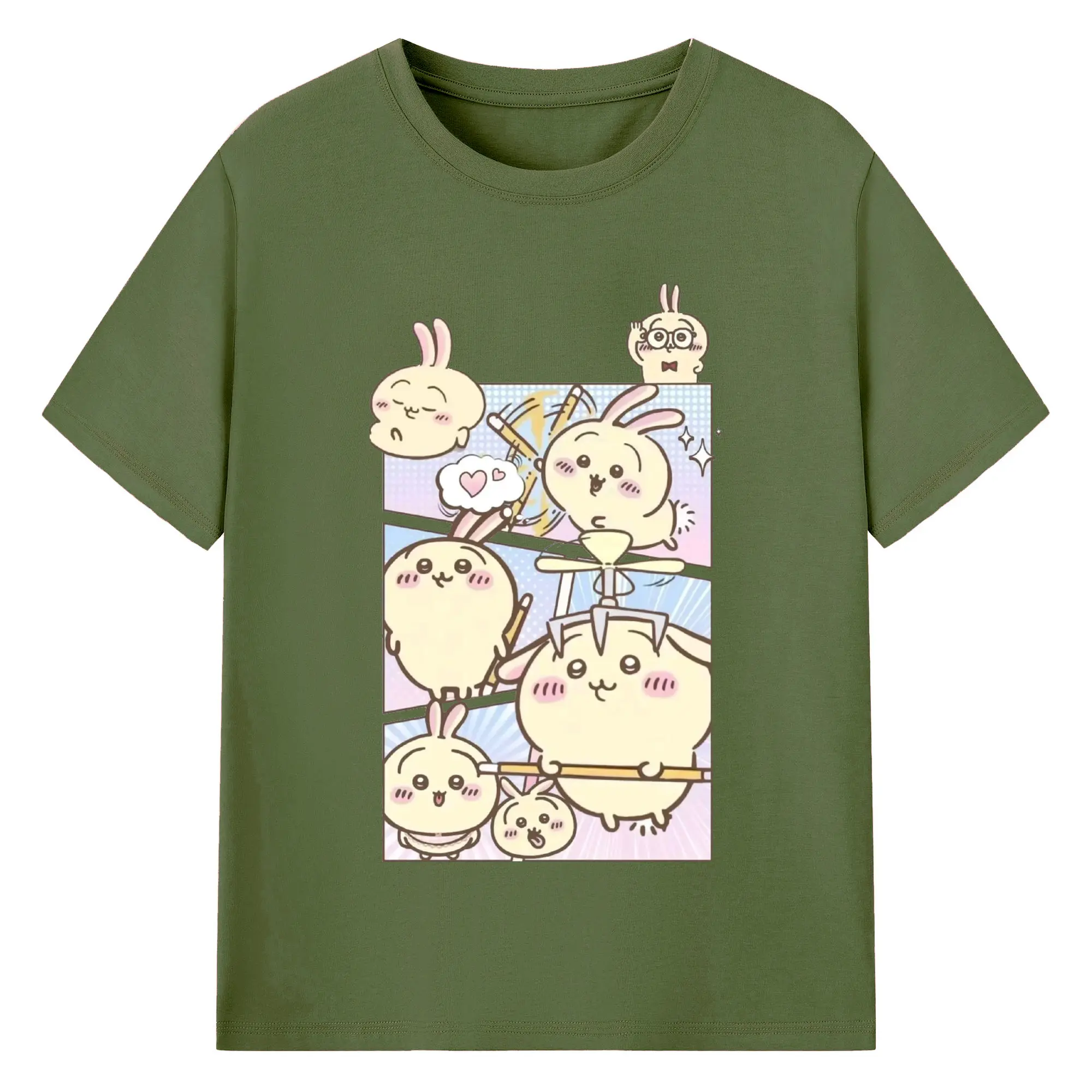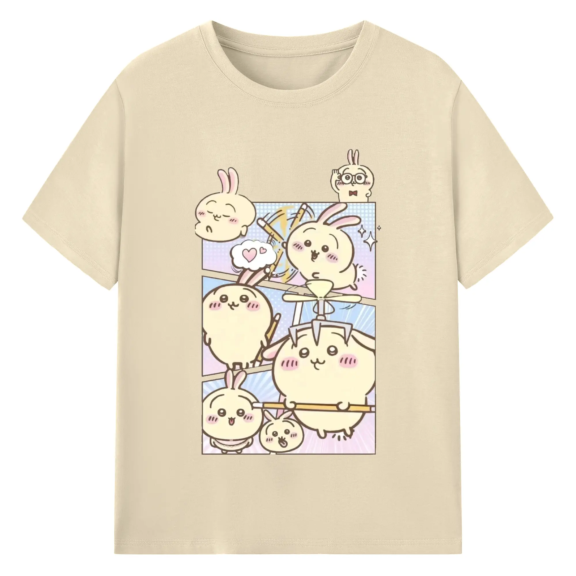 ちい が わ グッズ うさぎ - 綿100% 半袖Tシャツ ・ フロントプリント ・ 快適 通気性 ・ 日常使い 散歩 スポーツ用