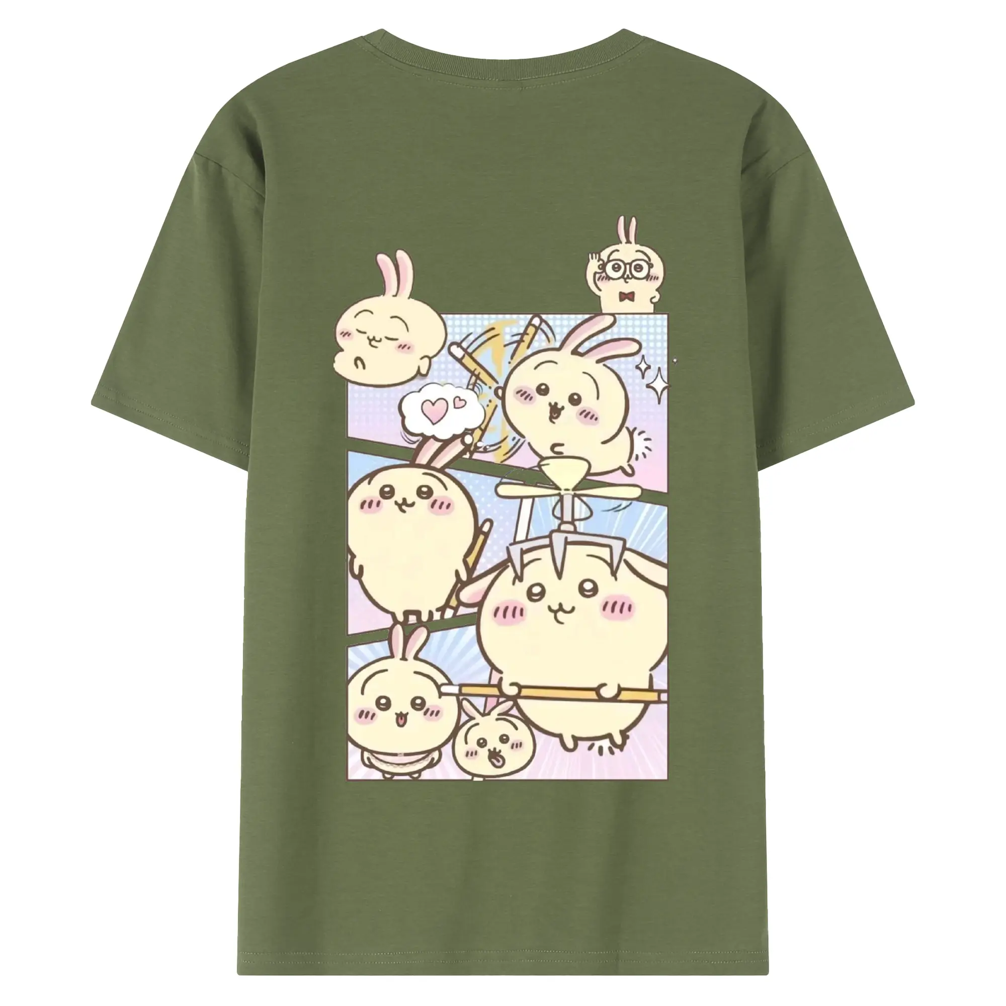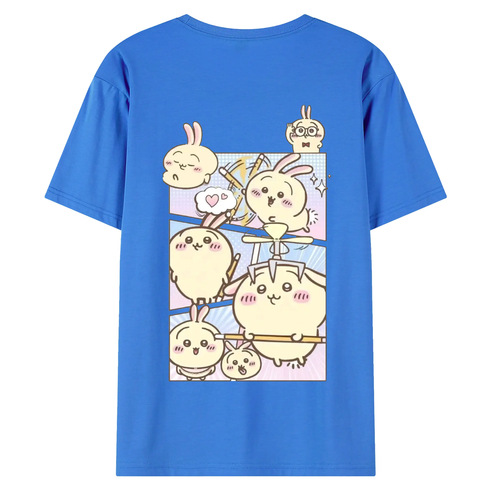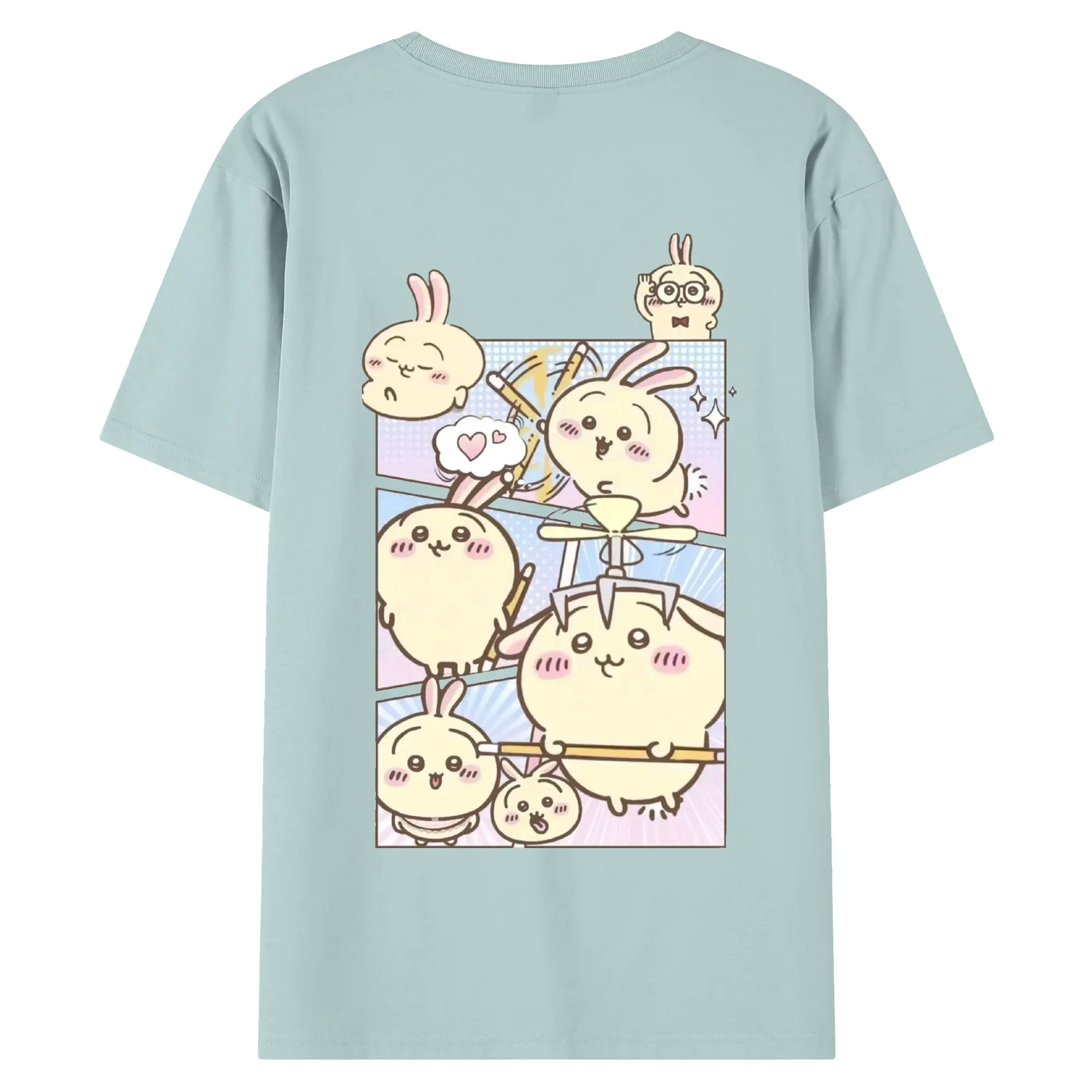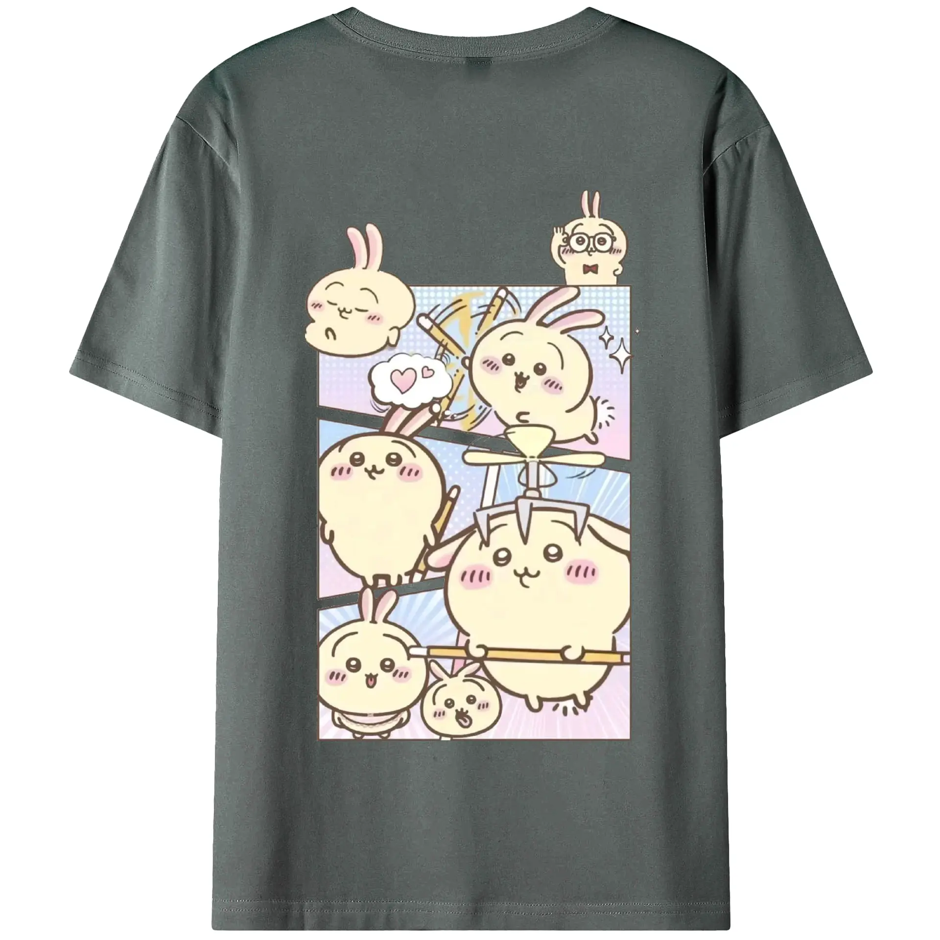 ちい が わ グッズ うさぎ - 綿100% 半袖Tシャツ ・ フロントプリント ・ 快適 通気性 ・ 日常使い 散歩 スポーツ用