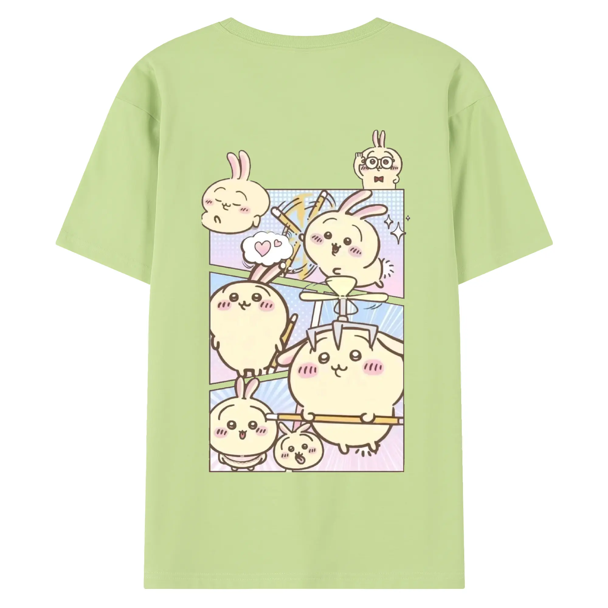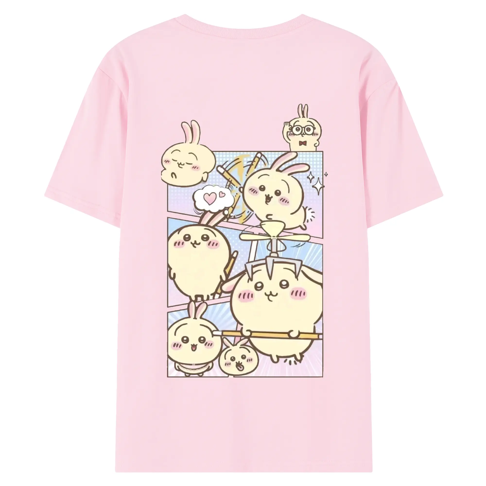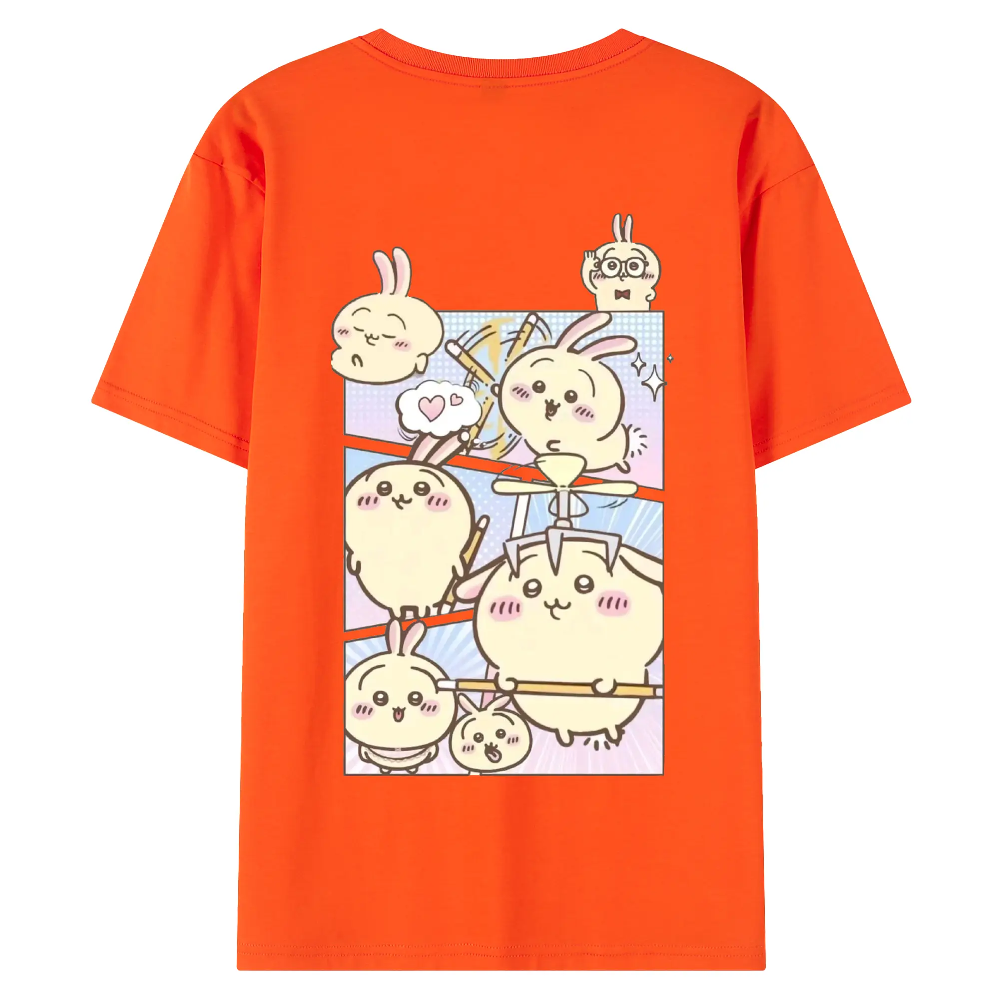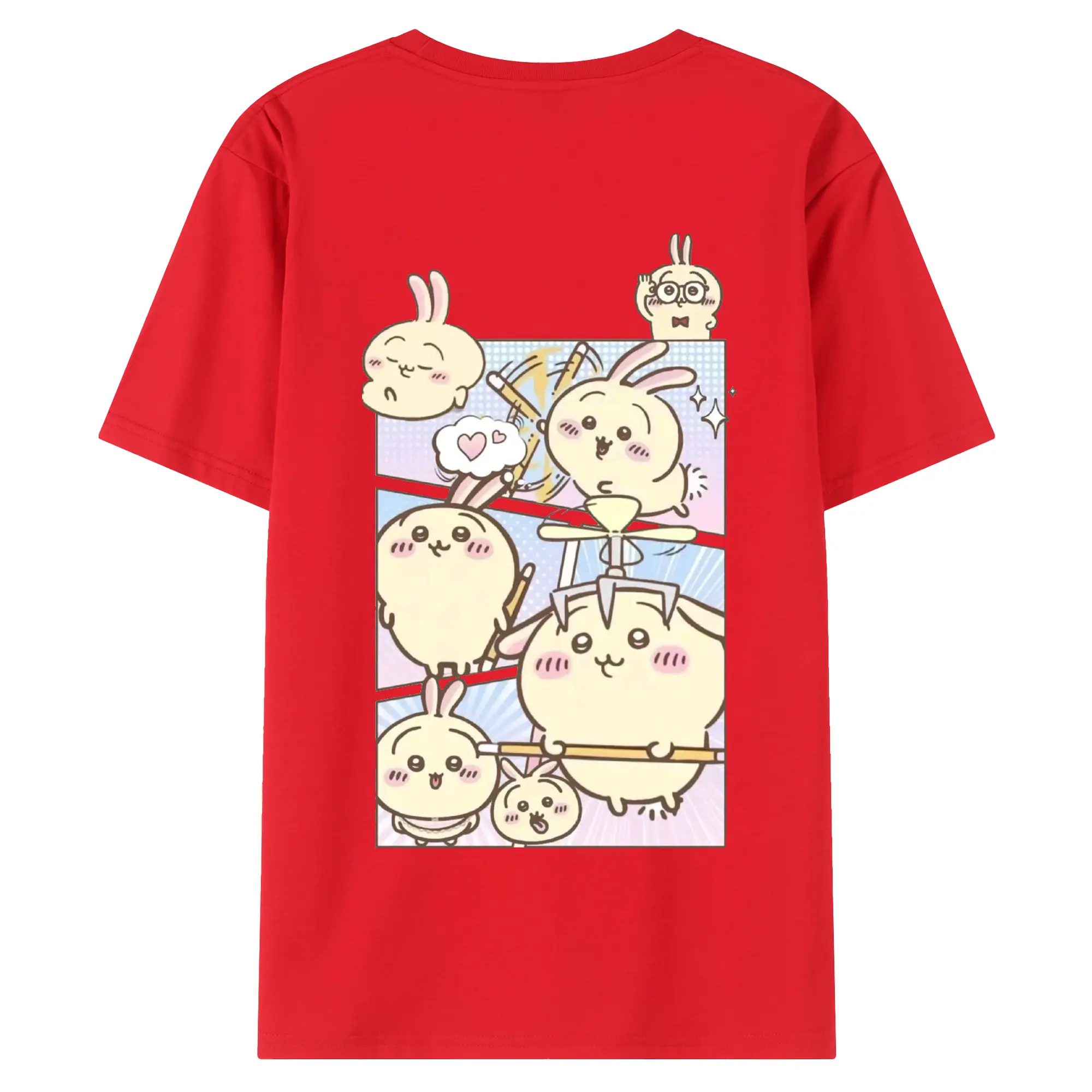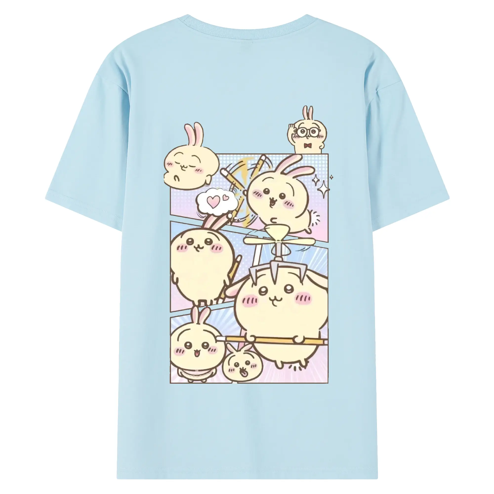 ちい が わ グッズ うさぎ - 綿100% 半袖Tシャツ ・ フロントプリント ・ 快適 通気性 ・ 日常使い 散歩 スポーツ用