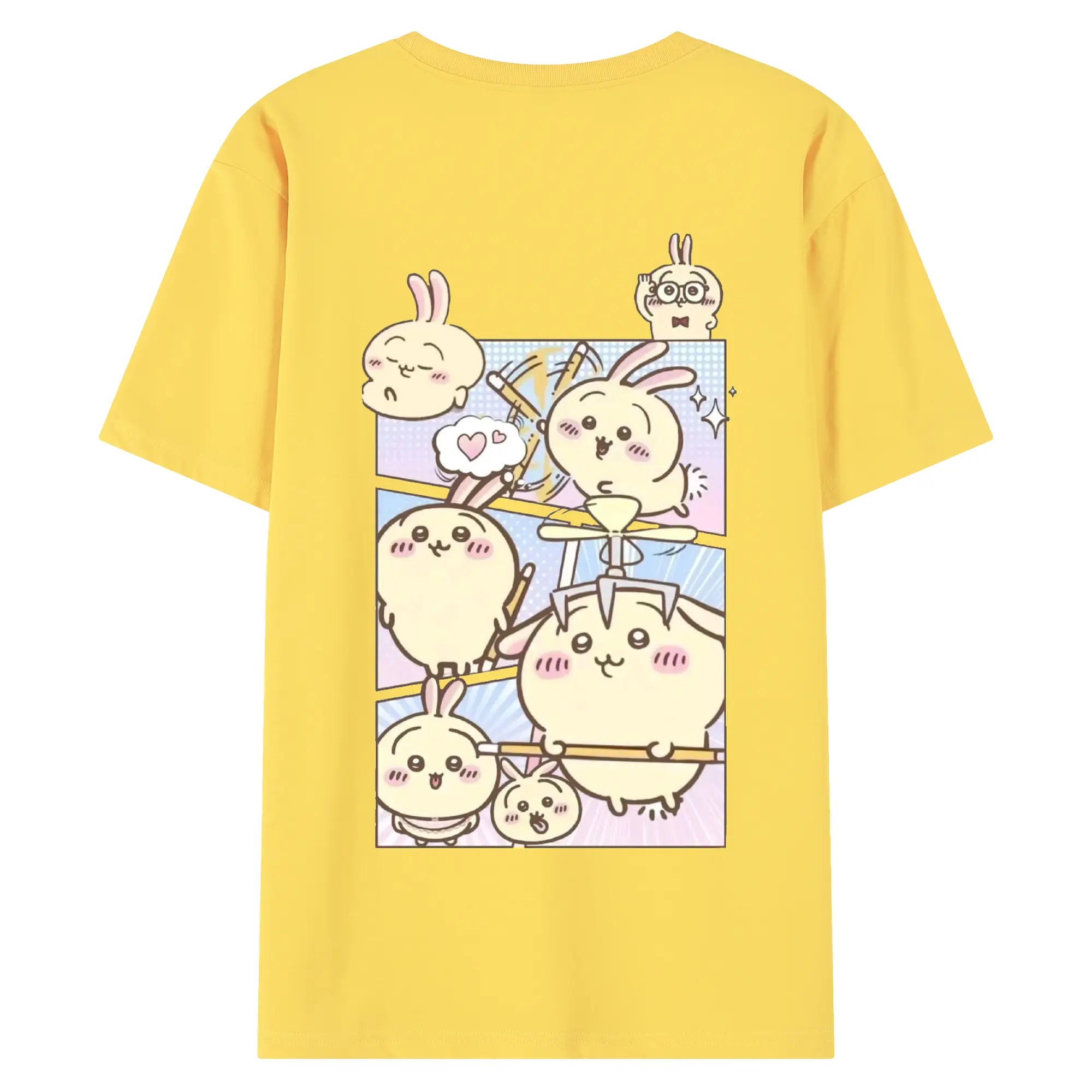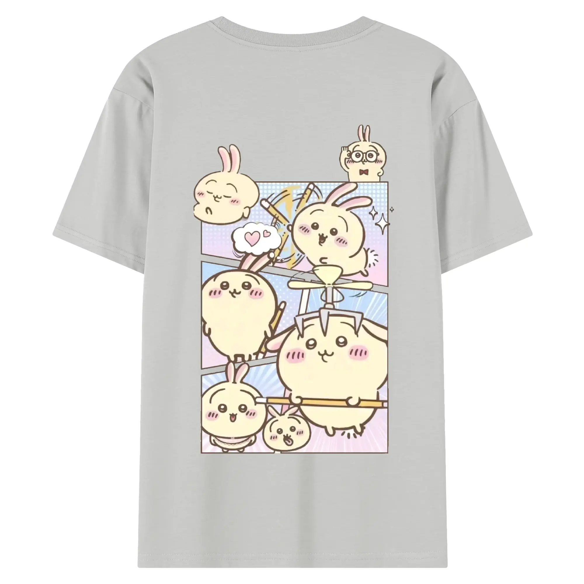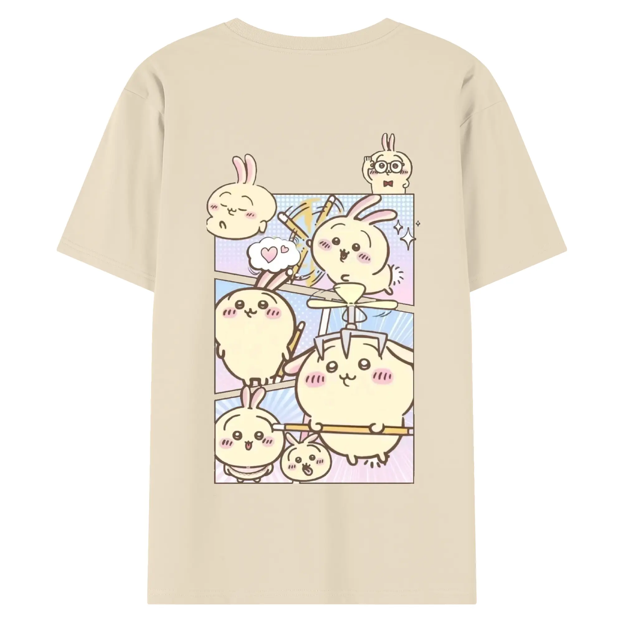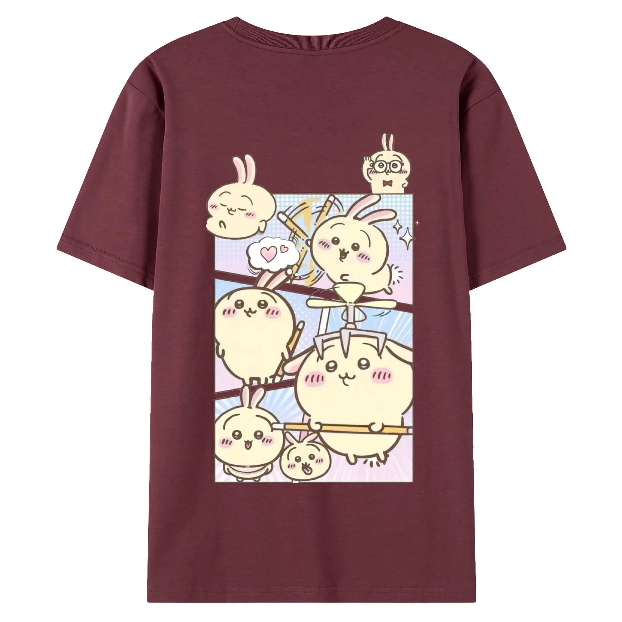 ちい が わ グッズ うさぎ - 綿100% ヴィンテージ風 半袖Tシャツ ・ 背面プリント ・ 柔らか肌触り ・ 通気性 快適 ・ スポーツ カジュアル 外出用