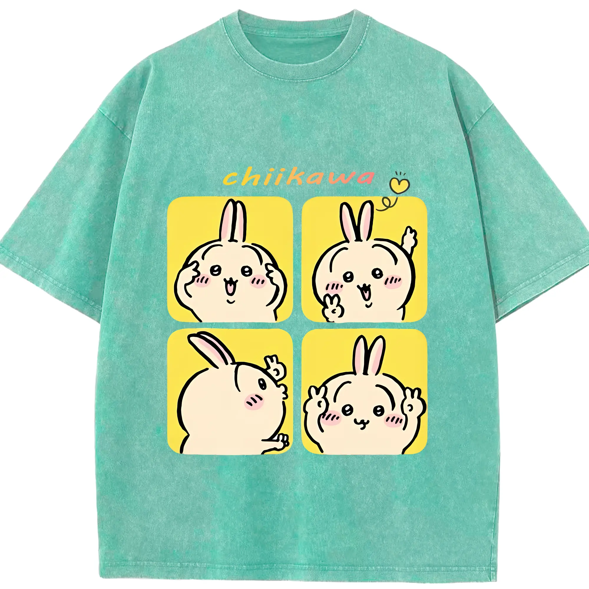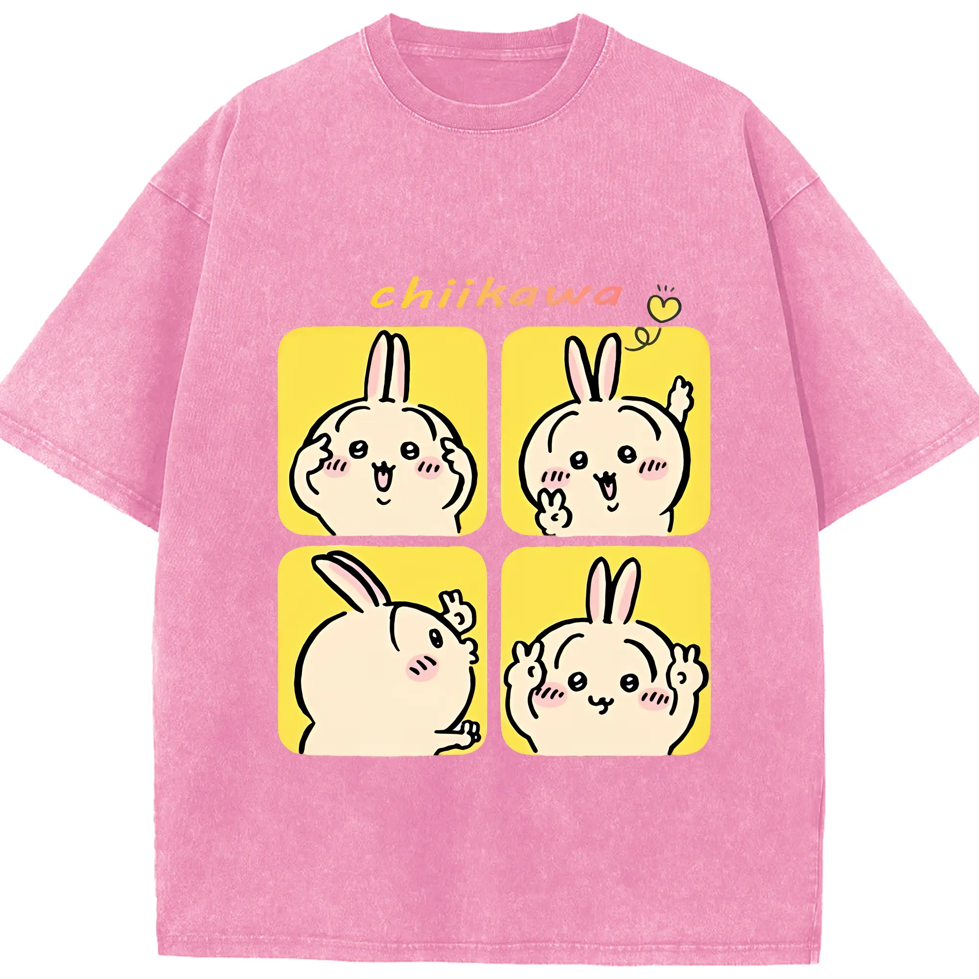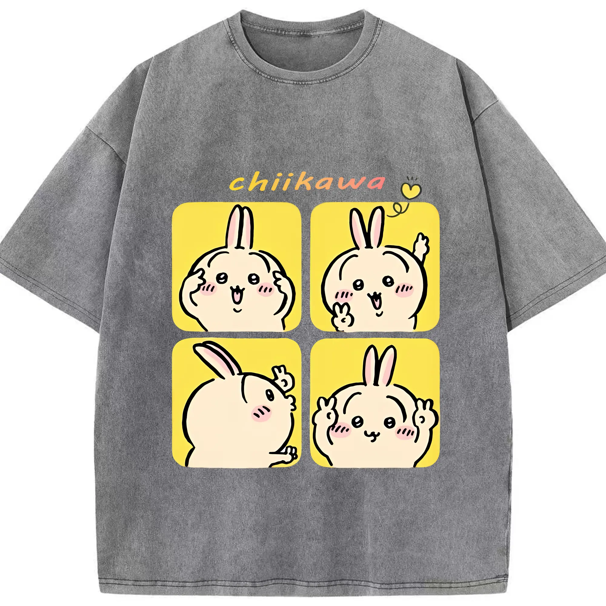 ちい が わ グッズ うさぎ - 綿100% ヴィンテージ風 半袖Tシャツ ・ 背面プリント ・ 柔らか肌触り ・ 通気性 快適 ・ スポーツ カジュアル 外出用