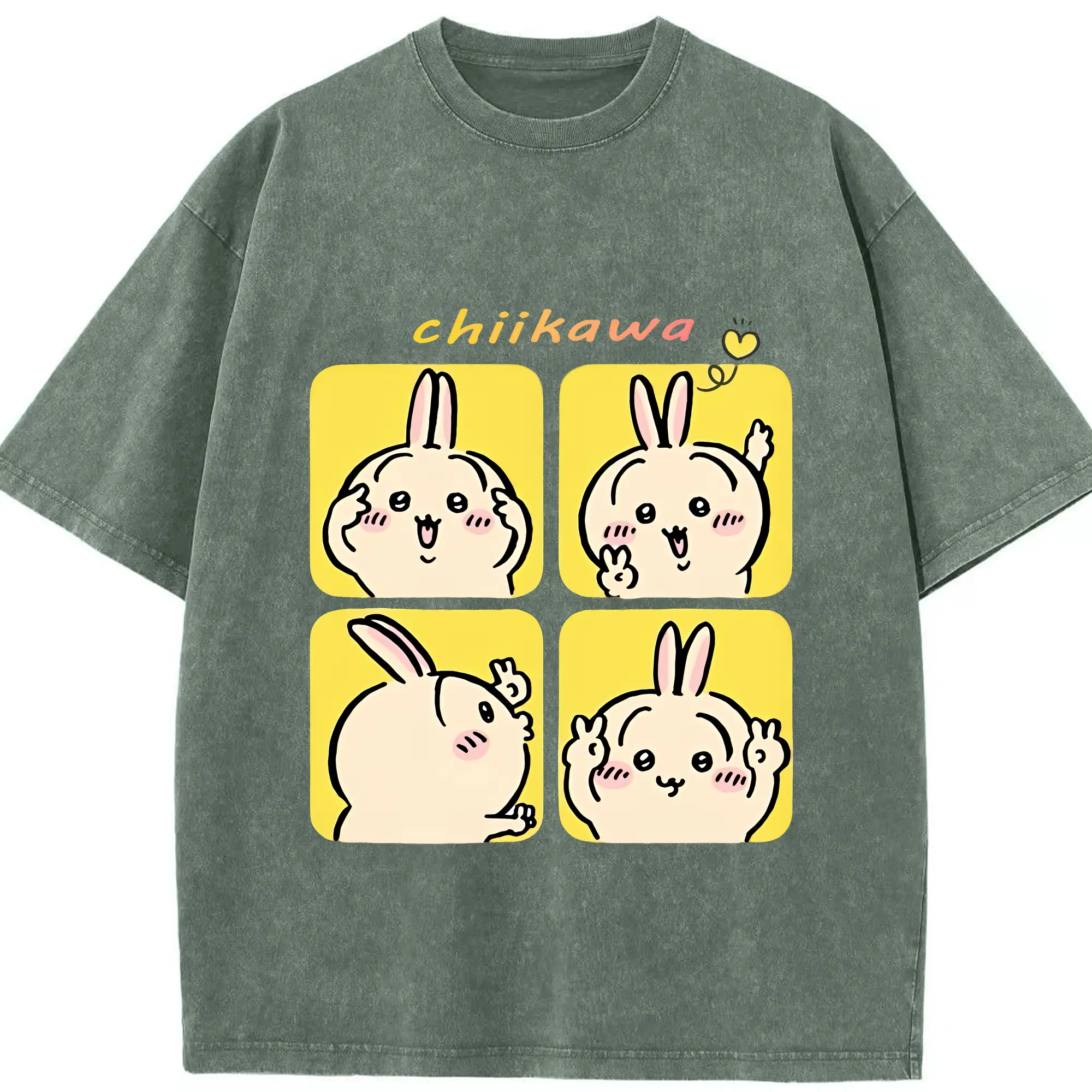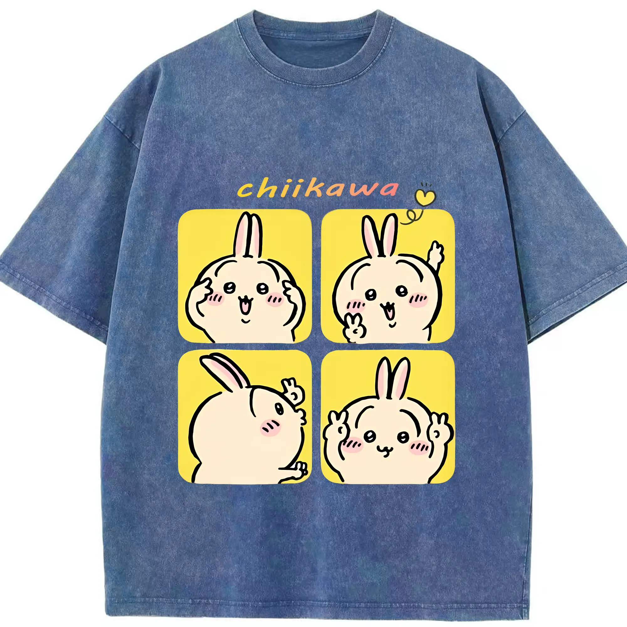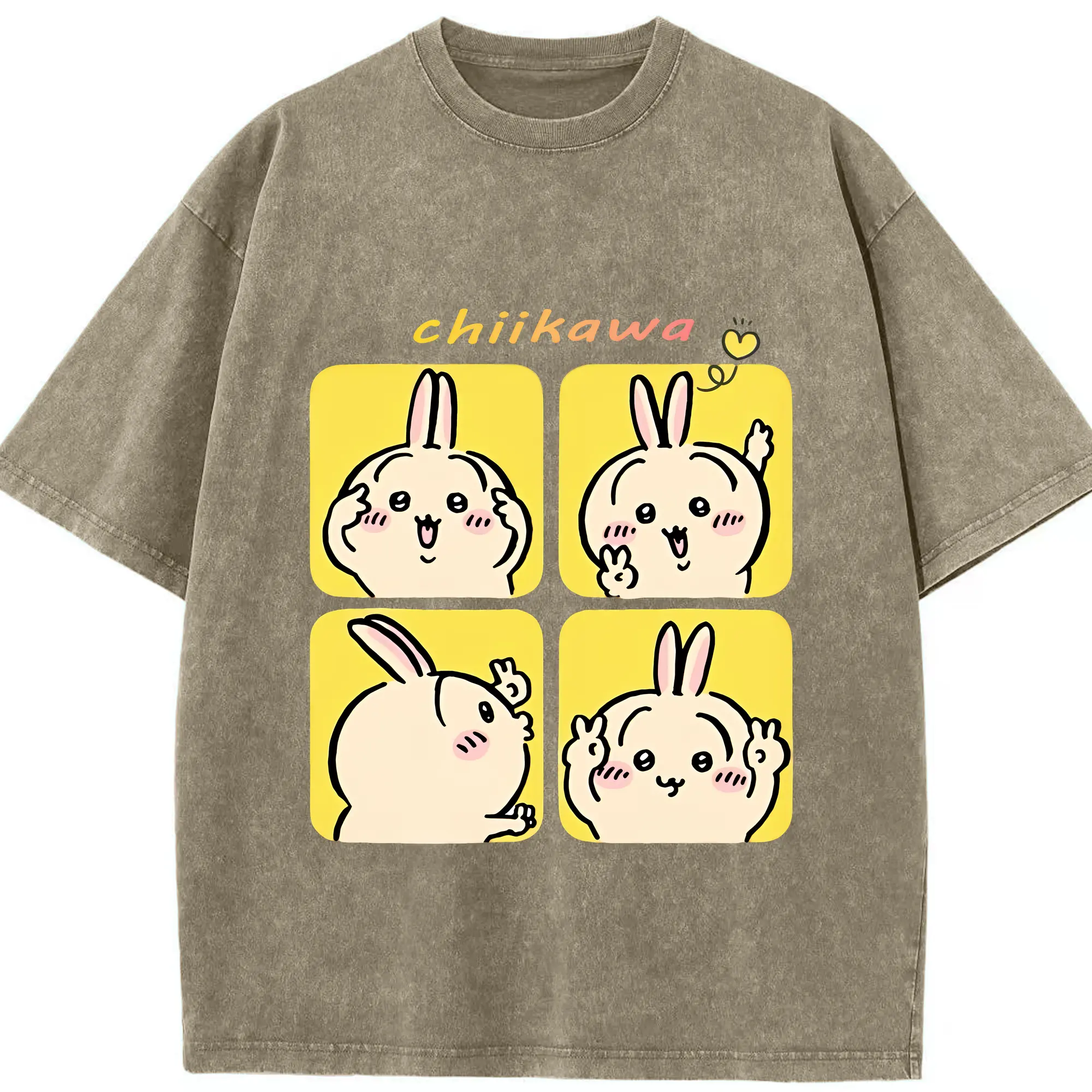 ちい が わ グッズ うさぎ - 綿100% ヴィンテージ風 半袖Tシャツ ・ 背面プリント ・ 柔らか肌触り ・ 通気性 快適 ・ スポーツ カジュアル 外出用