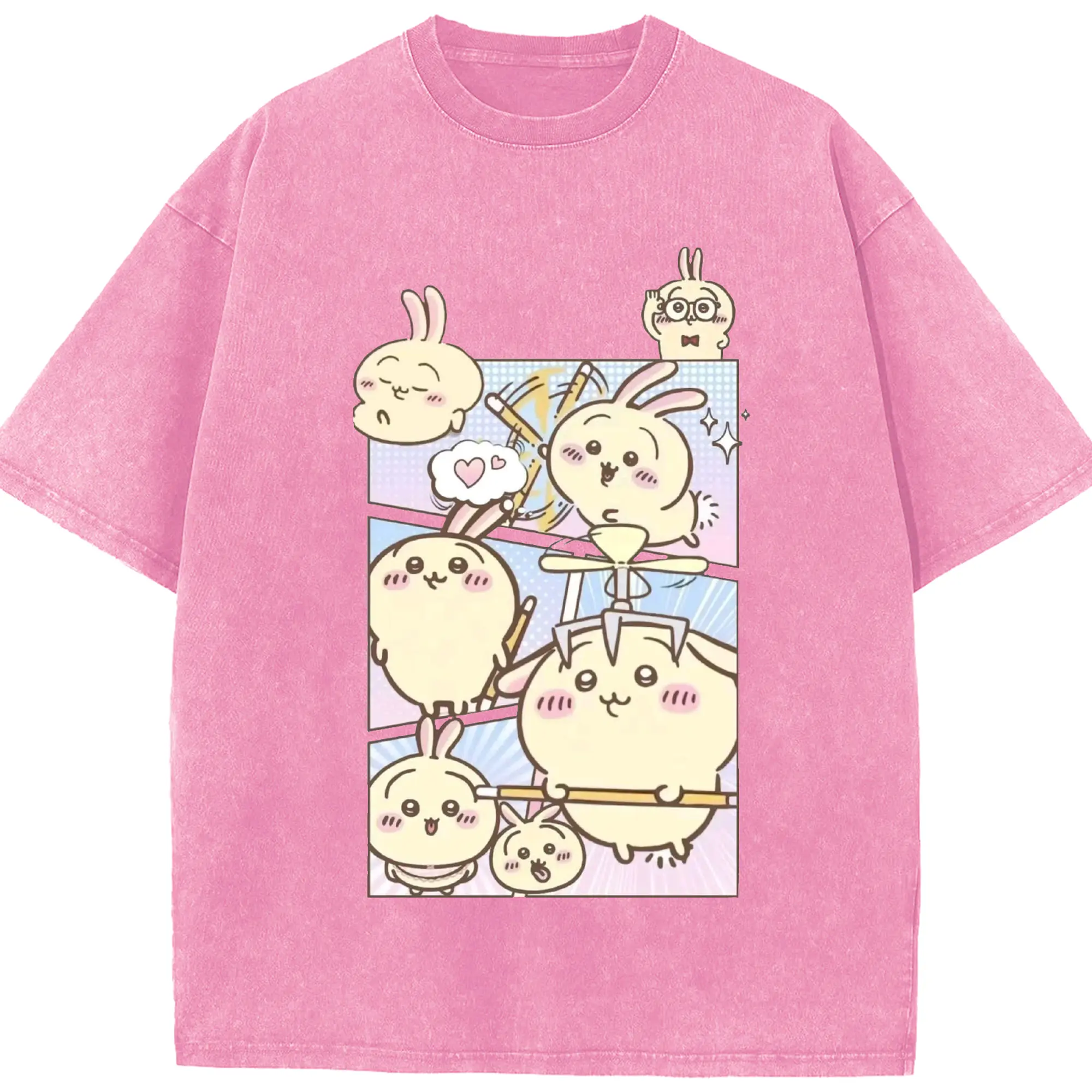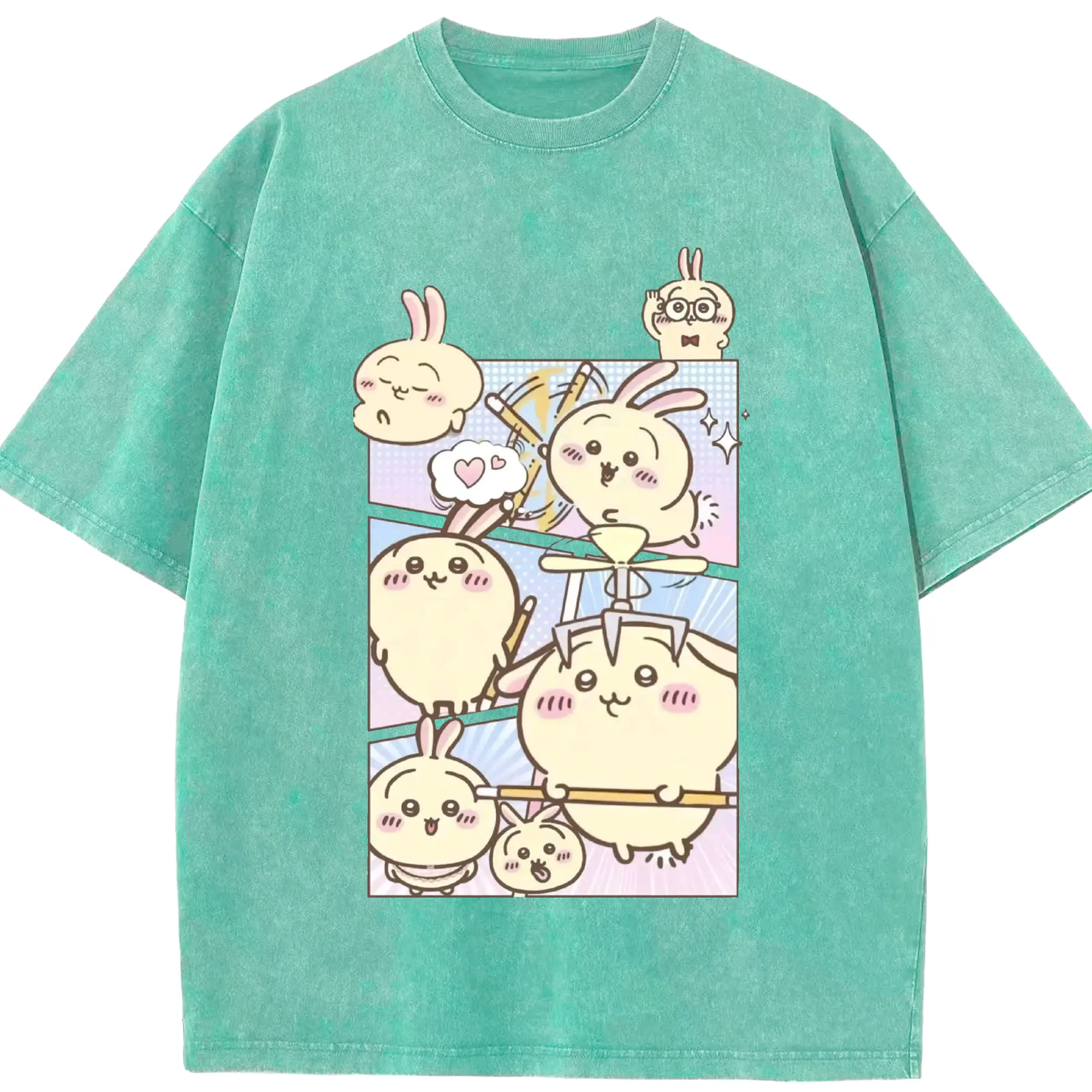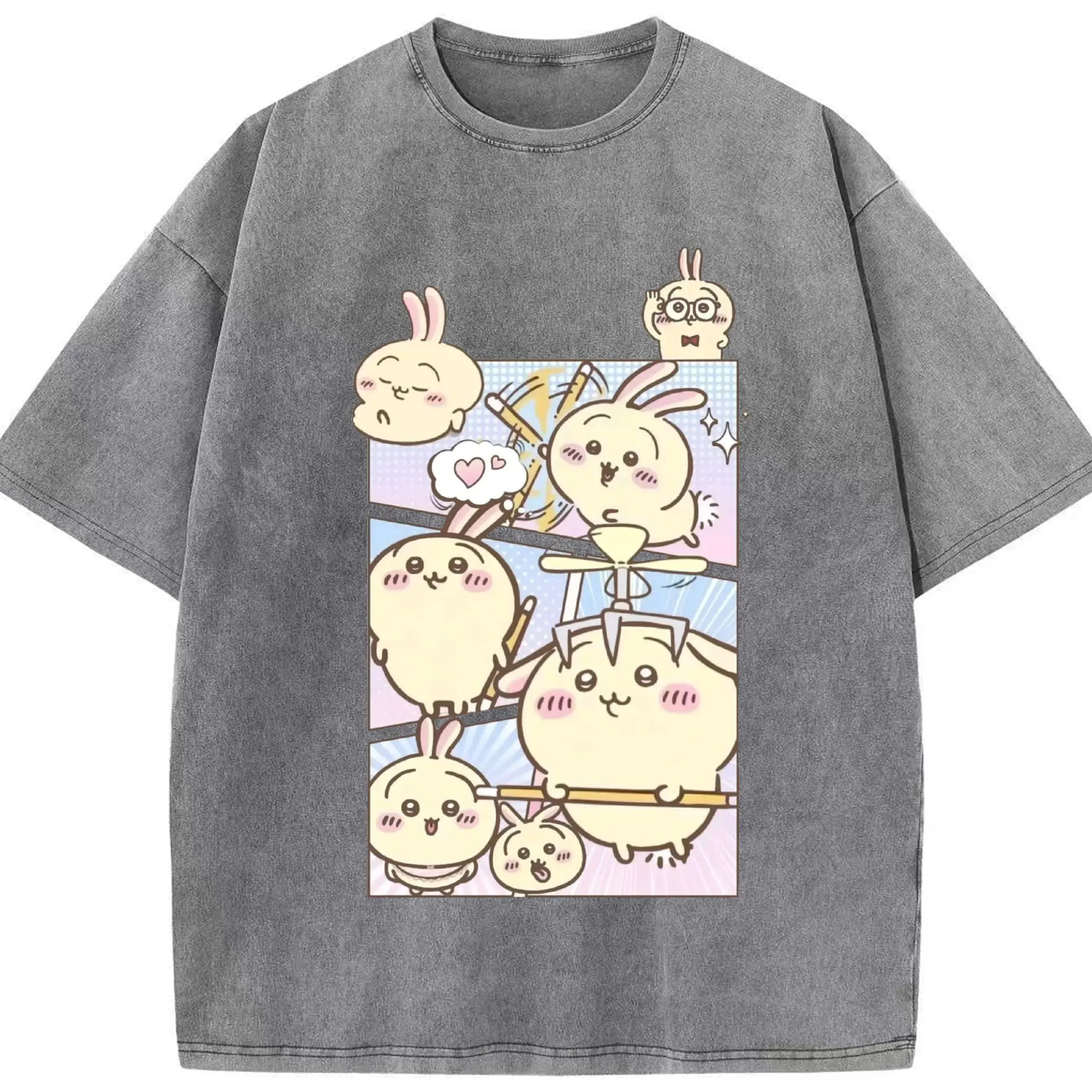 ちい が わ グッズ うさぎ - 綿100% ヴィンテージ風 半袖Tシャツ ・ 背面プリント ・ 柔らか肌触り ・ 通気性 快適 ・ スポーツ カジュアル 外出用