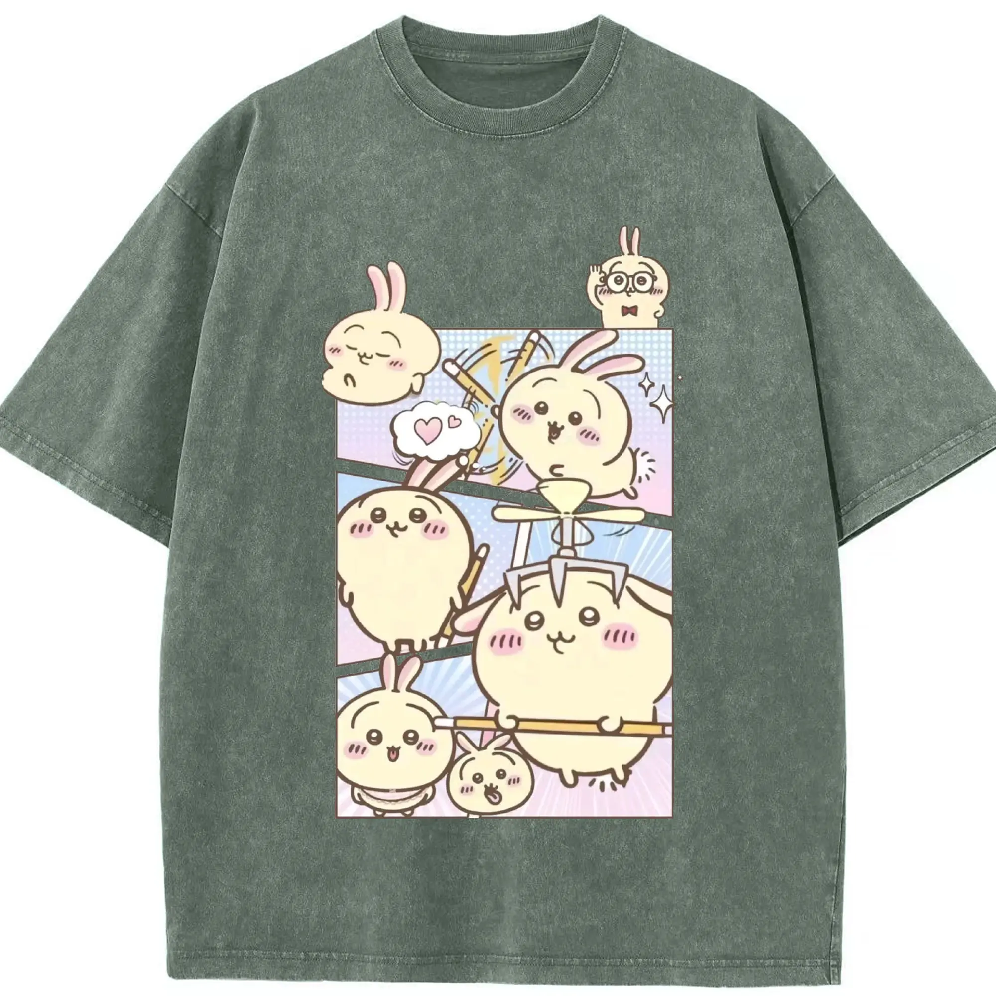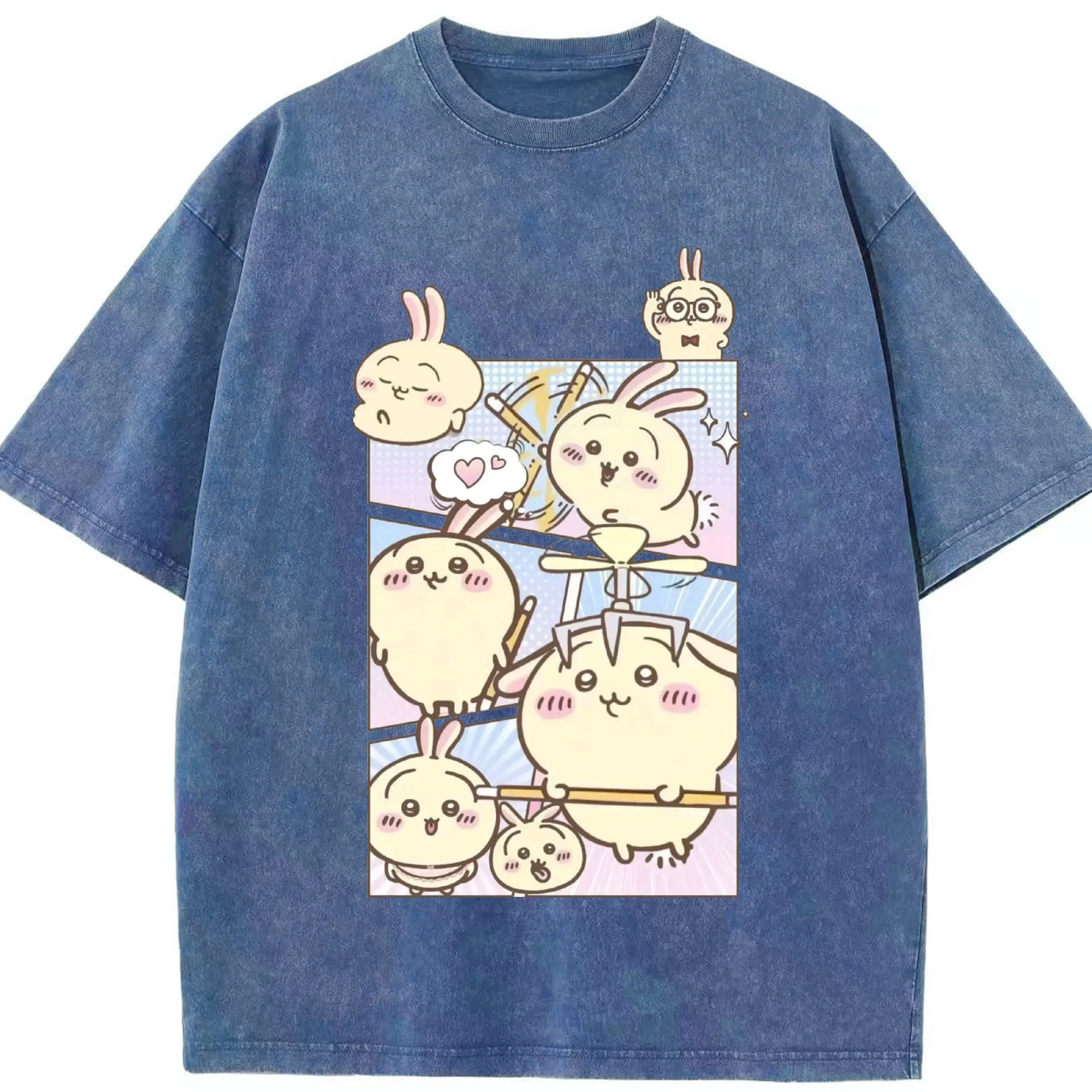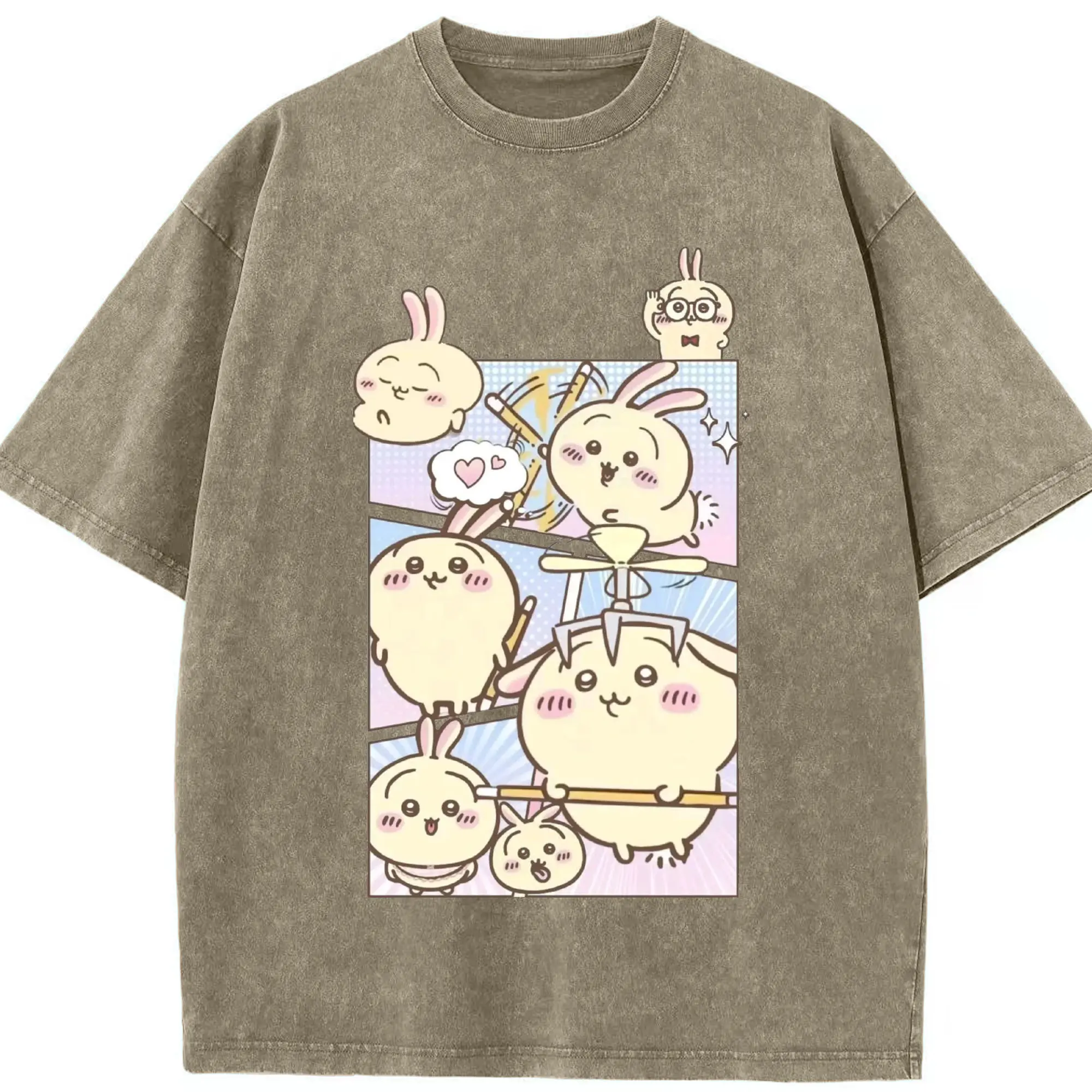 ちい が わ グッズ うさぎ - 綿100% ヴィンテージ風 半袖Tシャツ ・ 背面プリント ・ 柔らか肌触り ・ 通気性 快適 ・ スポーツ カジュアル 外出用