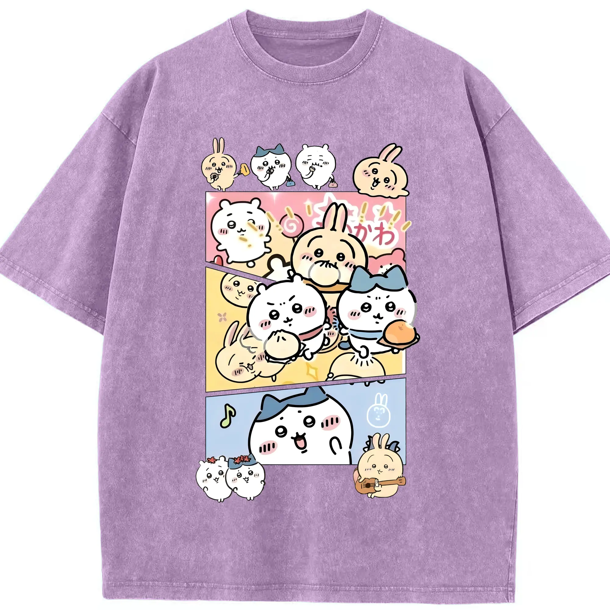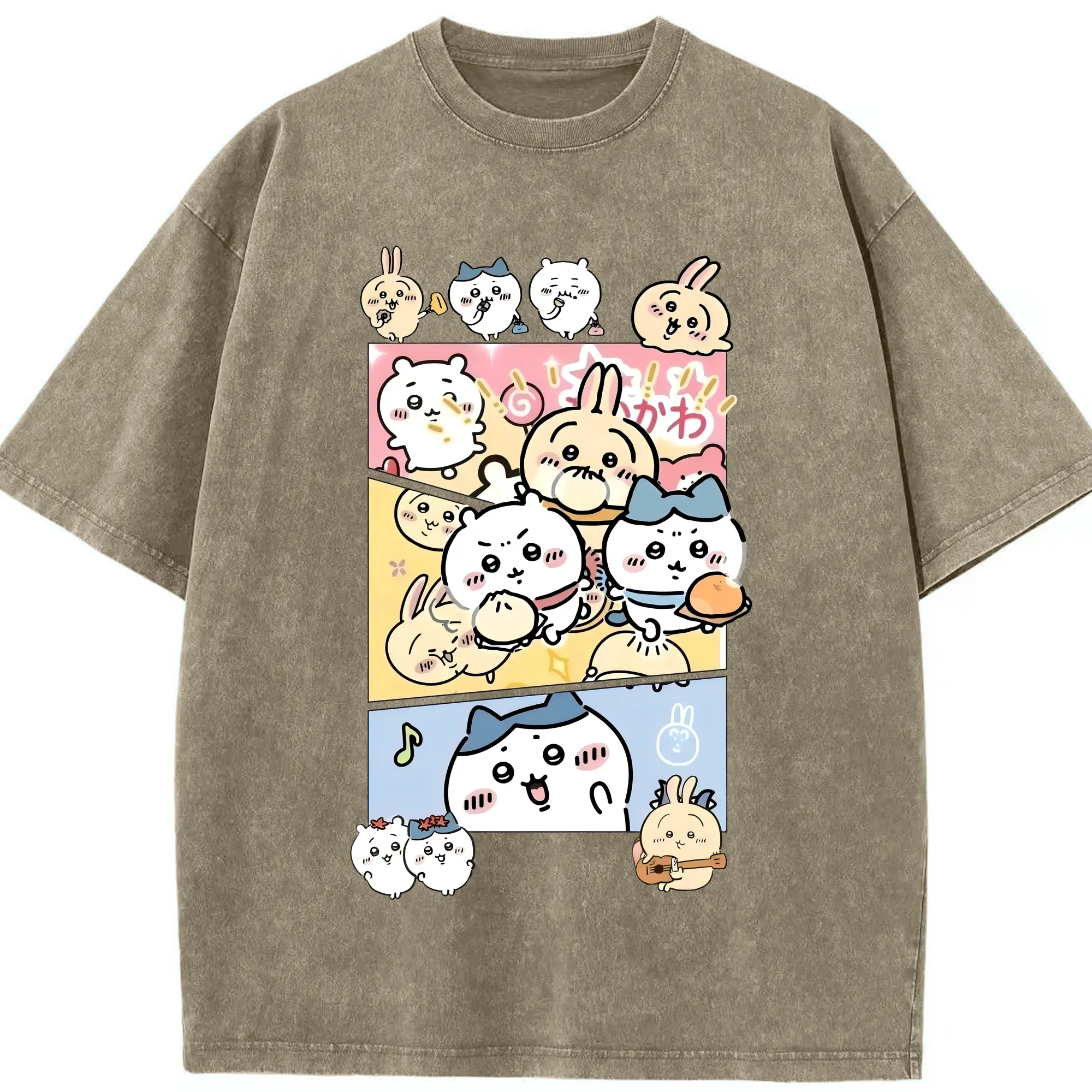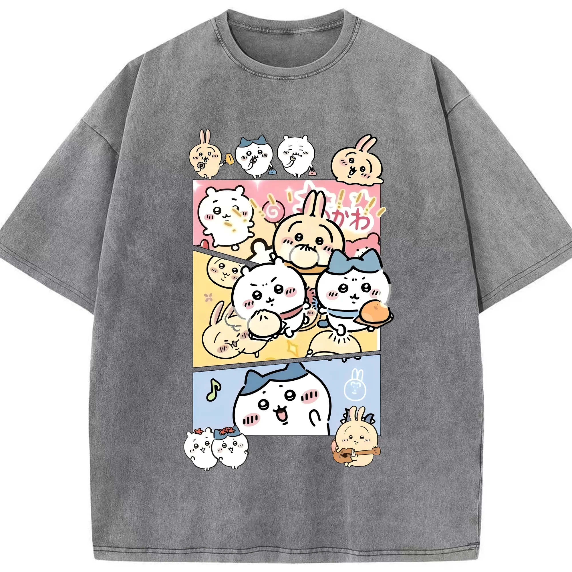 ちい が わ グッズ うさぎ - 綿100% ヴィンテージ風 半袖Tシャツ ・ 背面プリント ・ 柔らか肌触り ・ 通気性 快適 ・ スポーツ カジュアル 外出用