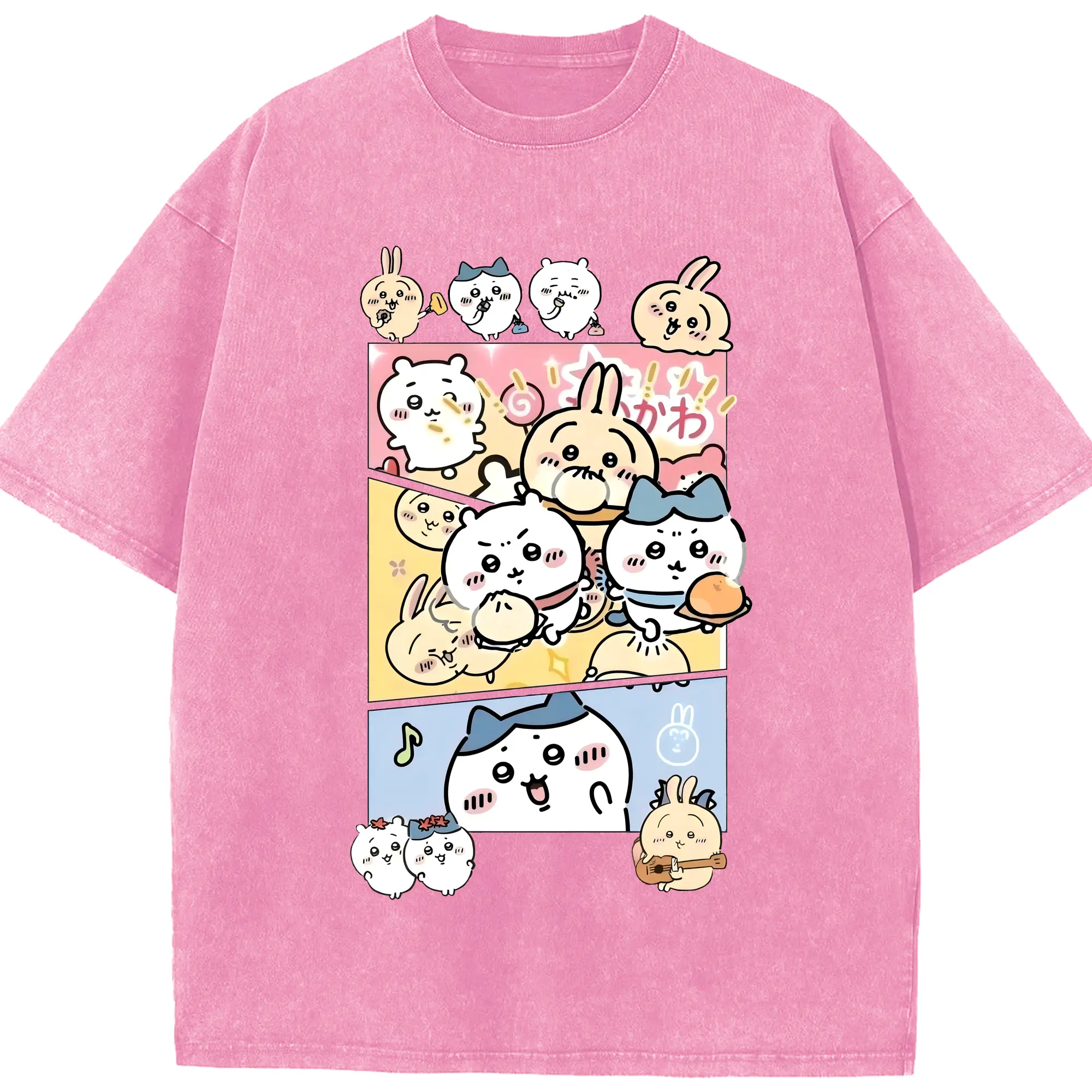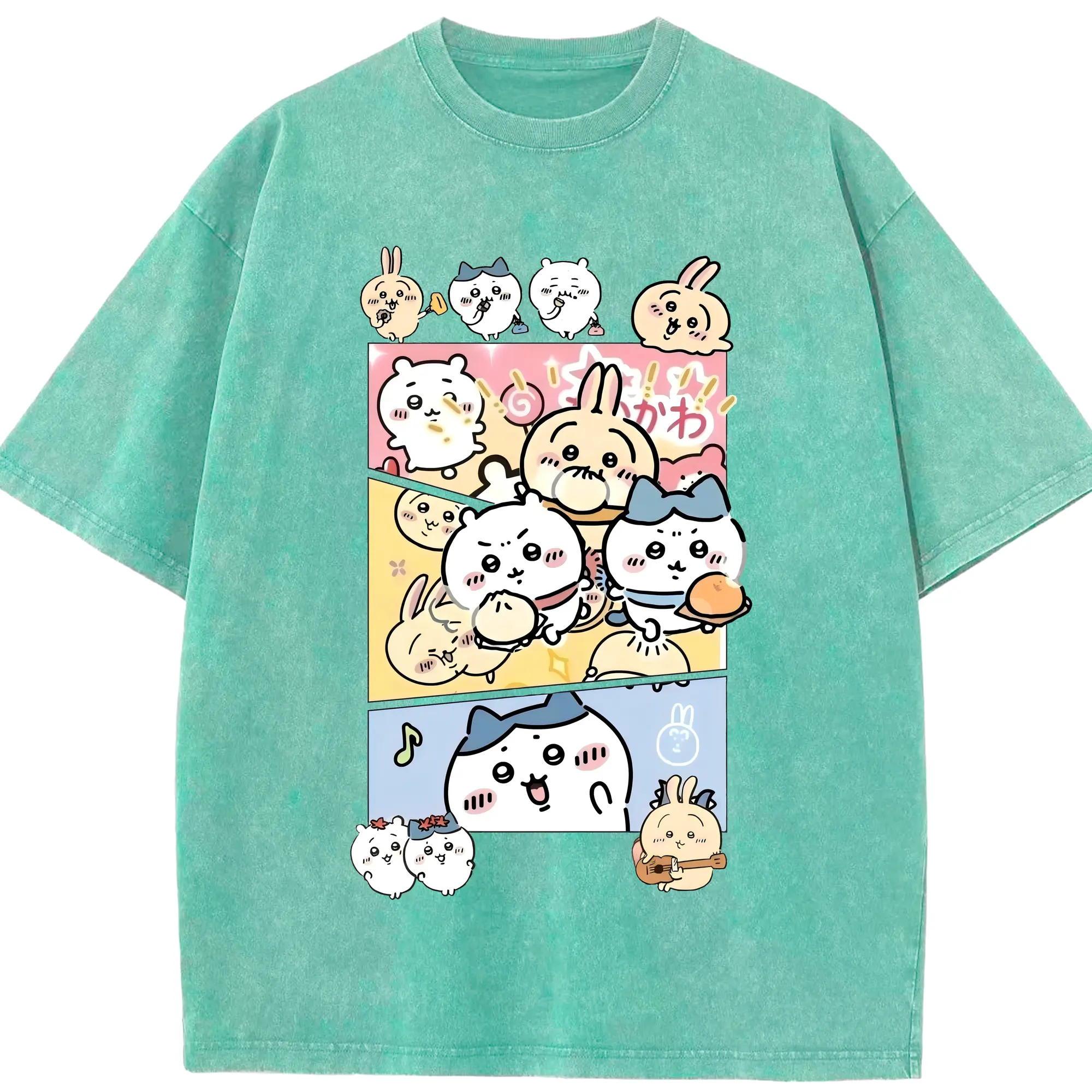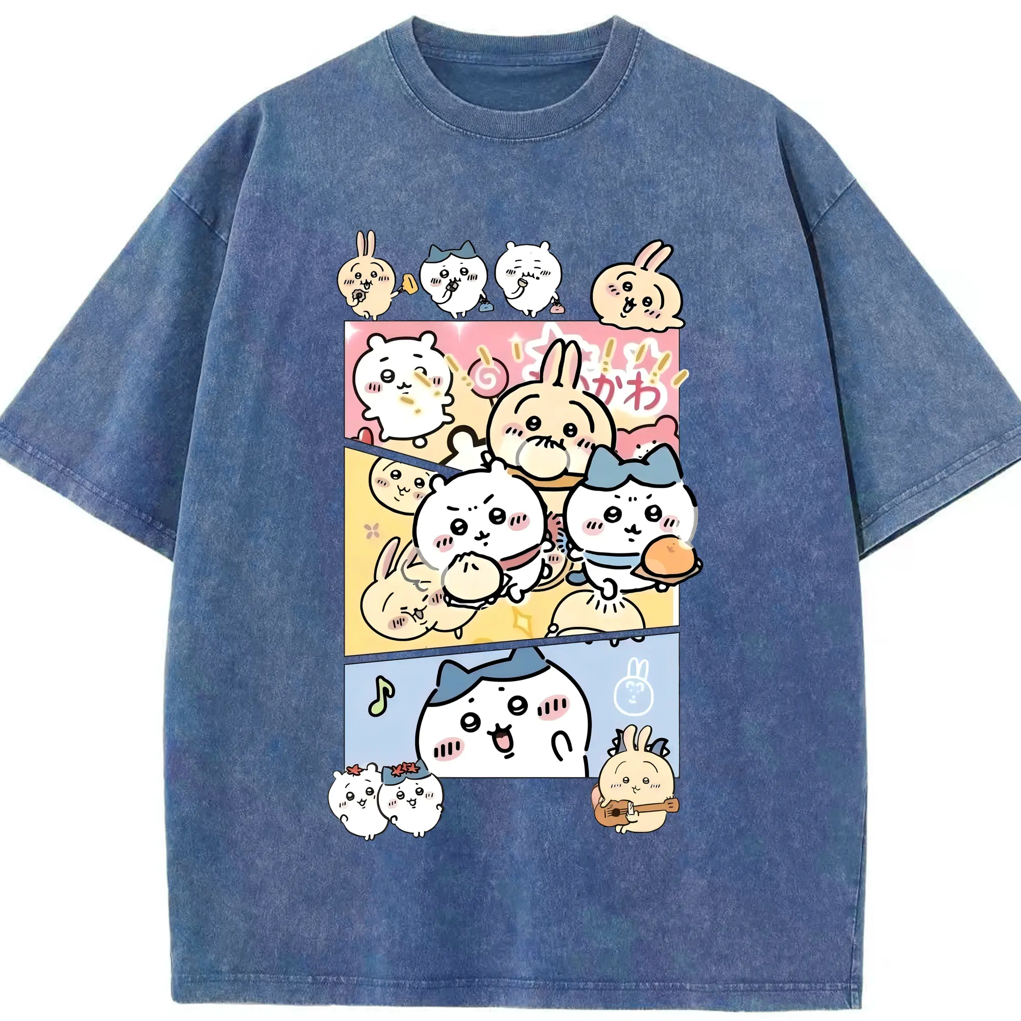 ちい が わ グッズ うさぎ - 綿100% ヴィンテージ風 半袖Tシャツ ・ 背面プリント ・ 柔らか肌触り ・ 通気性 快適 ・ スポーツ カジュアル 外出用