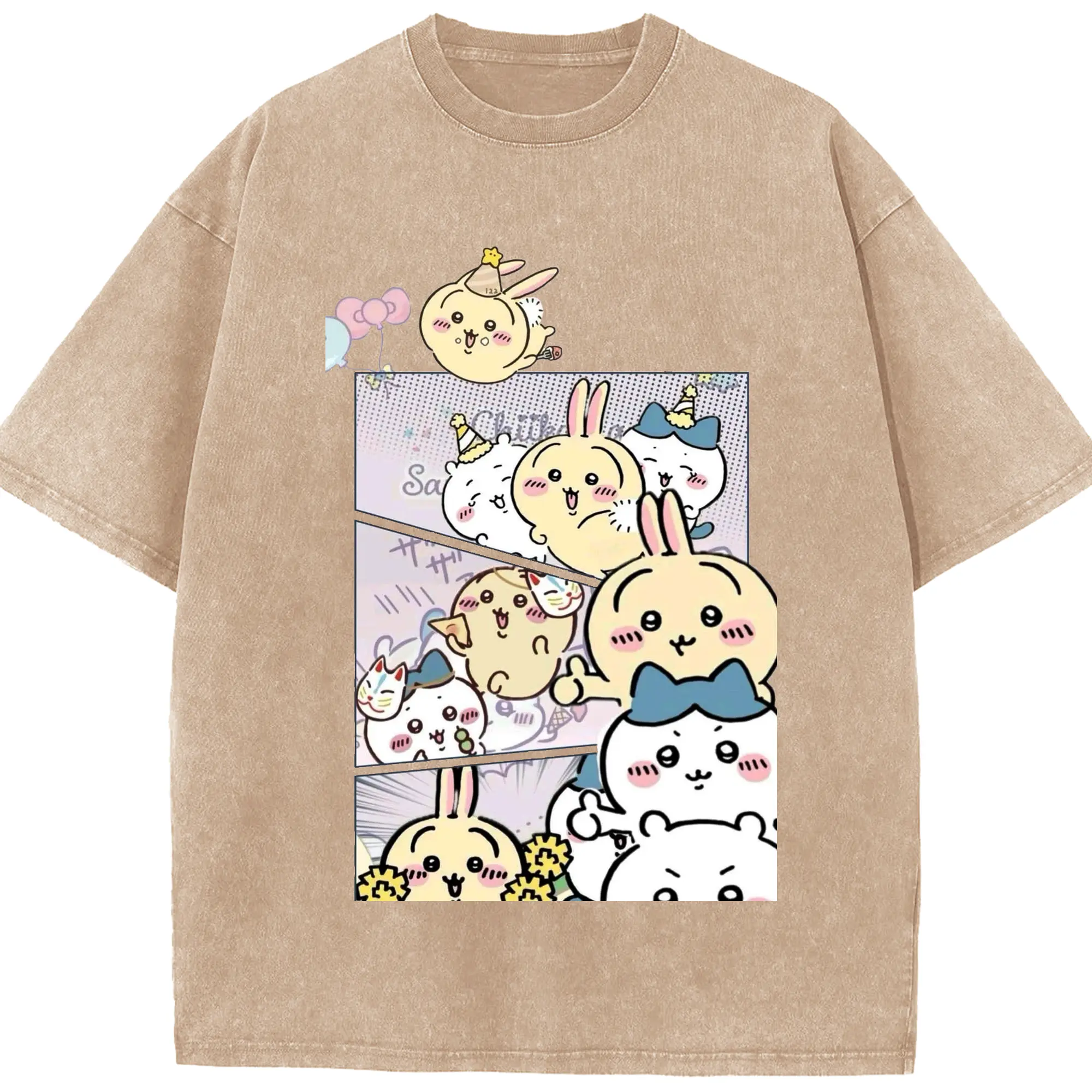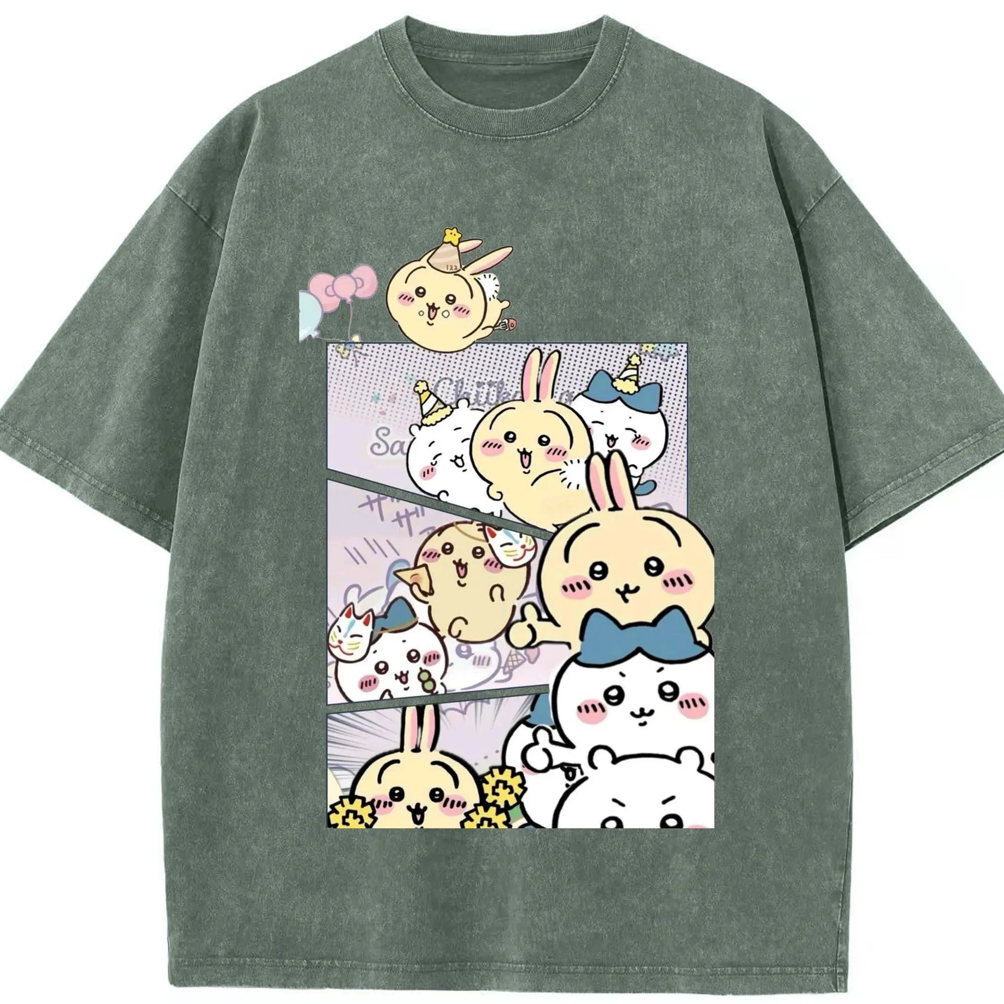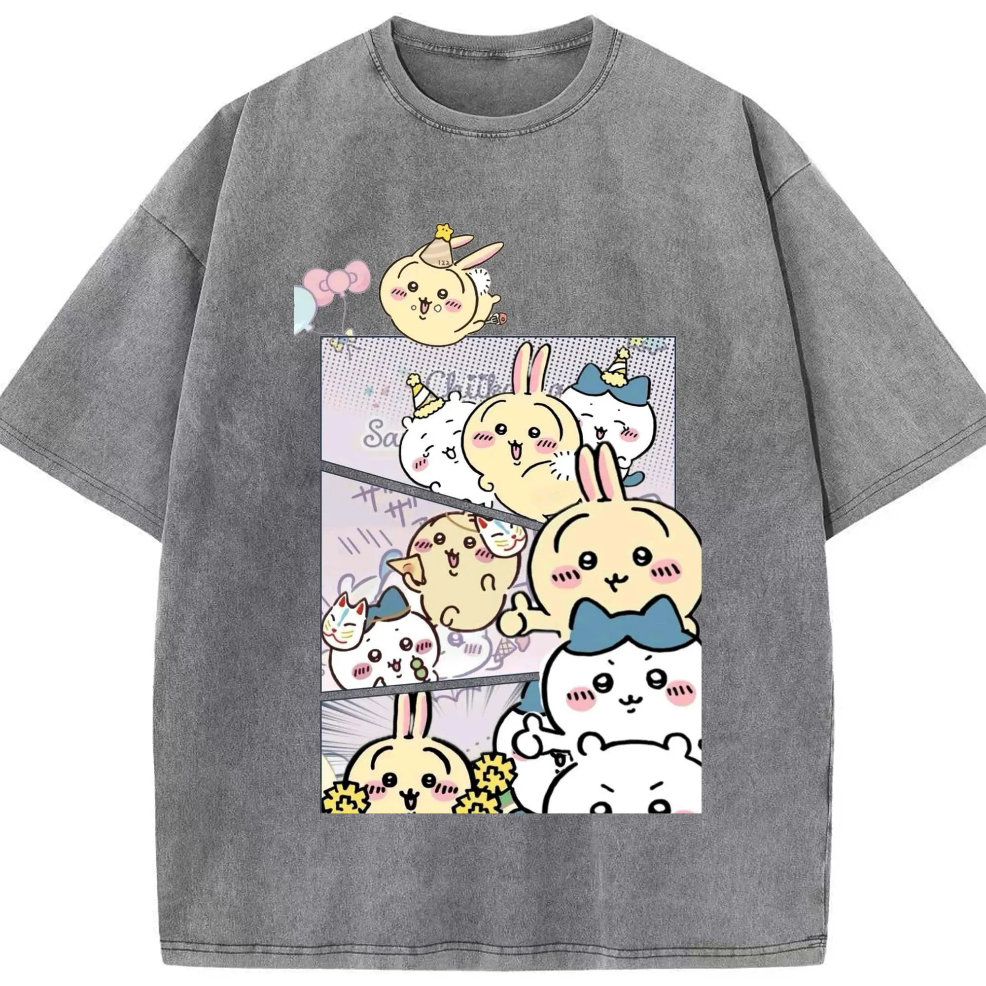 ちい が わ グッズ うさぎ - 綿100% ヴィンテージ風 半袖Tシャツ ・ 背面プリント ・ 柔らか肌触り ・ 通気性 快適 ・ スポーツ カジュアル 外出用