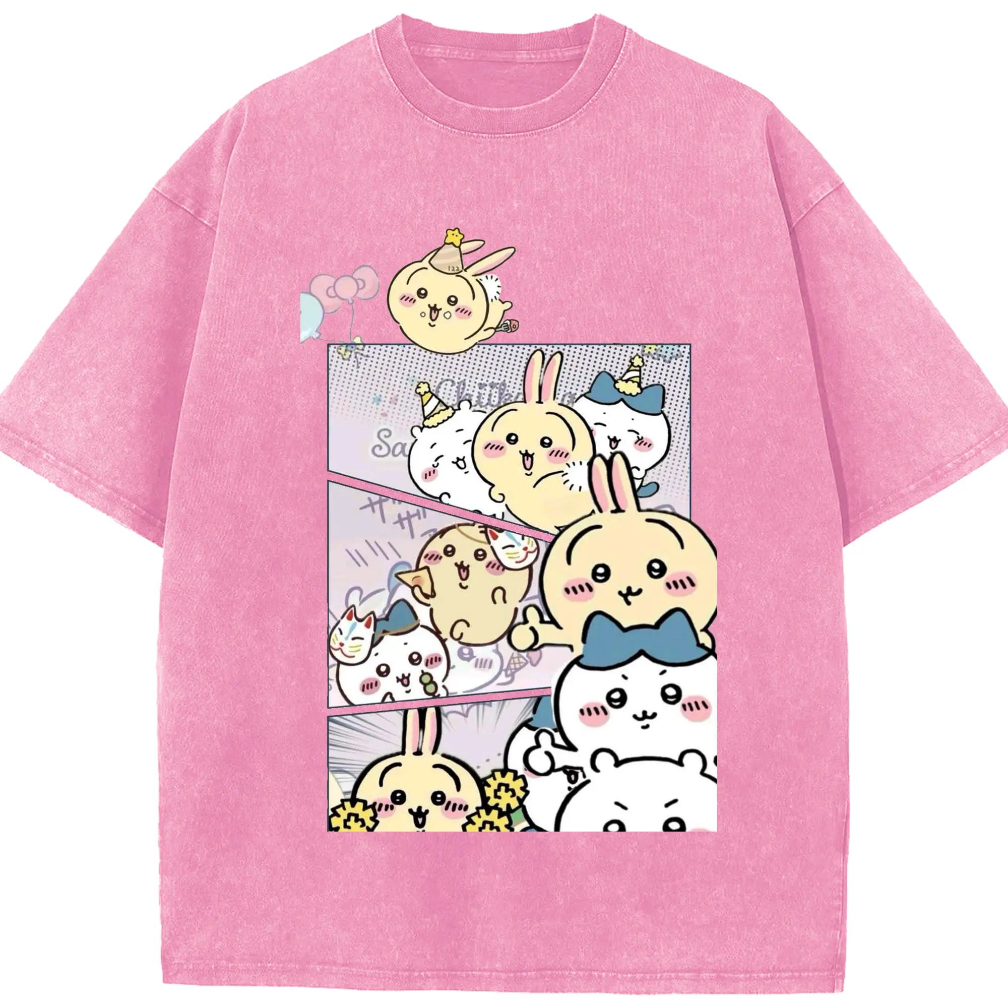 ちい が わ グッズ うさぎ - 綿100% 半袖Tシャツ ・ フロントプリント ・ 快適 通気性 ・ 日常使い 散歩 スポーツ用